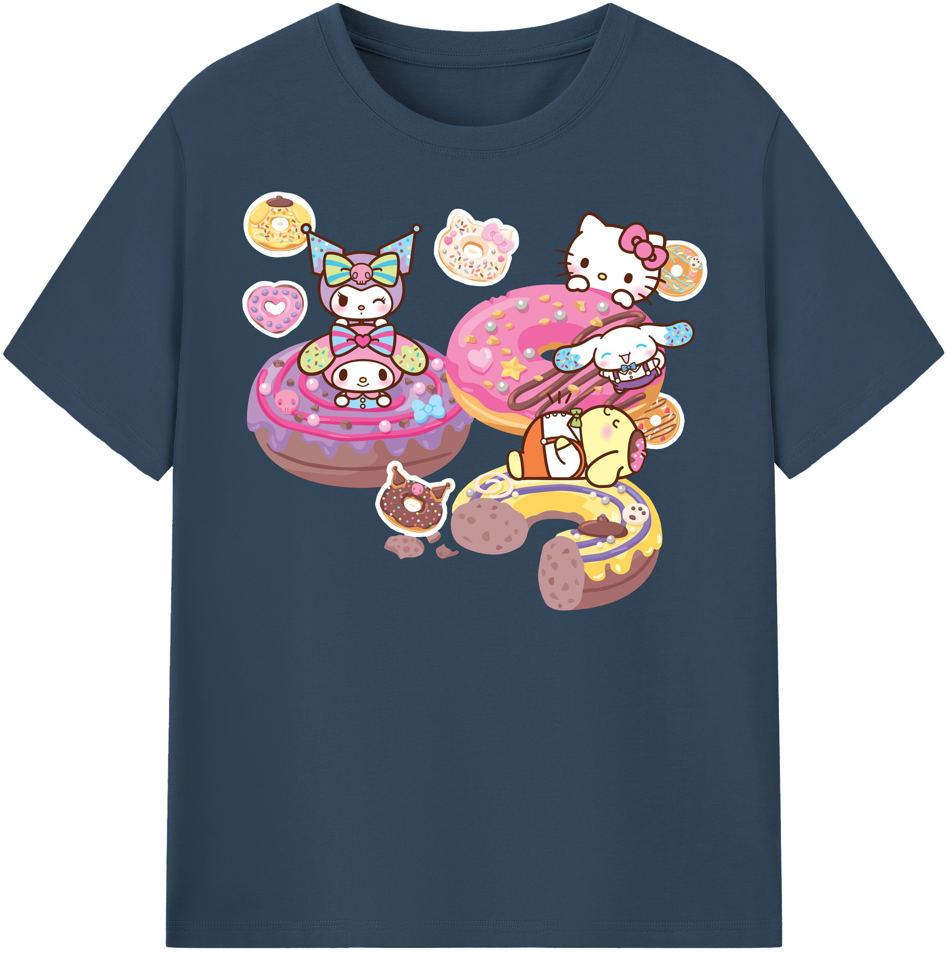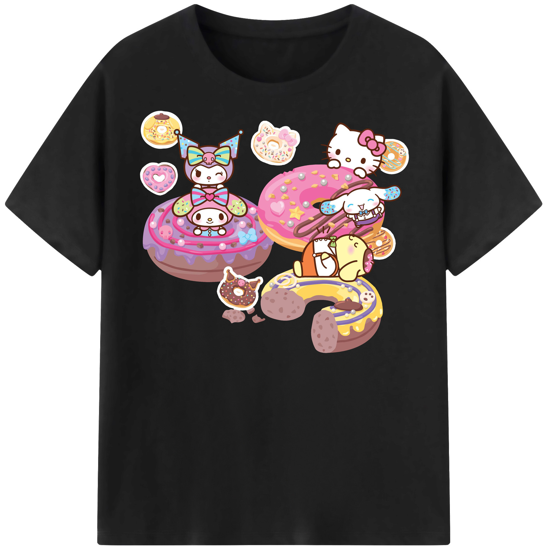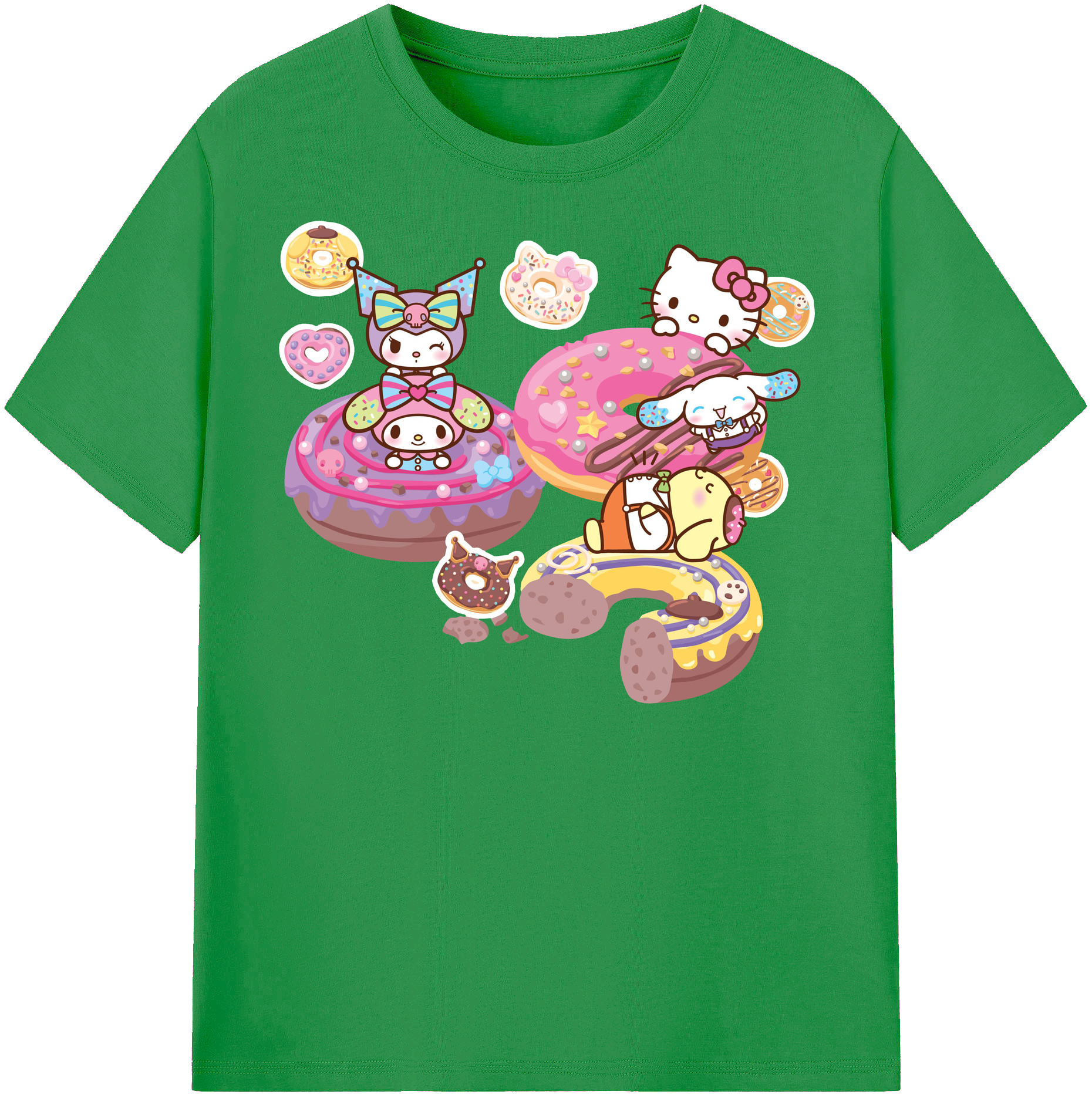 ドーナツ×サンリオ - 綿100% キッズTシャツ ・ フロントプリント ・ 快適 通気性 ・ スポーツ カジュアル 散歩用