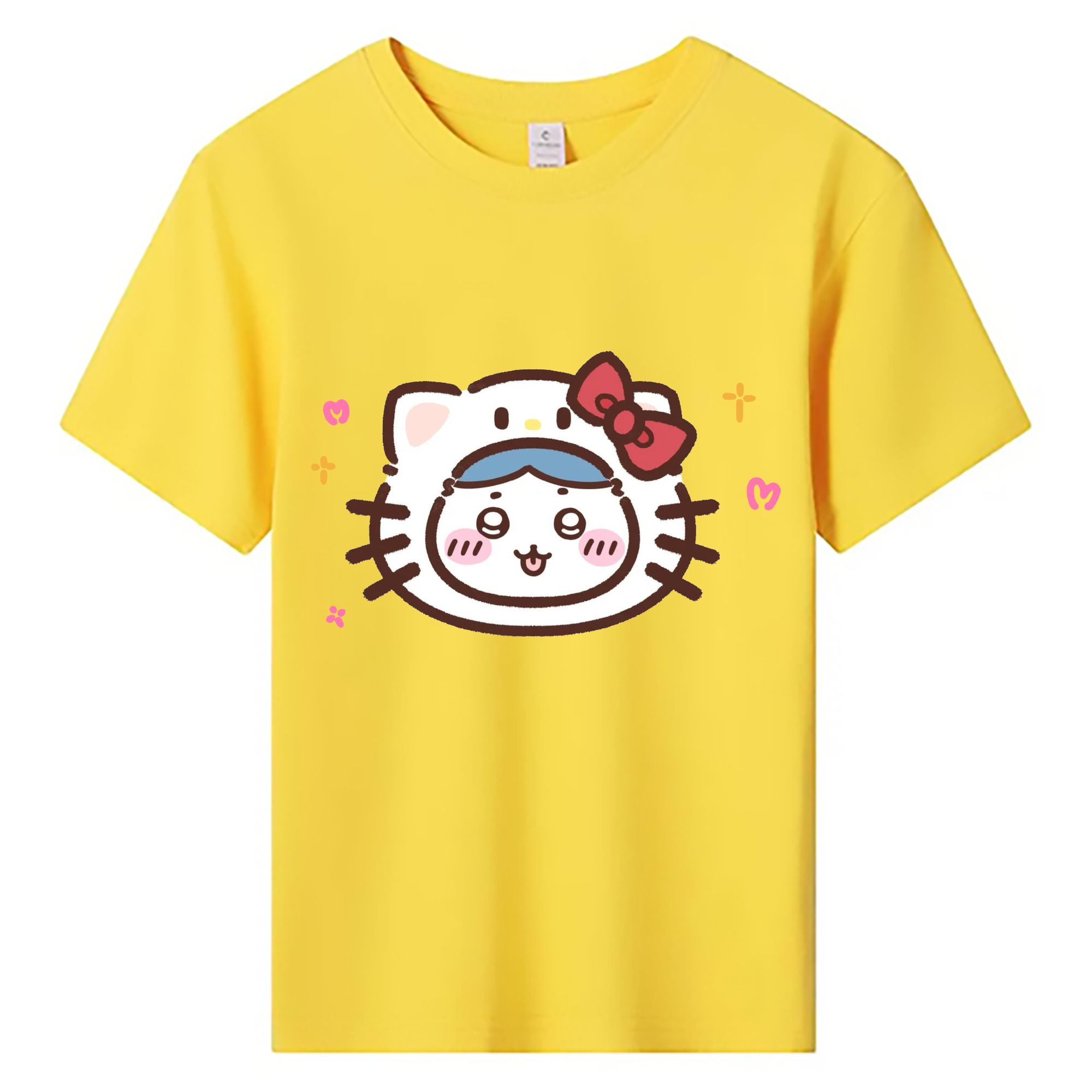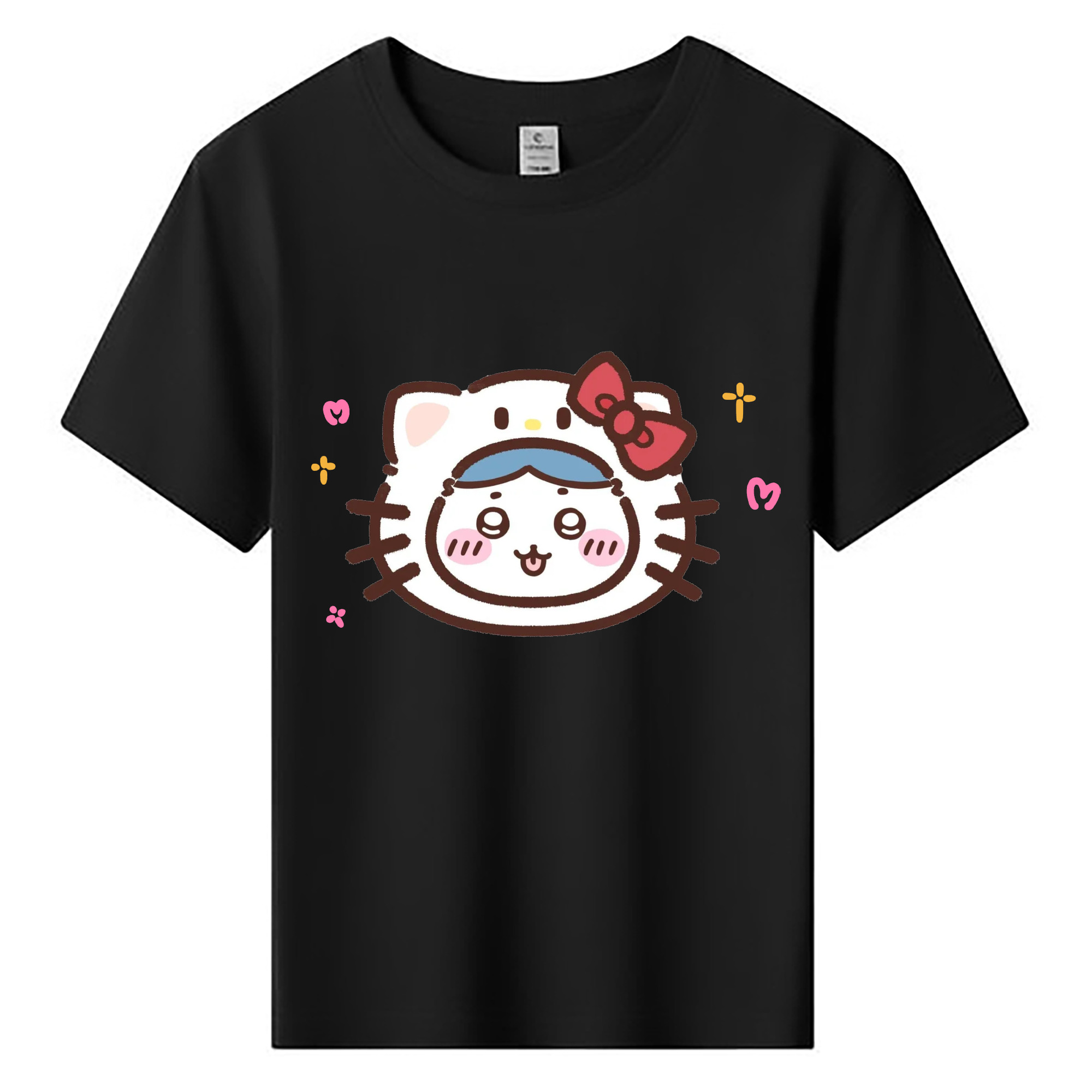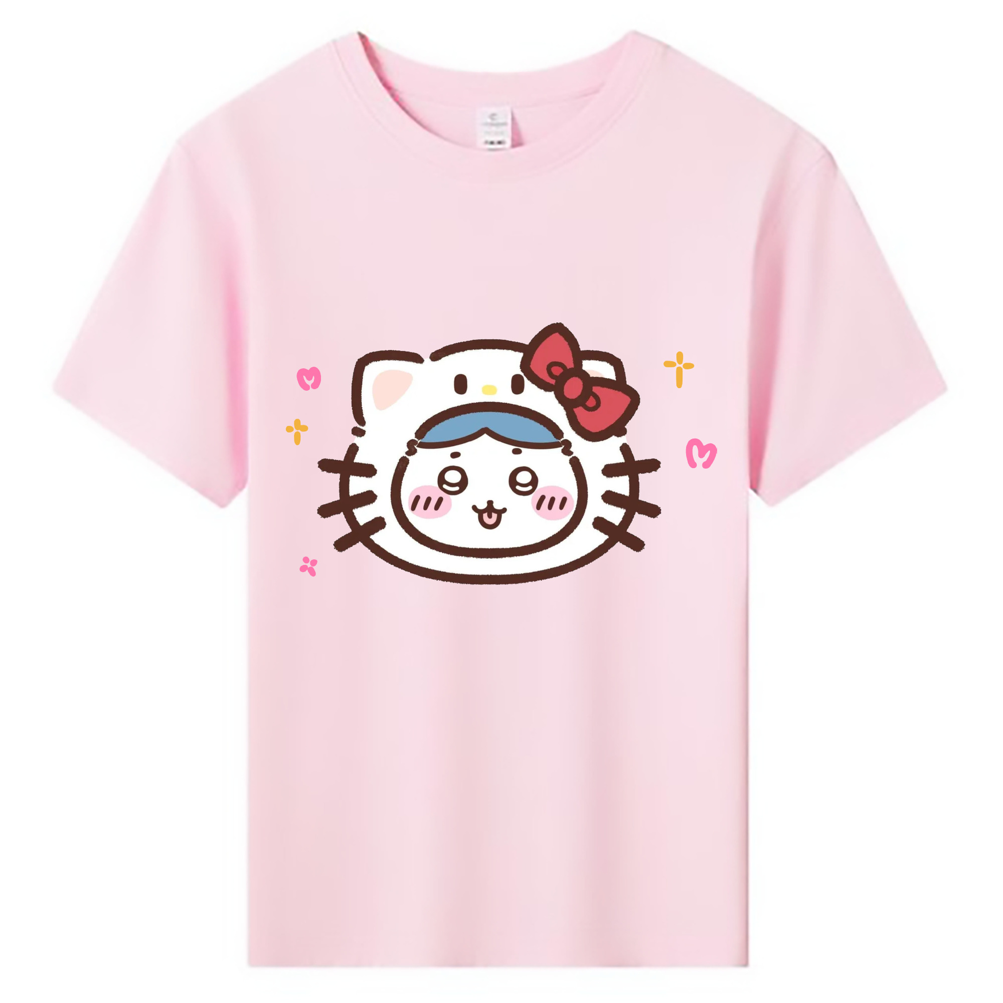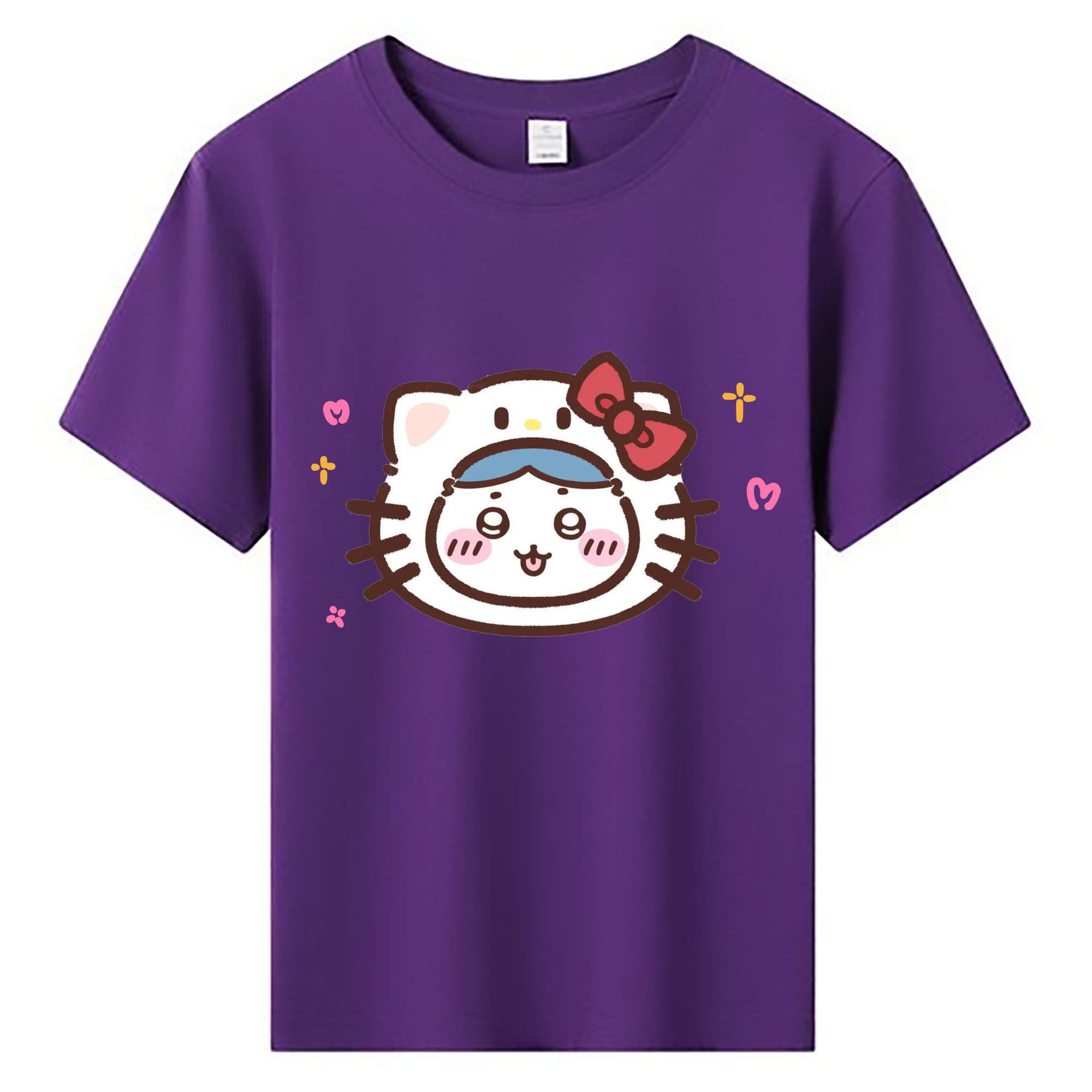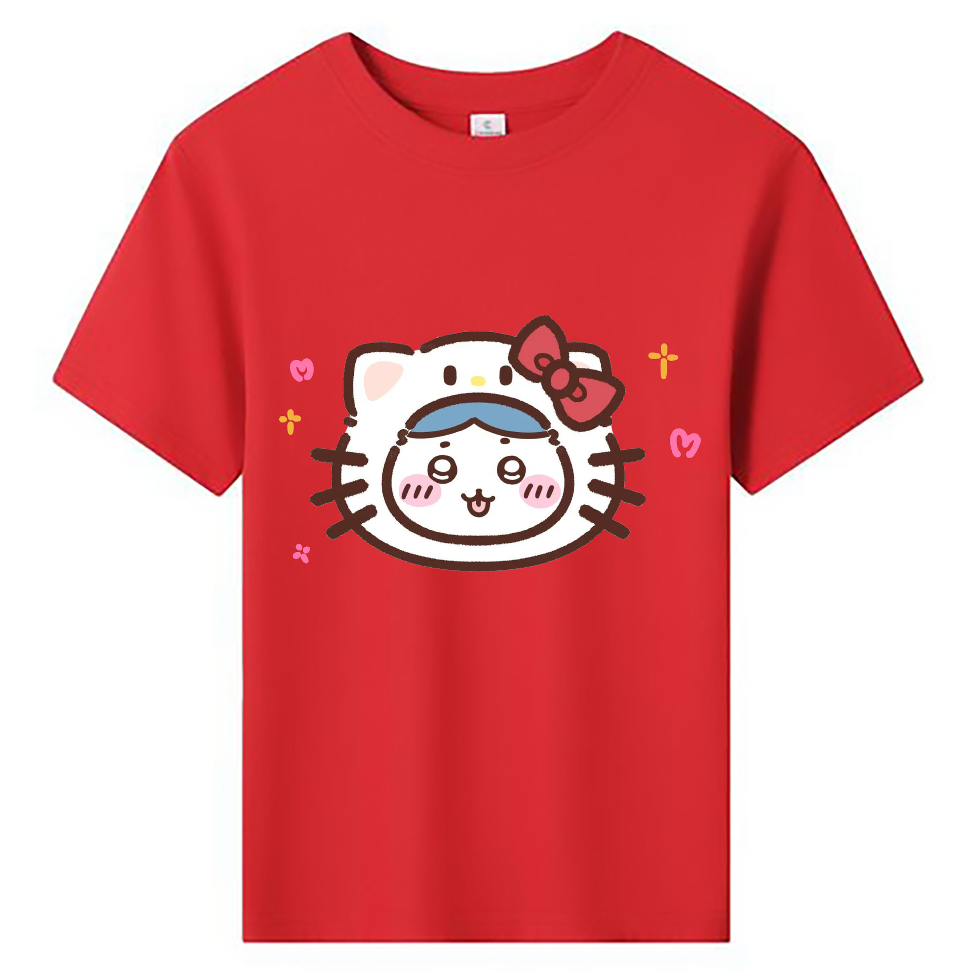 ハローキティ&ちいかわ - 綿100% ヴィンテージ風 半袖Tシャツ ・ フロントプリント ・ 柔らか肌触り ・ 通気性 快適 ・ スポーツ カジュアル 外出用