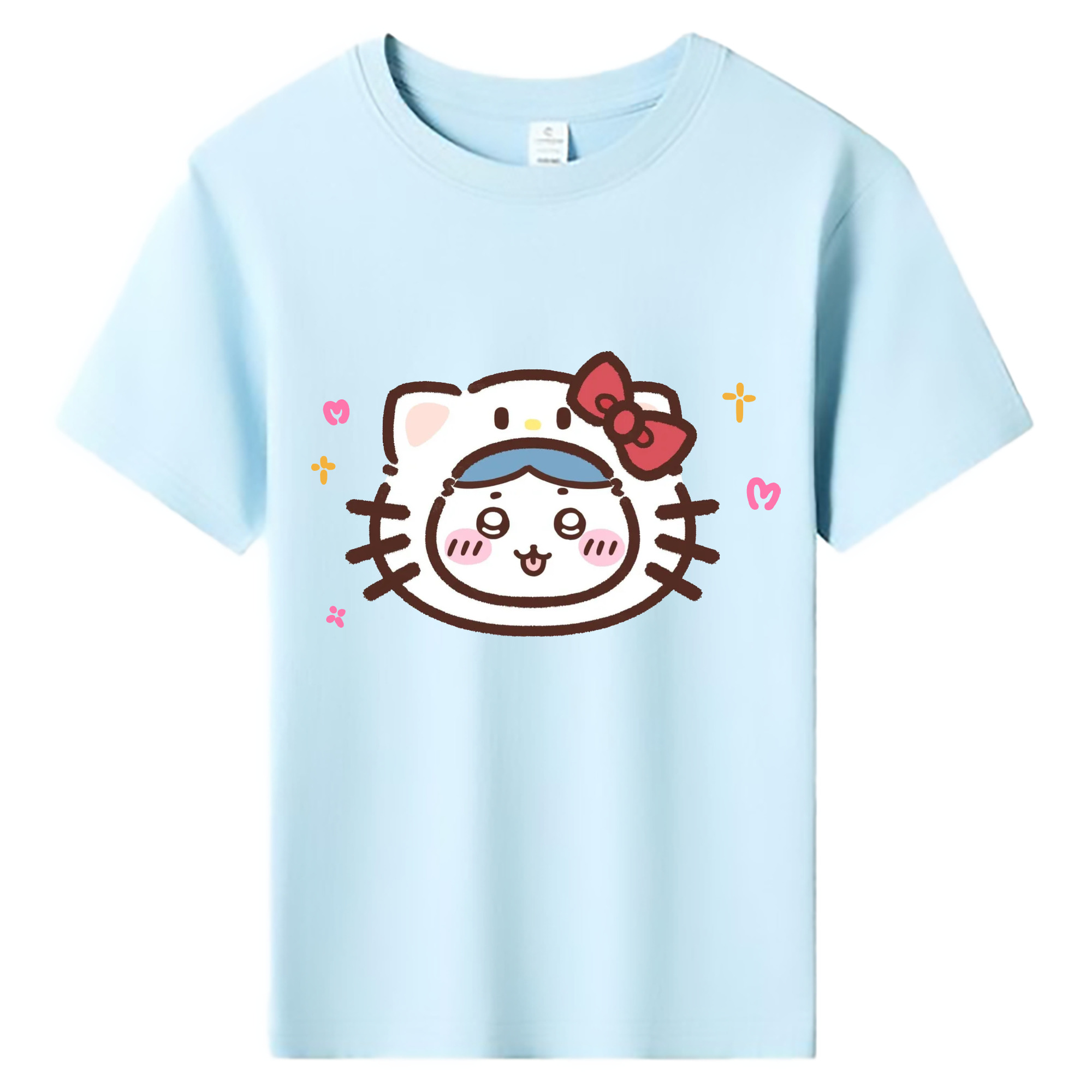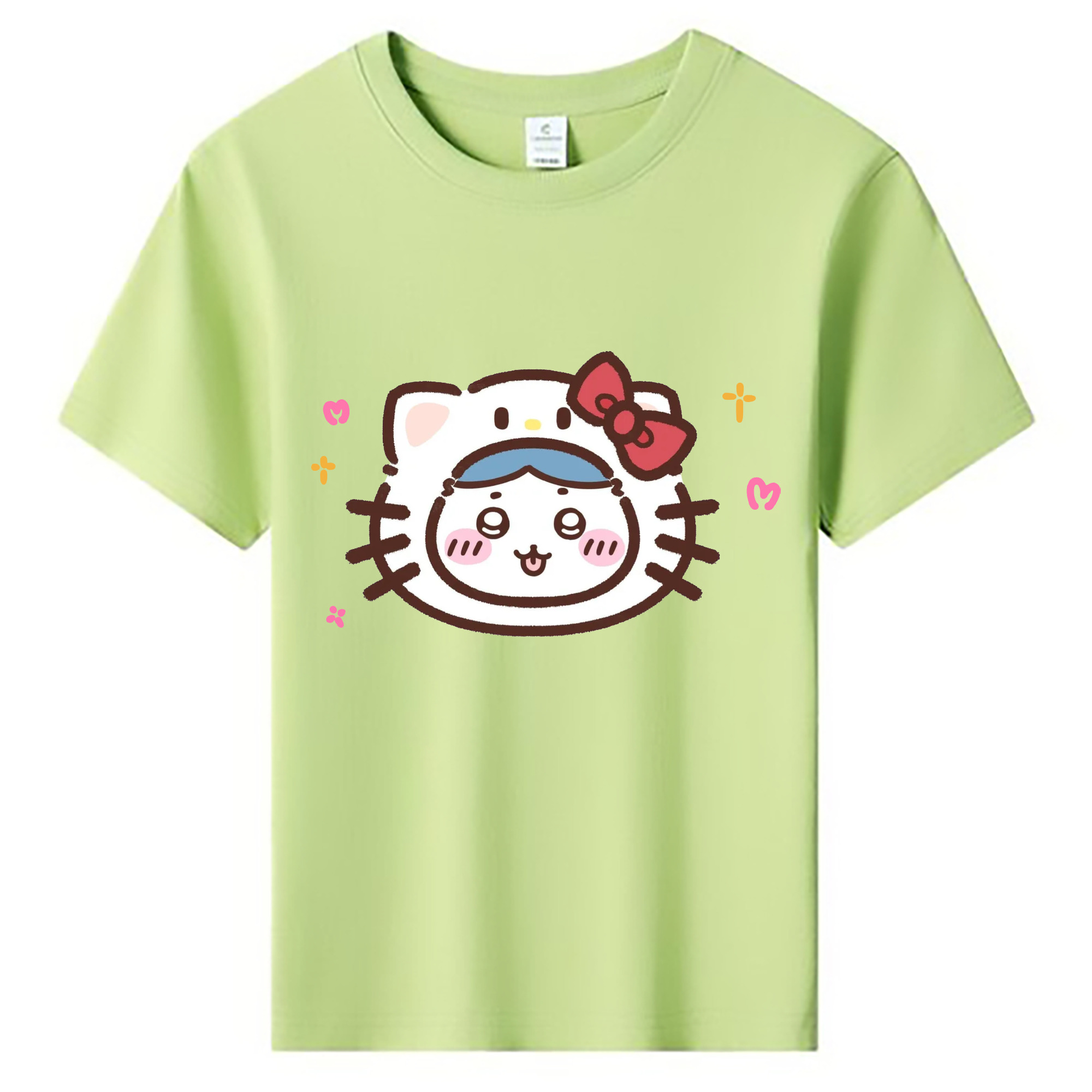 ポチャッコ&ちいかわ - 綿100% キッズTシャツ ・ フロントプリント ・ 快適 通気性 ・ スポーツ カジュアル 散歩用