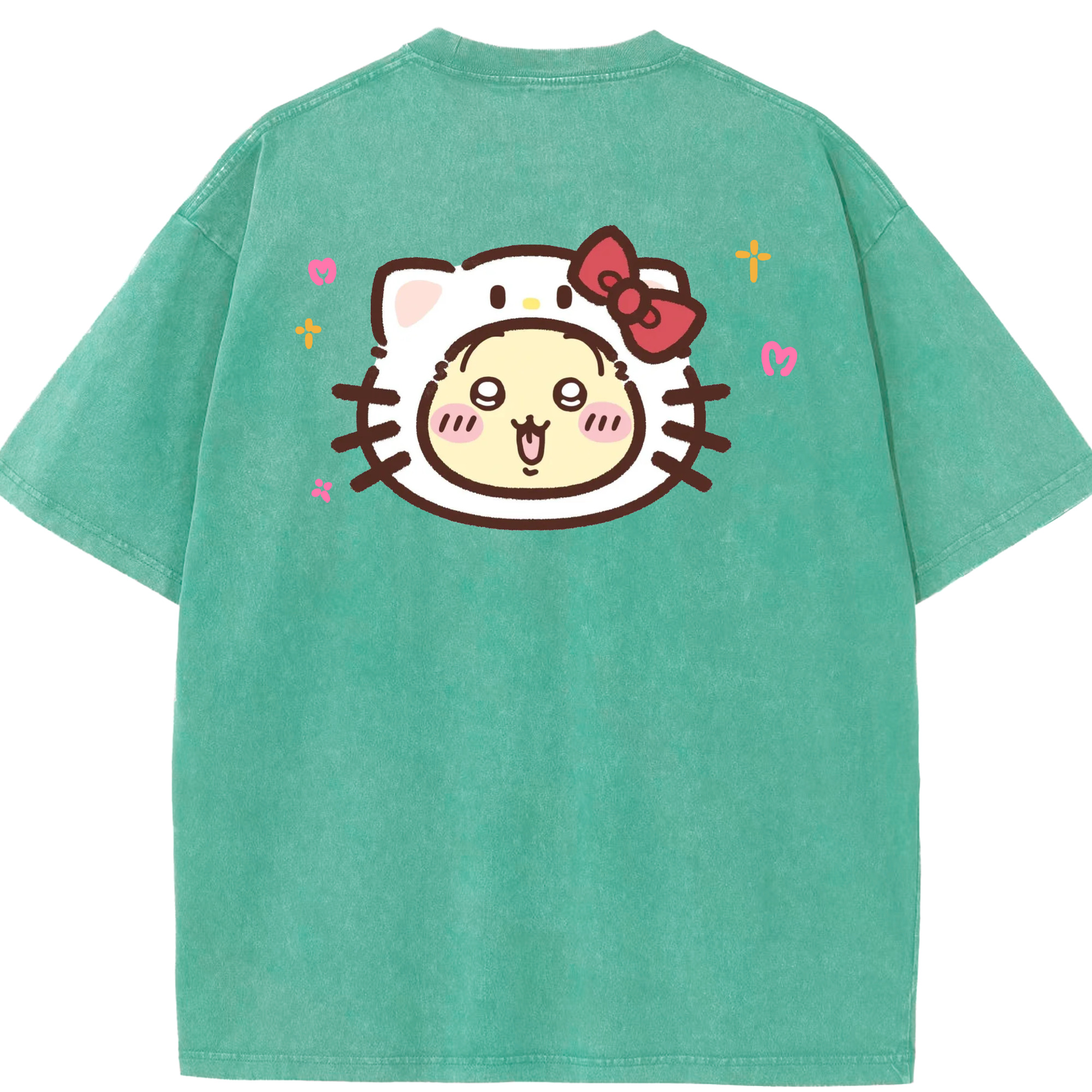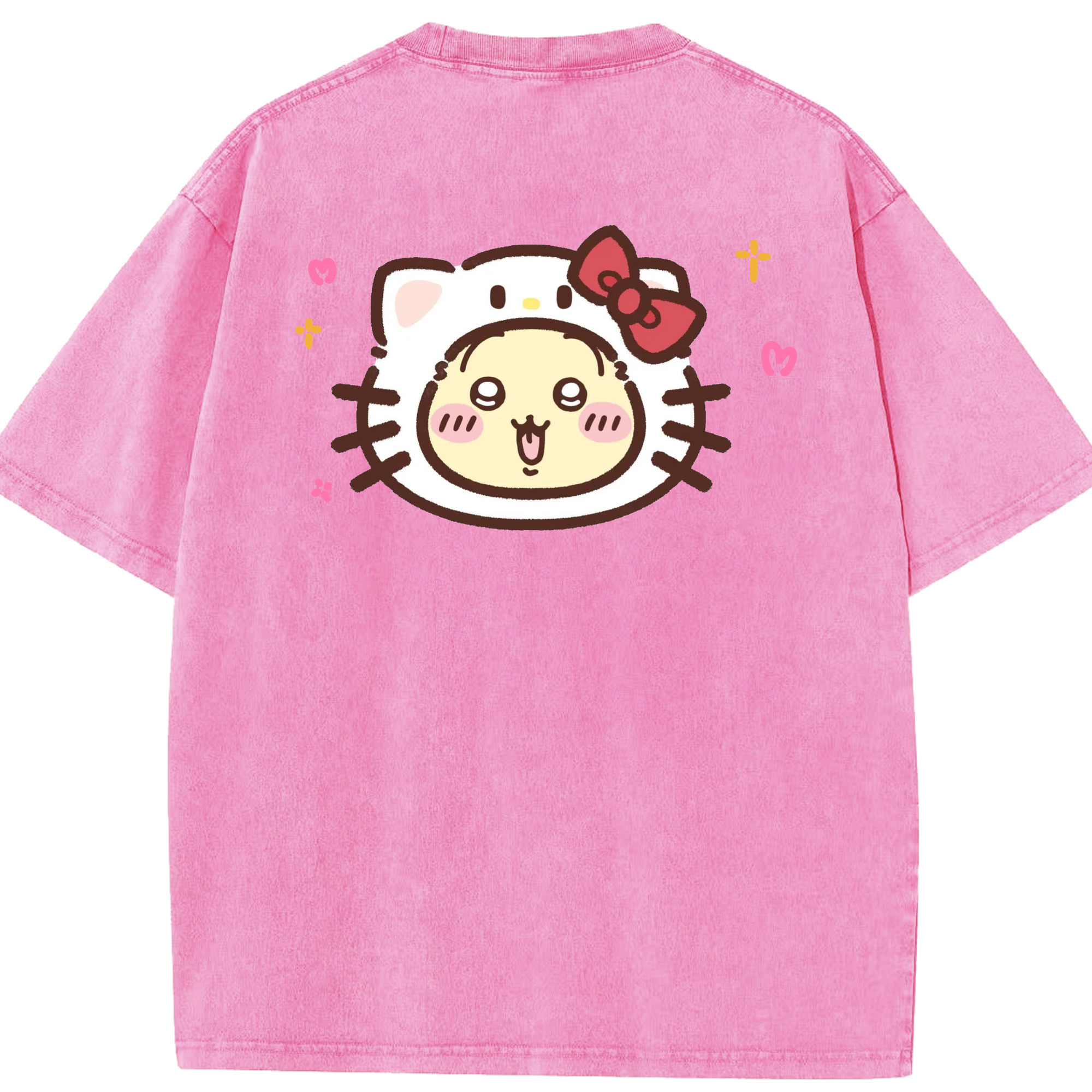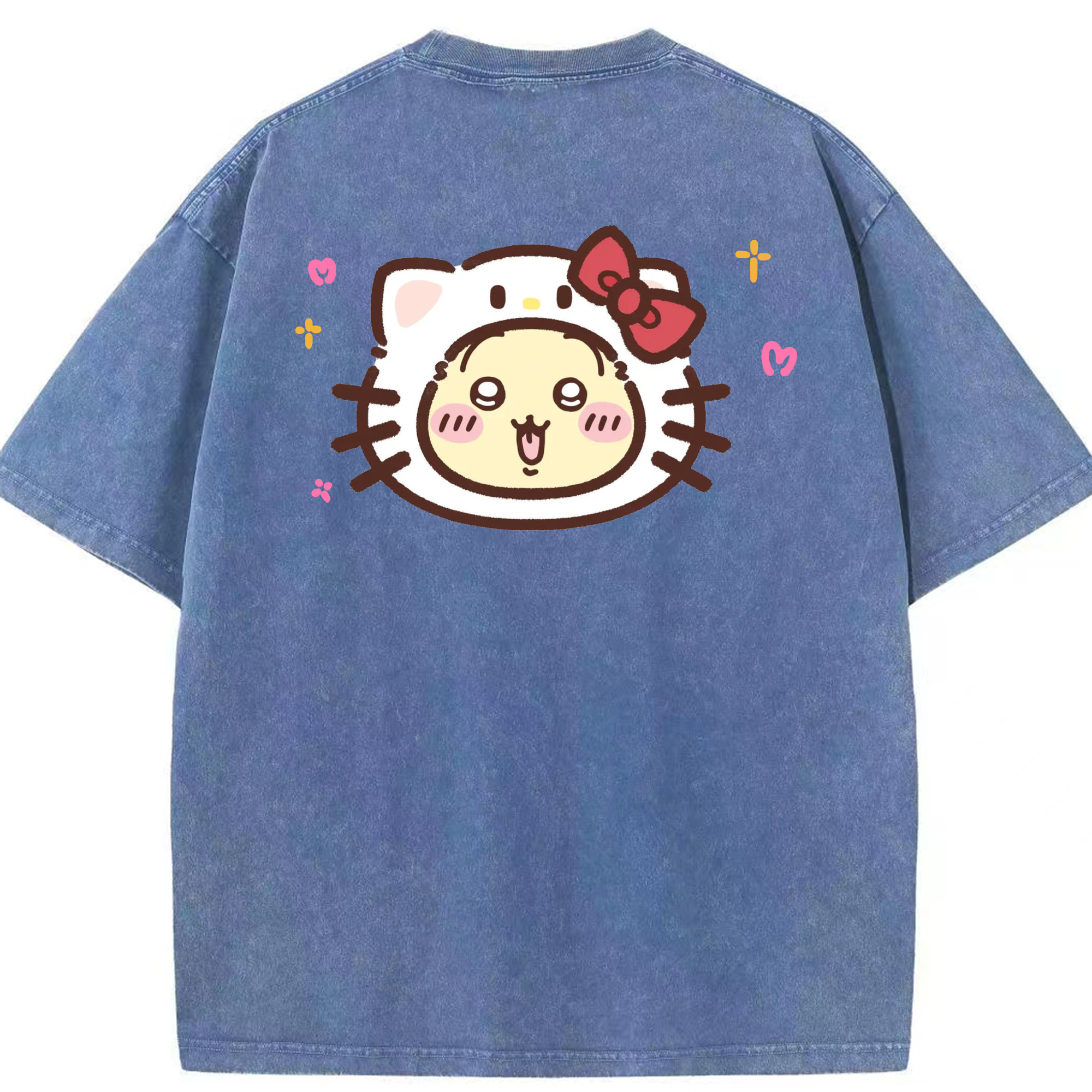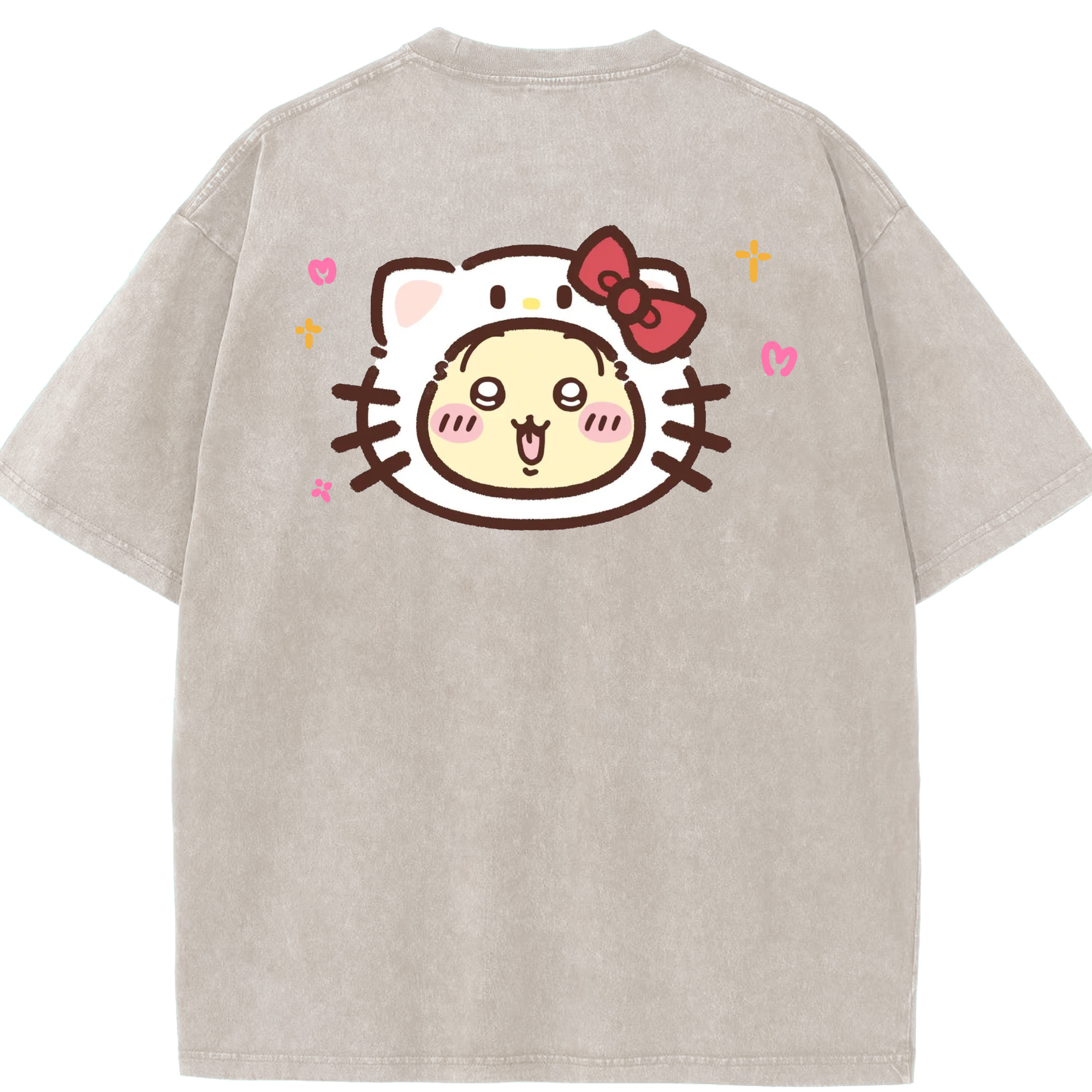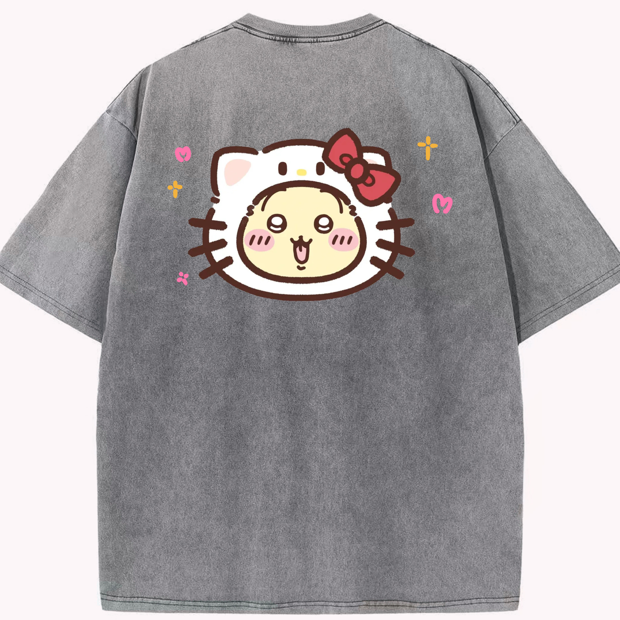 ハローキティ&ちいかわ - 綿100% ヴィンテージ風 半袖Tシャツ ・ 背面プリント ・ 柔らか肌触り ・ 通気性 快適 ・ スポーツ カジュアル 外出用
