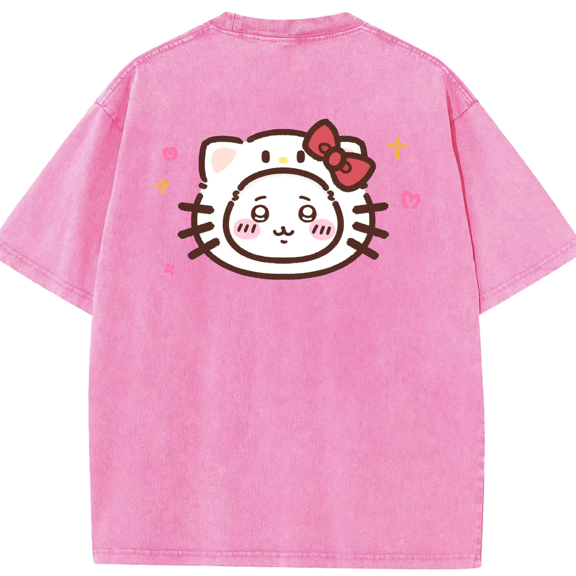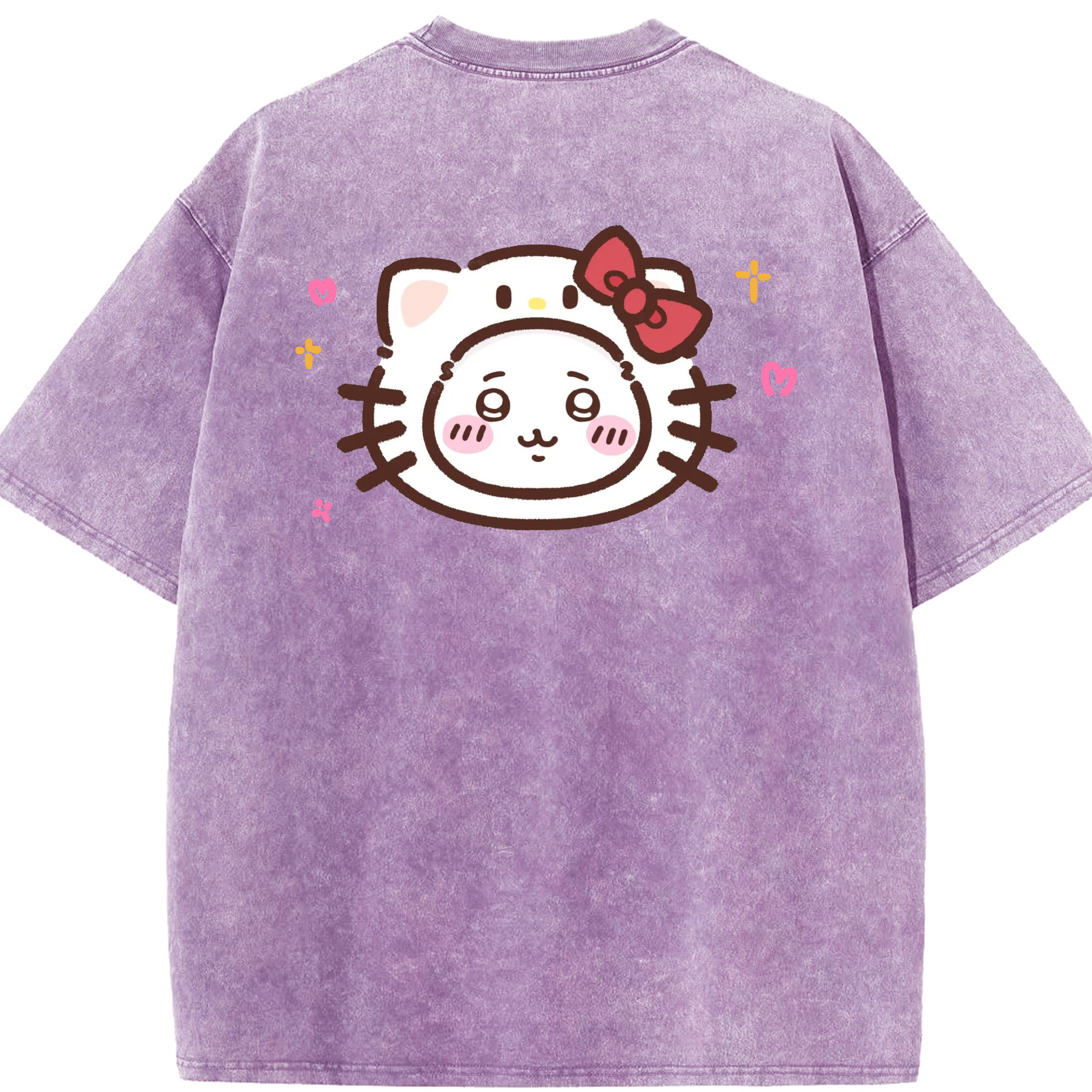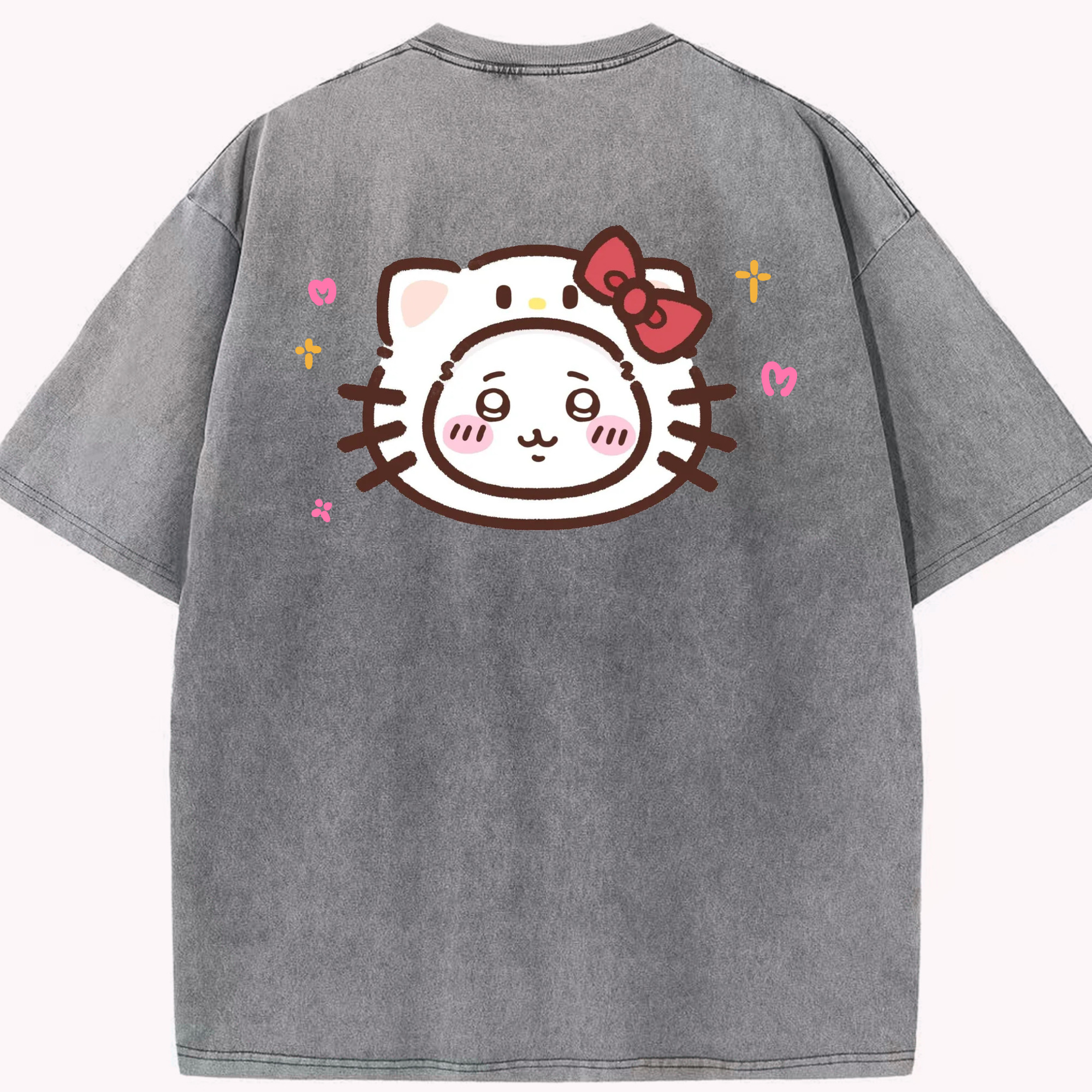 ハローキティ&ちいかわ - 綿100% ヴィンテージ風 半袖Tシャツ ・ フロントプリント ・ 柔らか肌触り ・ 通気性 快適 ・ スポーツ カジュアル 外出用