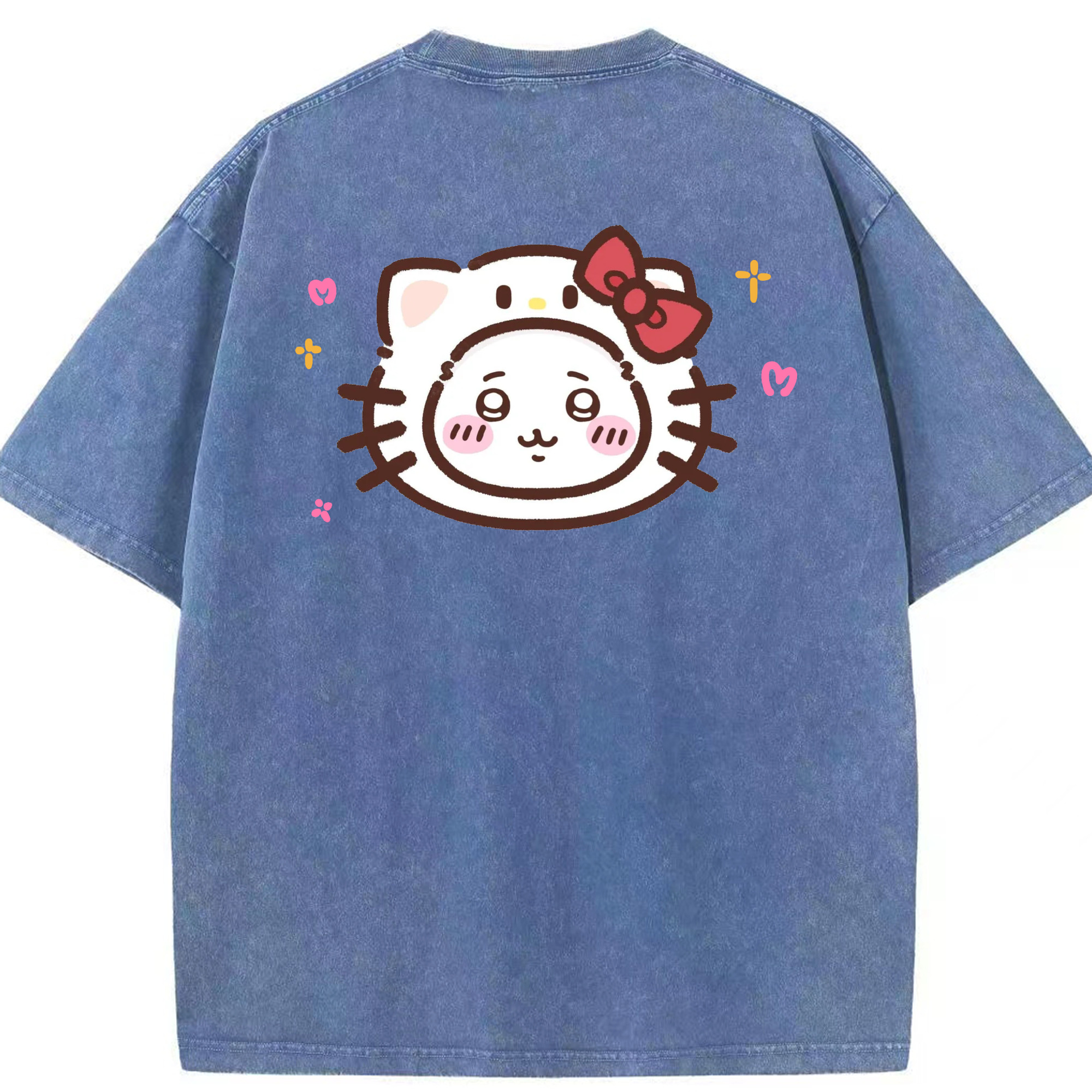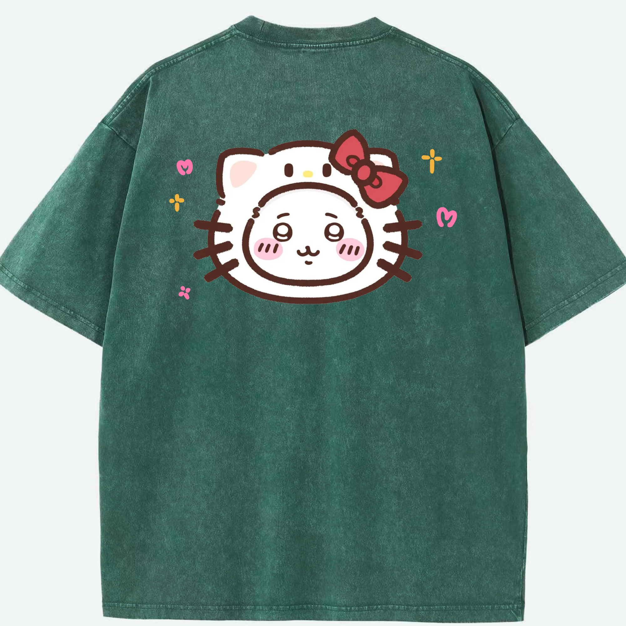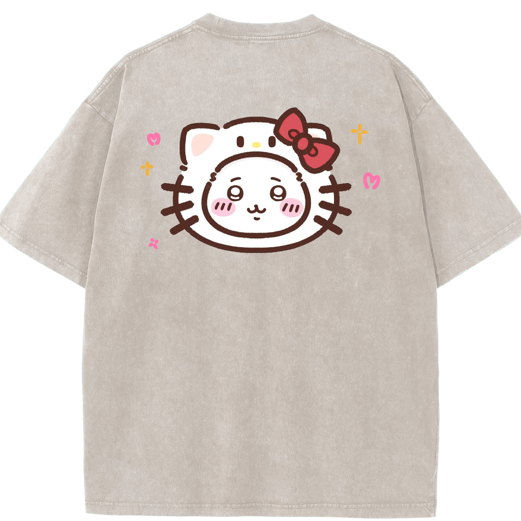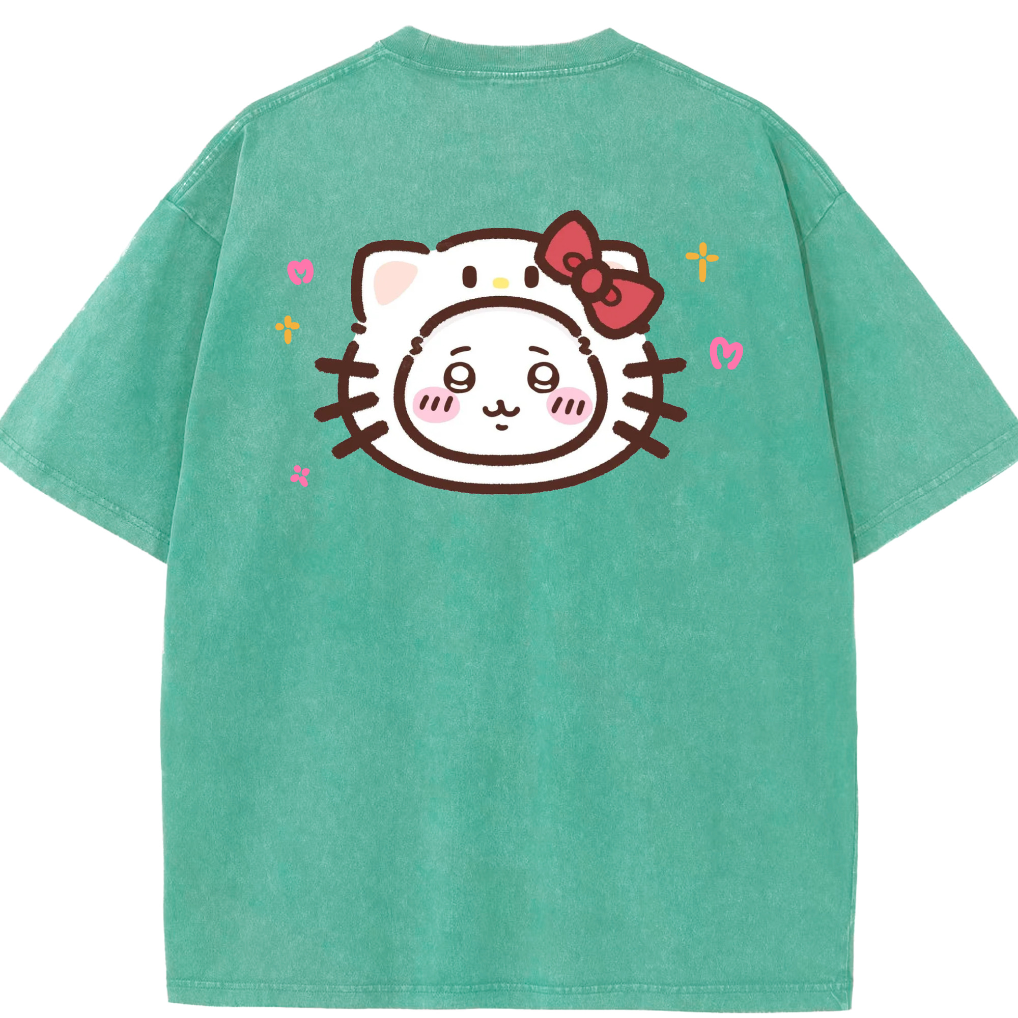 ハローキティ&ちいかわ - 綿100% ヴィンテージ風 半袖Tシャツ ・ フロントプリント ・ 柔らか肌触り ・ 通気性 快適 ・ スポーツ カジュアル 外出用