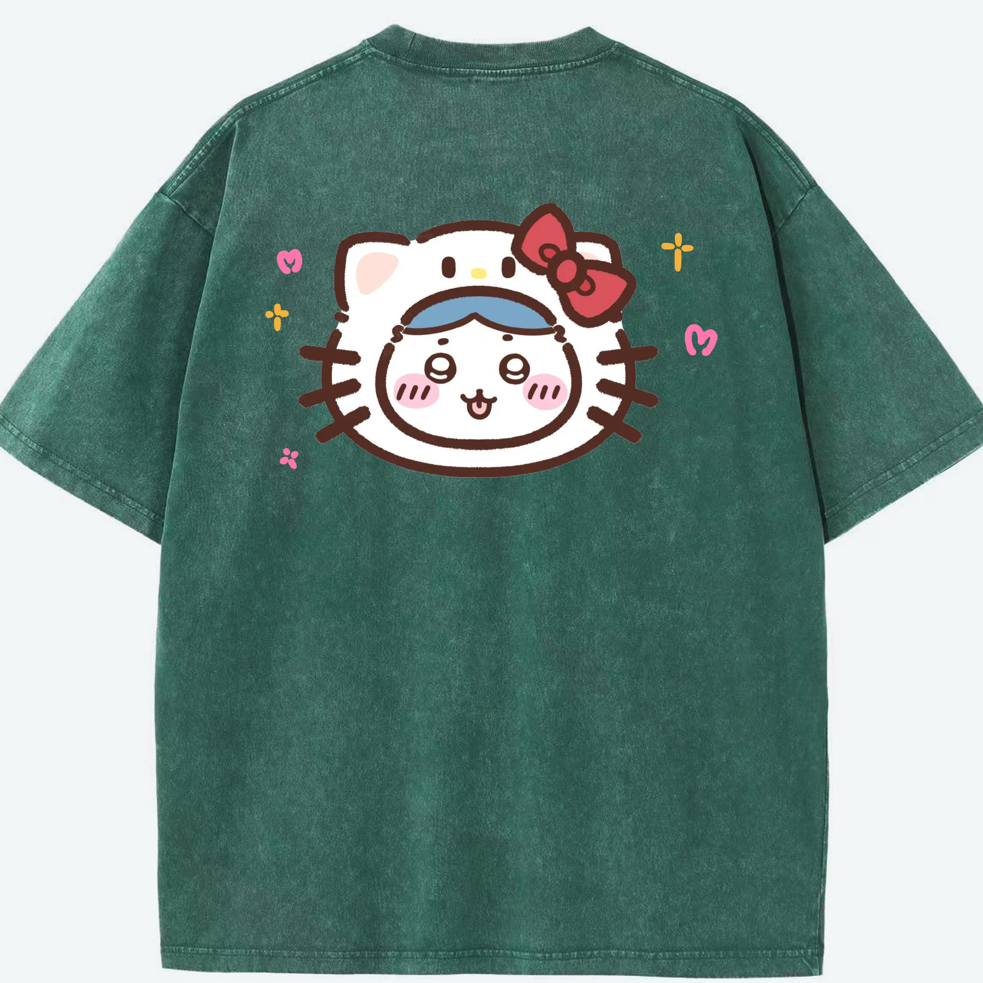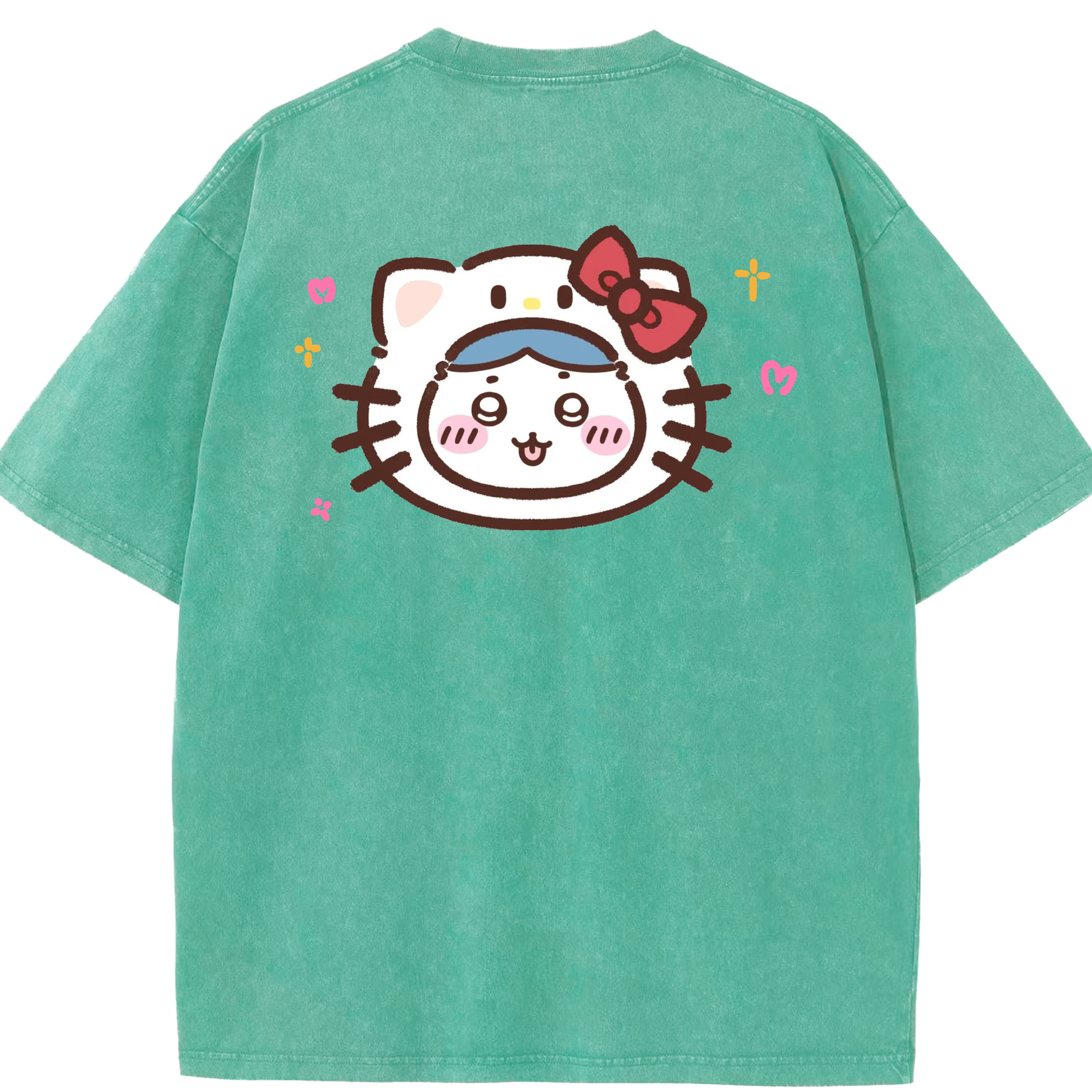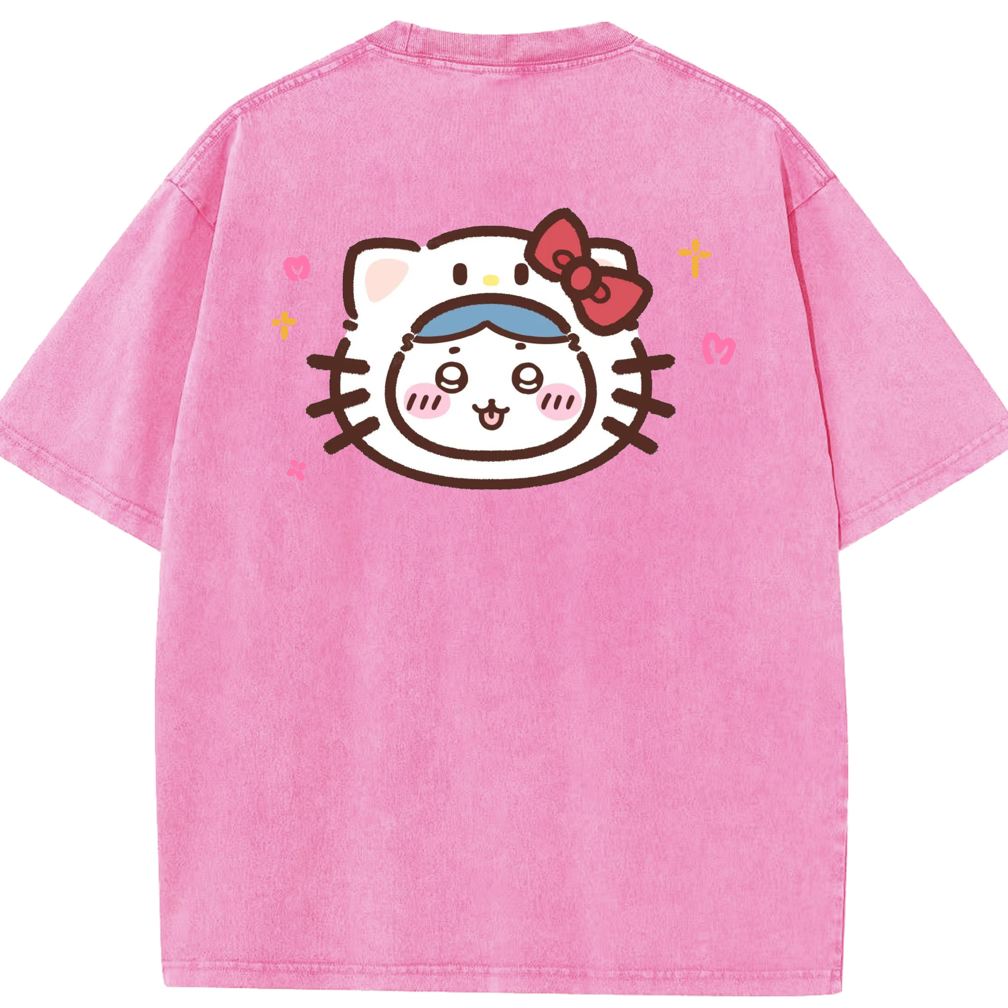 ハローキティ&ちいかわ - 綿100% ヴィンテージ風 半袖Tシャツ ・ 背面プリント ・ 柔らか肌触り ・ 通気性 快適 ・ スポーツ カジュアル 外出用