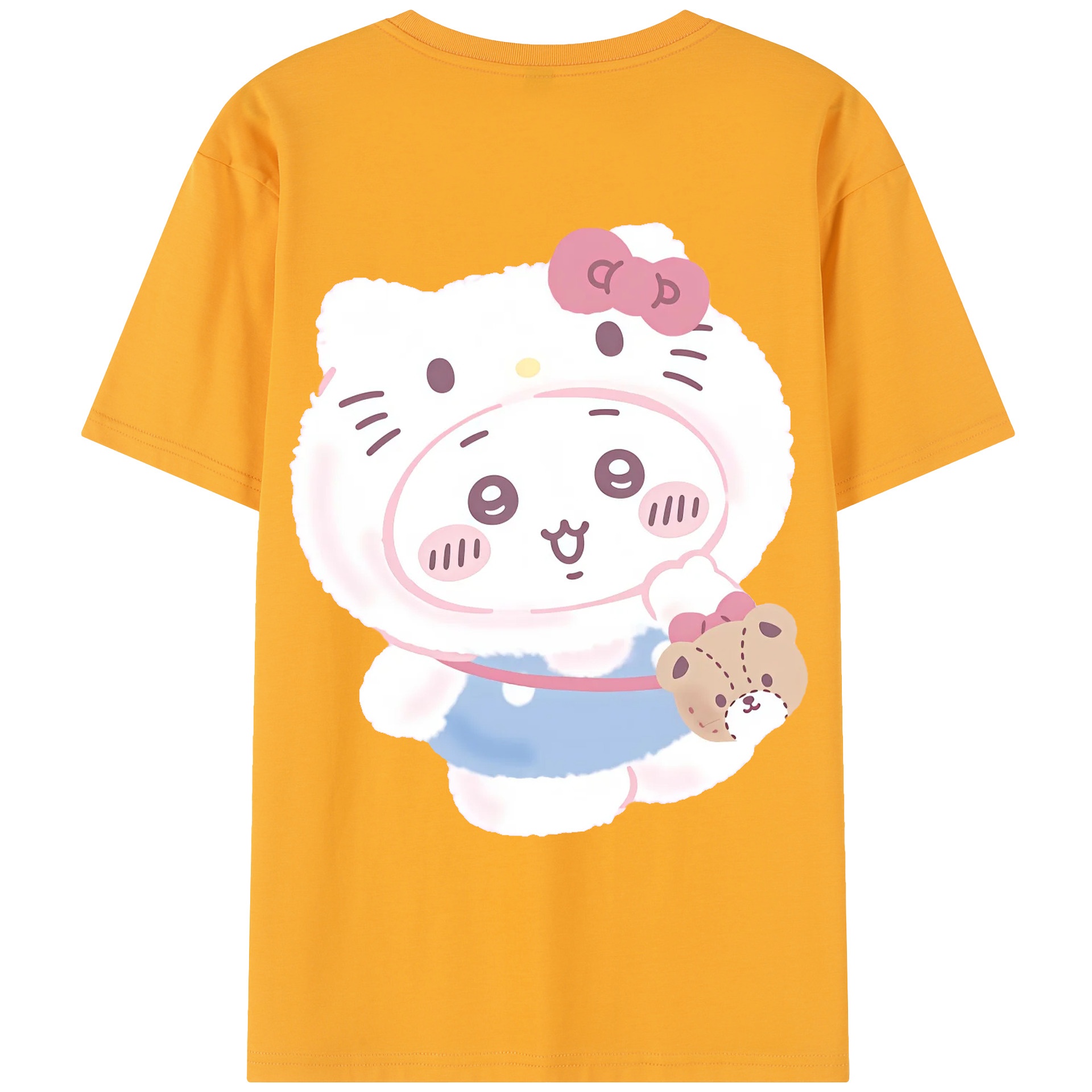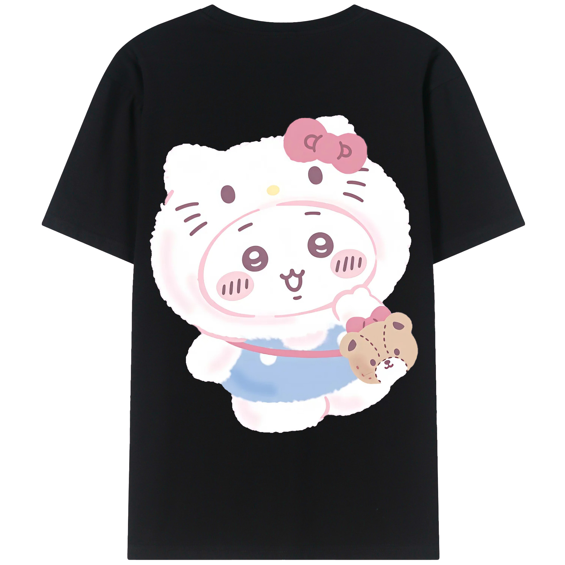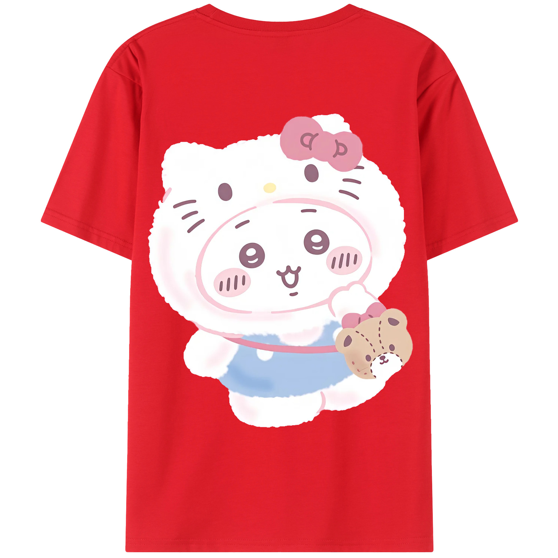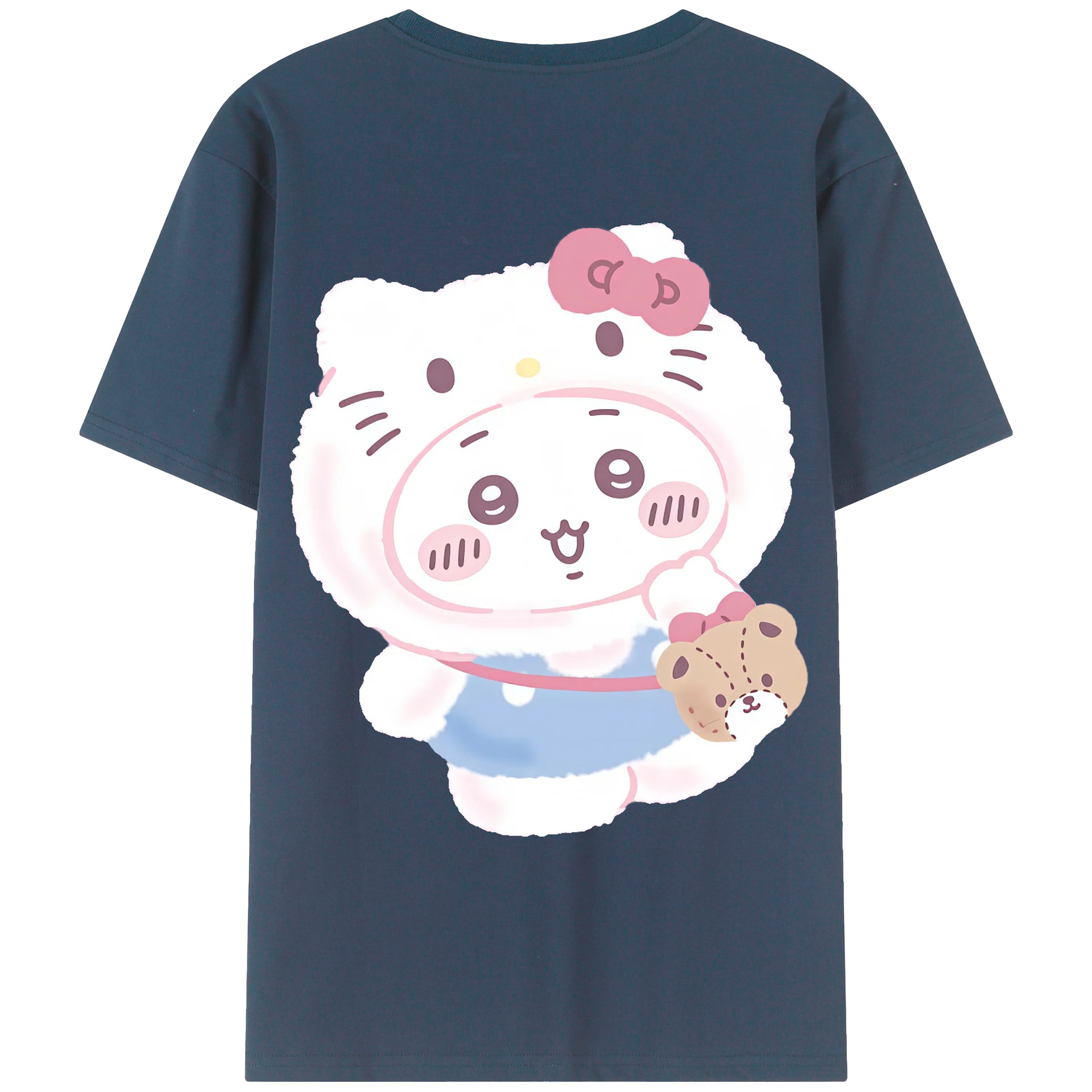ハローキティ&ちいかわ - 綿100% ヴィンテージ風 半袖Tシャツ ・ 背面プリント ・ 柔らか肌触り ・ 通気性 快適 ・ スポーツ カジュアル 外出用
