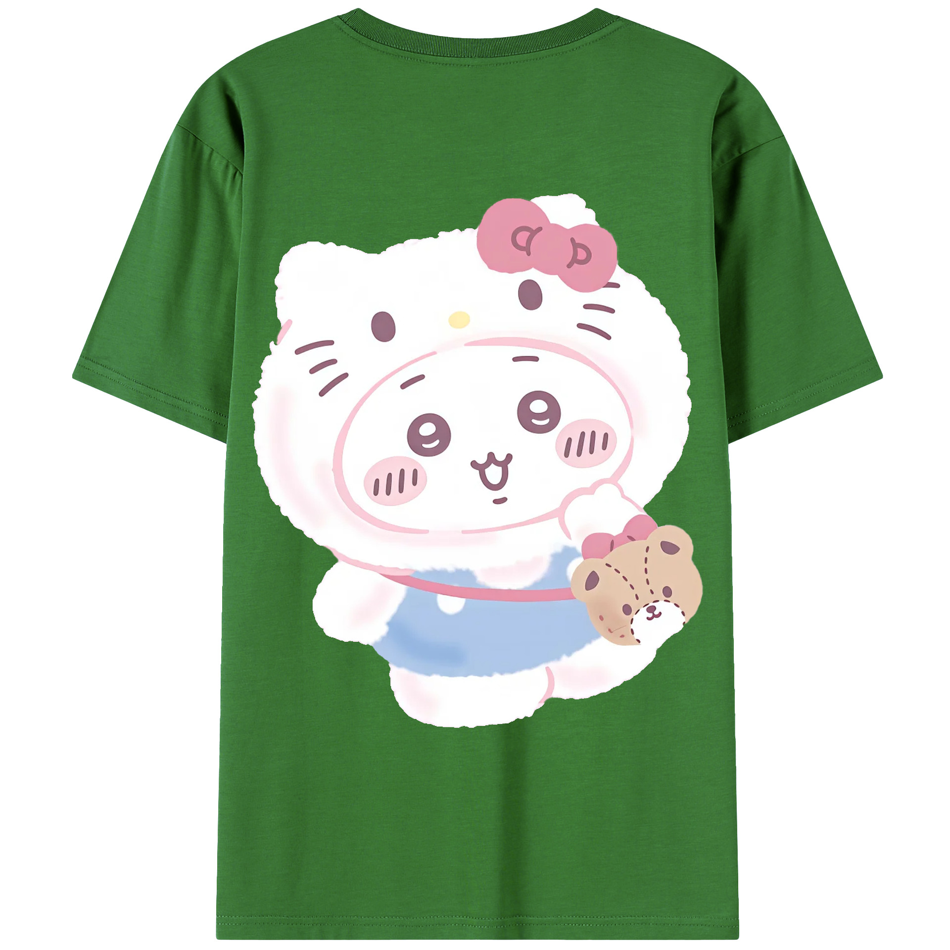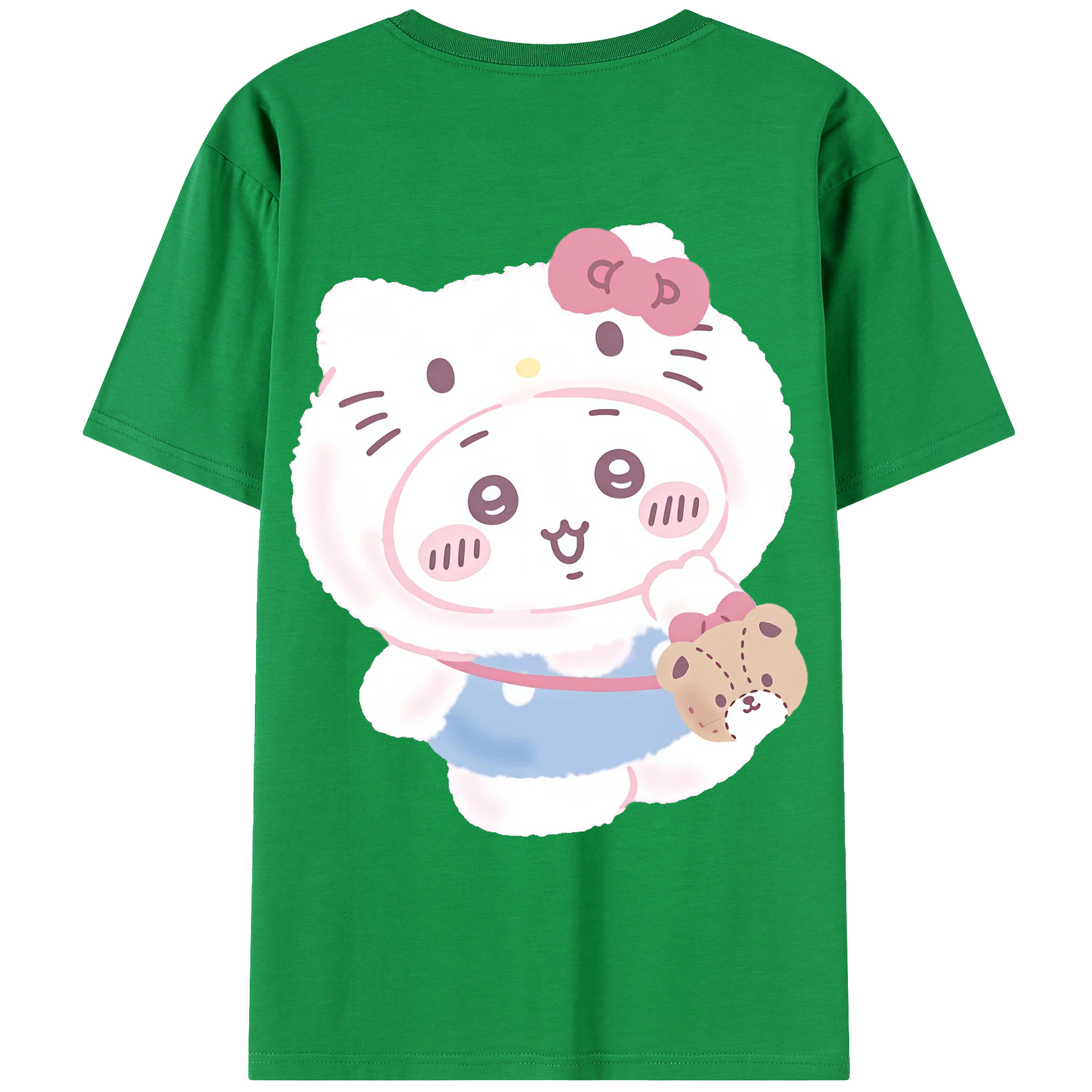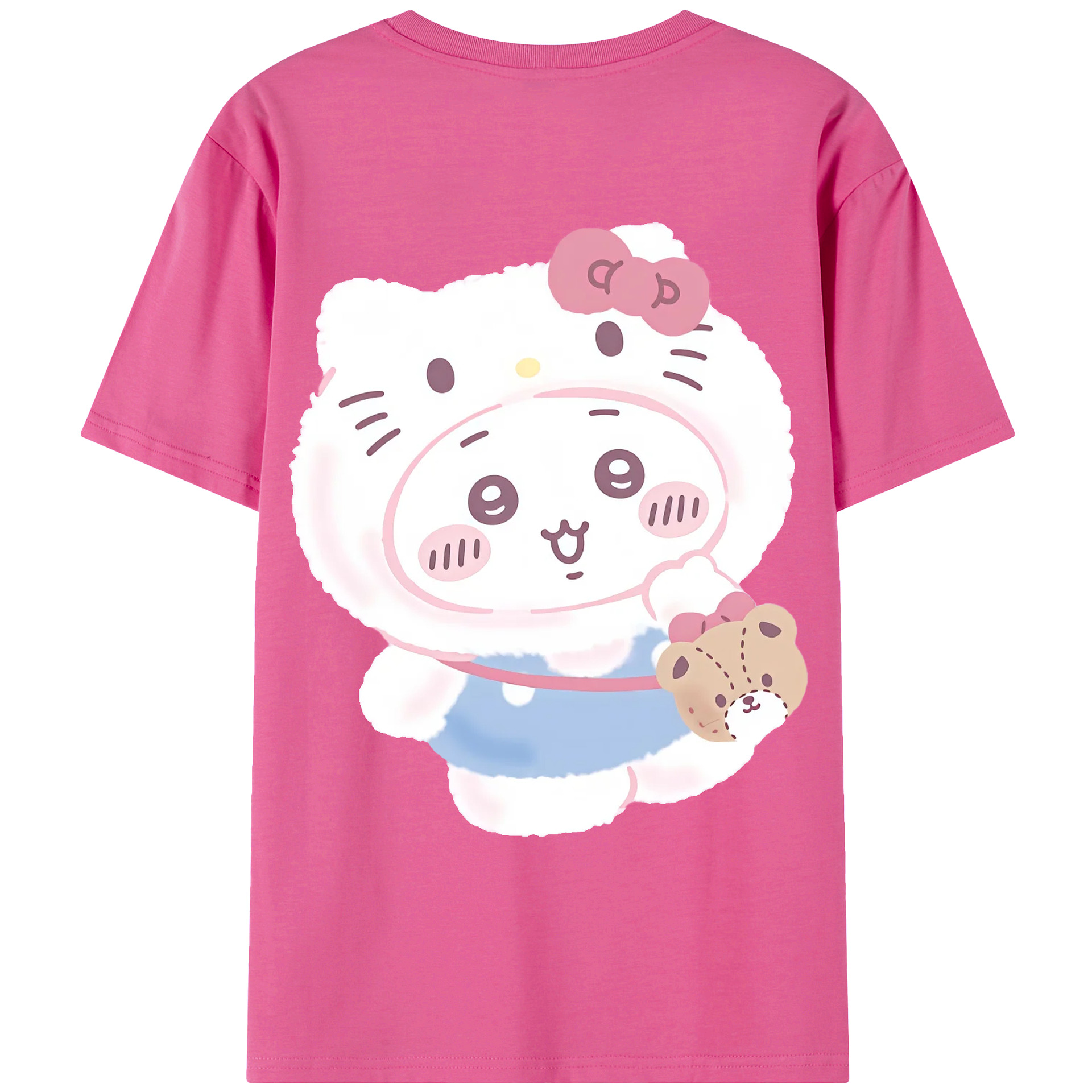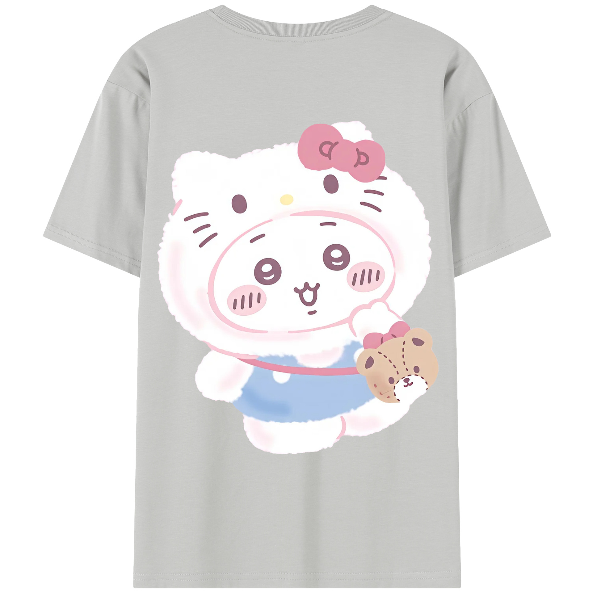 ハローキティ&ちいかわ - 綿100% ヴィンテージ風 半袖Tシャツ ・ 背面プリント ・ 柔らか肌触り ・ 通気性 快適 ・ スポーツ カジュアル 外出用