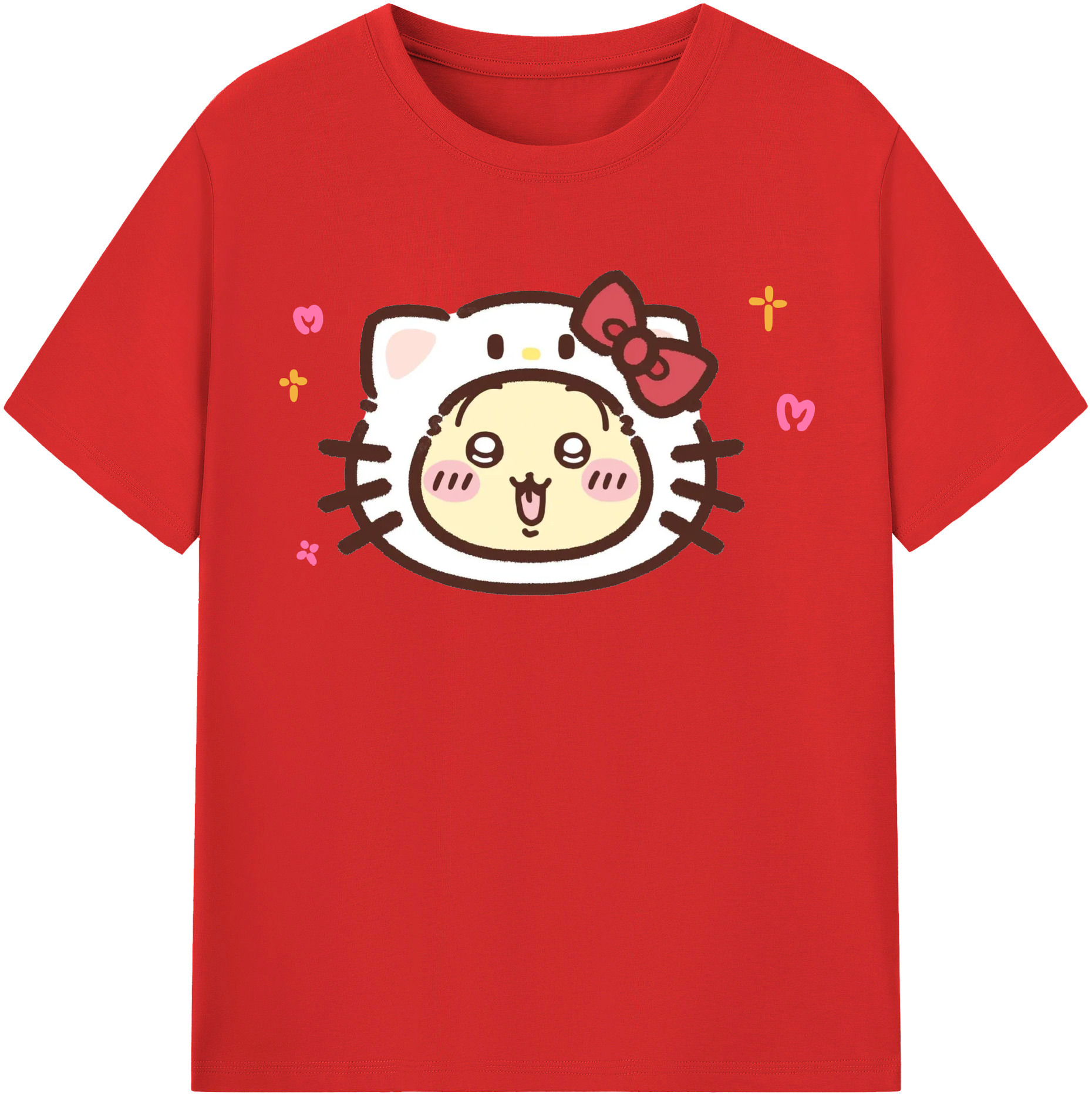 ハローキティ&ちいかわ - 綿100% キッズTシャツ ・ フロントプリント ・ 快適 通気性 ・ スポーツ カジュアル 散歩用