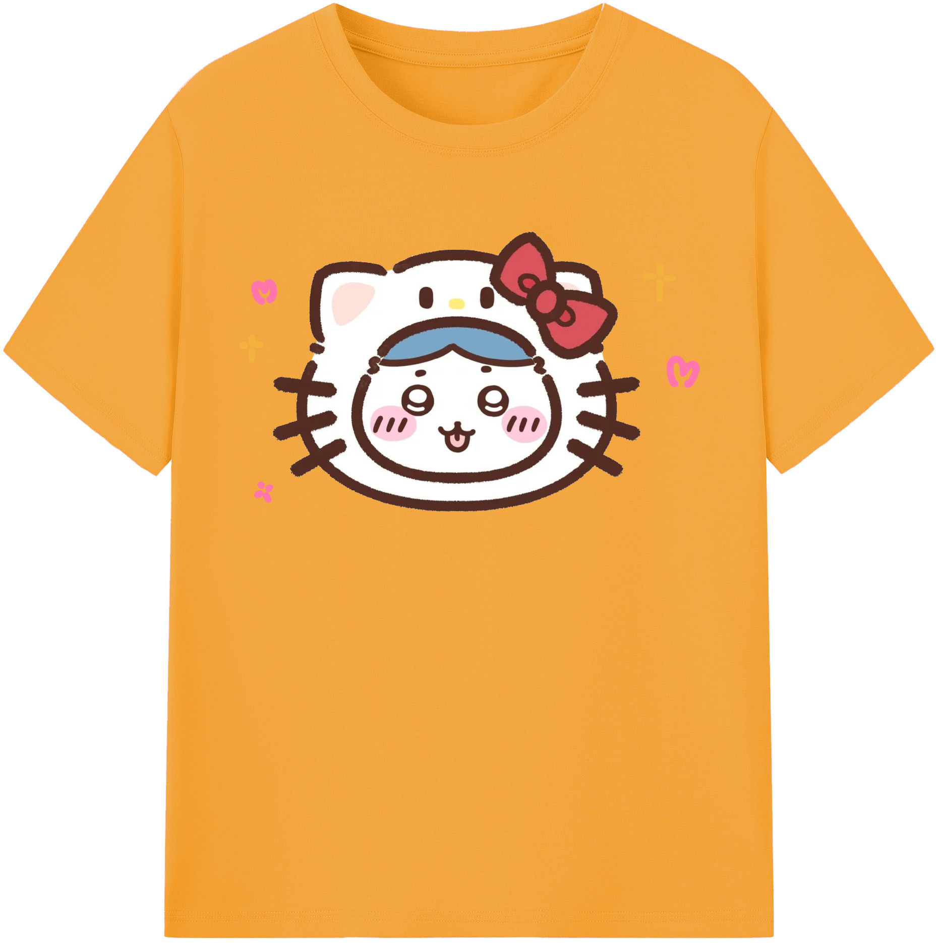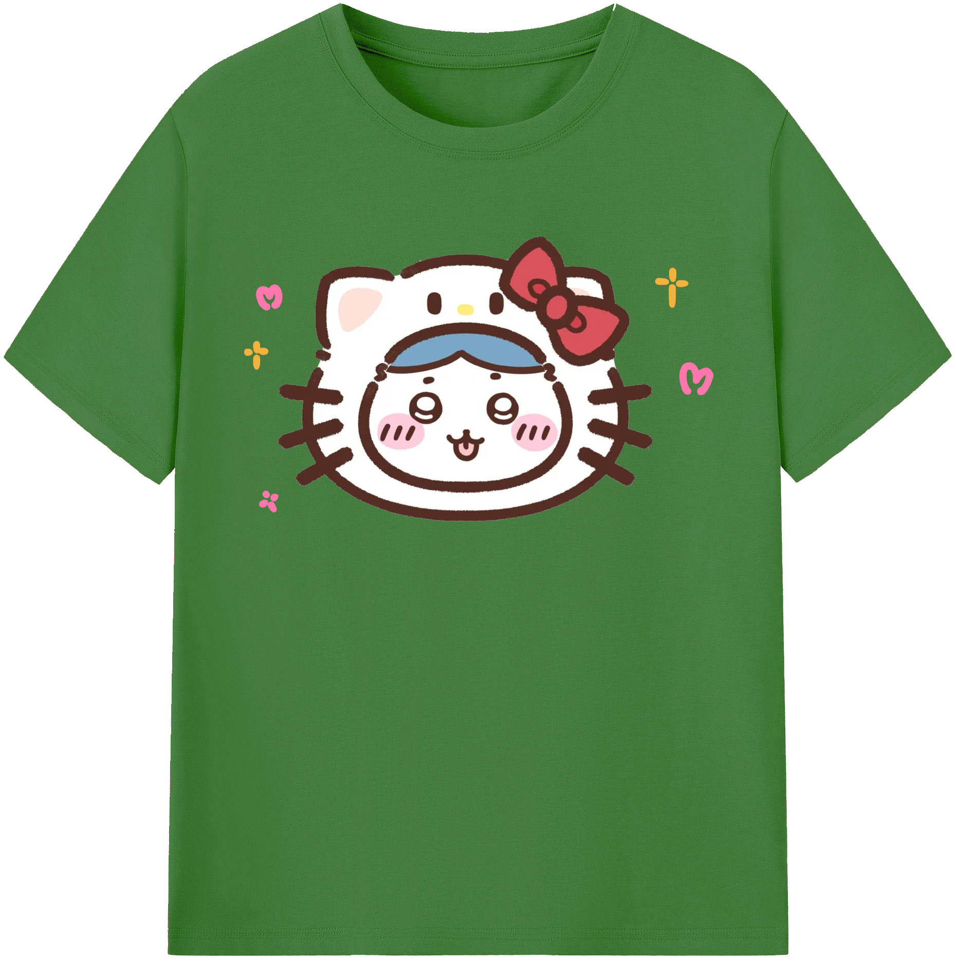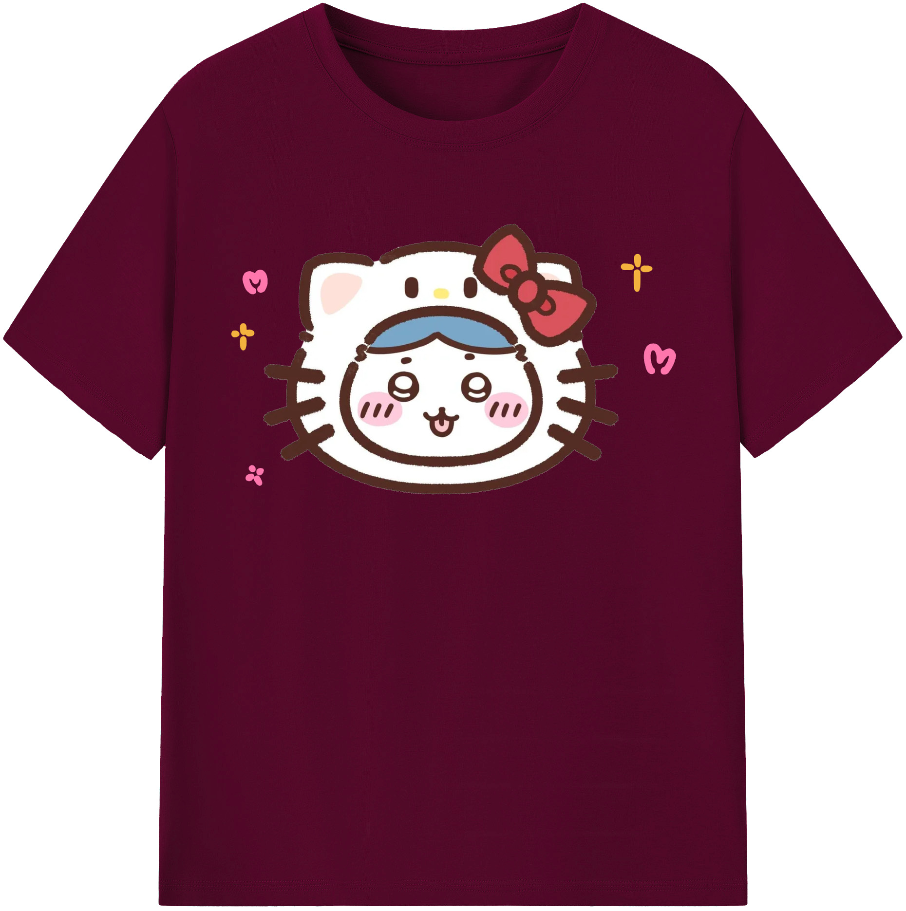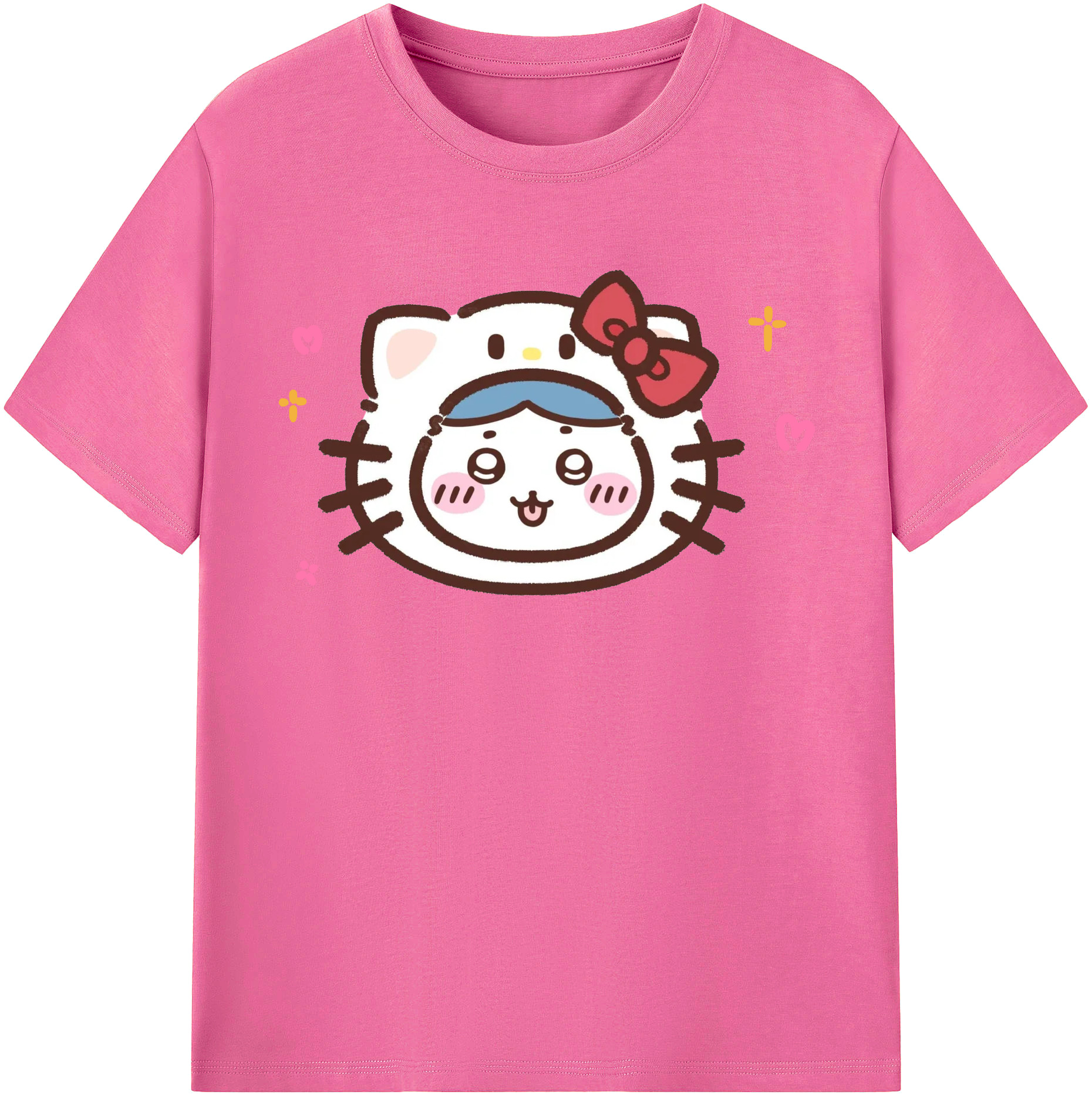 ハローキティ&ちいかわ - レディースカジュアルプリントTシャツ ・ 綿100% ・ クルーネック ・ フロントプリント ・ 柔らかく快適 ・ フィットネス カジュアル 旅行用