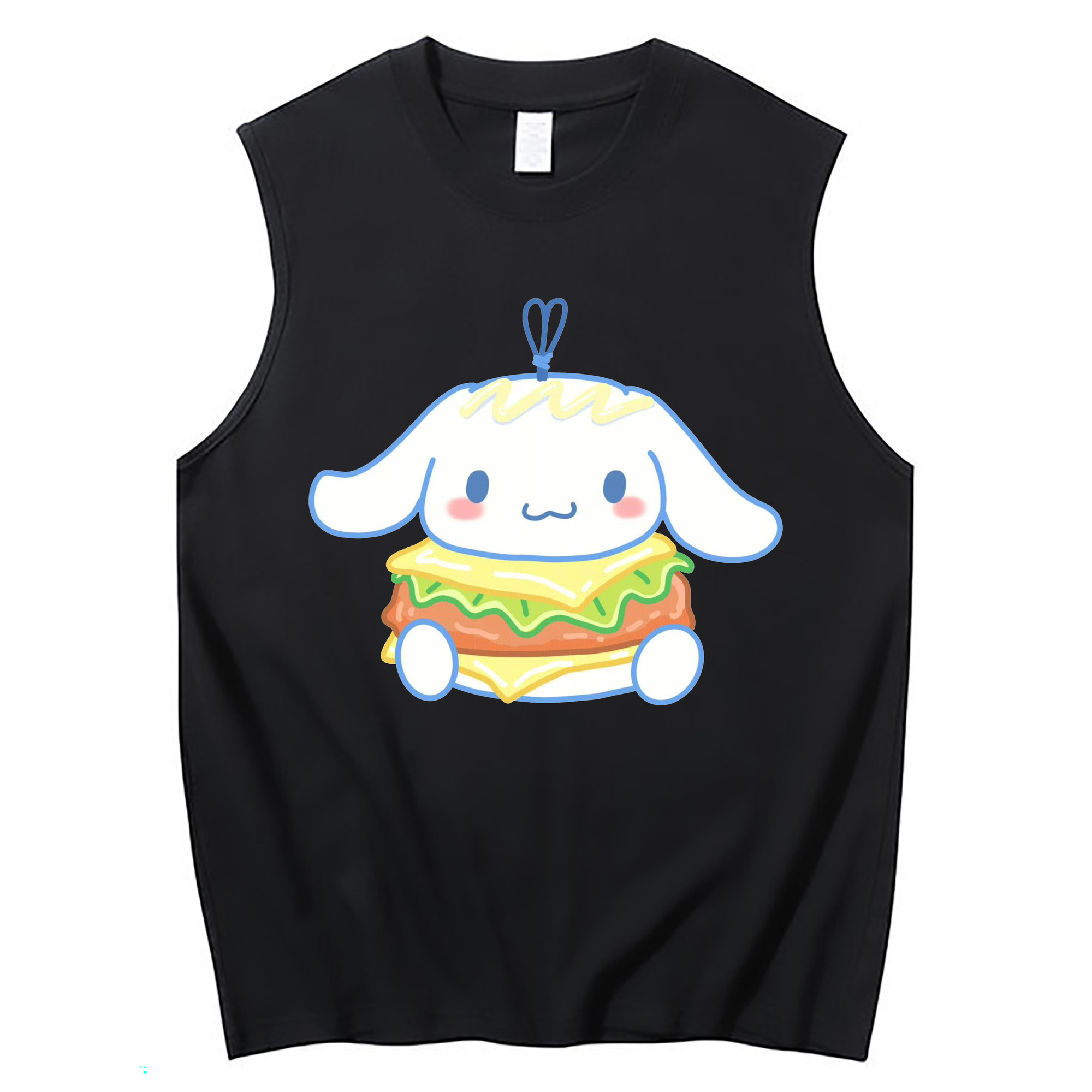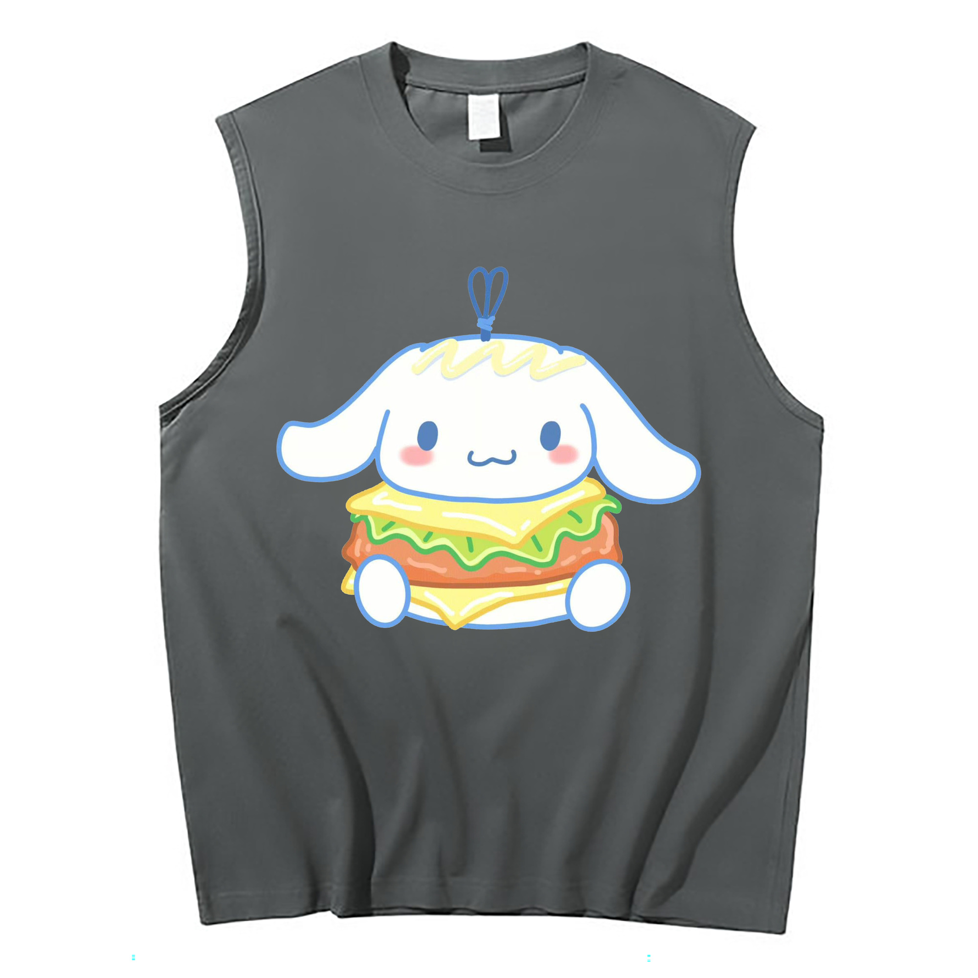 ハンバーガー好きのシナモロール - コットン100% タンクトップ ・ フロントプリント ・ タイトフィット ・ 快適 通気性 ・ スポーツ カジュアル 散歩用