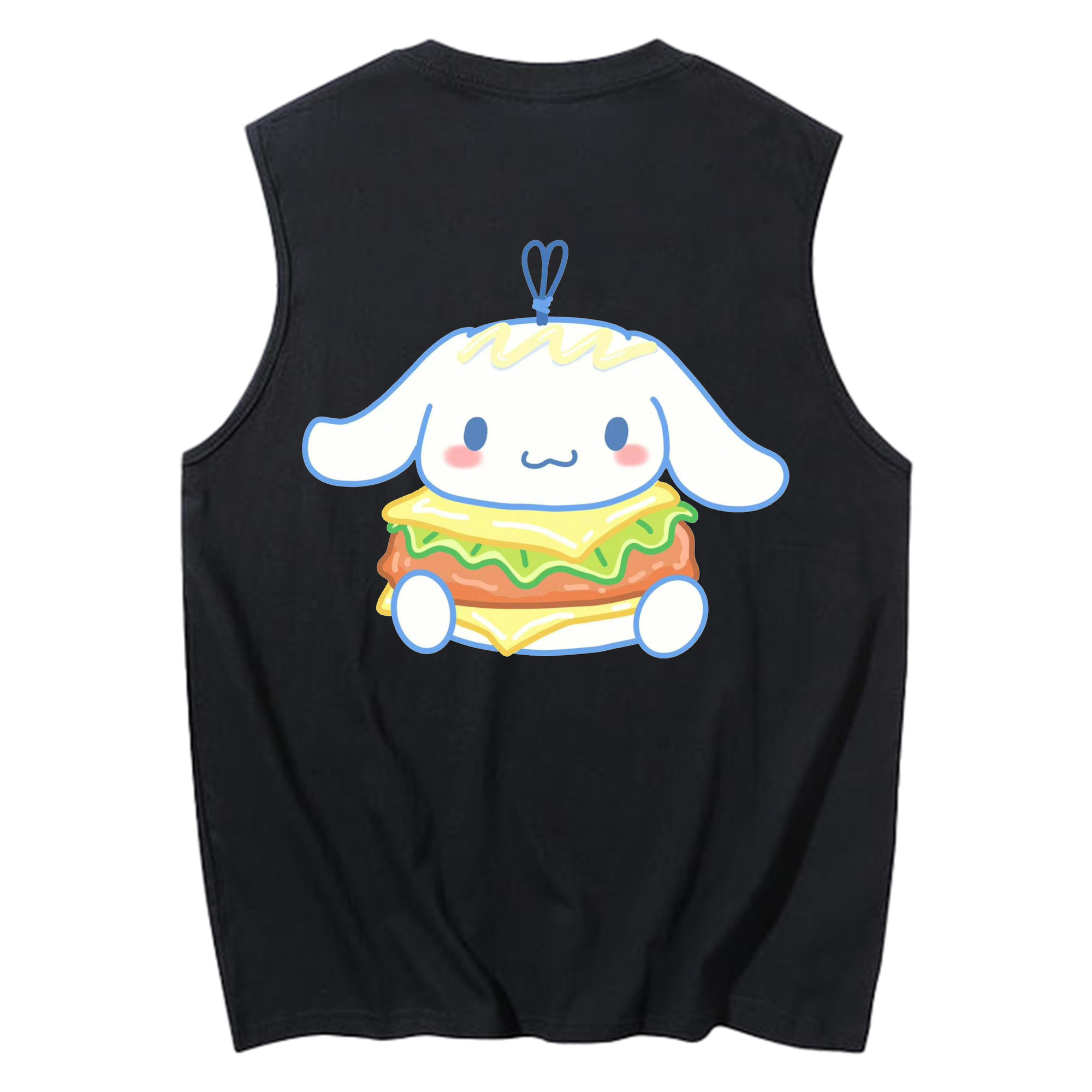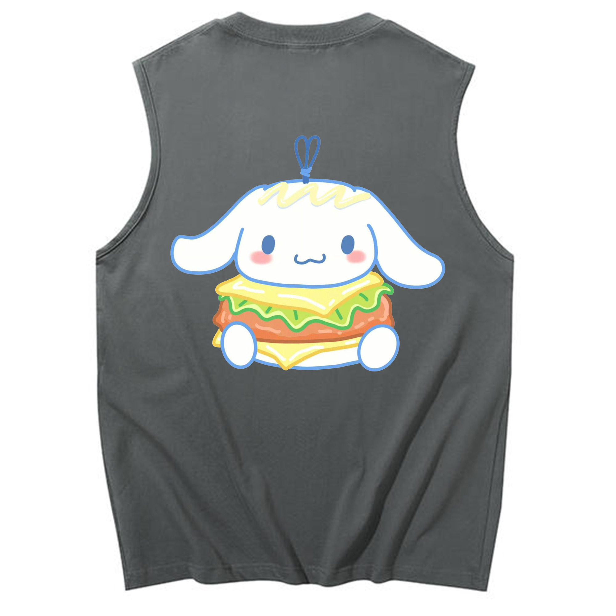 ハンバーガー好きのシナモロール - コットン100% タンクトップ ・ 背面プリント ・ タイトシルエット ・ 快適 通気性 ・ スポーツ カジュアル 散歩用