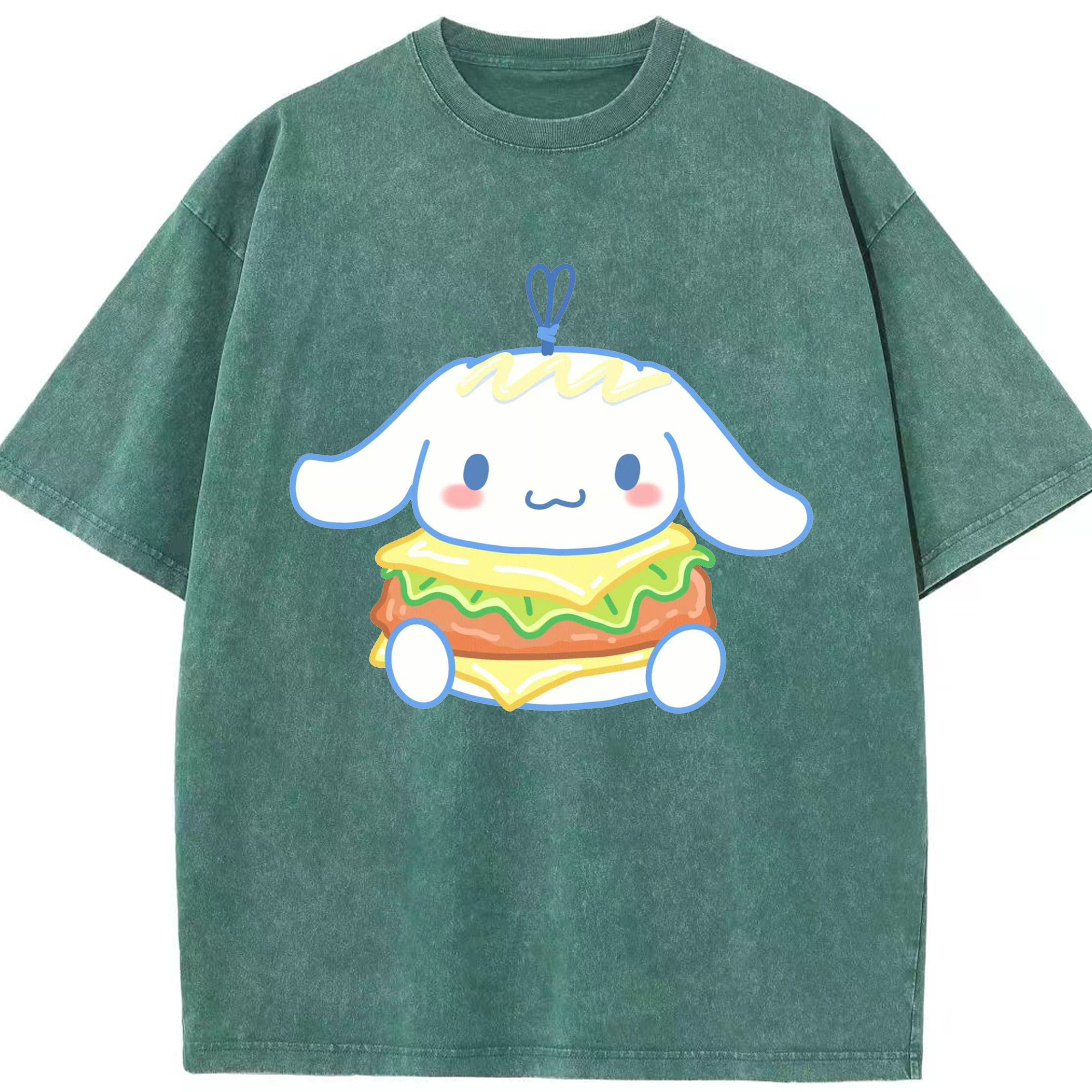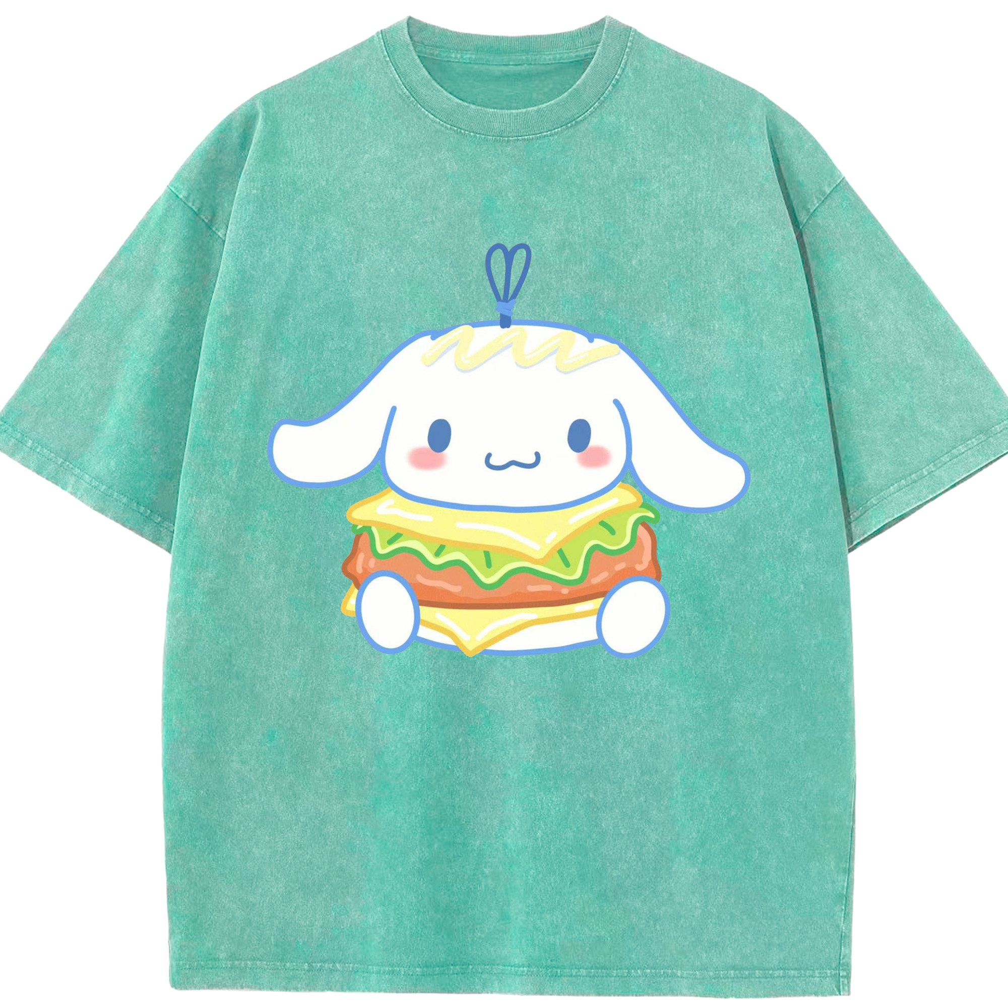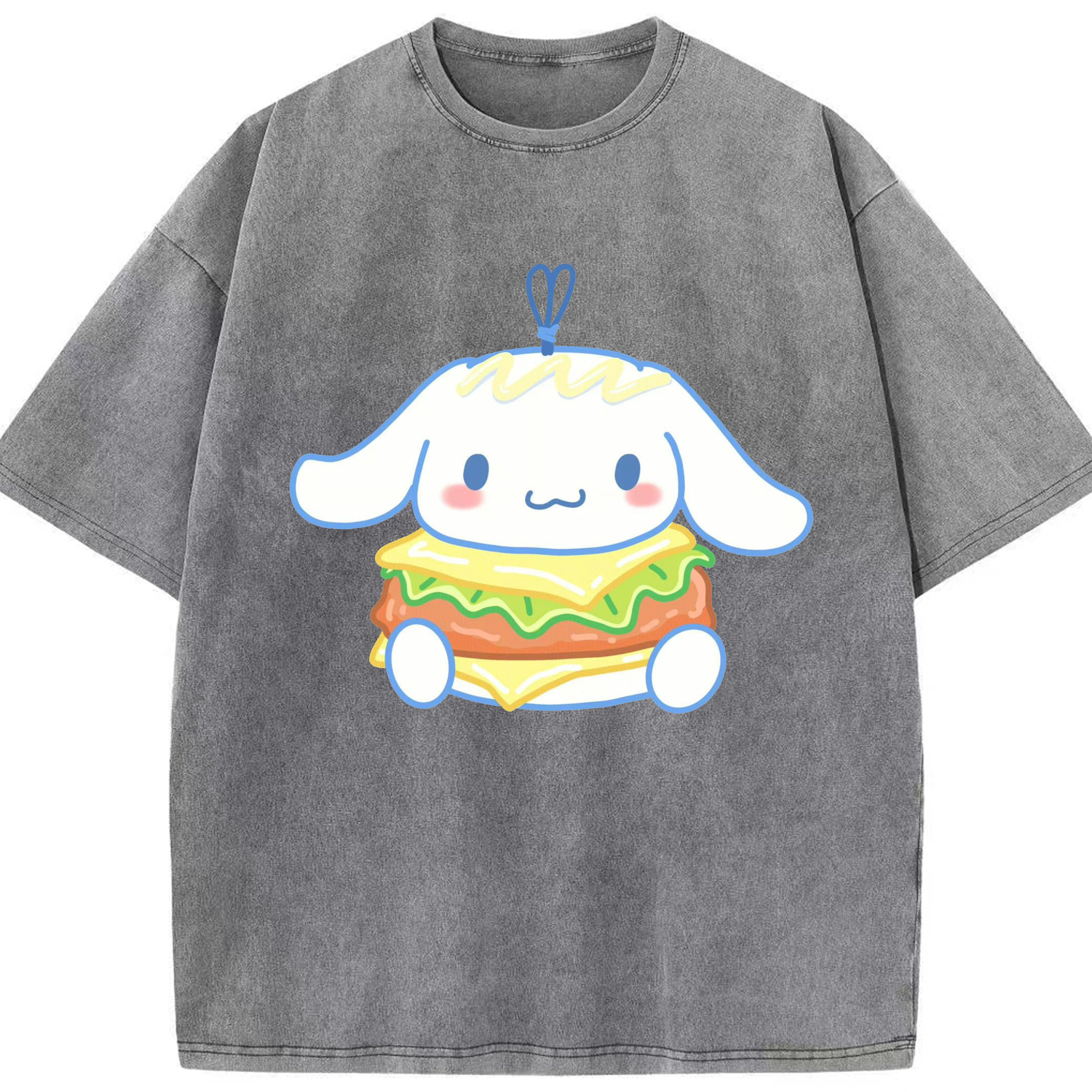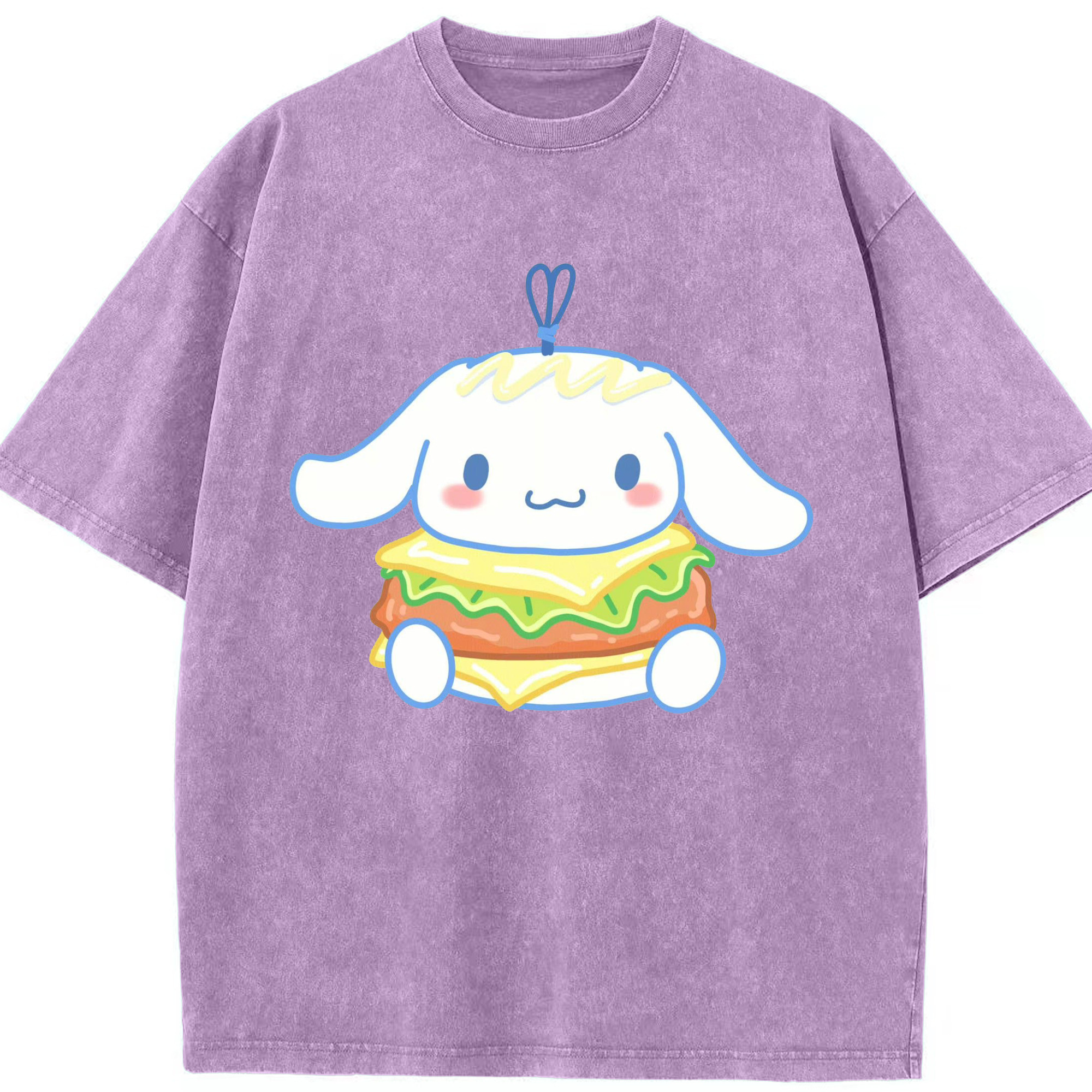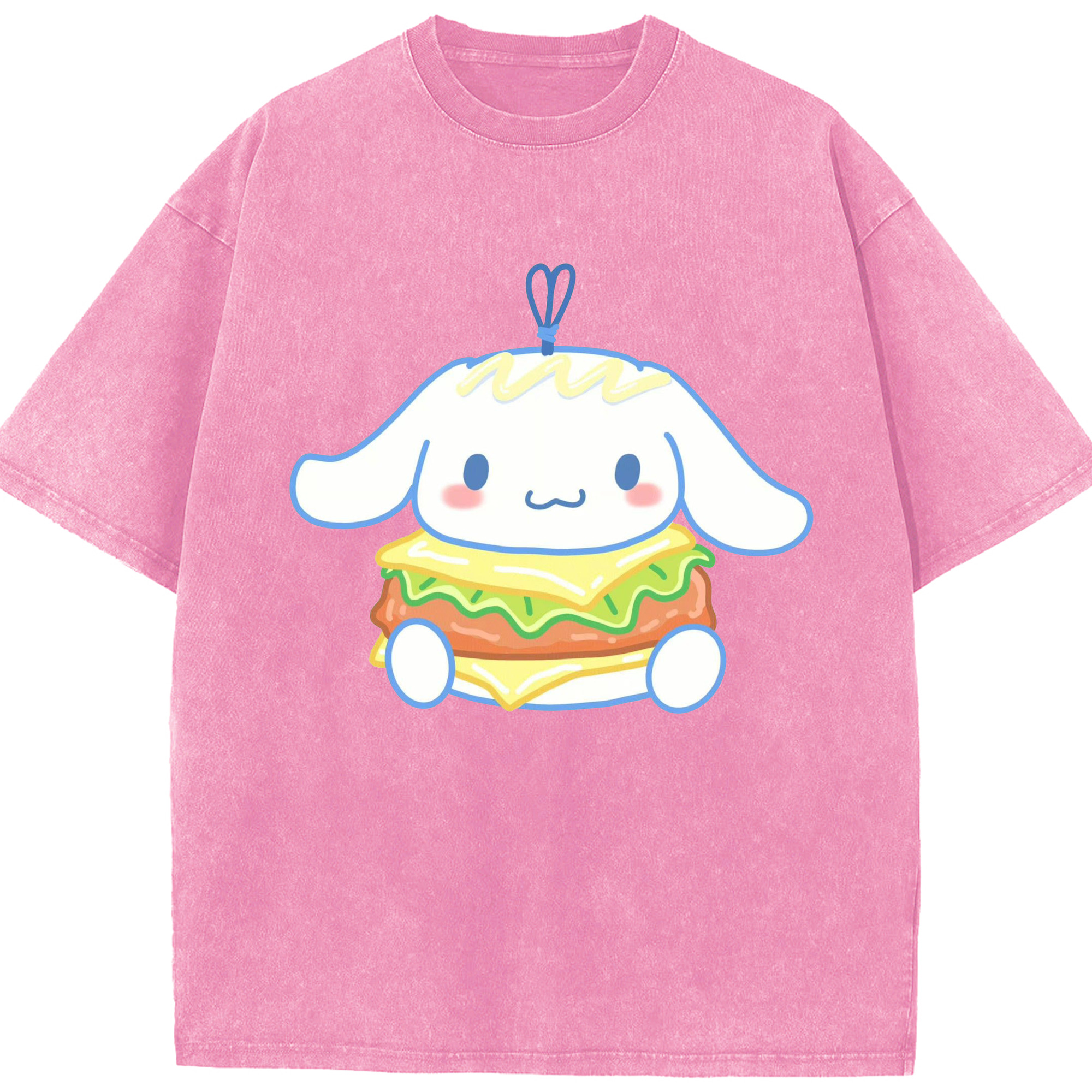 ハンバーガー好きのシナモロール - 綿100% 半袖Tシャツ ・ フロントプリント ・ 快適 通気性 ・ 日常使い 散歩 スポーツ用