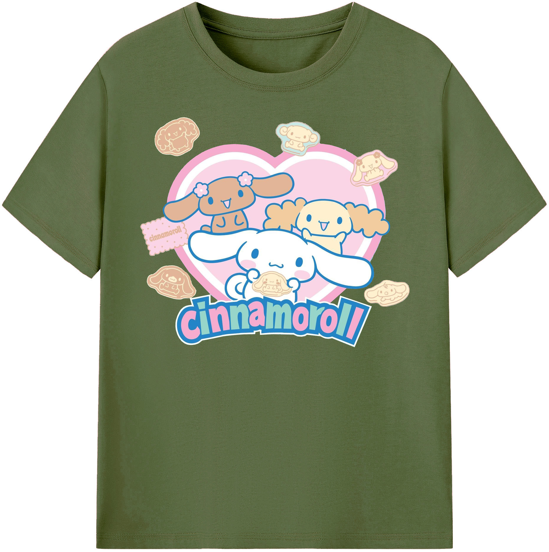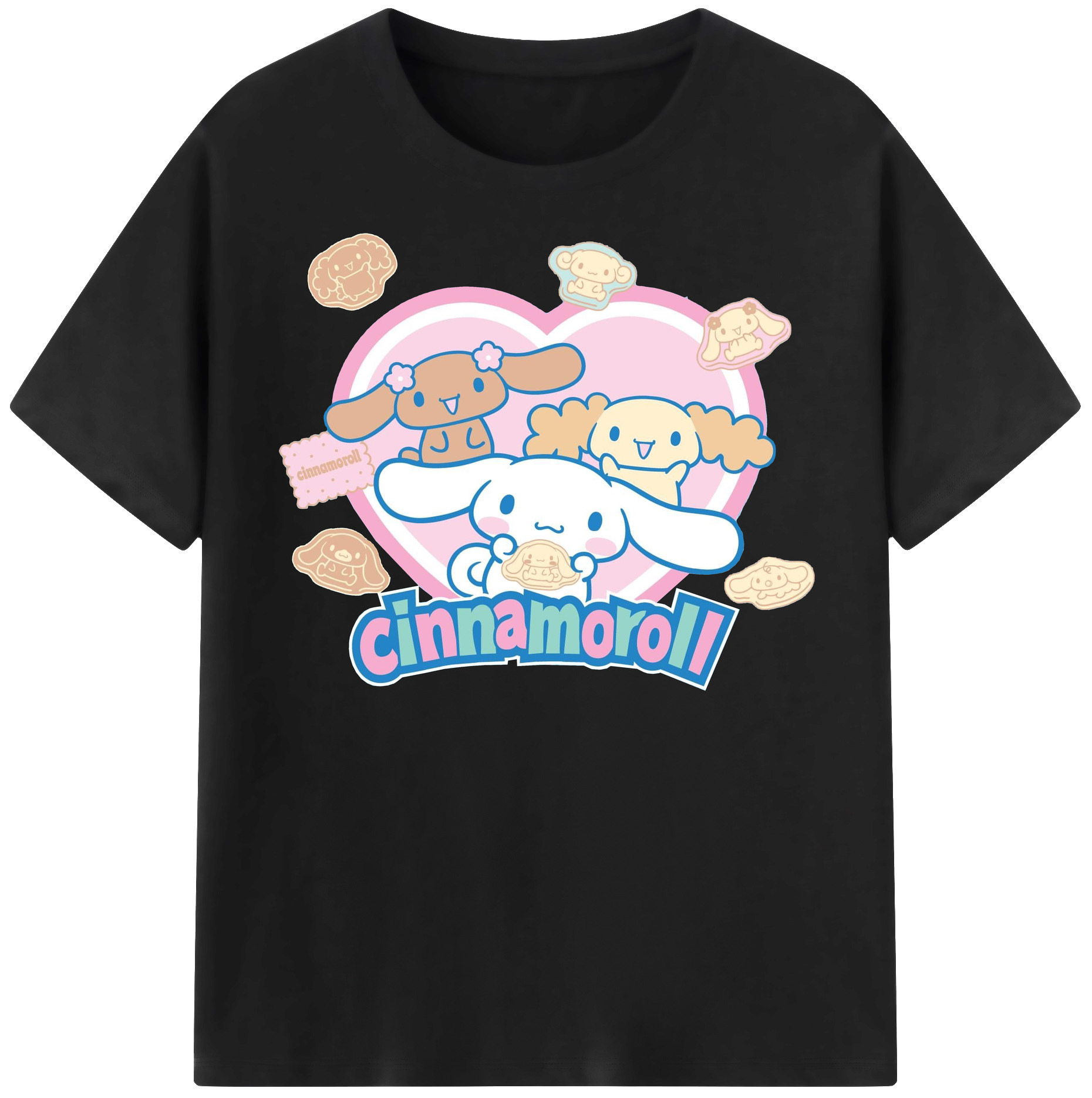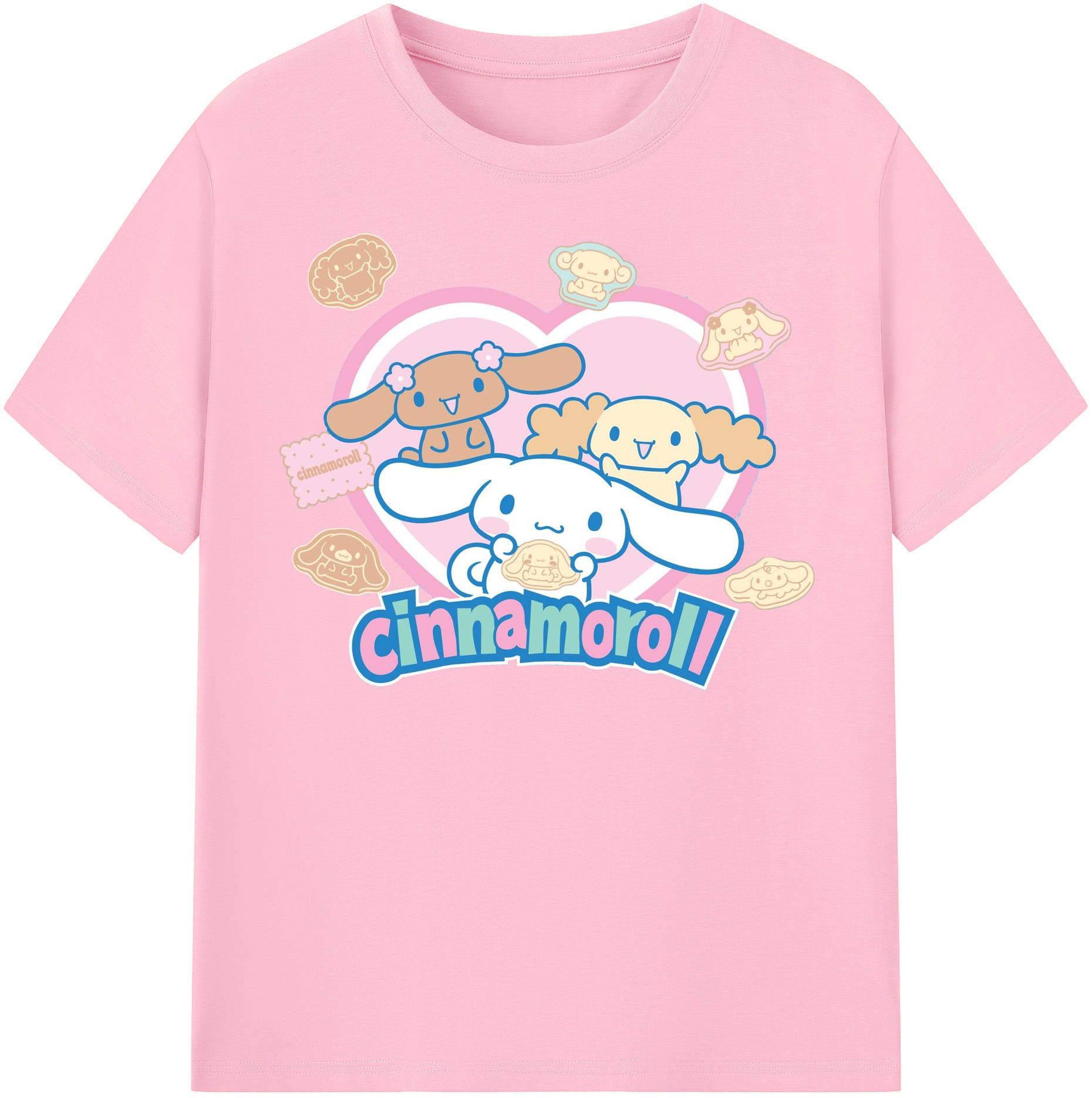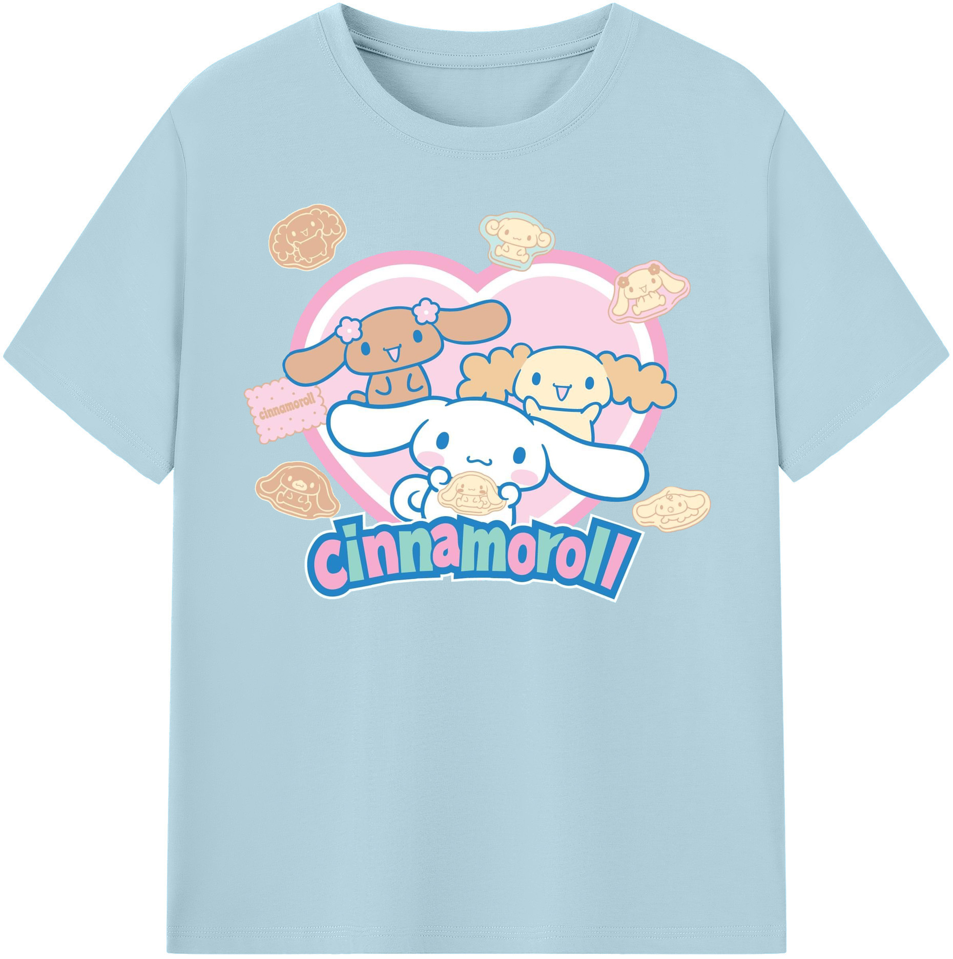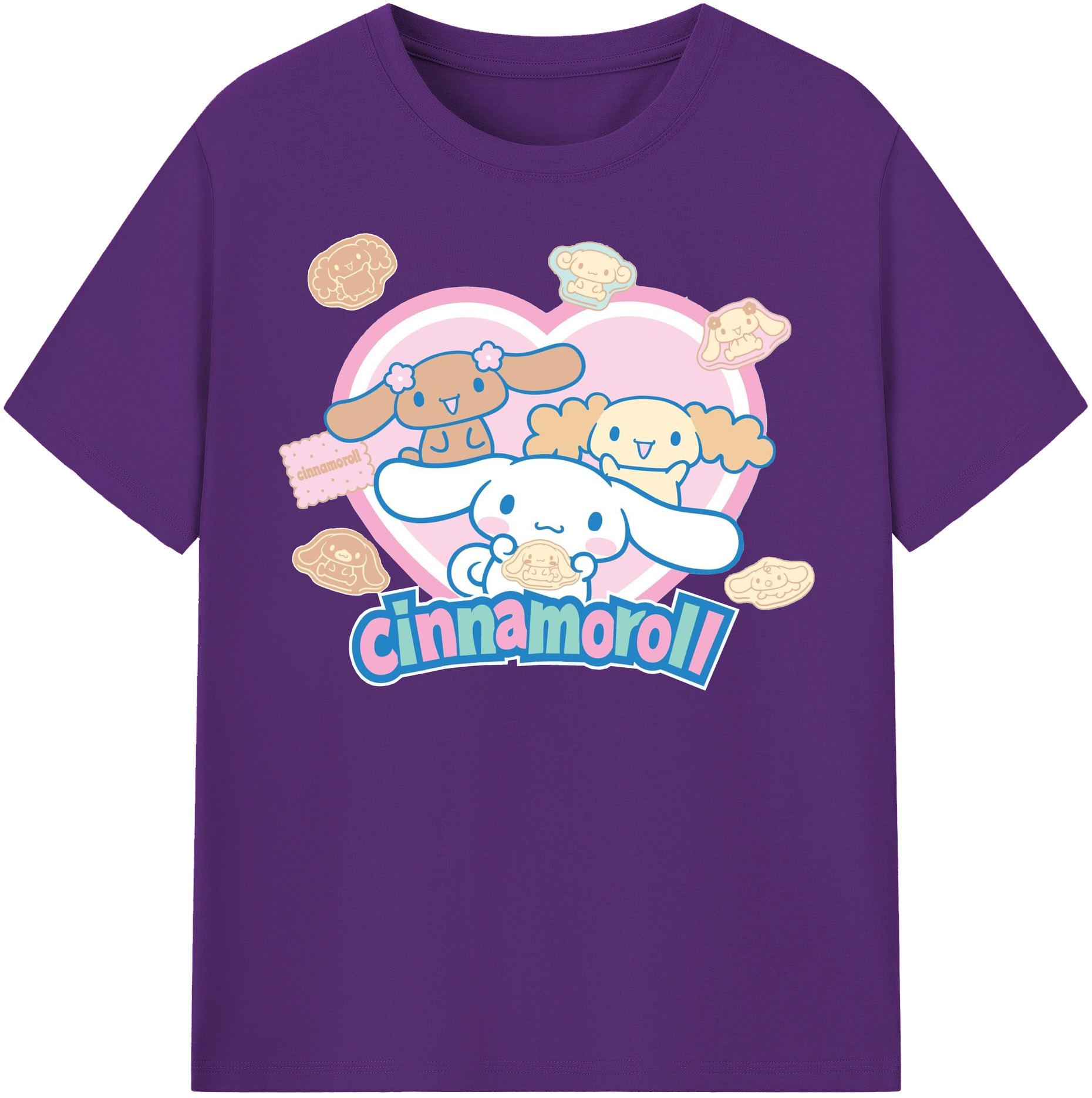 かわいいシナモロール - 綿100% 半袖Tシャツ ・ フロントプリント ・ 快適 通気性 ・ 日常使い 散歩 スポーツ用