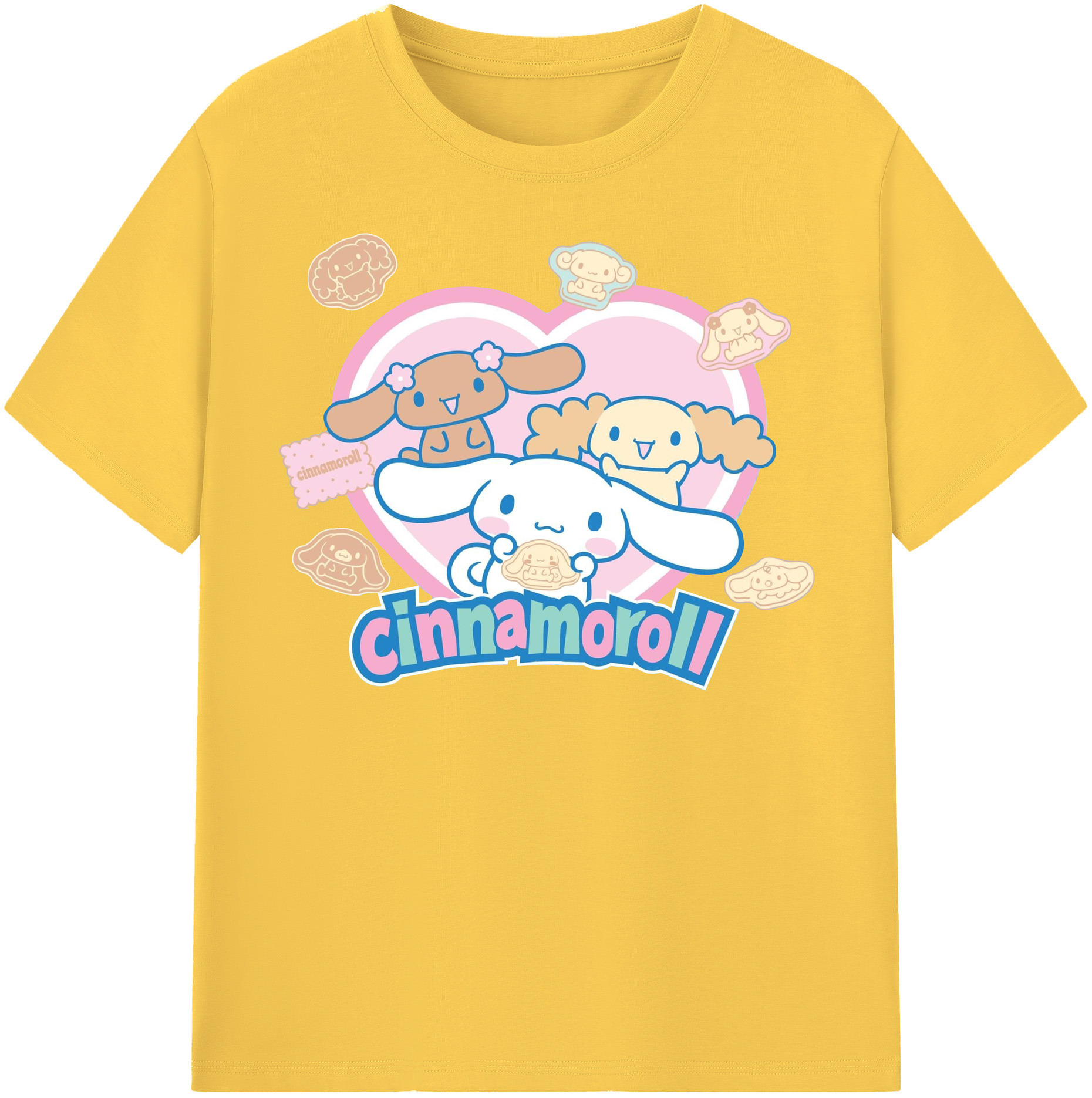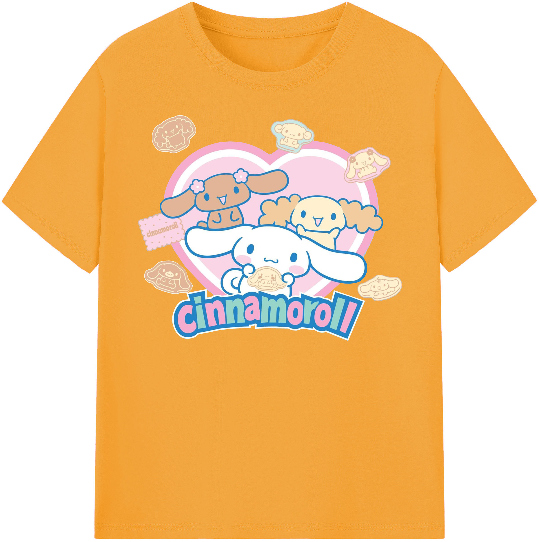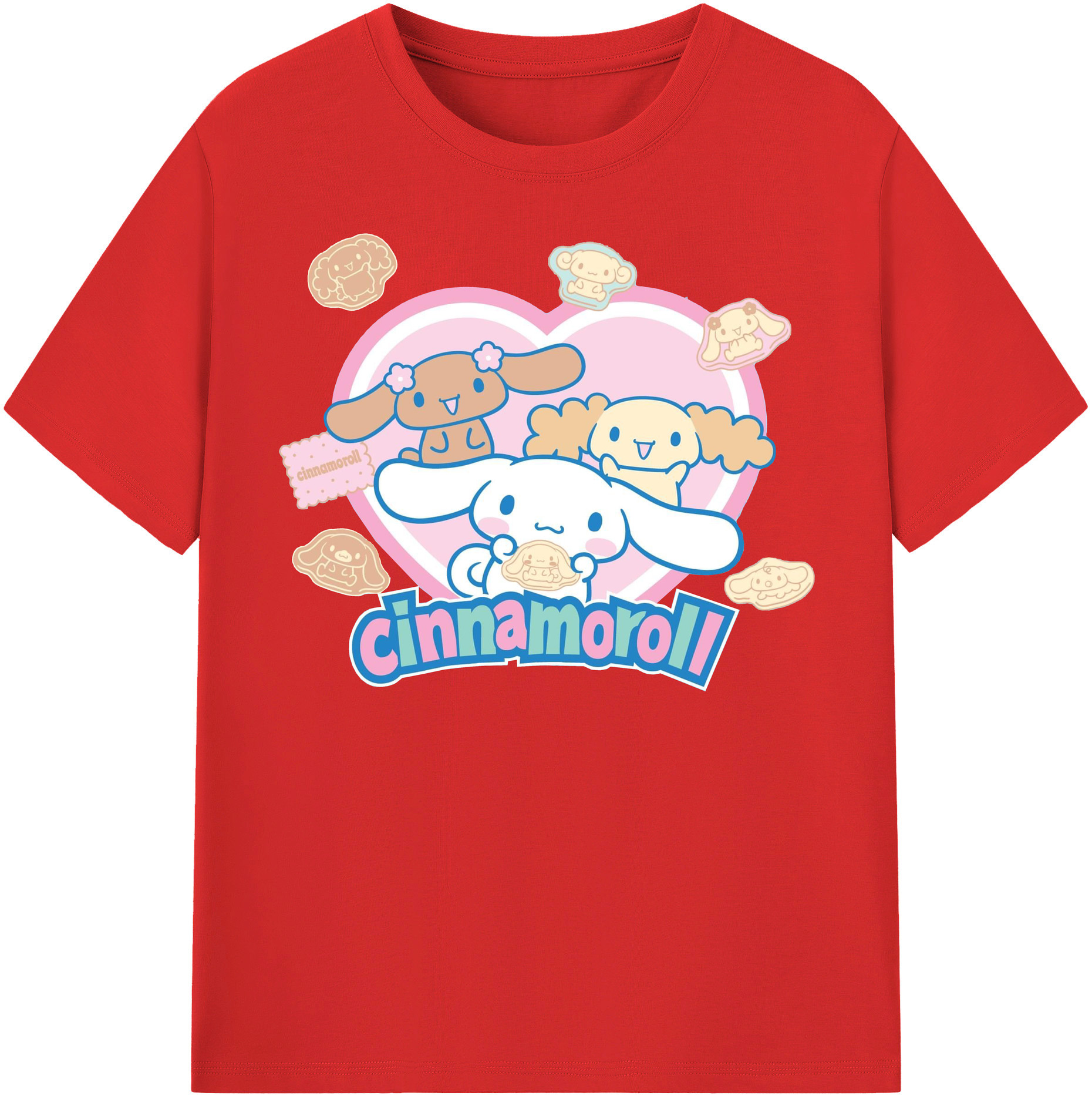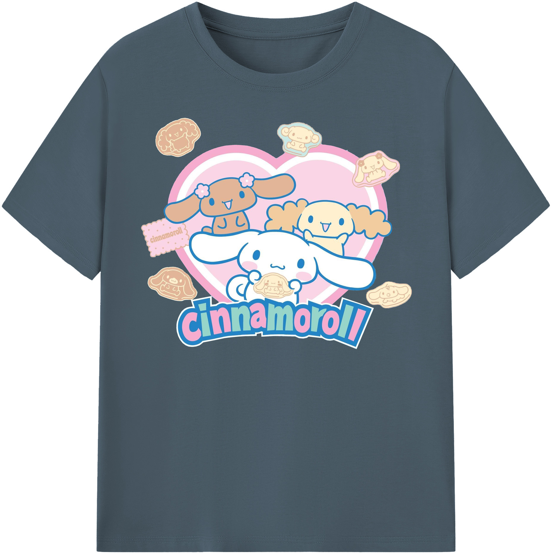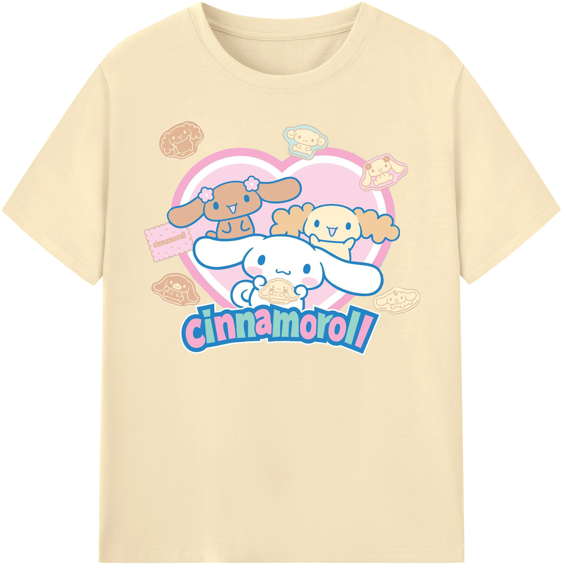 ハートデザインがかわいいシナモロール - 綿100% ヴィンテージ風 半袖Tシャツ ・ フロントプリント ・ 柔らか肌触り ・ 通気性 快適 ・ スポーツ カジュアル 外出用