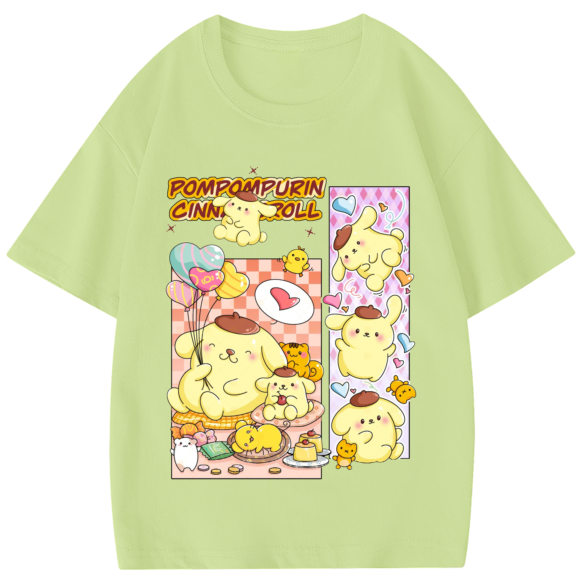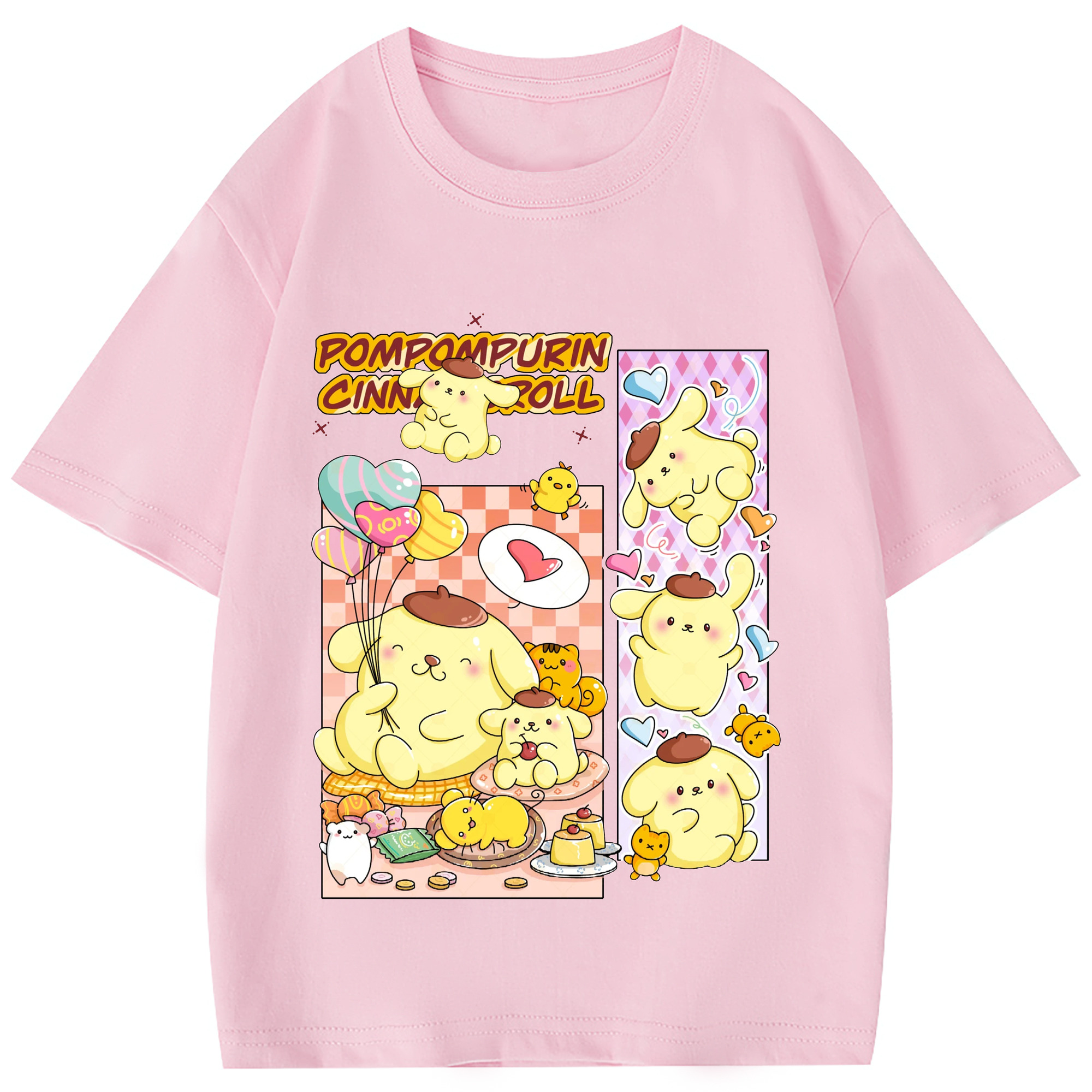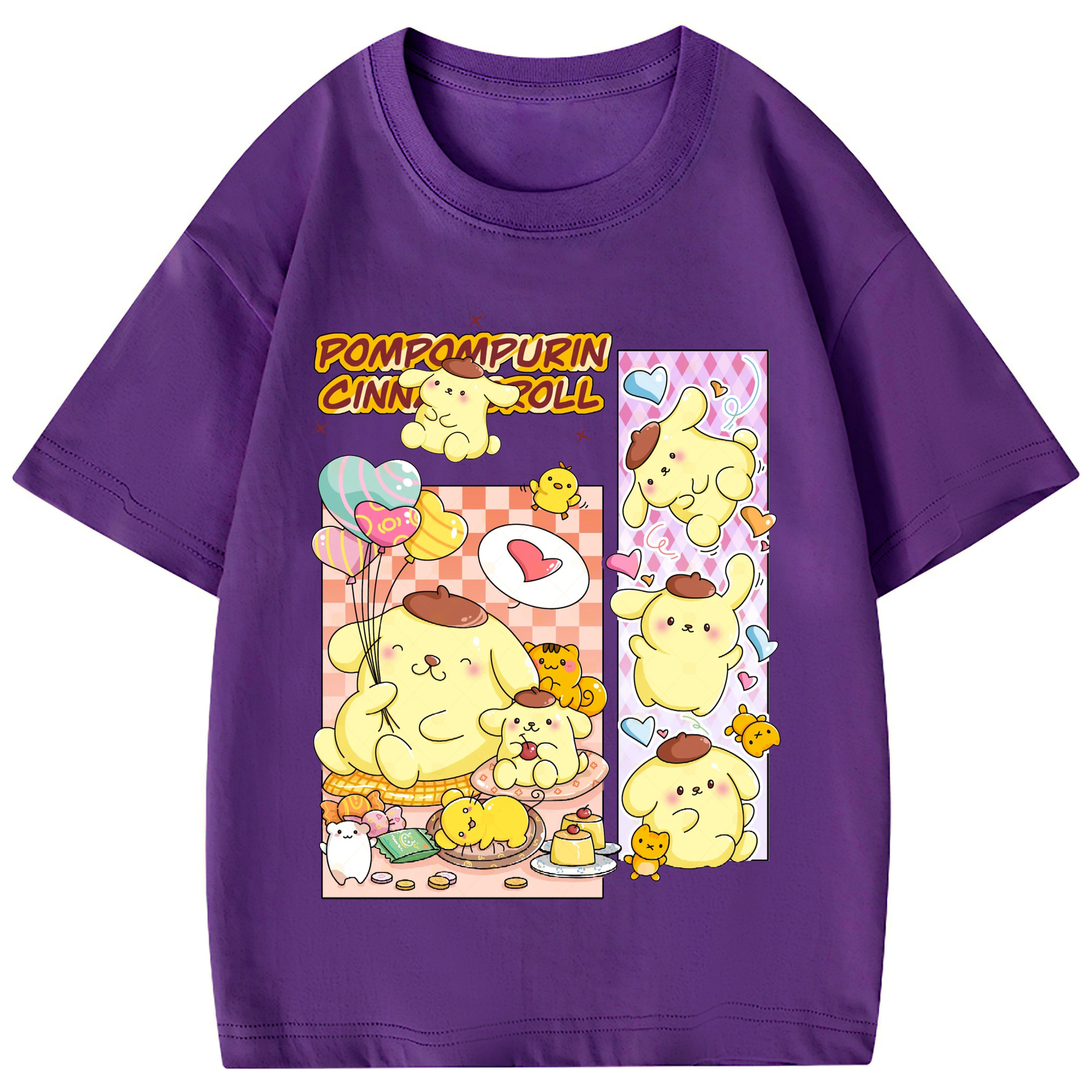 ポムポムプリン&ちいかわ - 綿100% キッズTシャツ ・ フロントプリント ・ 快適 通気性 ・ スポーツ カジュアル 散歩用