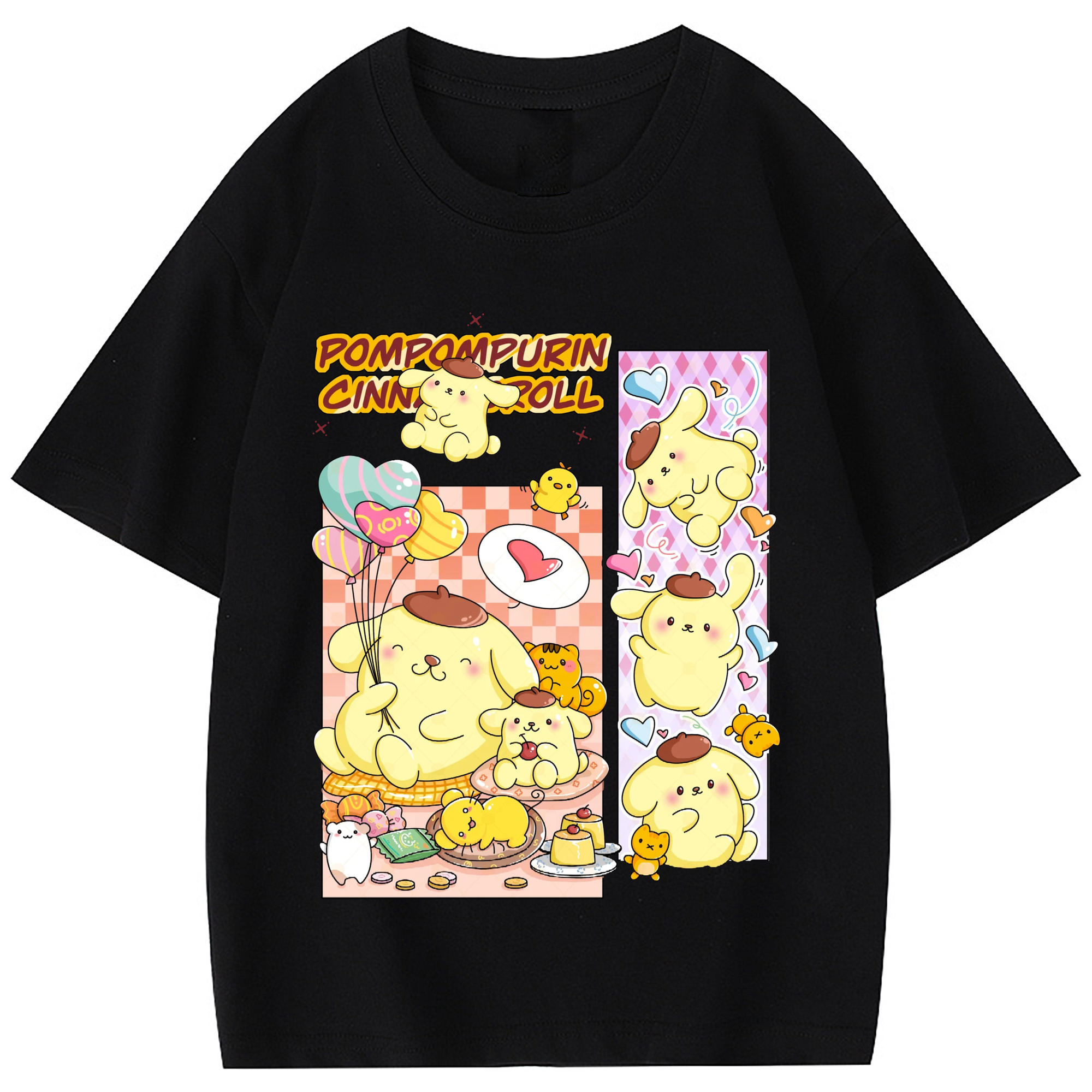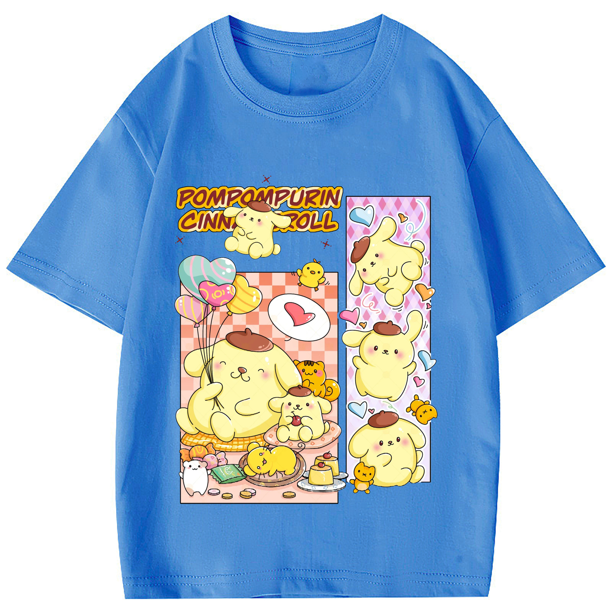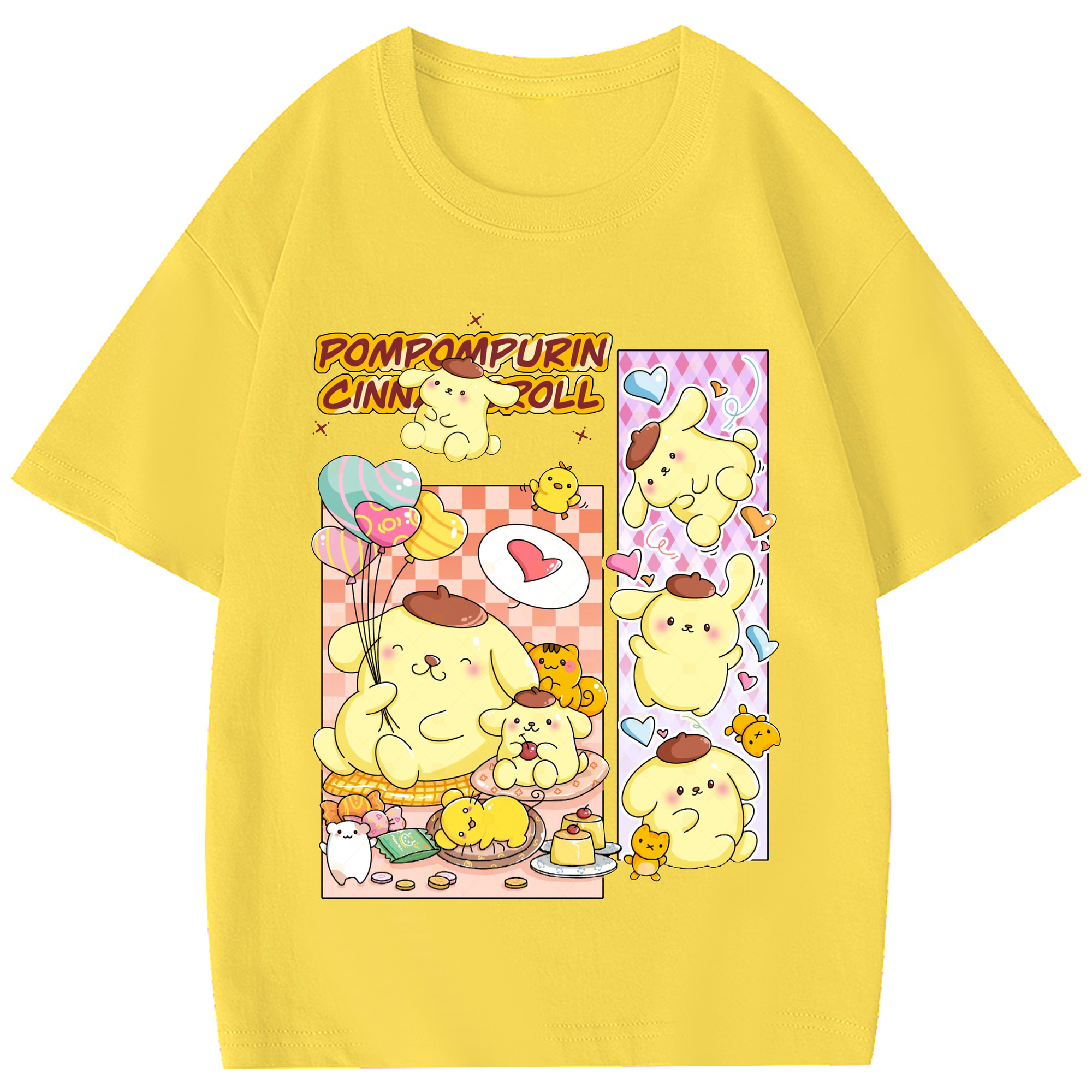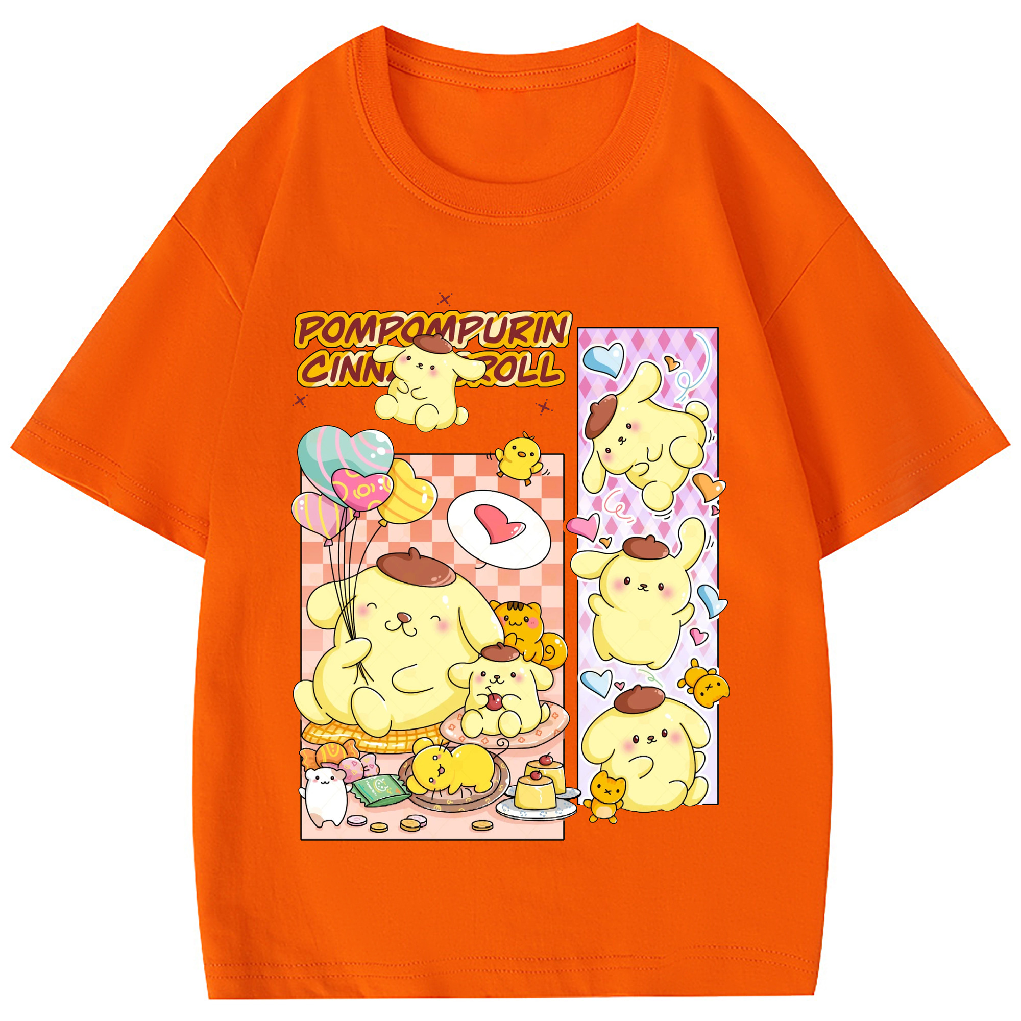 ポムポムプリン&ちいかわ - 綿100% キッズTシャツ ・ フロントプリント ・ 快適 通気性 ・ スポーツ カジュアル 散歩用