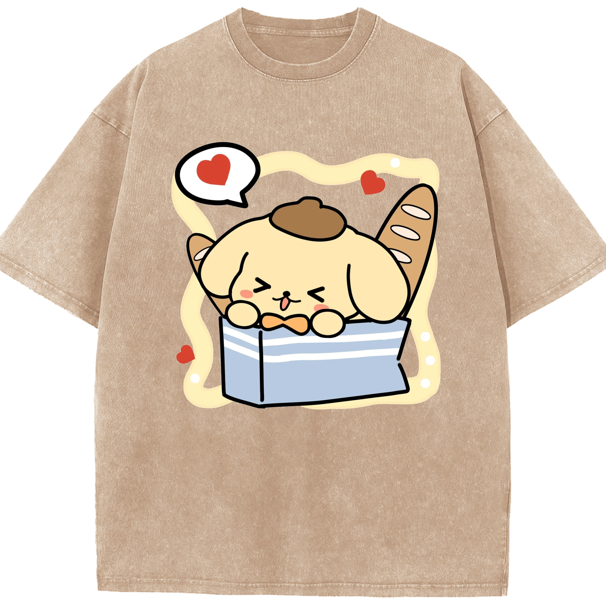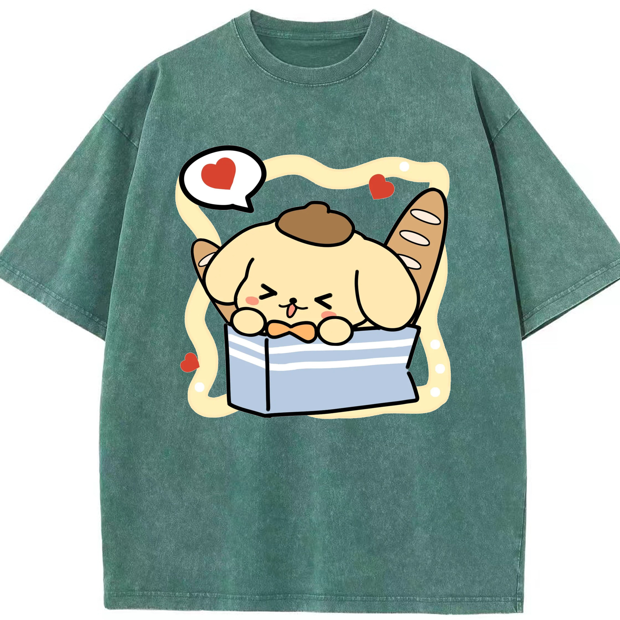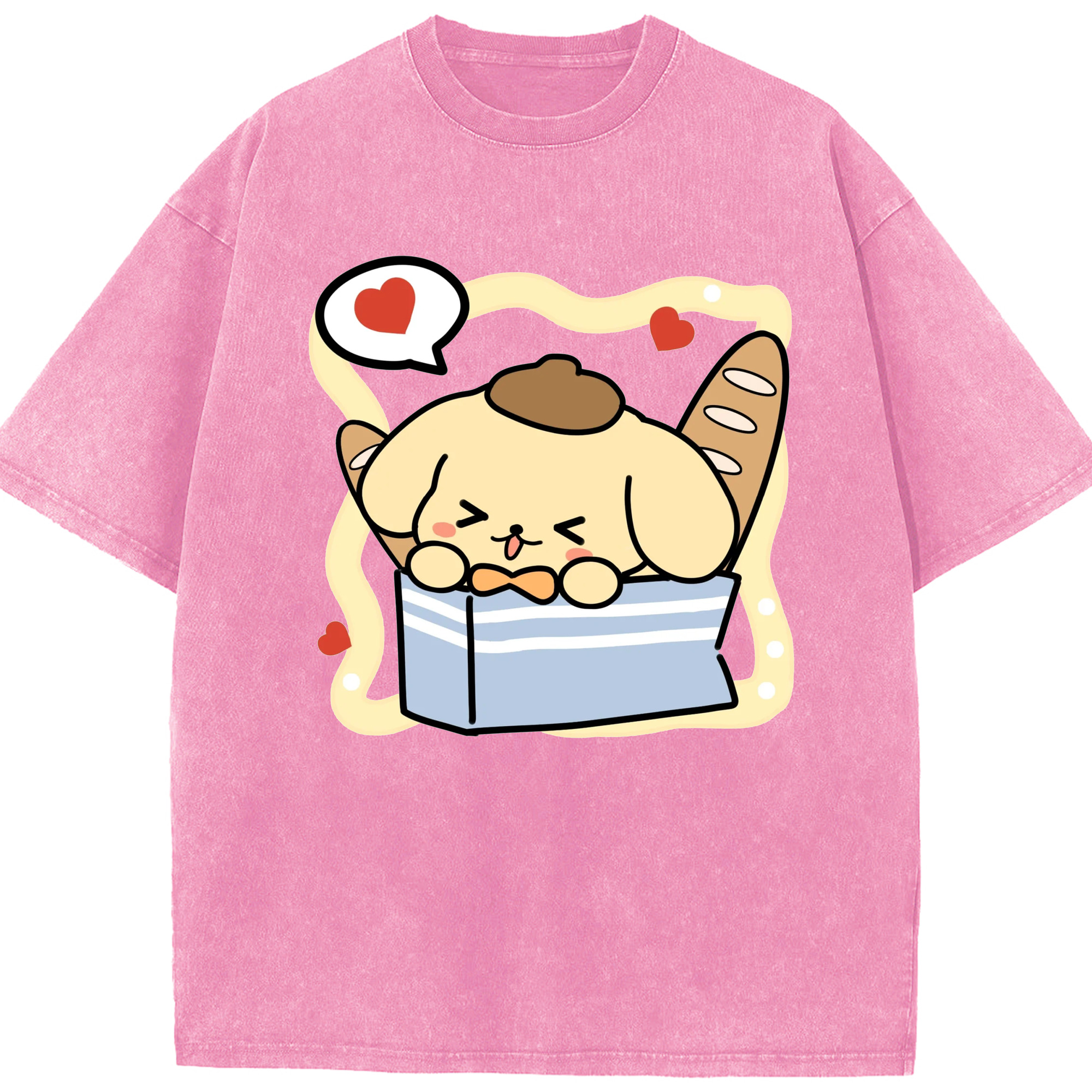 パン好きのポムポムプリン - 綿100% 半袖Tシャツ ・ フロントプリント ・ 快適 通気性 ・ 日常使い 散歩 スポーツ用