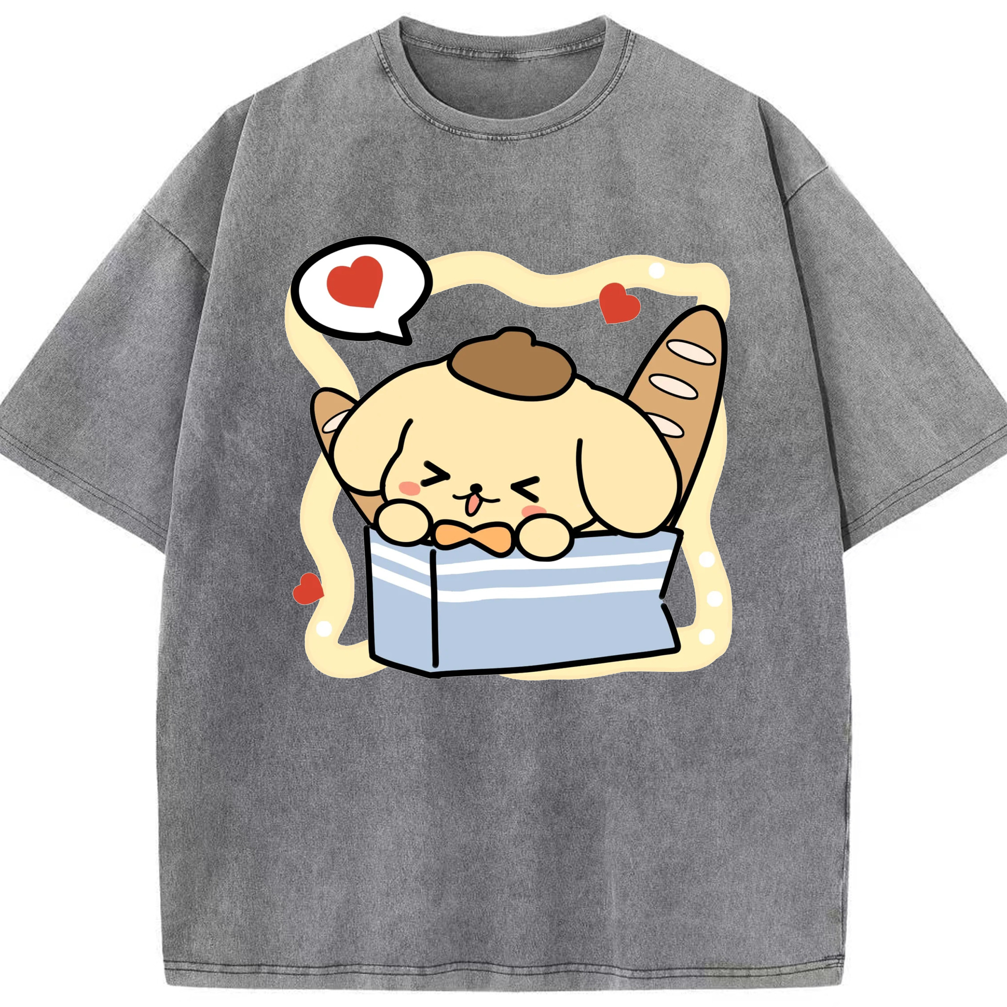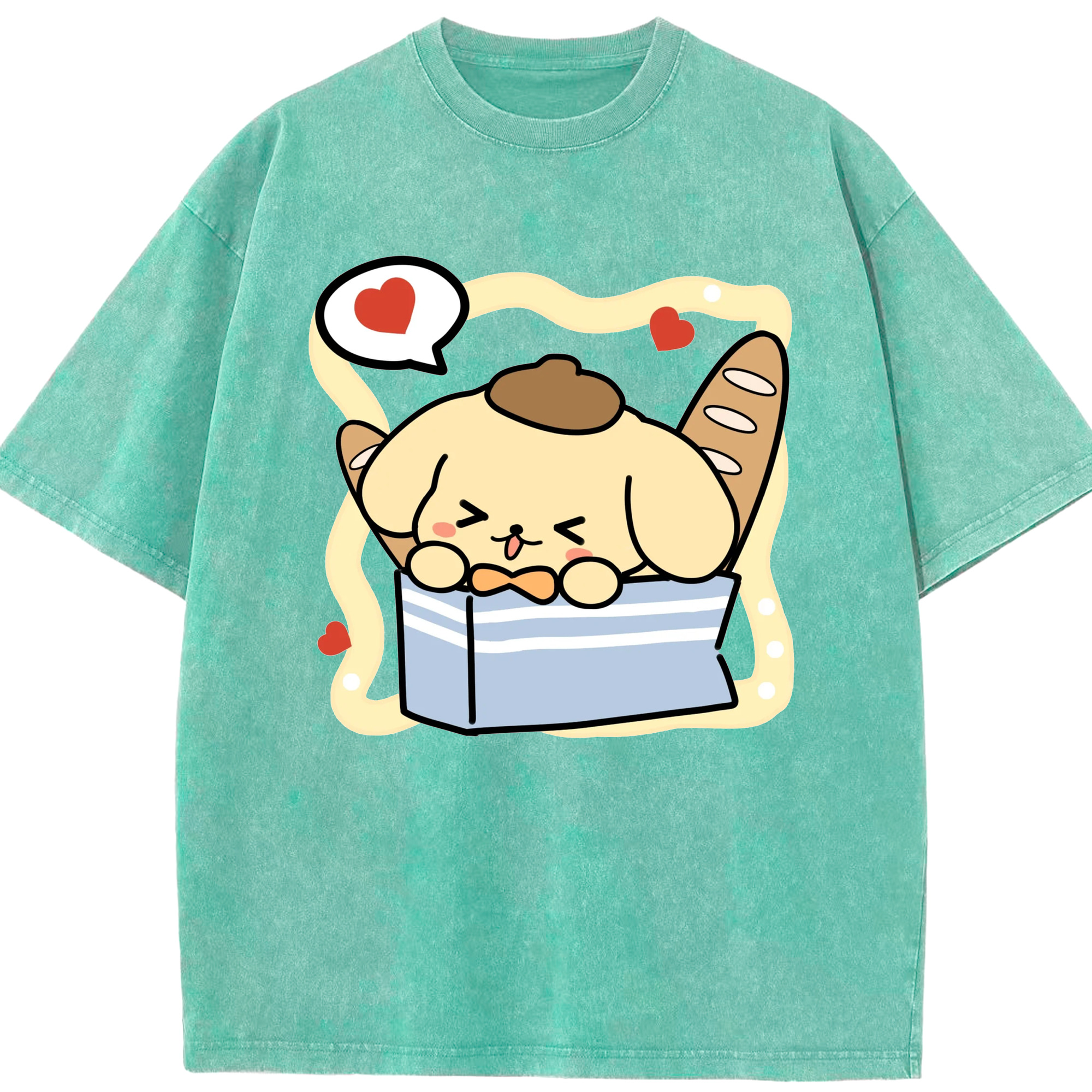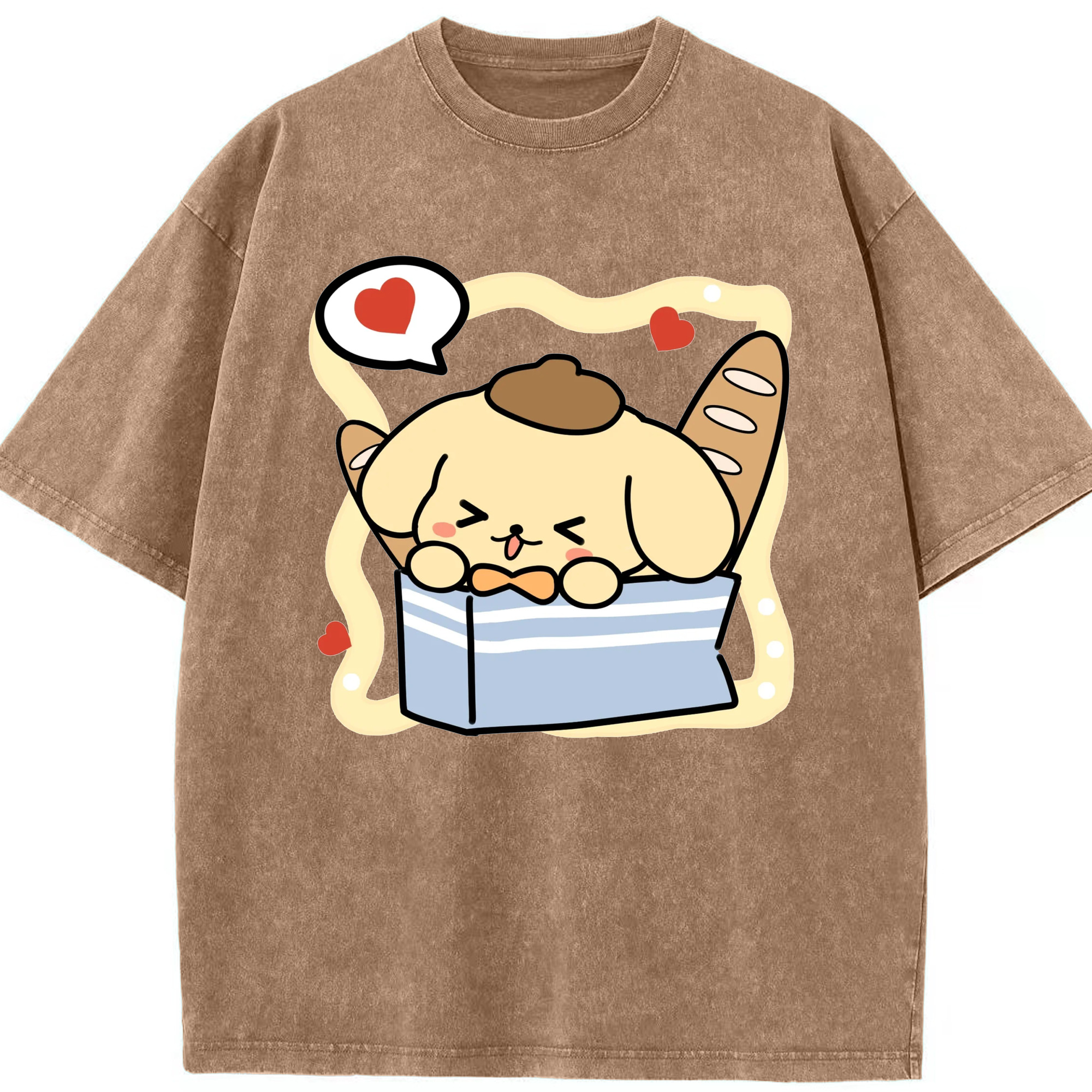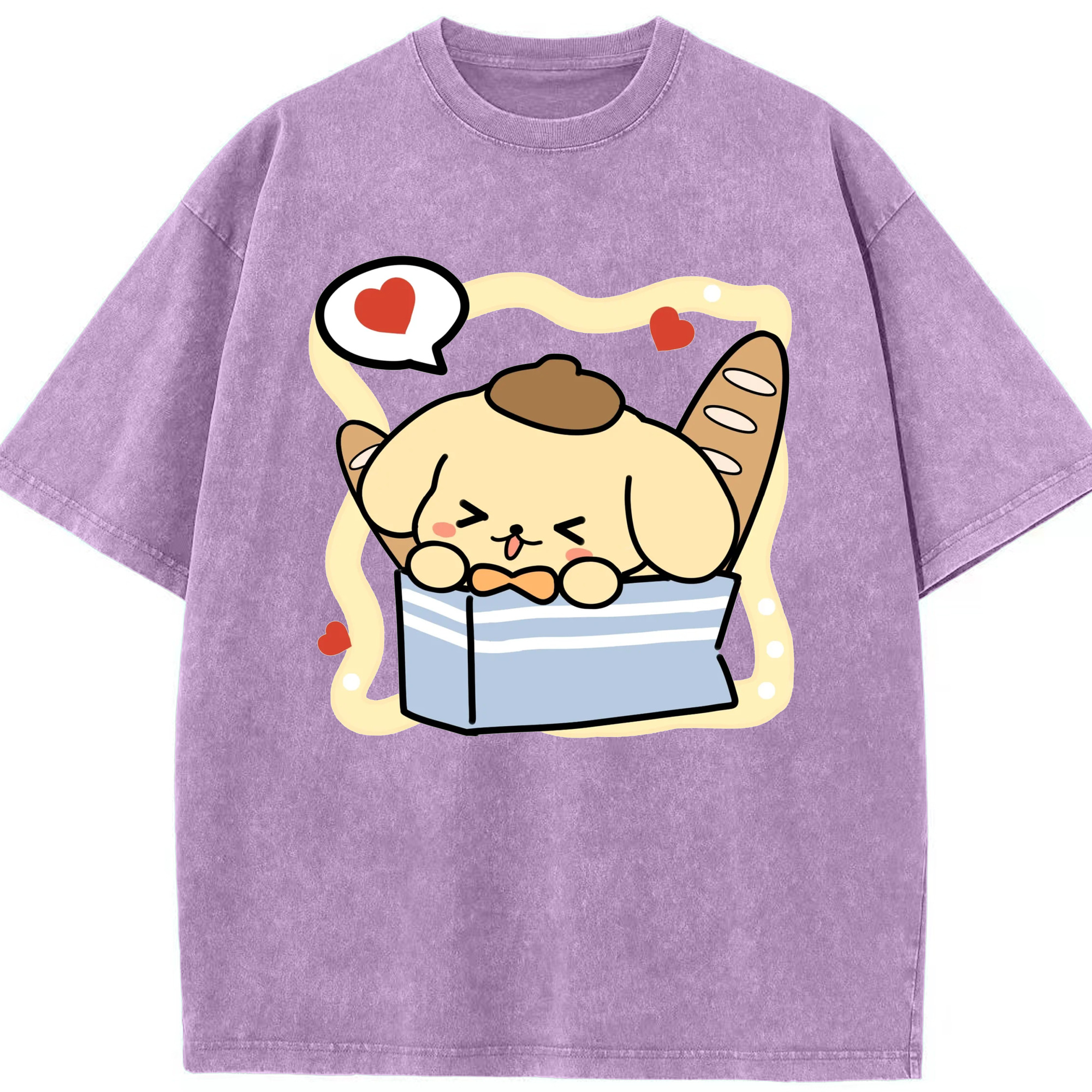 パン好きのポムポムプリン - 綿100% 半袖Tシャツ ・ フロントプリント ・ 快適 通気性 ・ 日常使い 散歩 スポーツ用