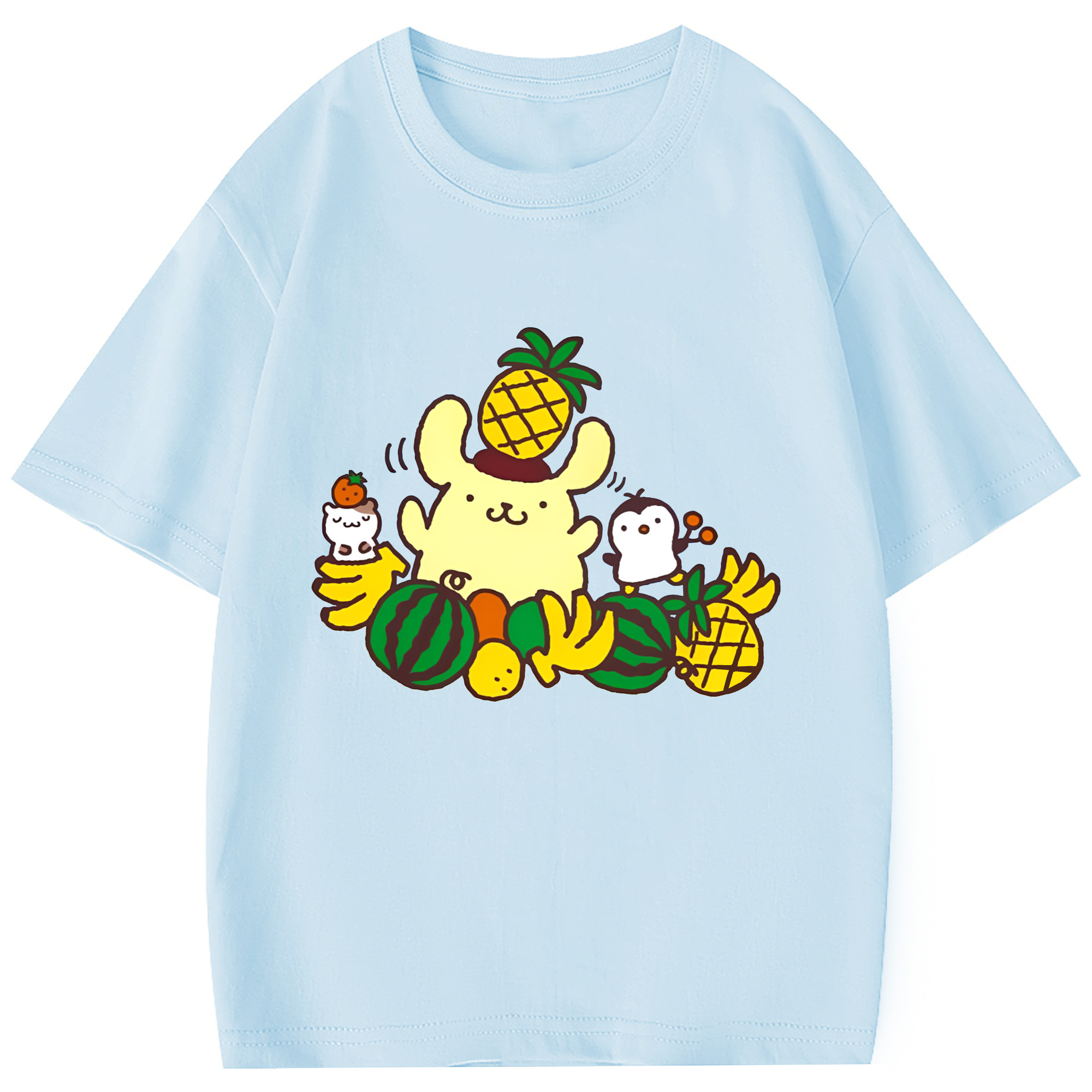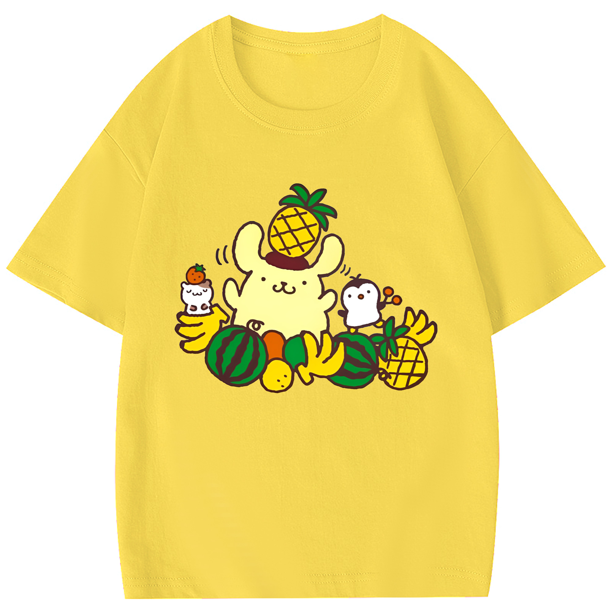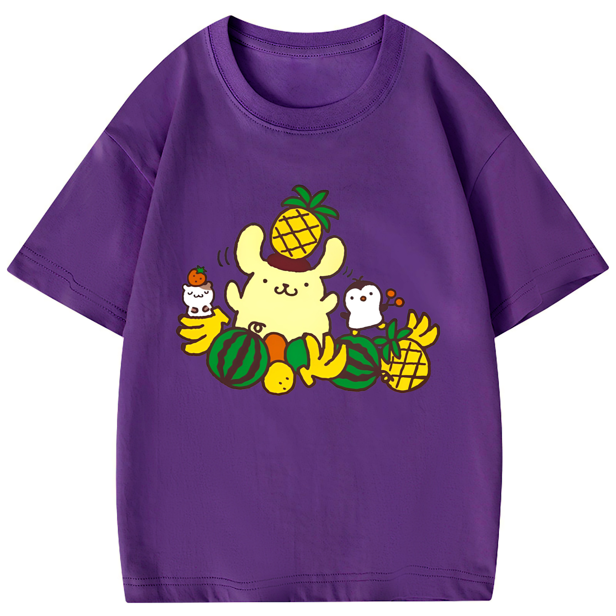 フルーツいっぱいのポムポムプリン - 綿100% 半袖Tシャツ ・ フロントプリント ・ 快適 通気性 ・ 日常使い 散歩 スポーツ用