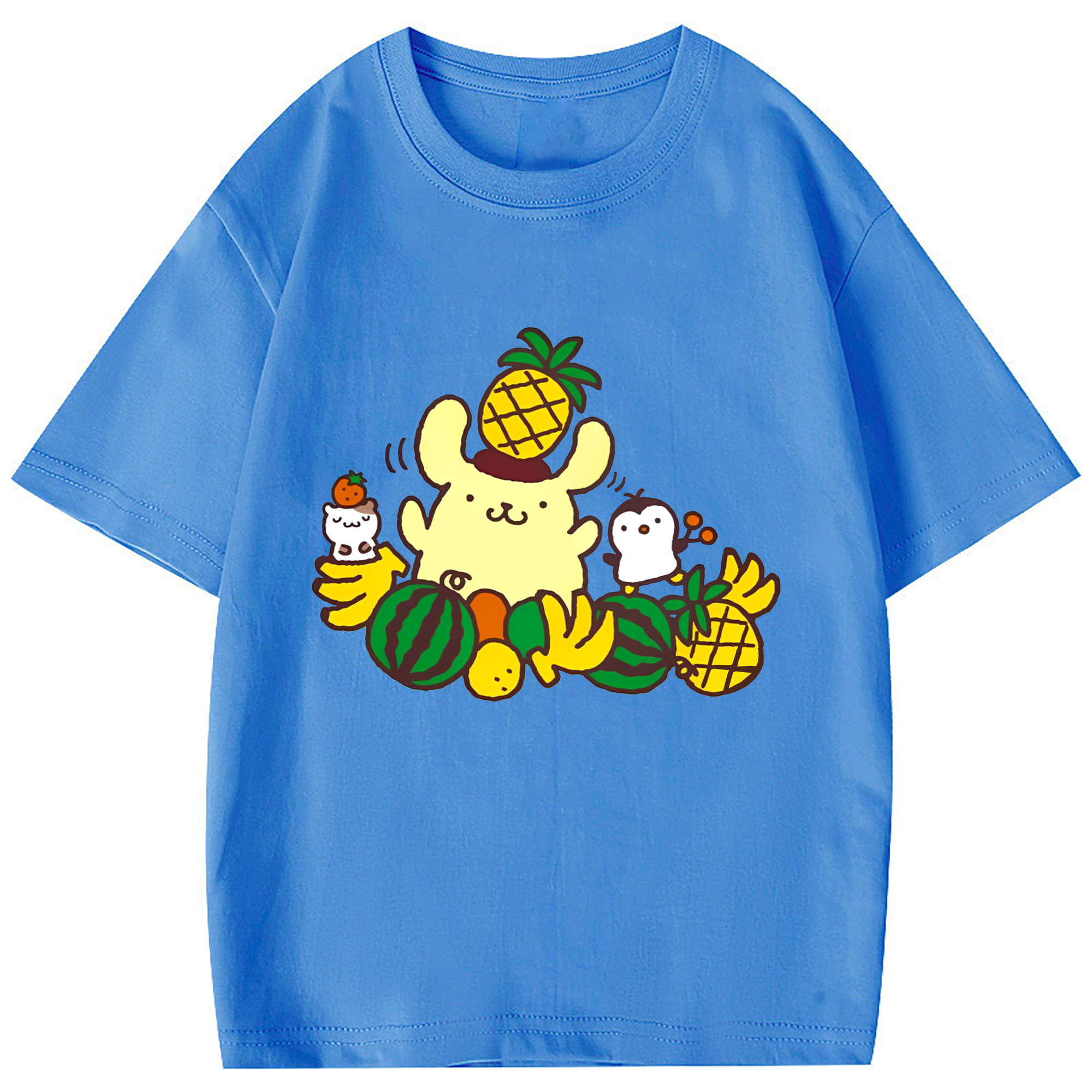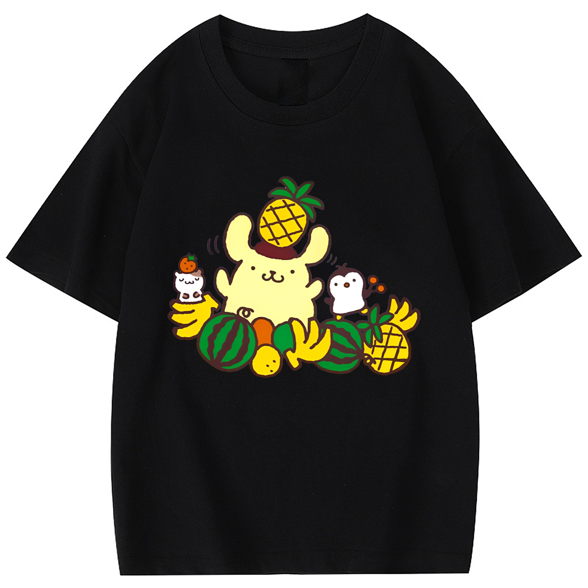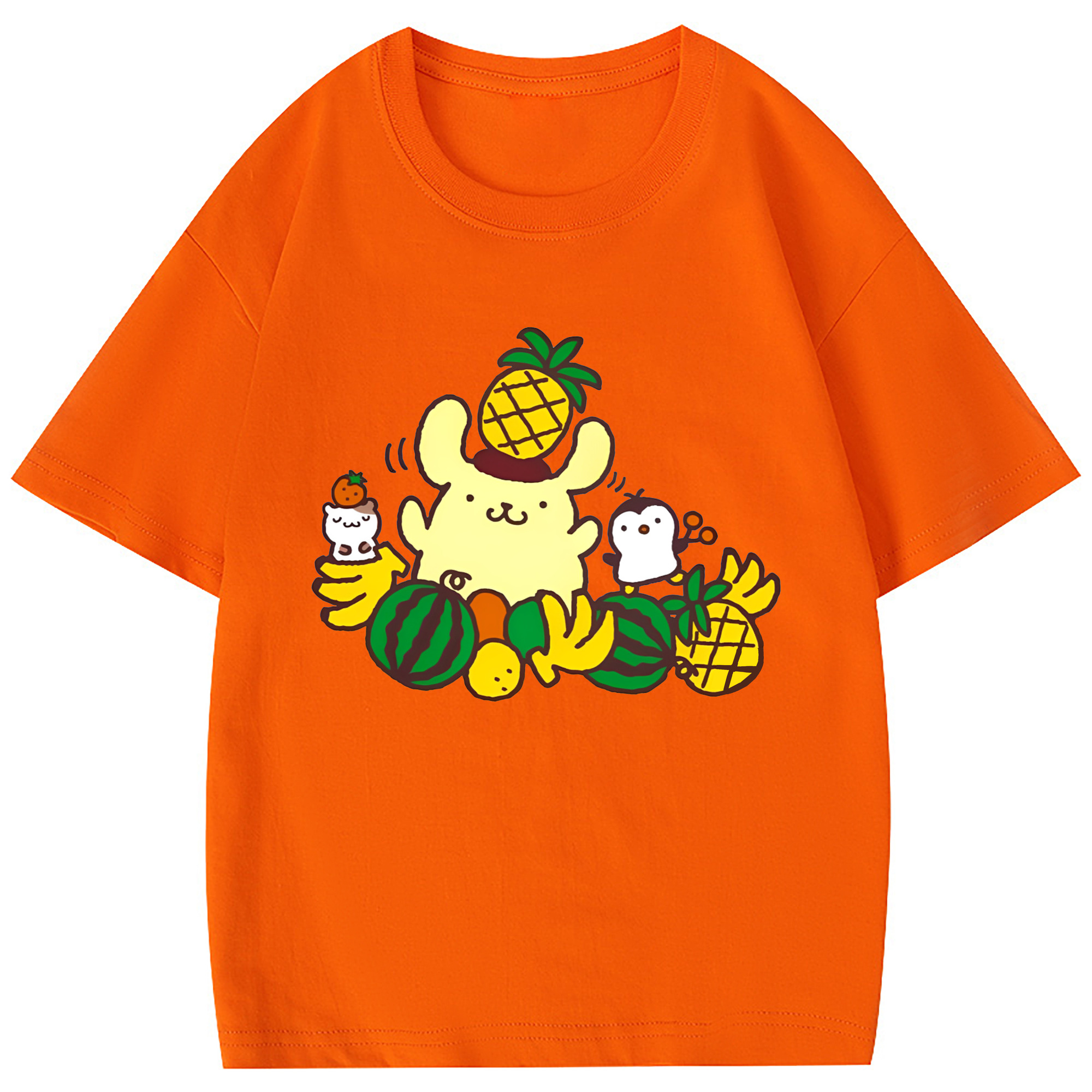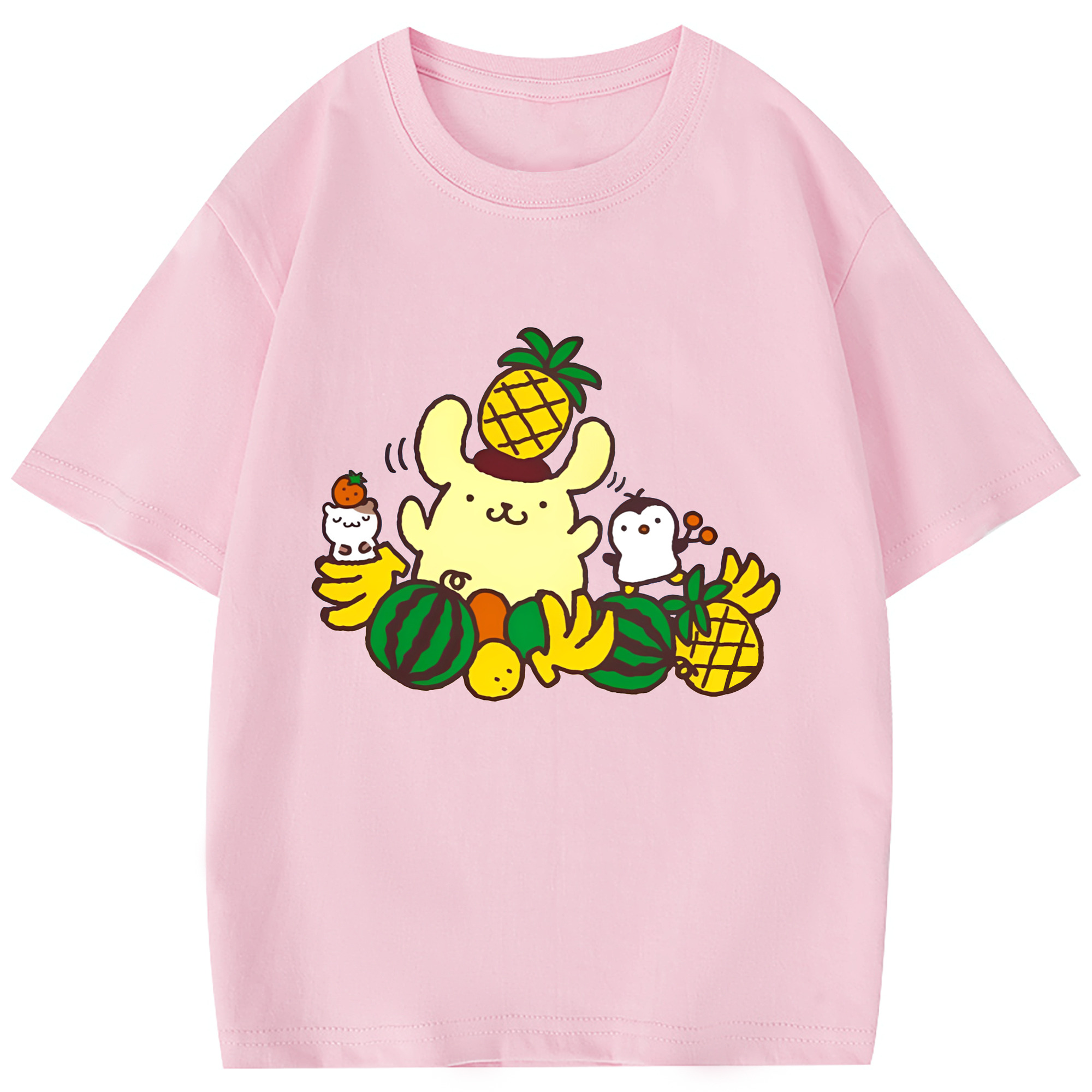 フルーツいっぱいのポムポムプリン - 綿100% 半袖Tシャツ ・ フロントプリント ・ 快適 通気性 ・ 日常使い 散歩 スポーツ用