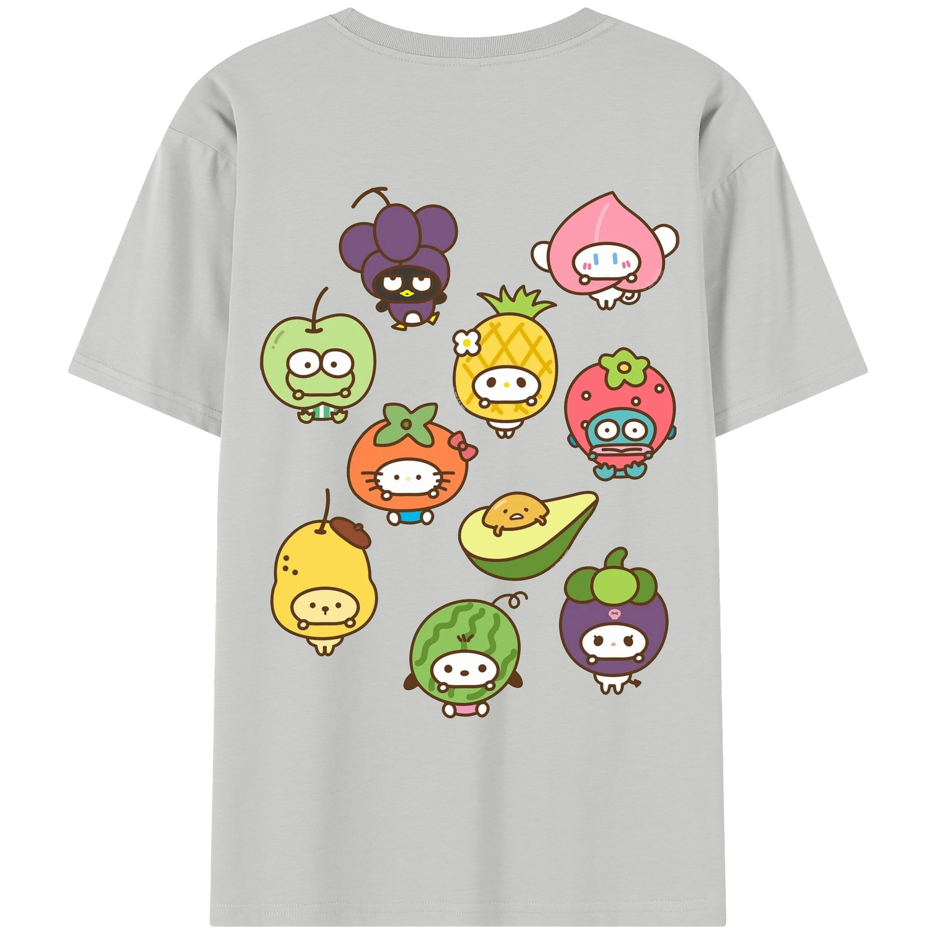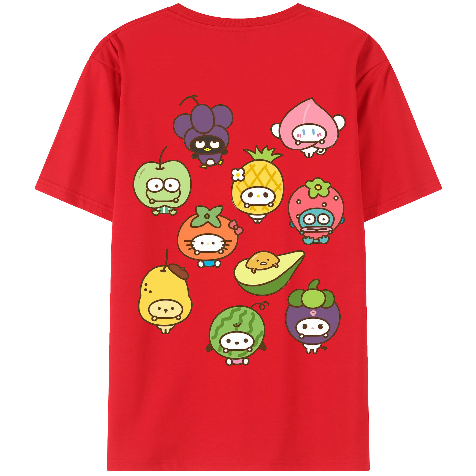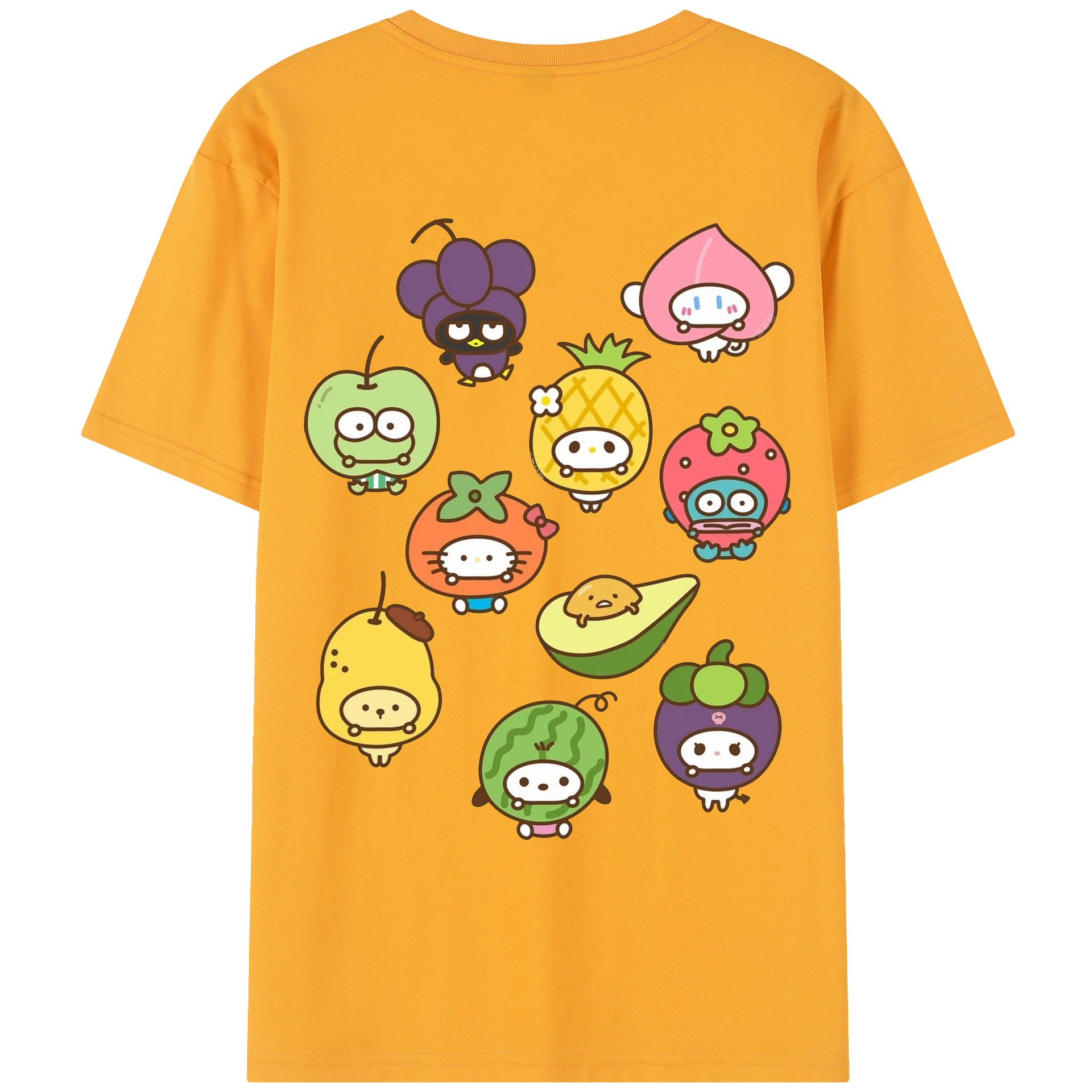 フルーツサンリオ - 綿100% ヴィンテージ風 半袖Tシャツ ・ 背面プリント ・ 柔らか肌触り ・ 通気性 快適 ・ スポーツ カジュアル 外出用