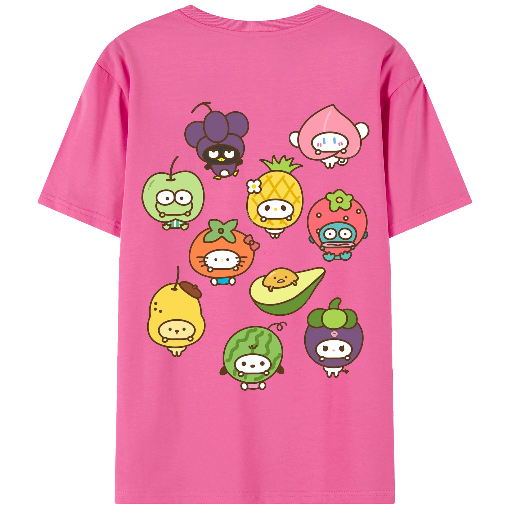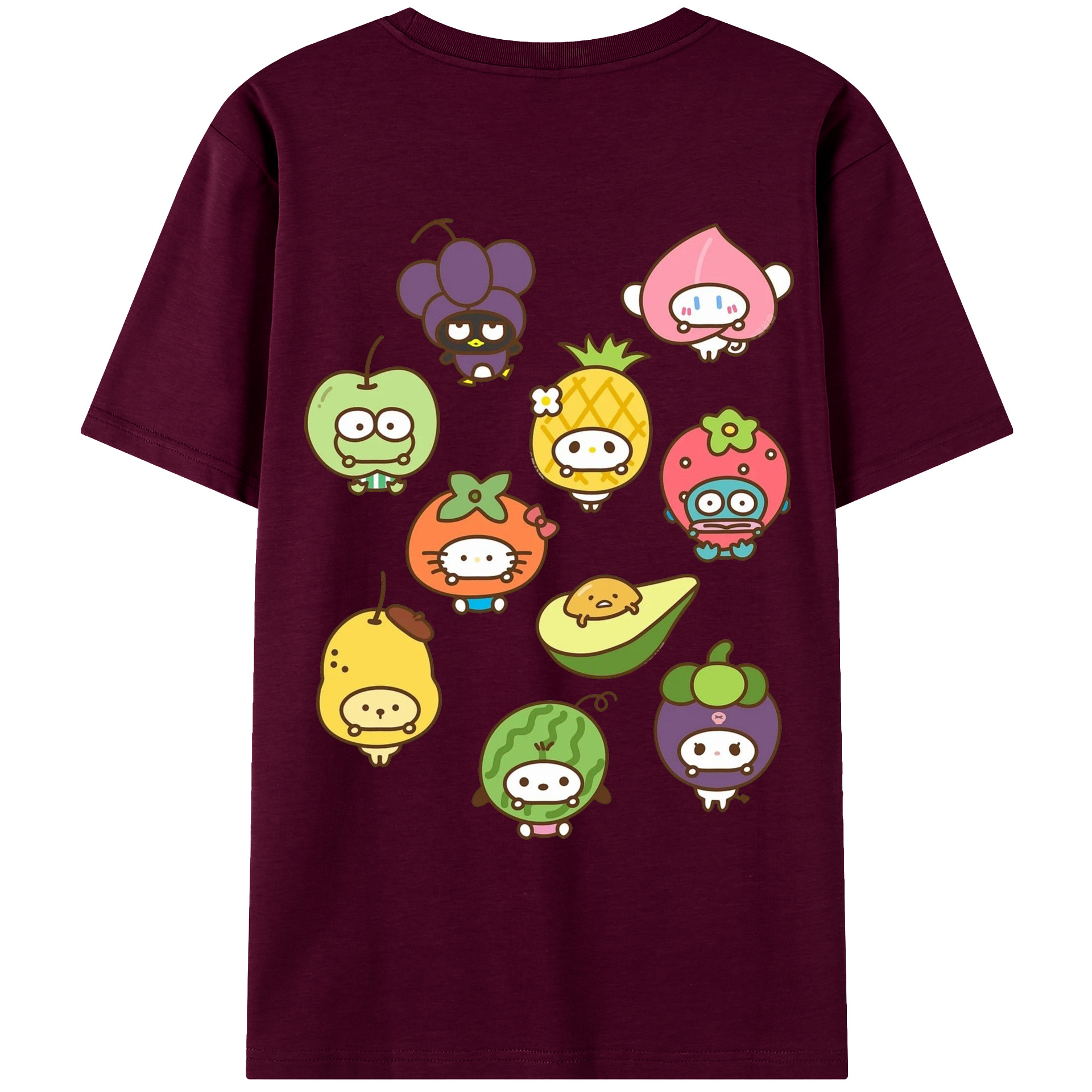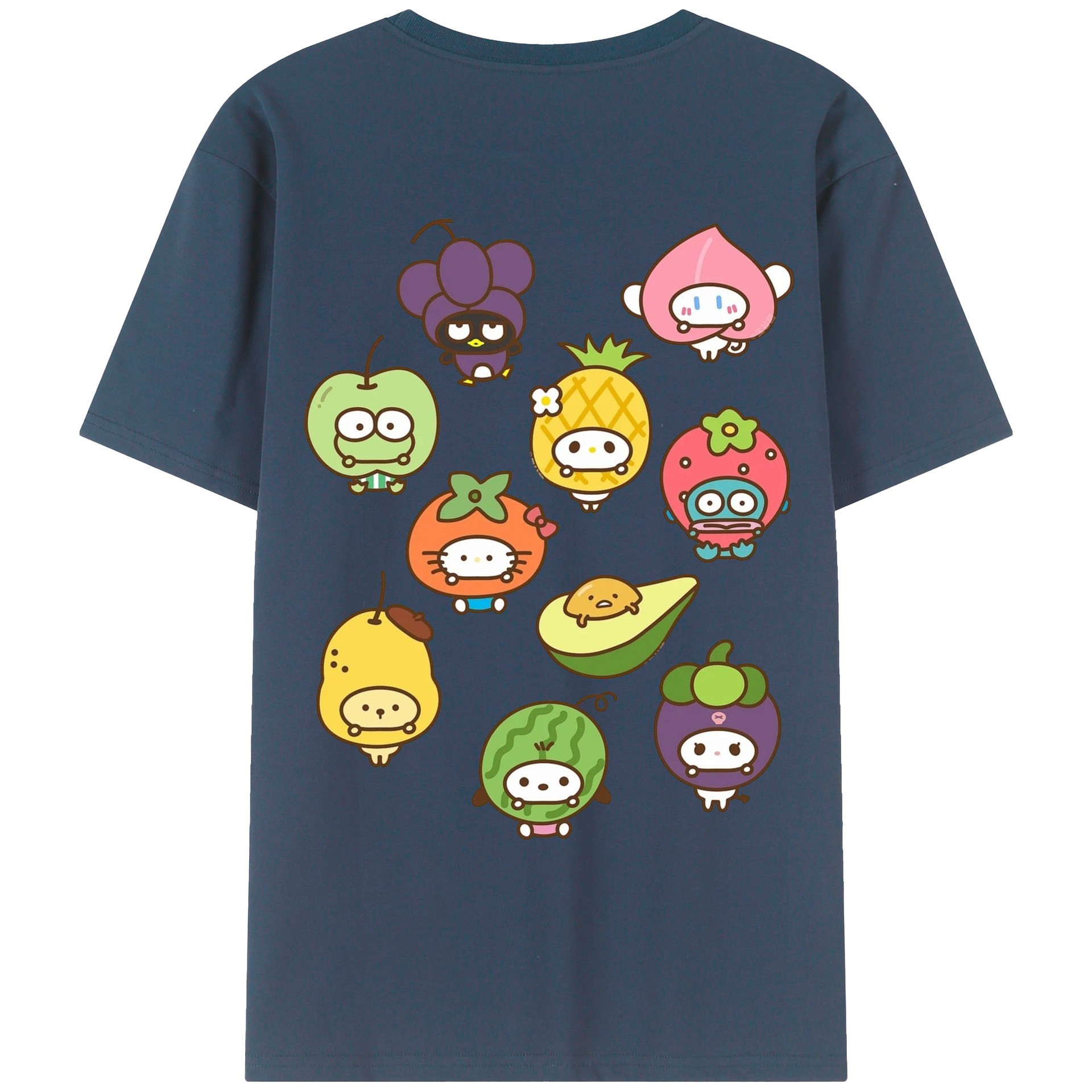フルーツサンリオ - 綿100% ヴィンテージ風 半袖Tシャツ ・ 背面プリント ・ 柔らか肌触り ・ 通気性 快適 ・ スポーツ カジュアル 外出用