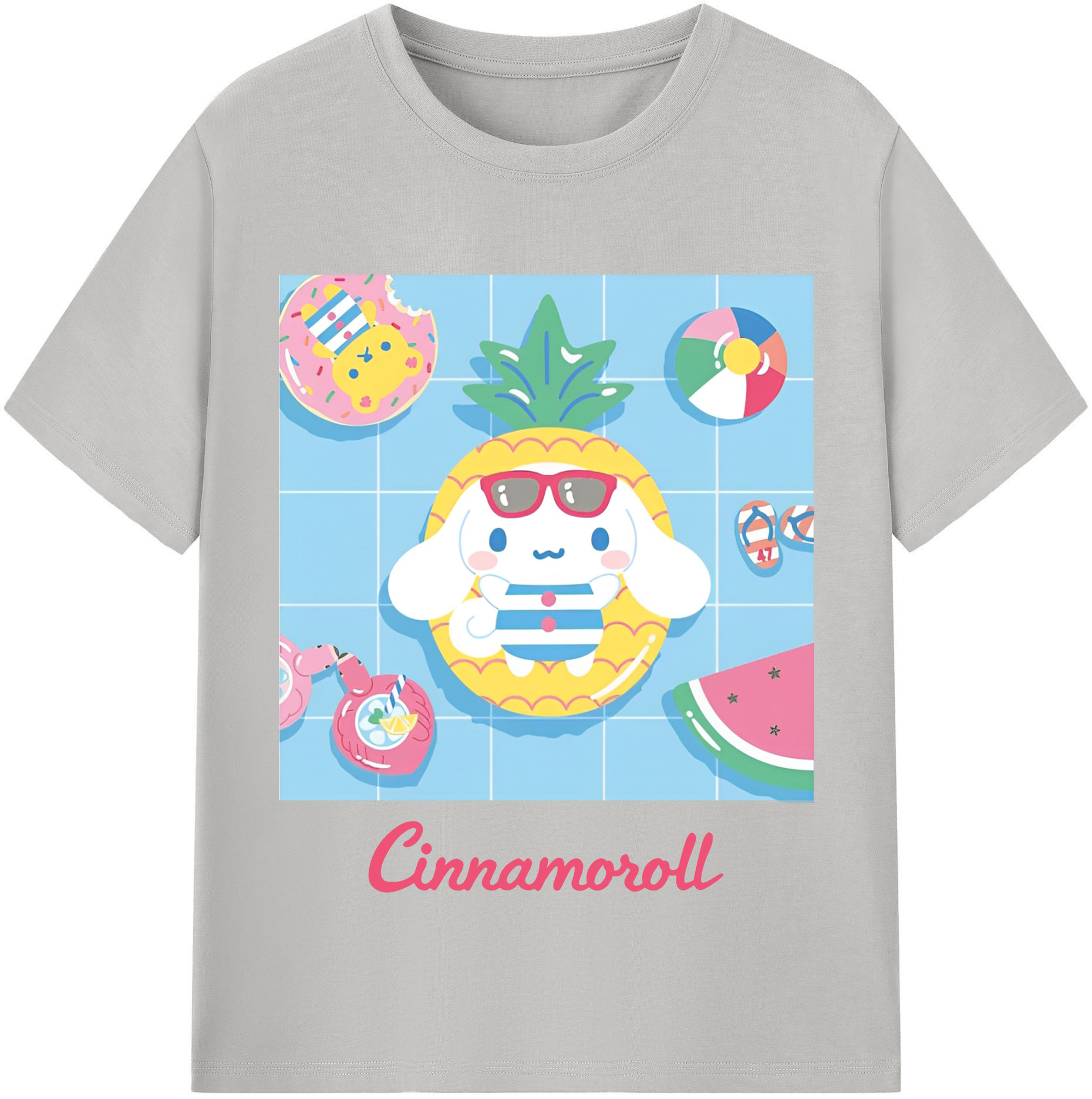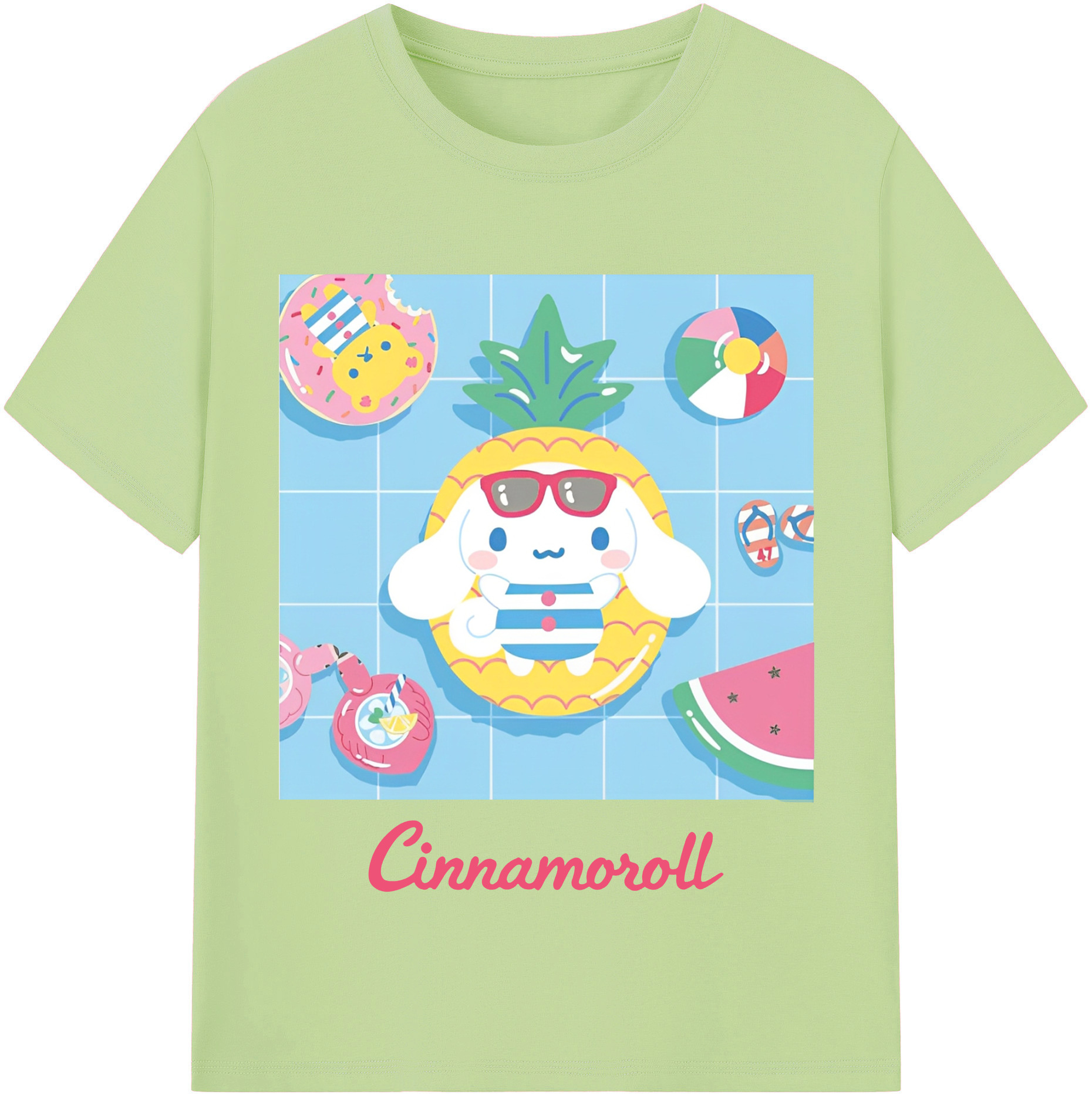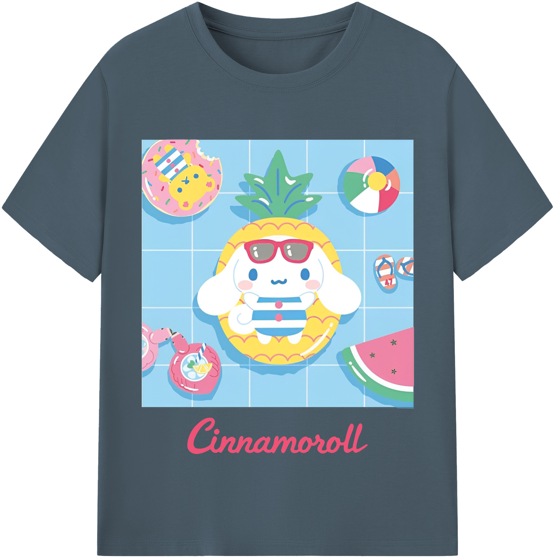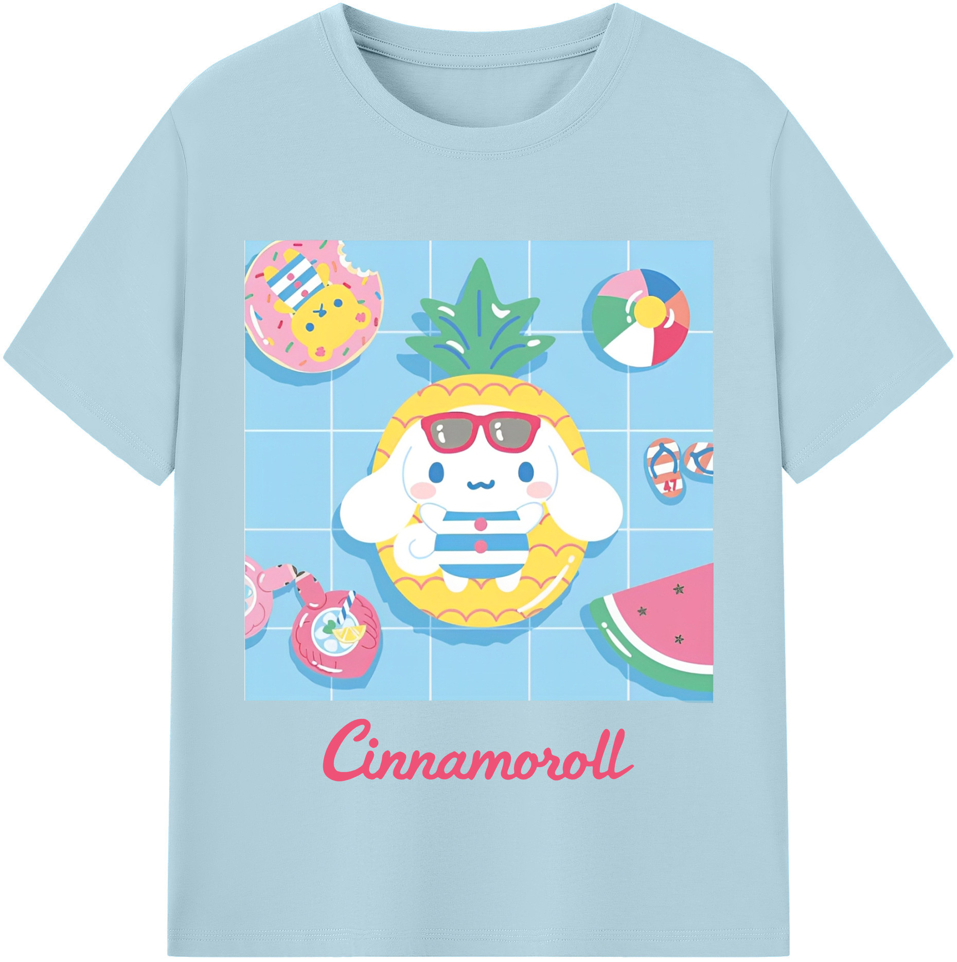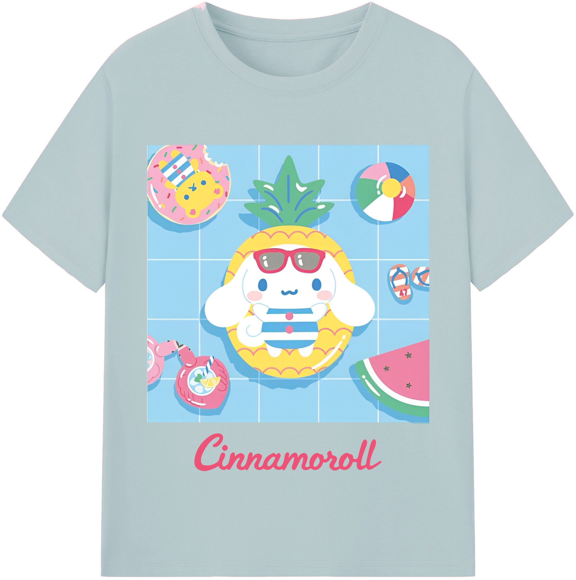 フルーツシリーズのシナモロール - 綿100% ヴィンテージ風 半袖Tシャツ ・ フロントプリント ・ 柔らか肌触り ・ 通気性 快適 ・ スポーツ カジュアル 外出用