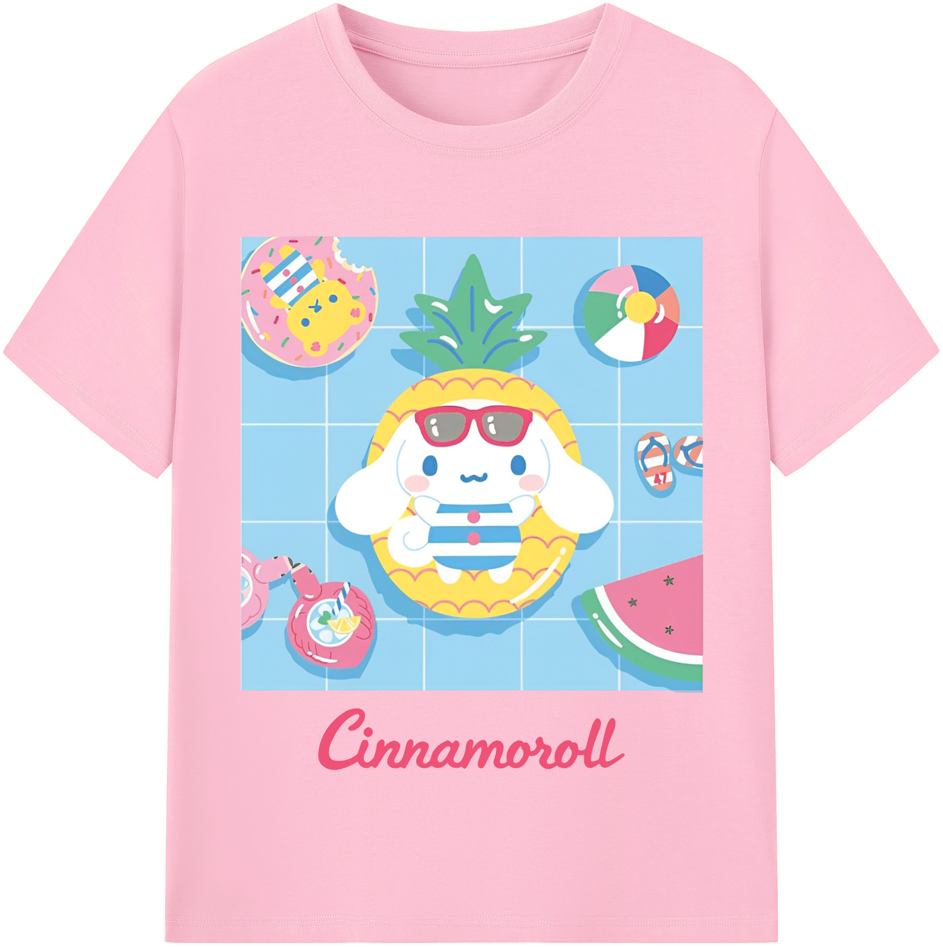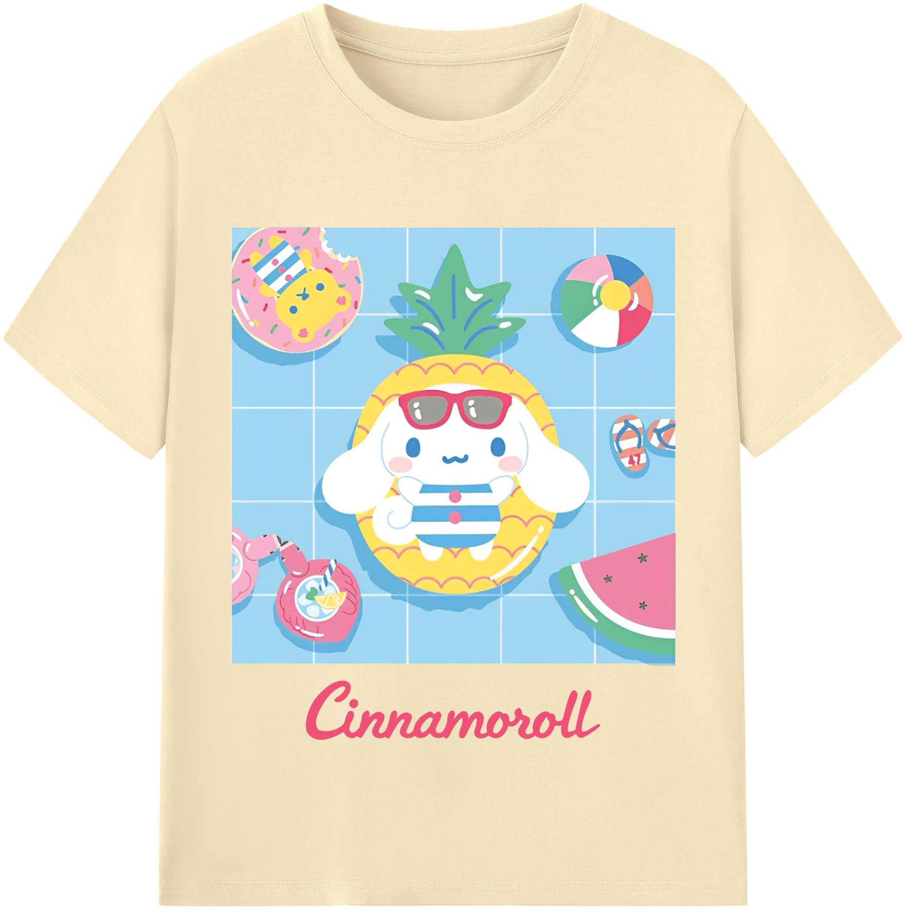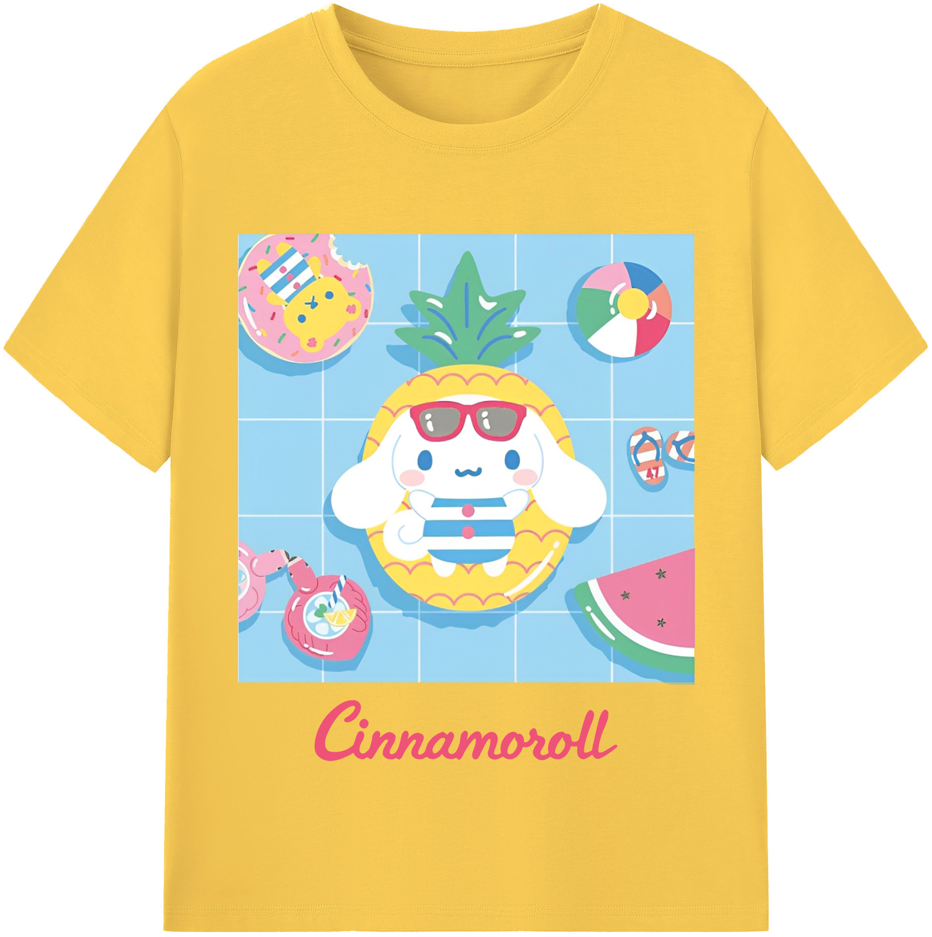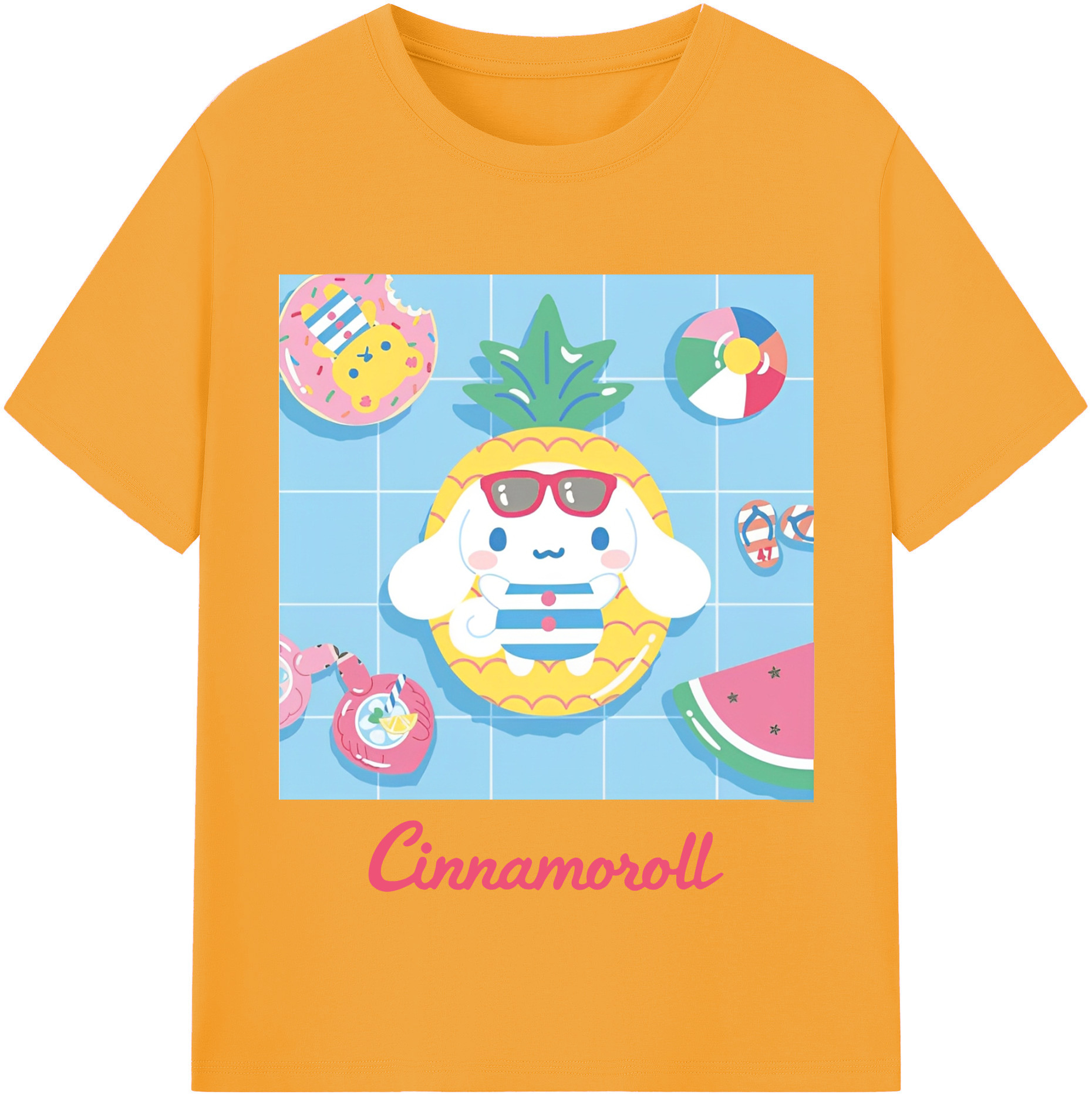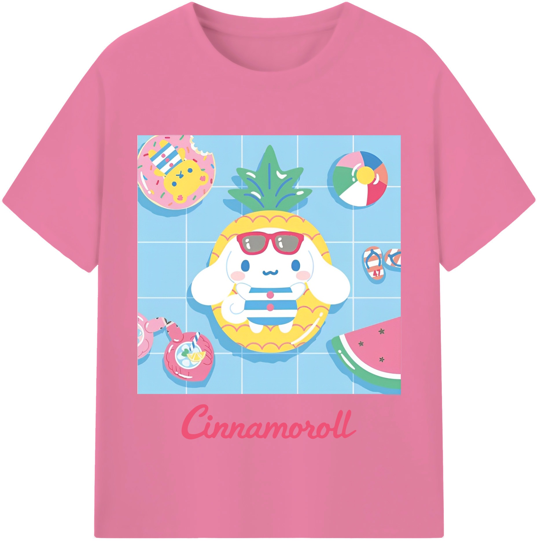 フルーツシリーズのシナモロール - 綿100% ヴィンテージ風 半袖Tシャツ ・ フロントプリント ・ 柔らか肌触り ・ 通気性 快適 ・ スポーツ カジュアル 外出用