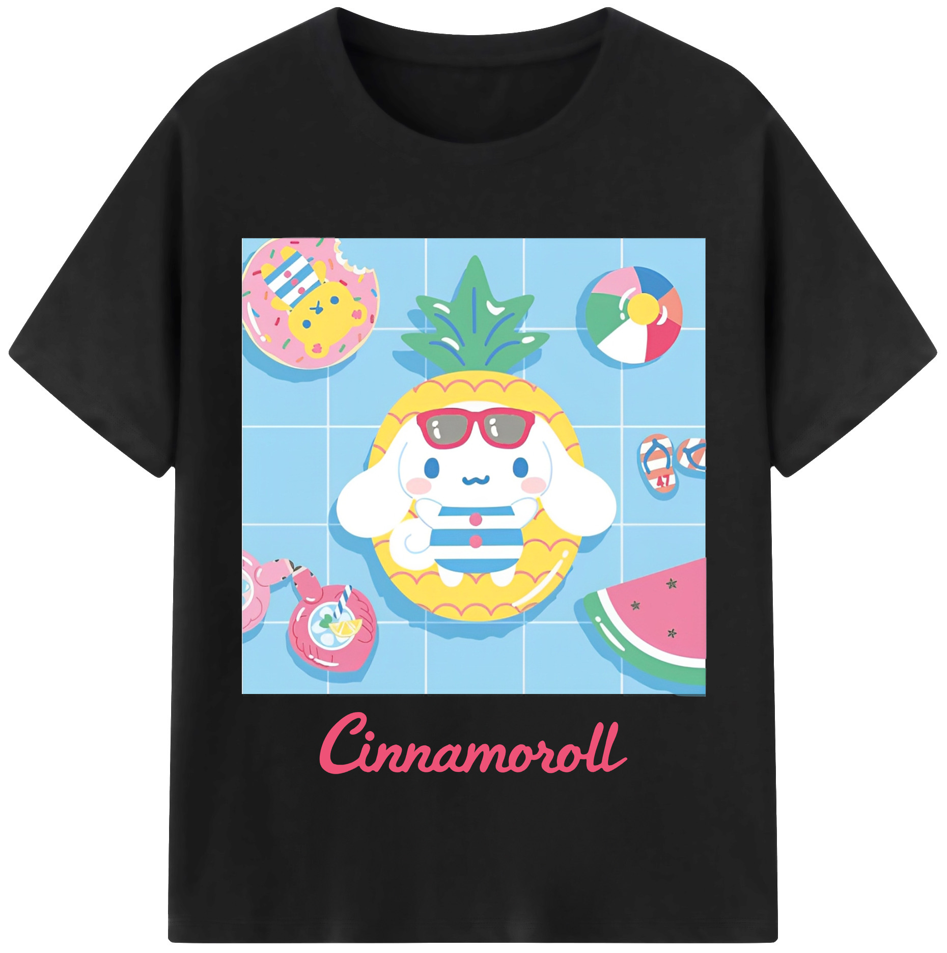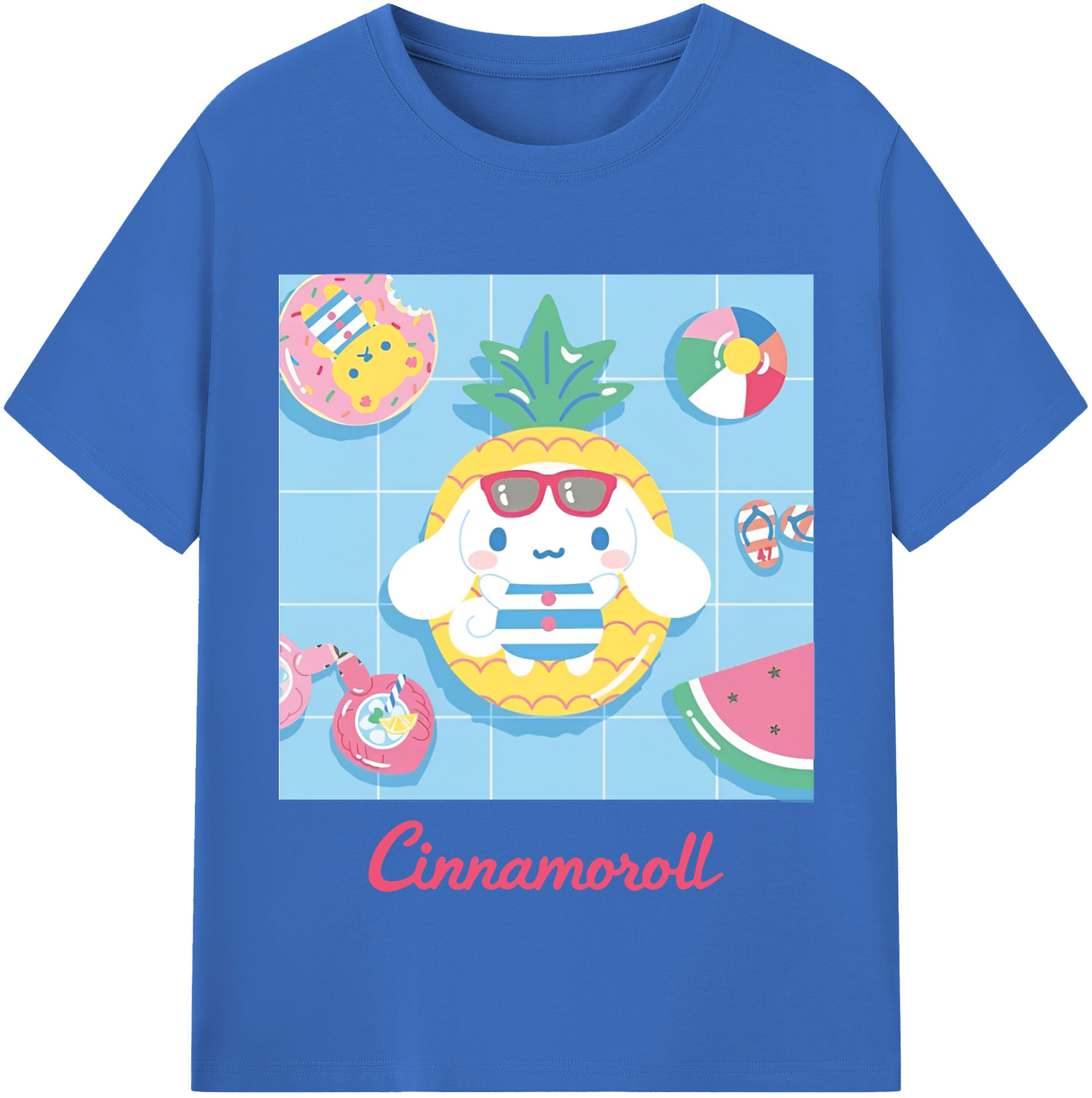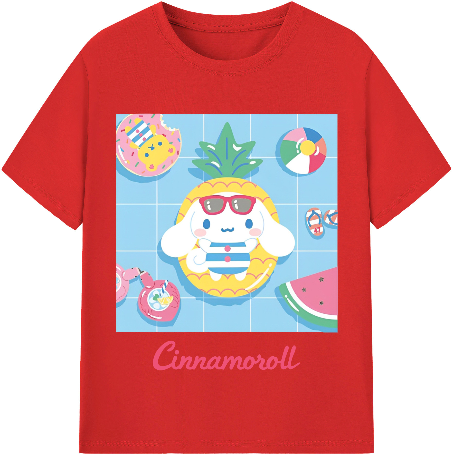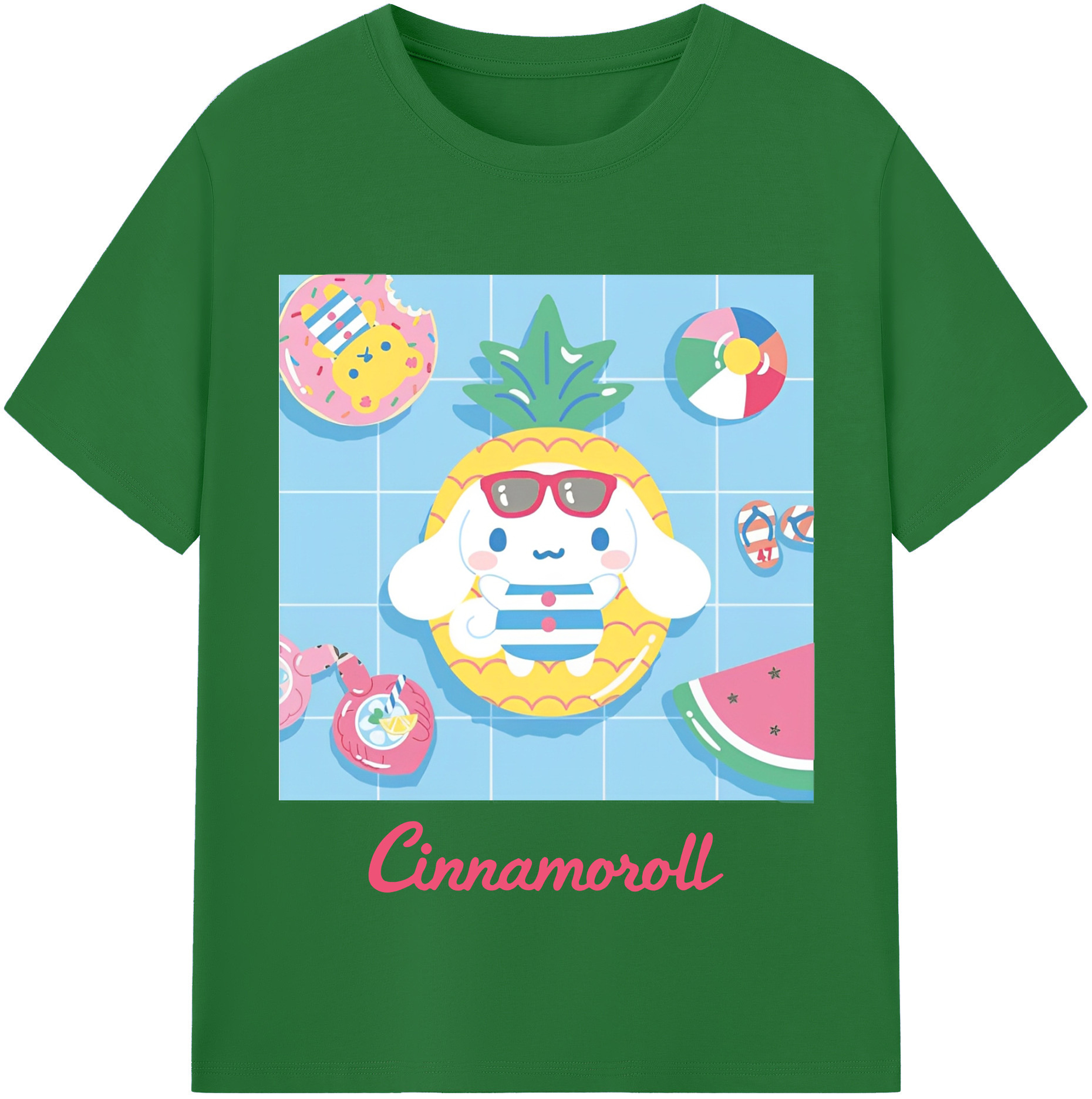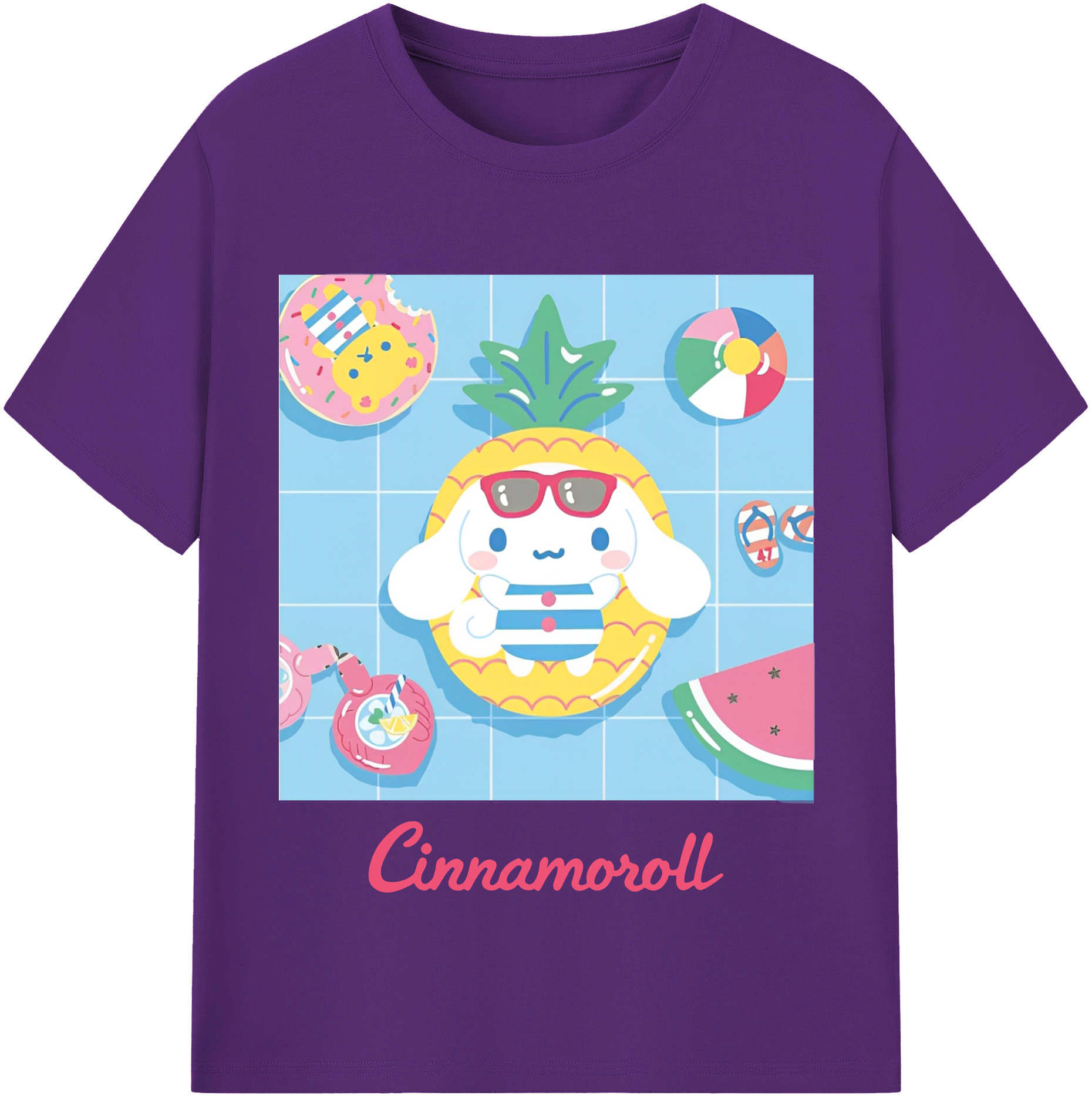 フルーツシリーズのシナモロール - 綿100% ヴィンテージ風 半袖Tシャツ ・ フロントプリント ・ 柔らか肌触り ・ 通気性 快適 ・ スポーツ カジュアル 外出用