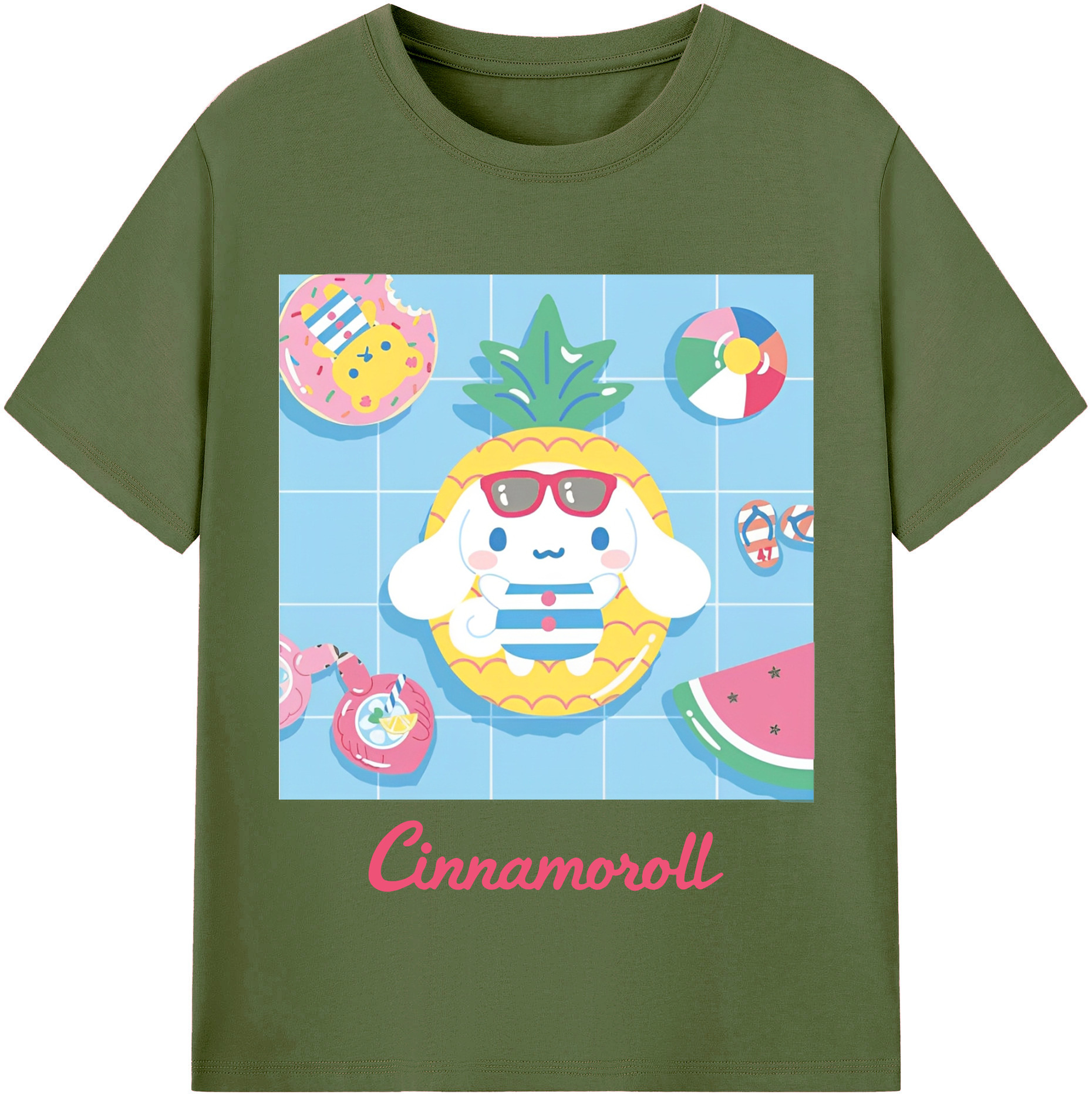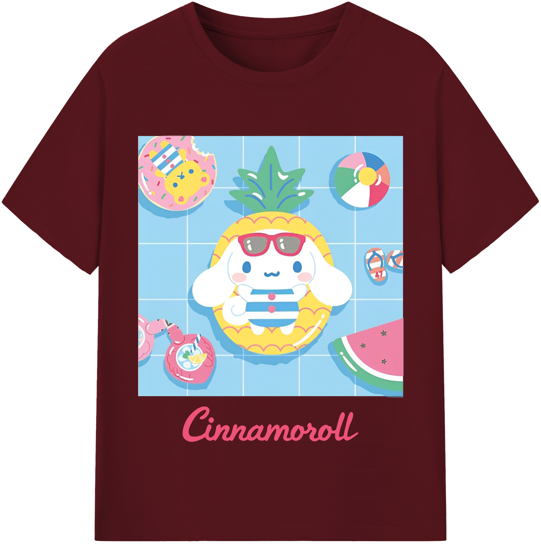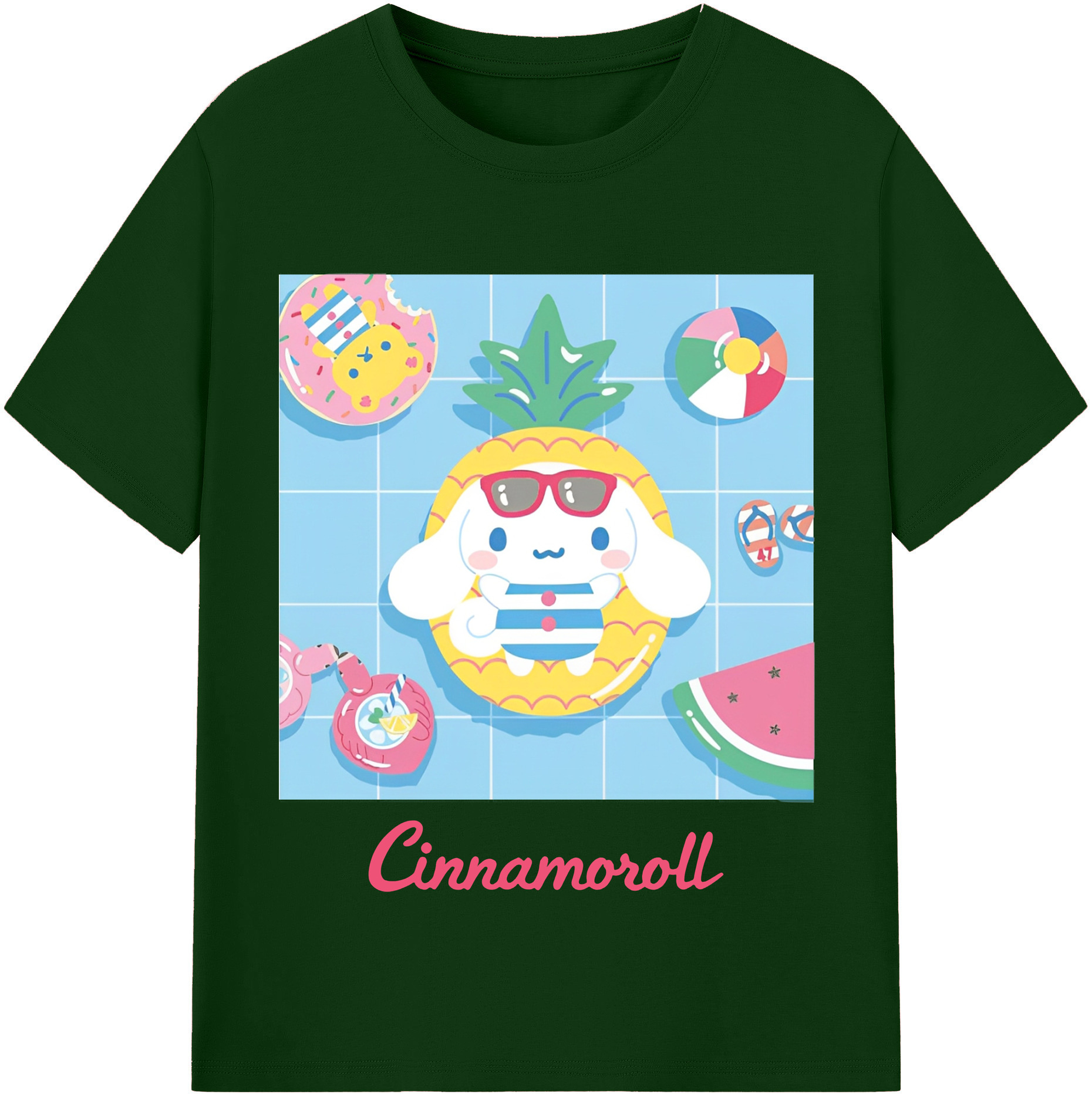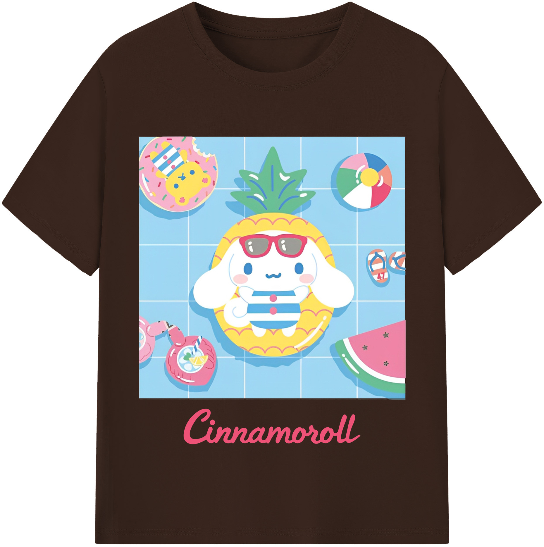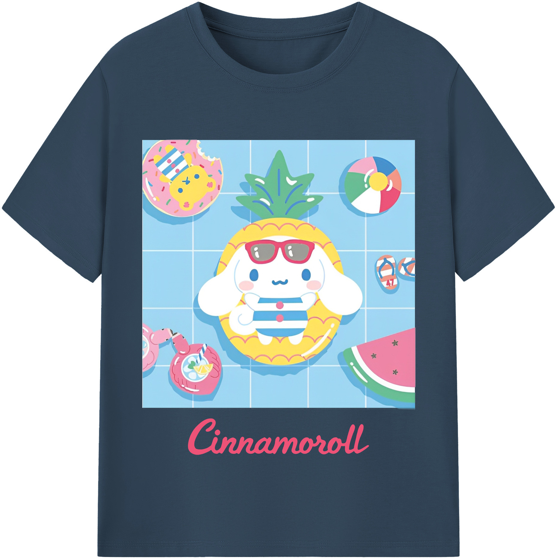 フルーツシリーズのシナモロール - 綿100% ヴィンテージ風 半袖Tシャツ ・ フロントプリント ・ 柔らか肌触り ・ 通気性 快適 ・ スポーツ カジュアル 外出用