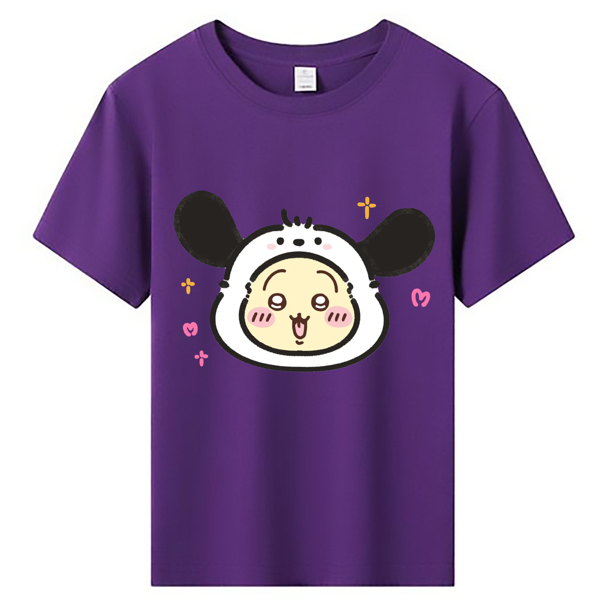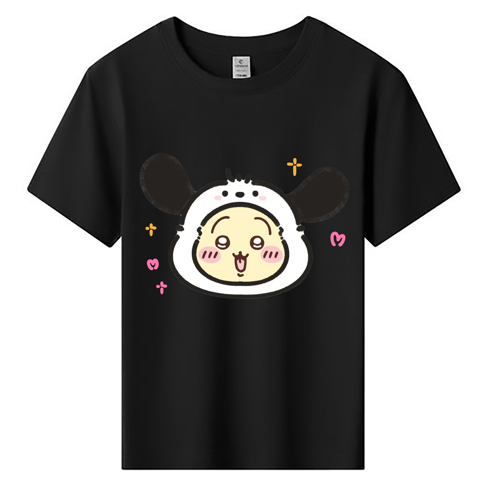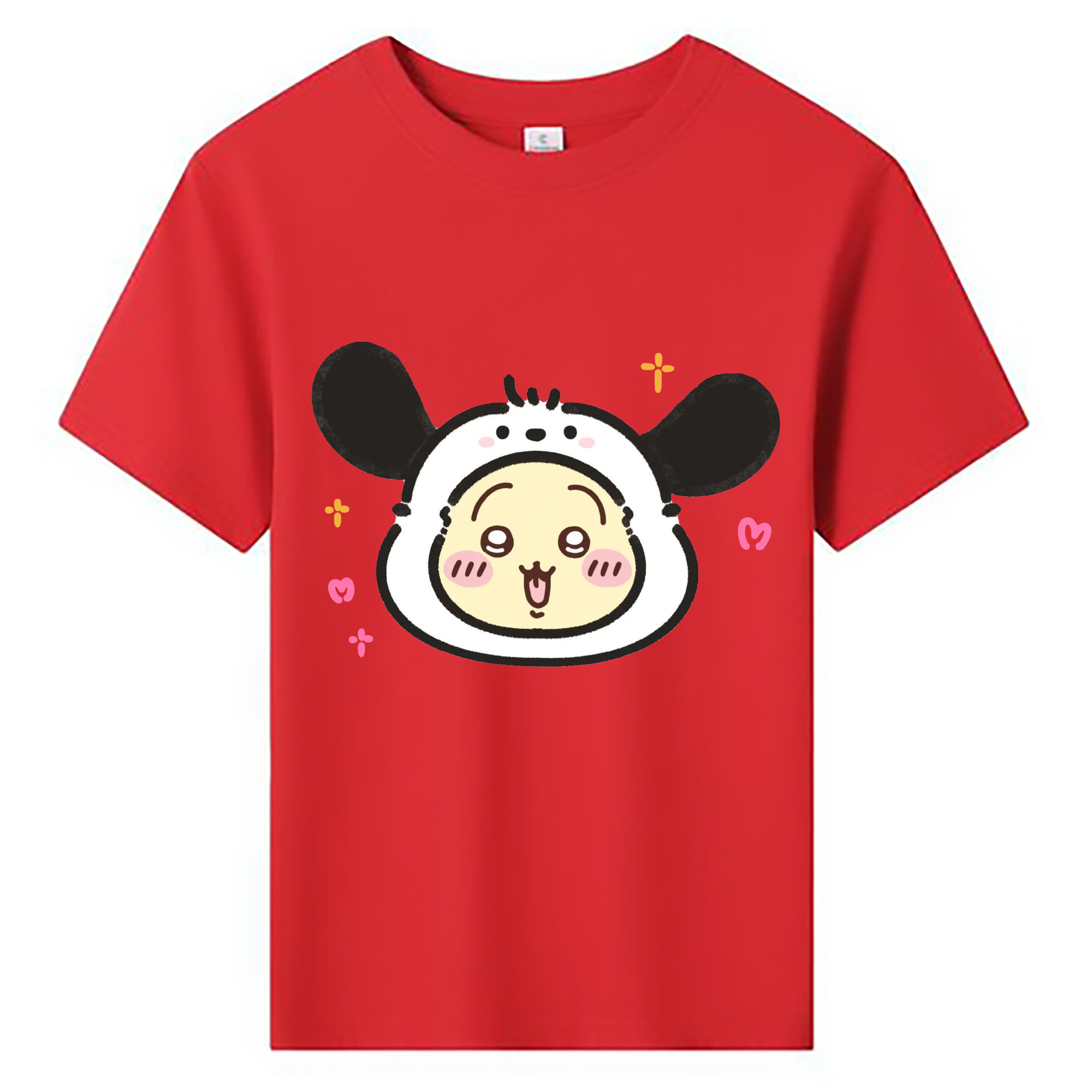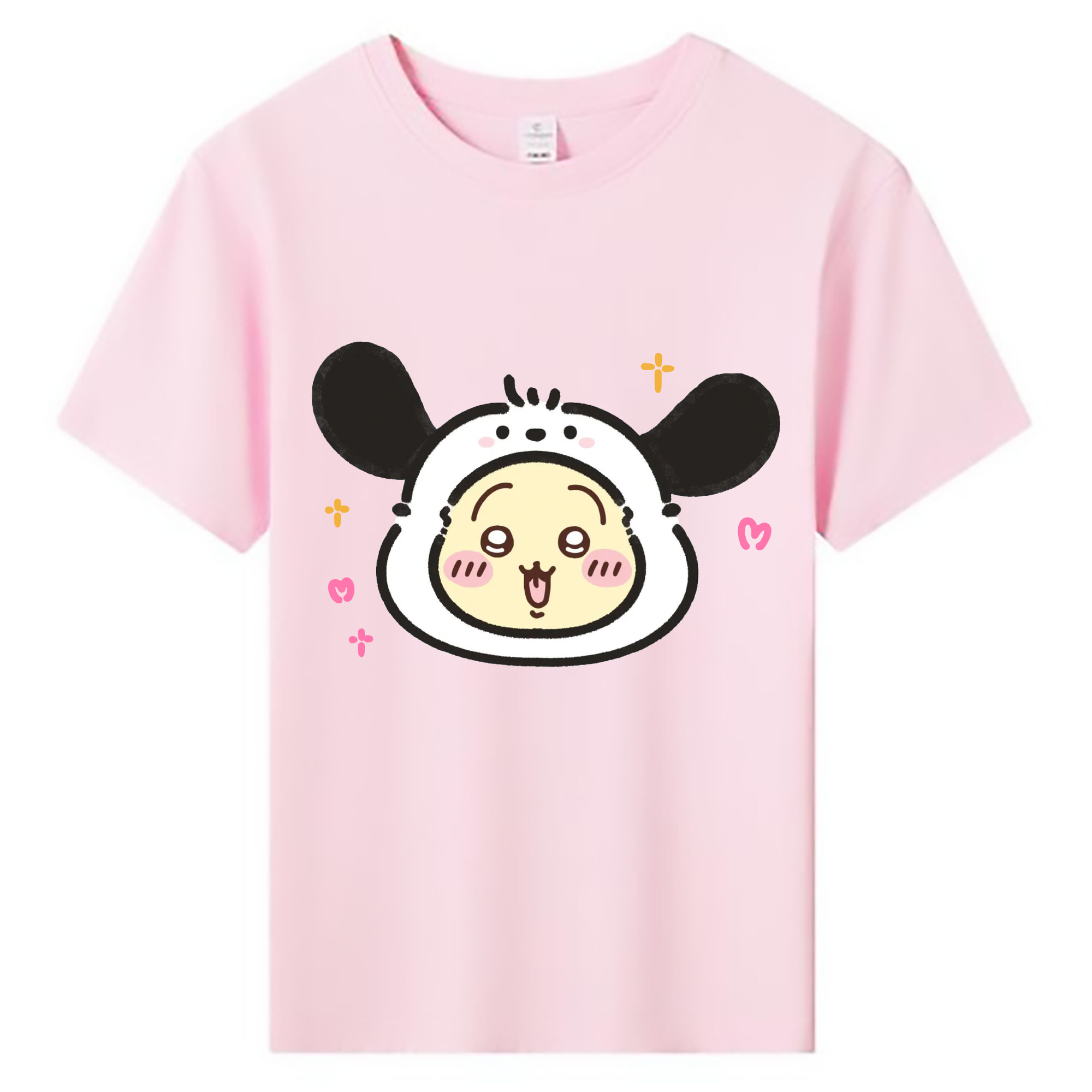 ポチャッコ&ちいかわ - 綿100% ヴィンテージ風 半袖Tシャツ ・ フロントプリント ・ 柔らか肌触り ・ 通気性 快適 ・ スポーツ カジュアル 外出用