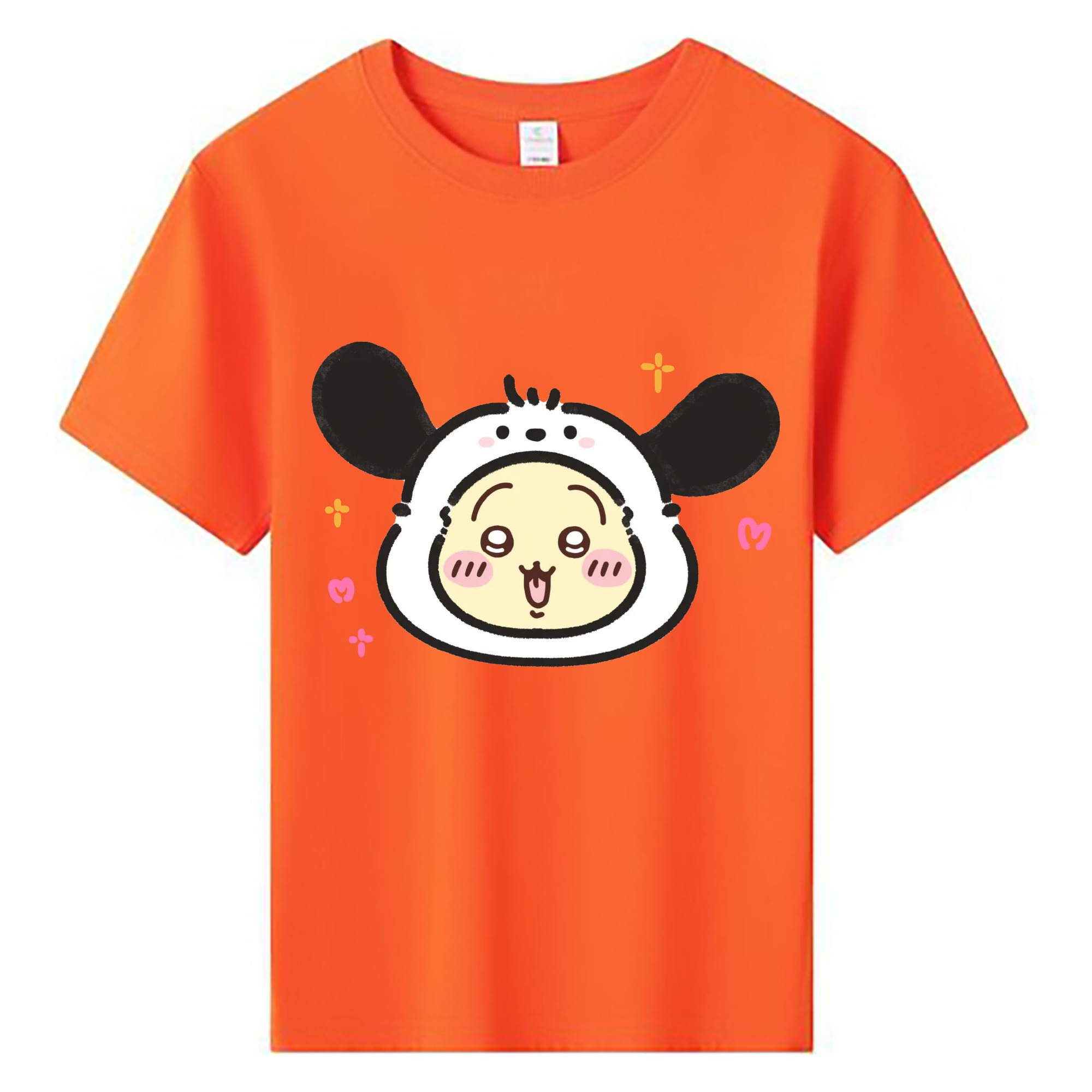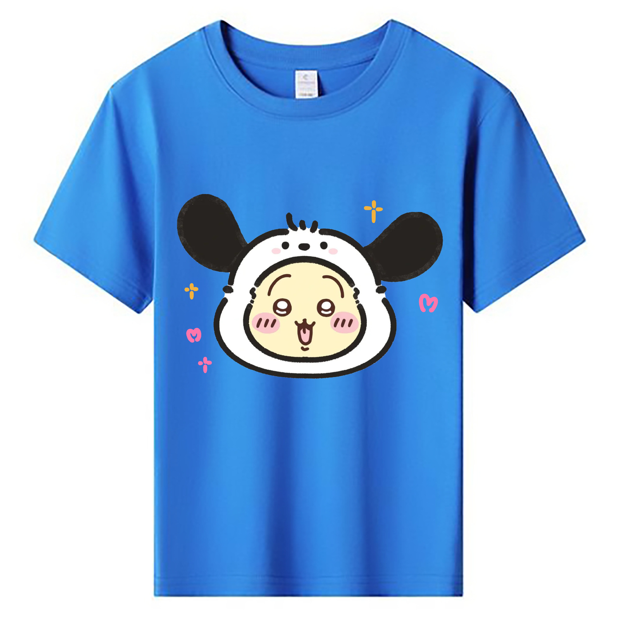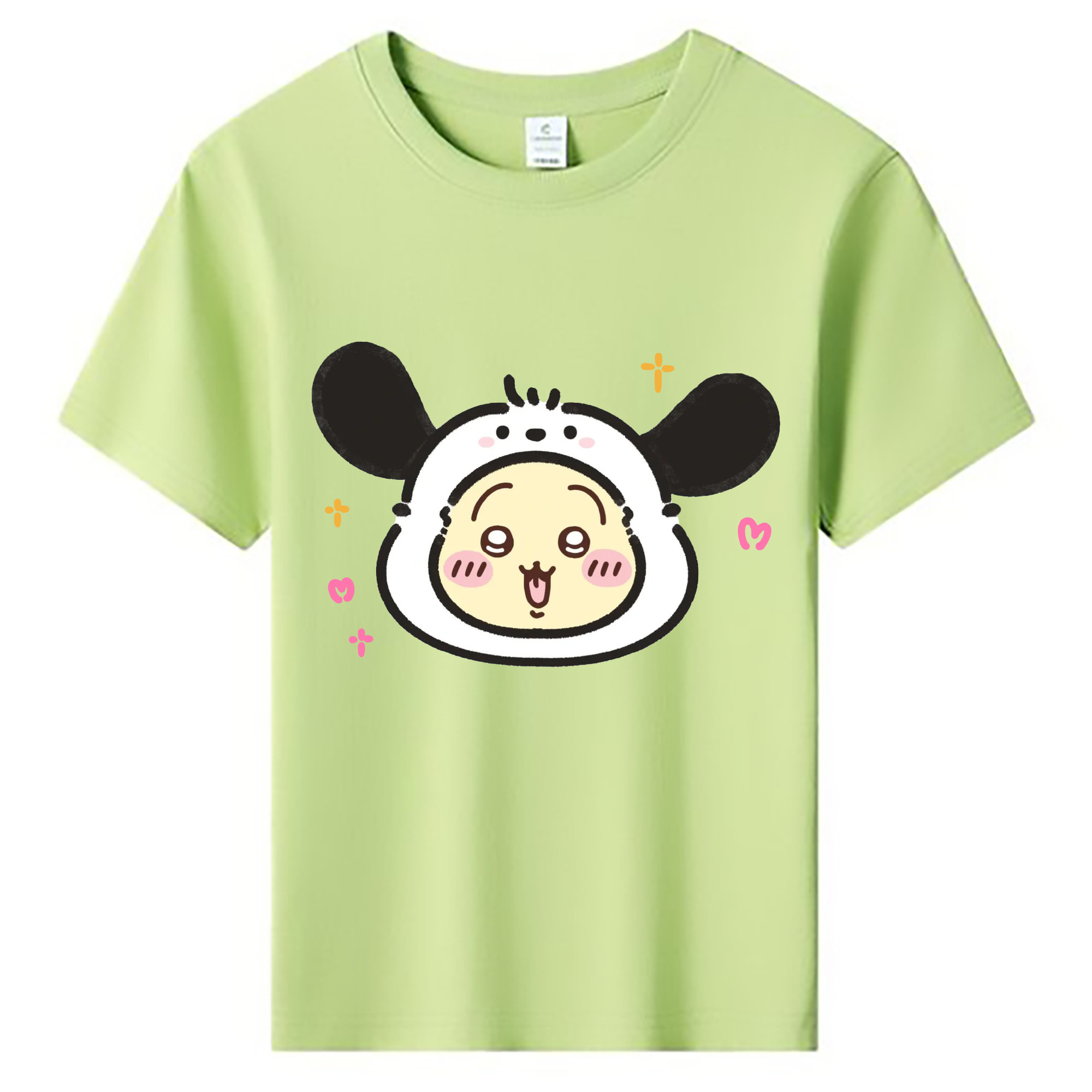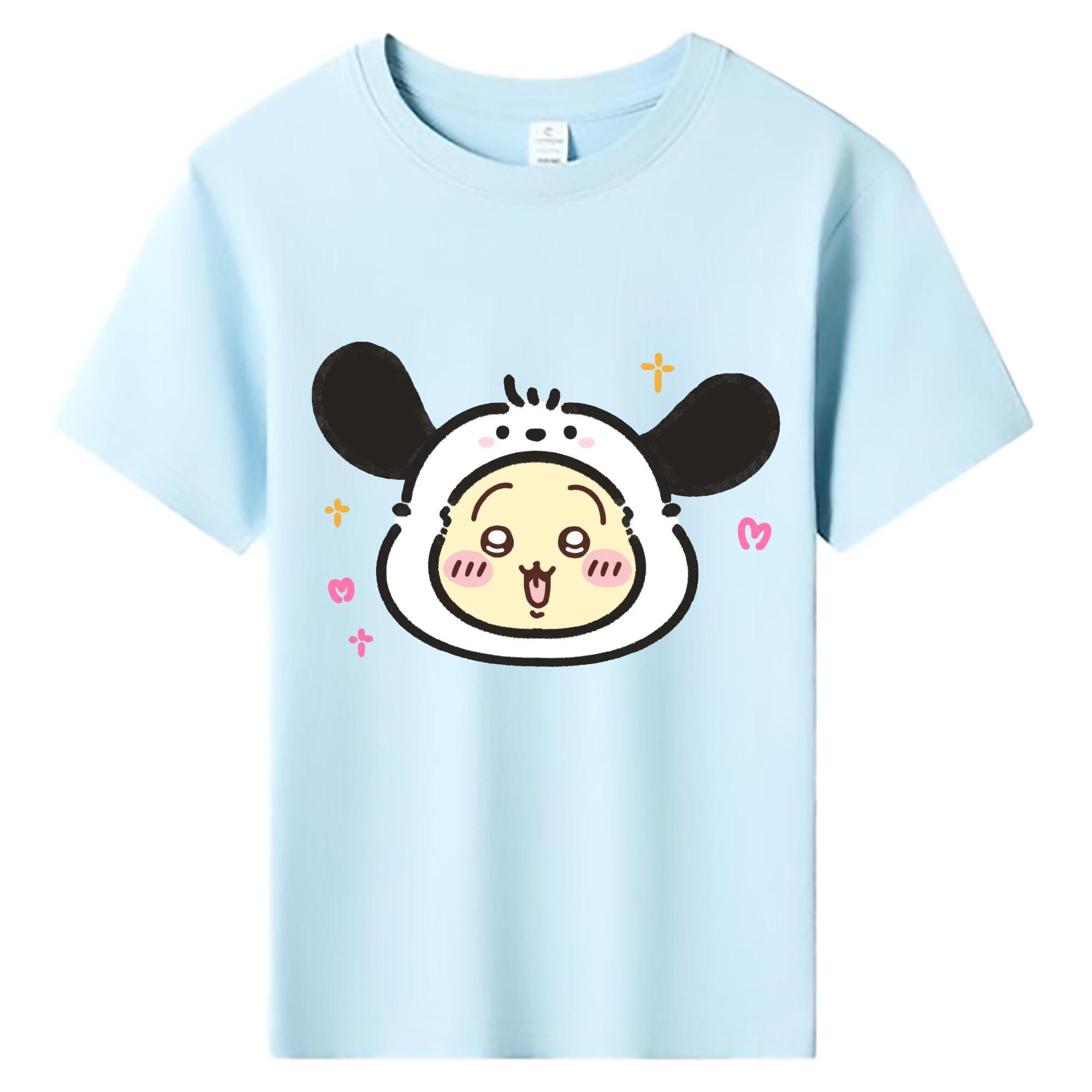 ポチャッコ&ちいかわ - 綿100% ヴィンテージ風 半袖Tシャツ ・ フロントプリント ・ 柔らか肌触り ・ 通気性 快適 ・ スポーツ カジュアル 外出用