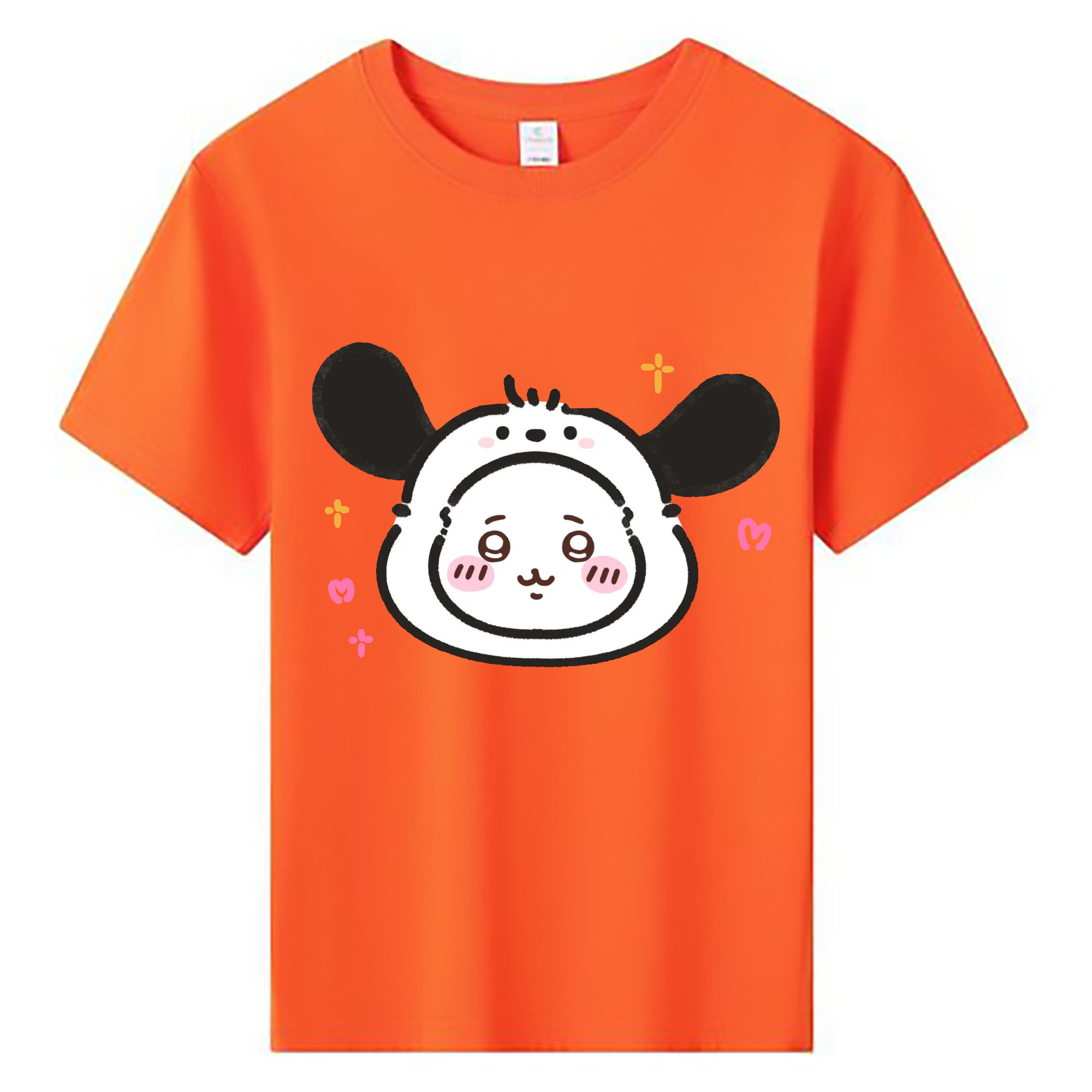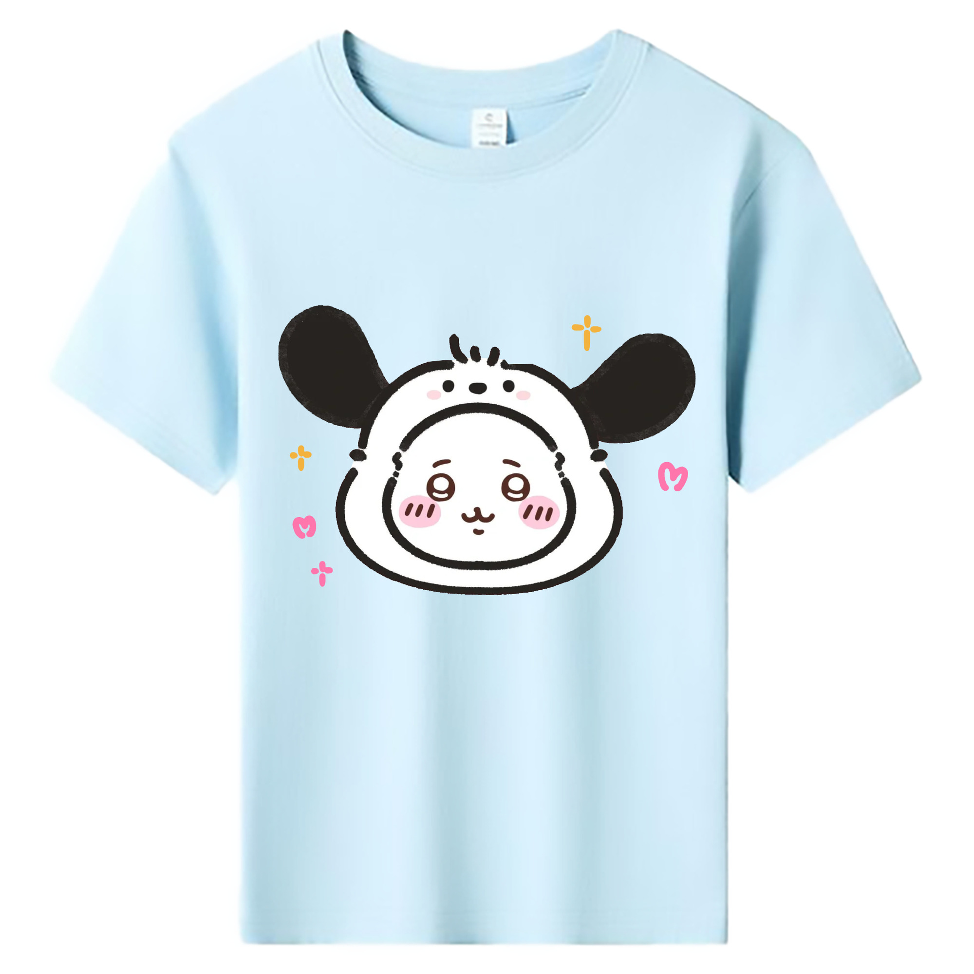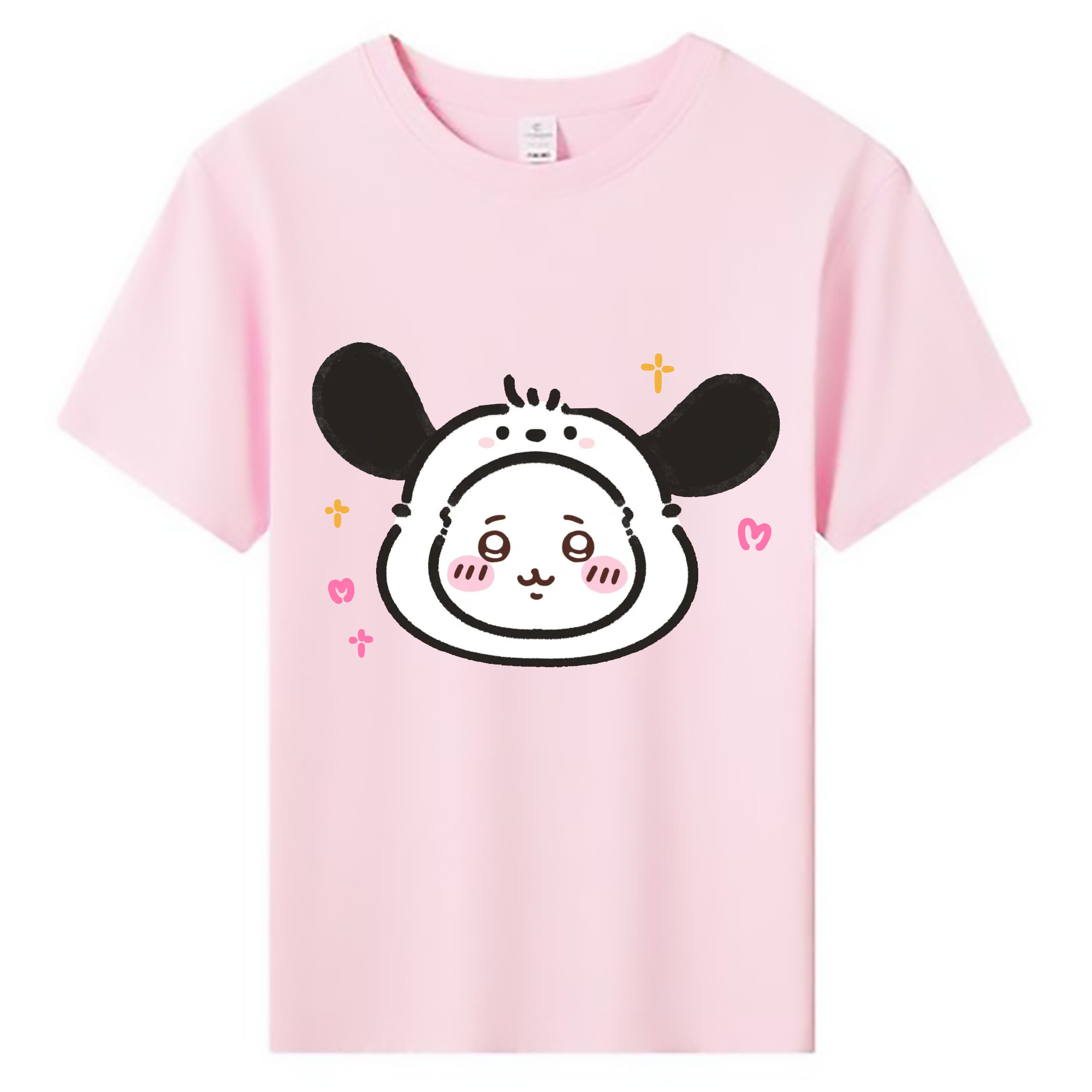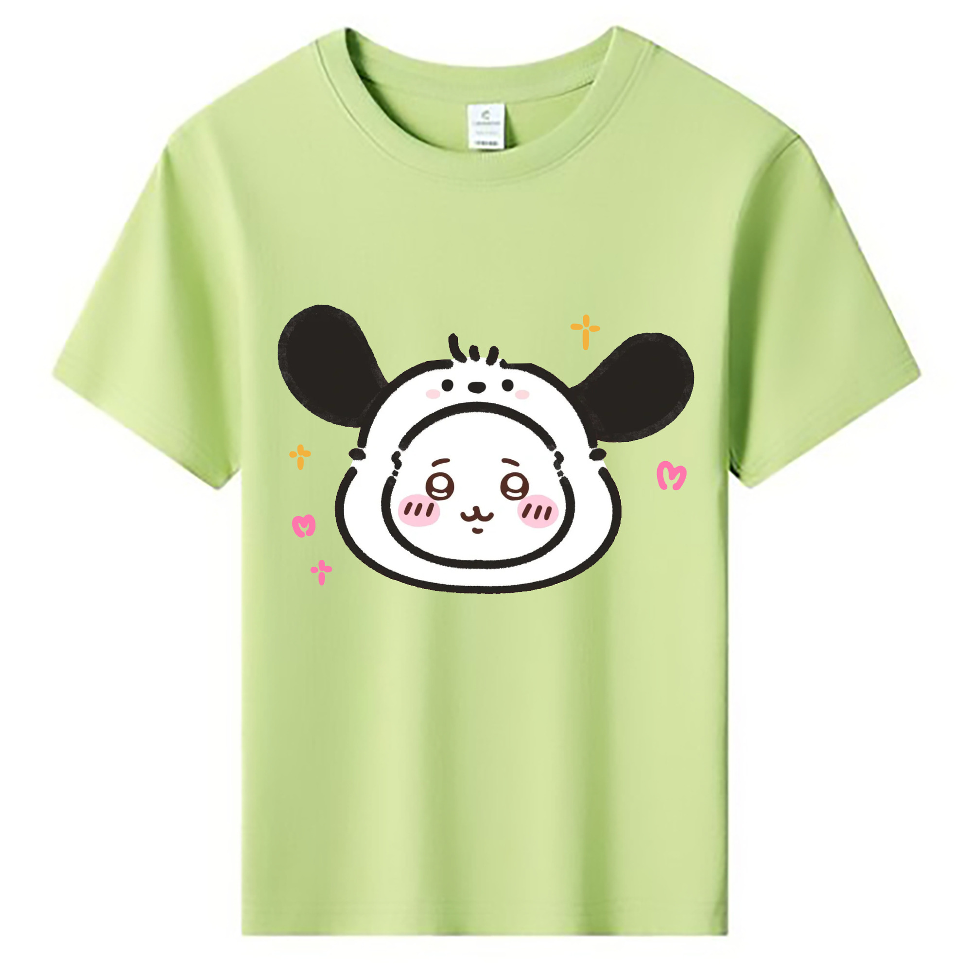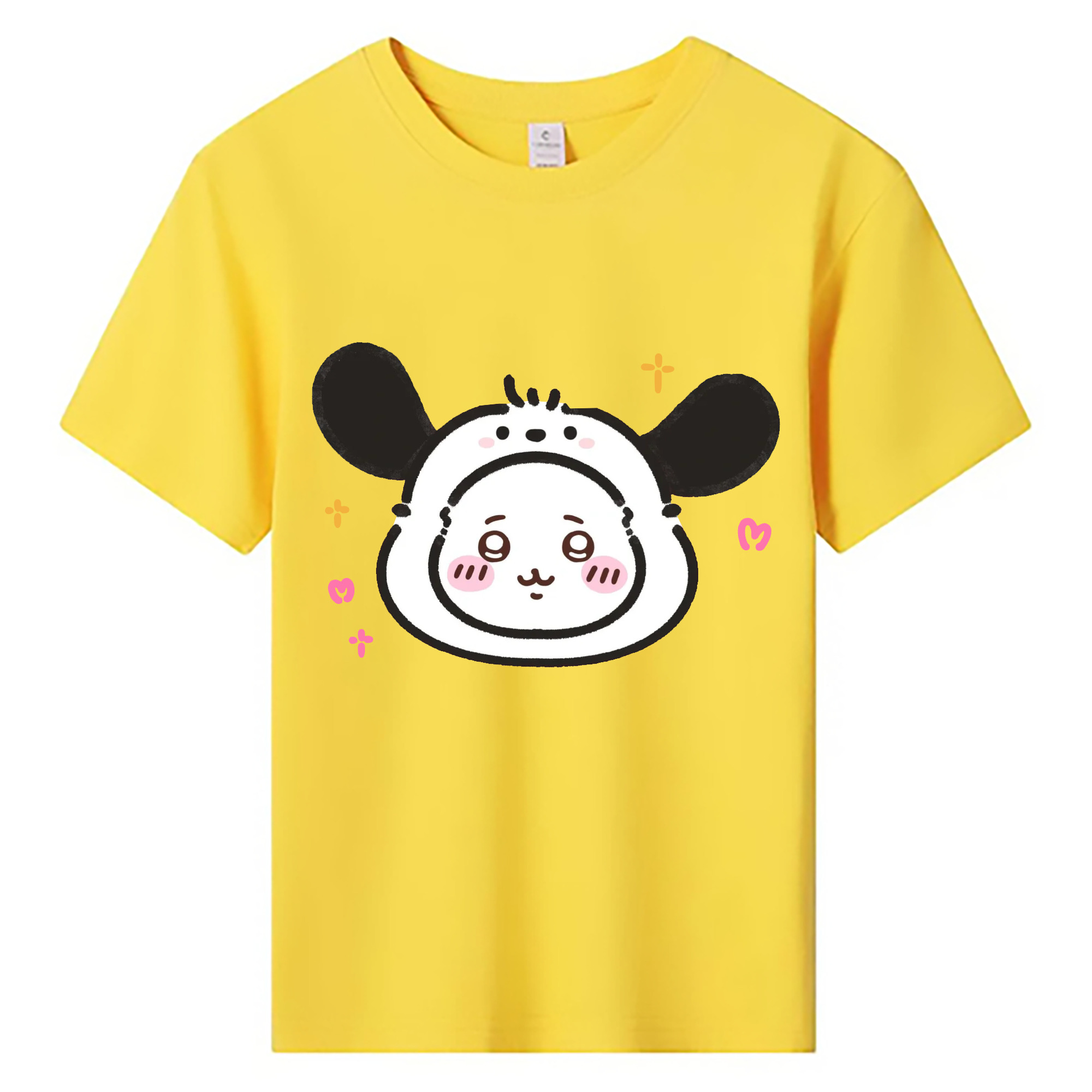 ポチャッコ&ちいかわ - 綿100% ヴィンテージ風 半袖Tシャツ ・ フロントプリント ・ 柔らか肌触り ・ 通気性 快適 ・ スポーツ カジュアル 外出用