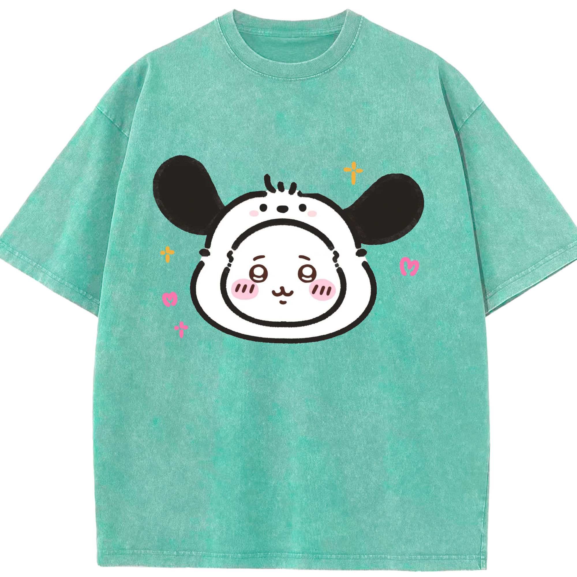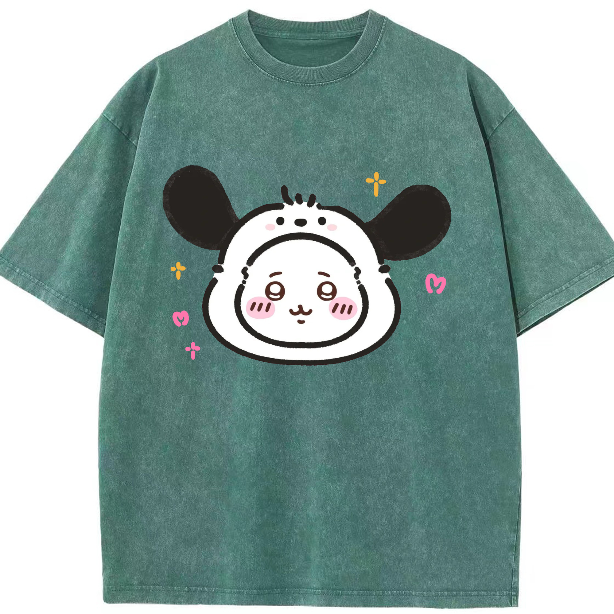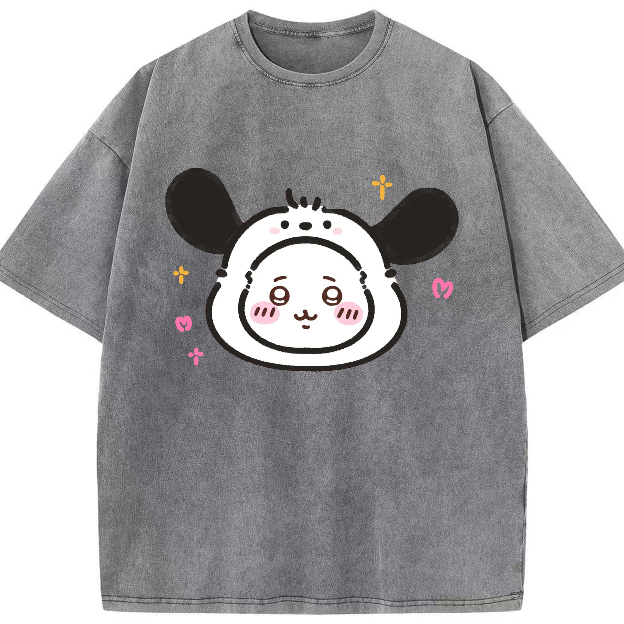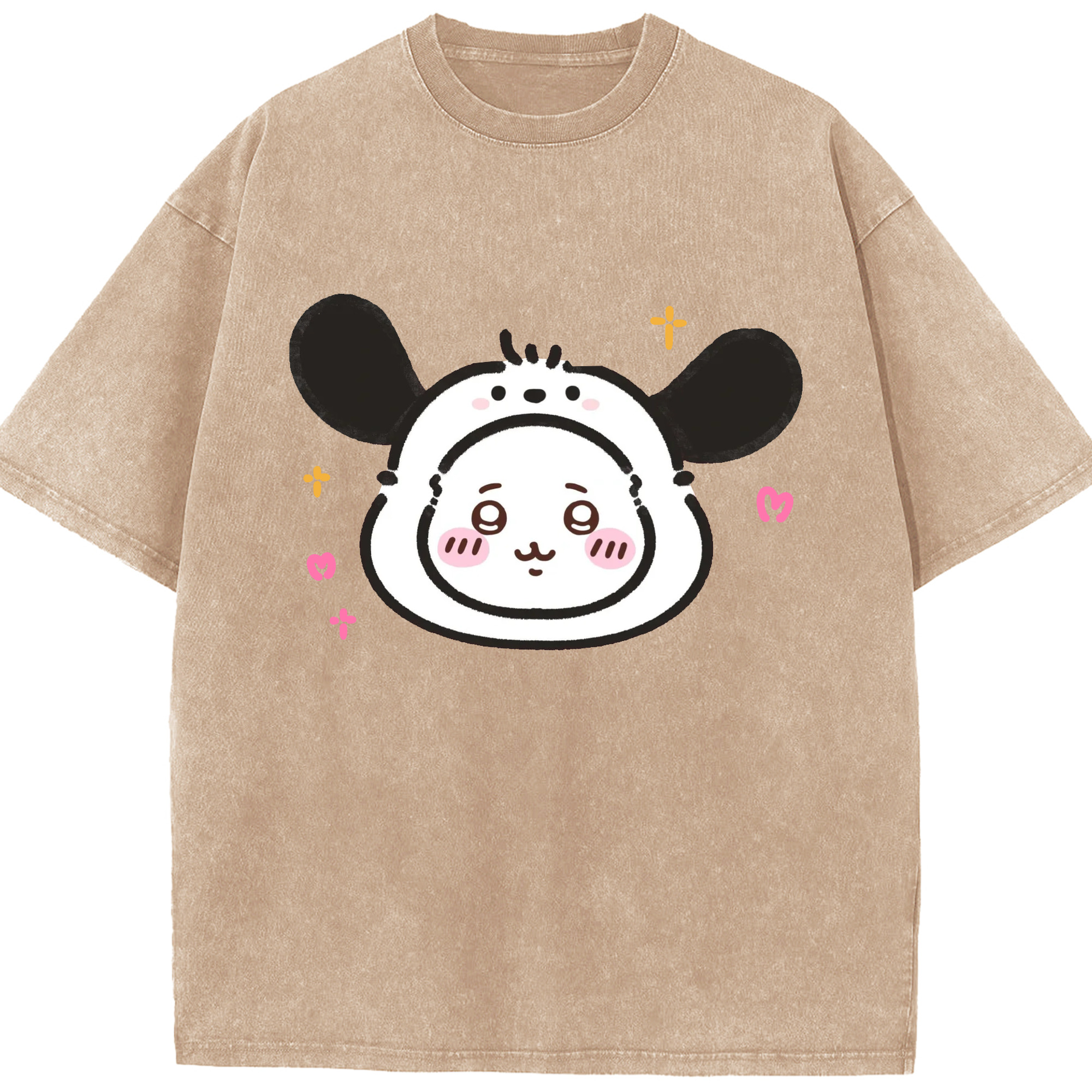 ポチャッコ&ちいかわ - 綿100% ヴィンテージ風 半袖Tシャツ ・ フロントプリント ・ 柔らか肌触り ・ 通気性 快適 ・ スポーツ カジュアル 外出用