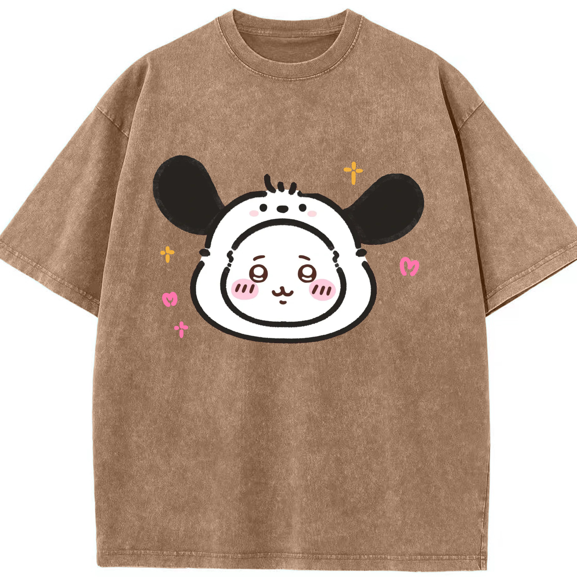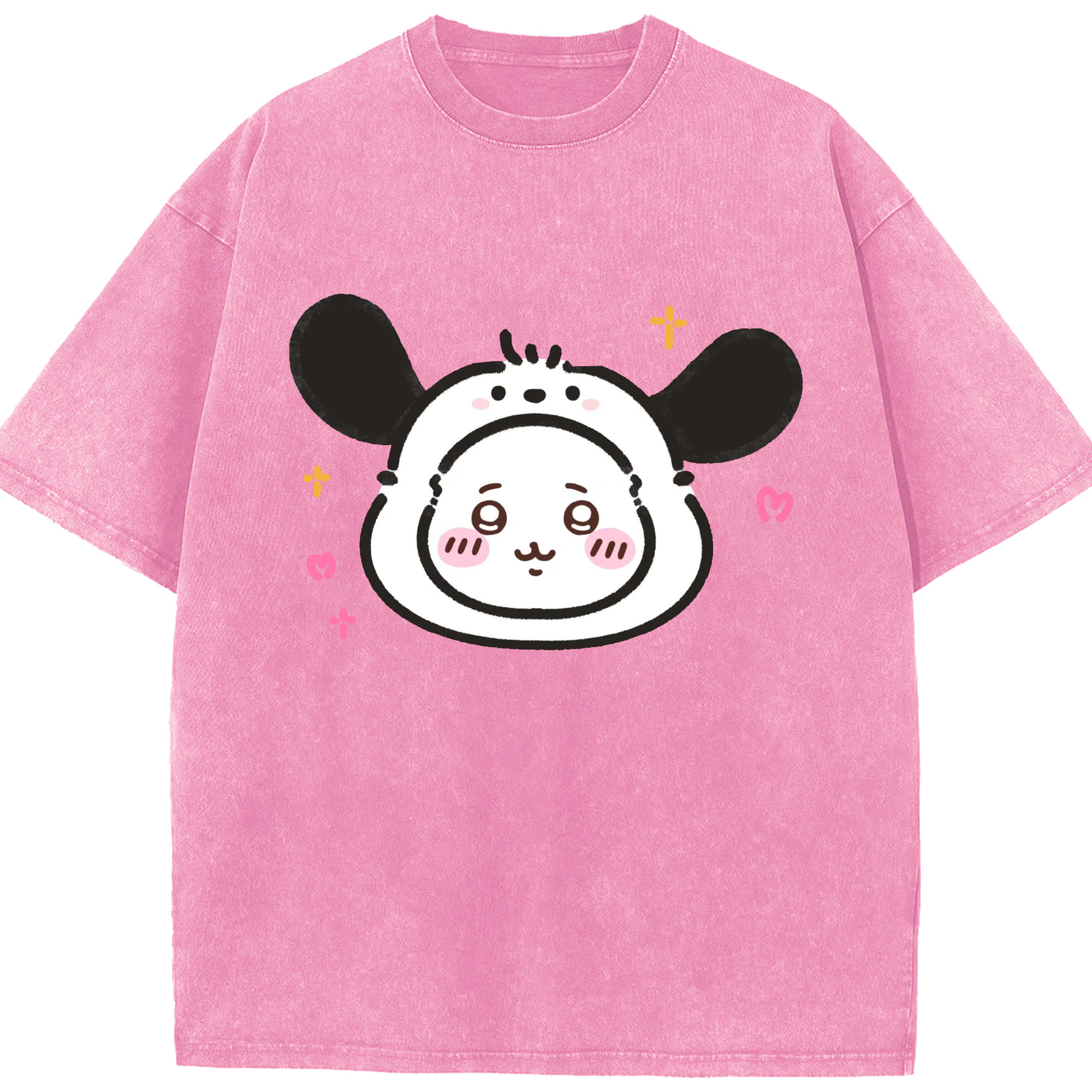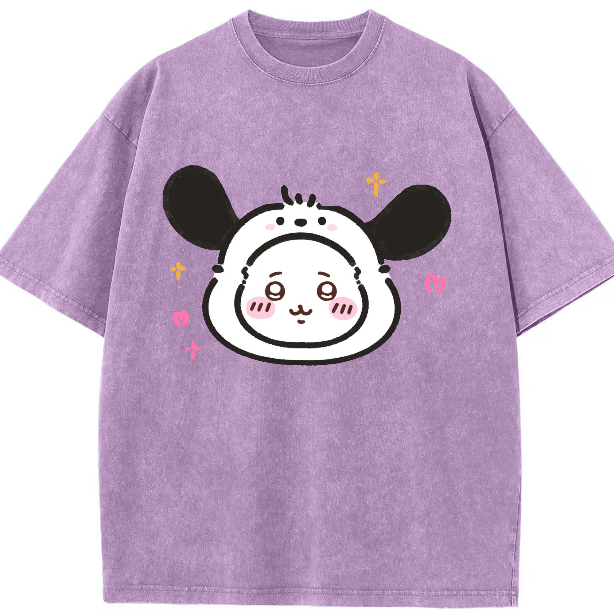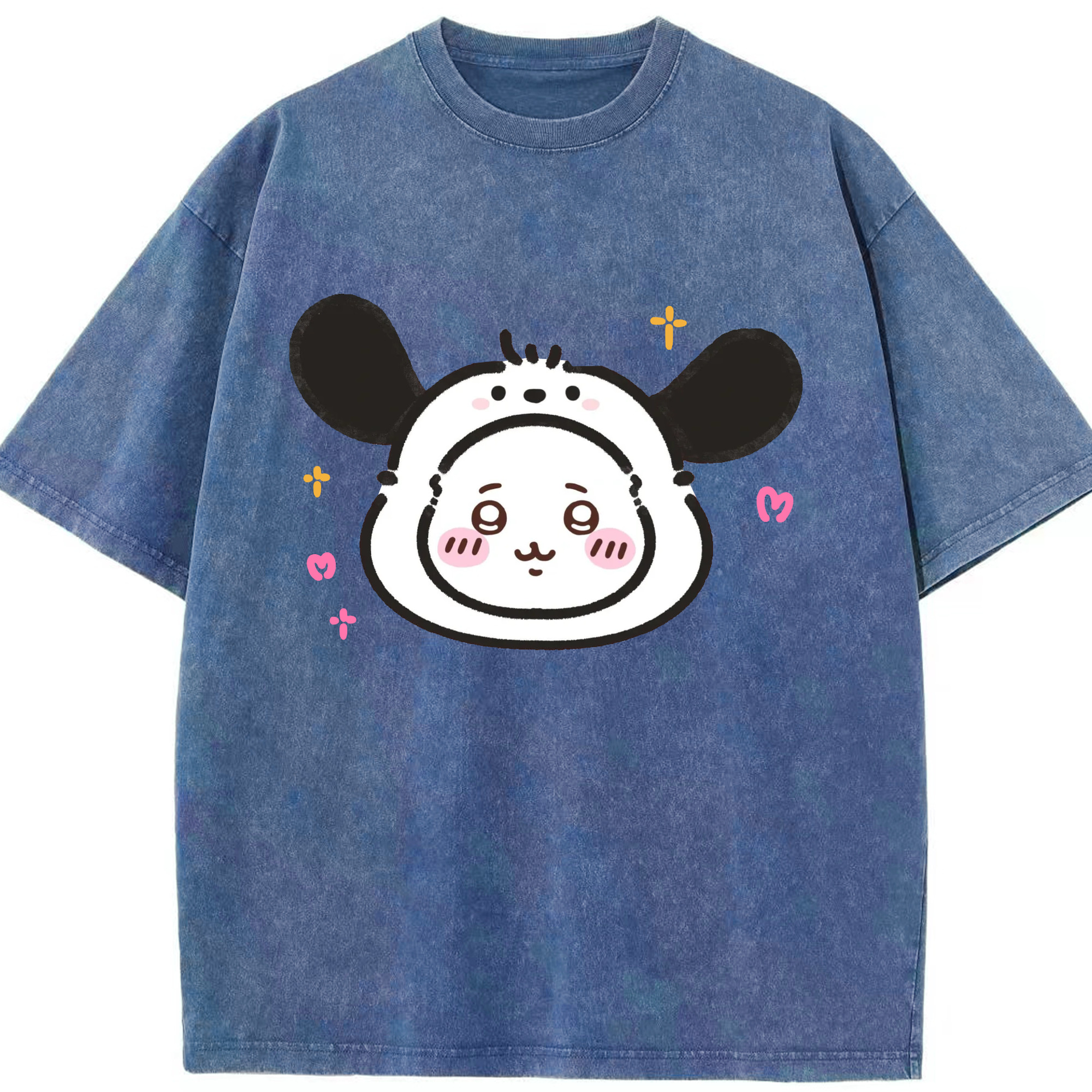 ポチャッコ&ちいかわ - 綿100% ヴィンテージ風 半袖Tシャツ ・ フロントプリント ・ 柔らか肌触り ・ 通気性 快適 ・ スポーツ カジュアル 外出用