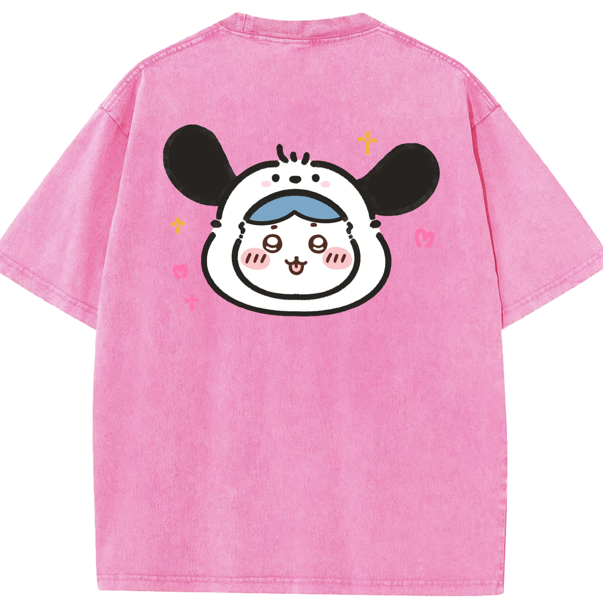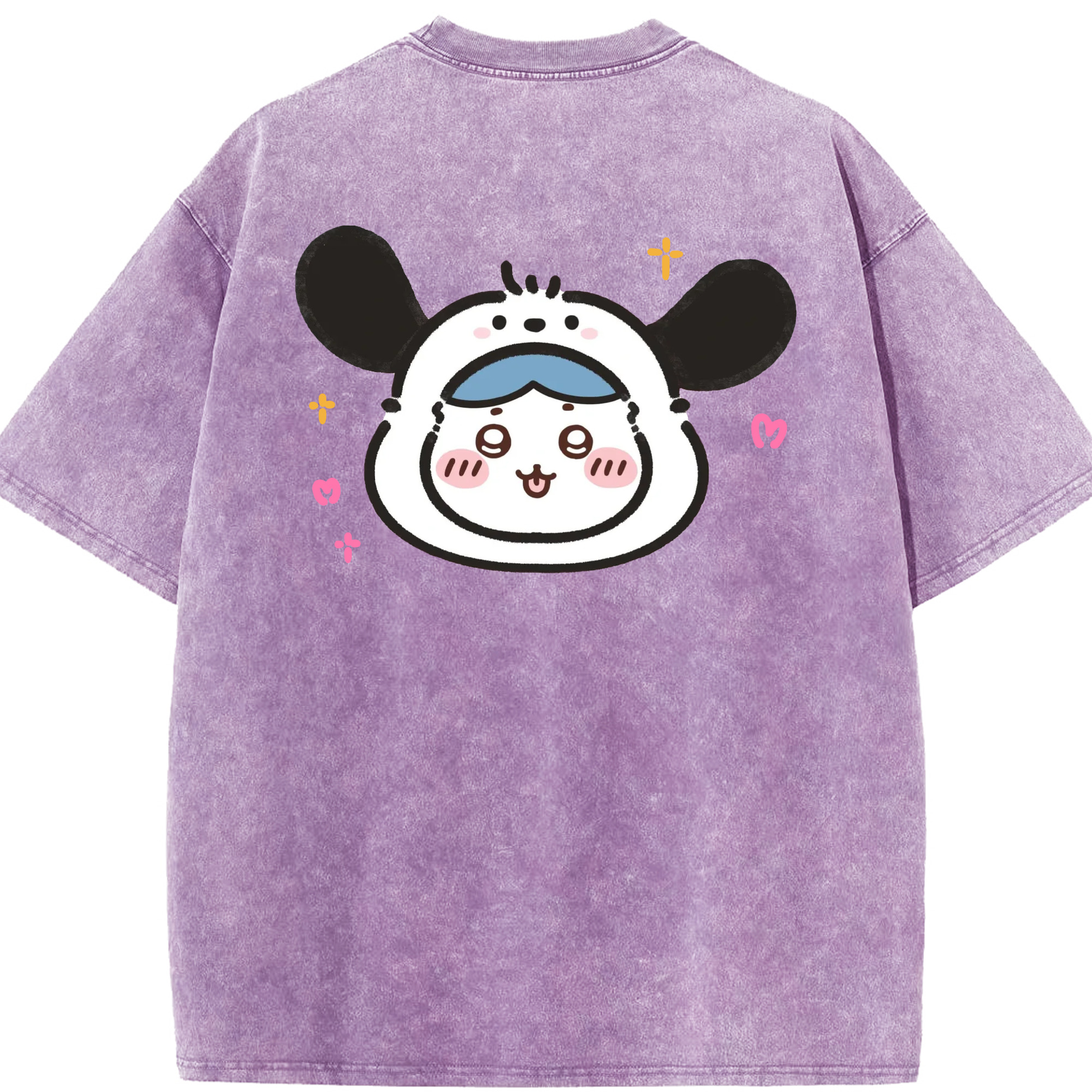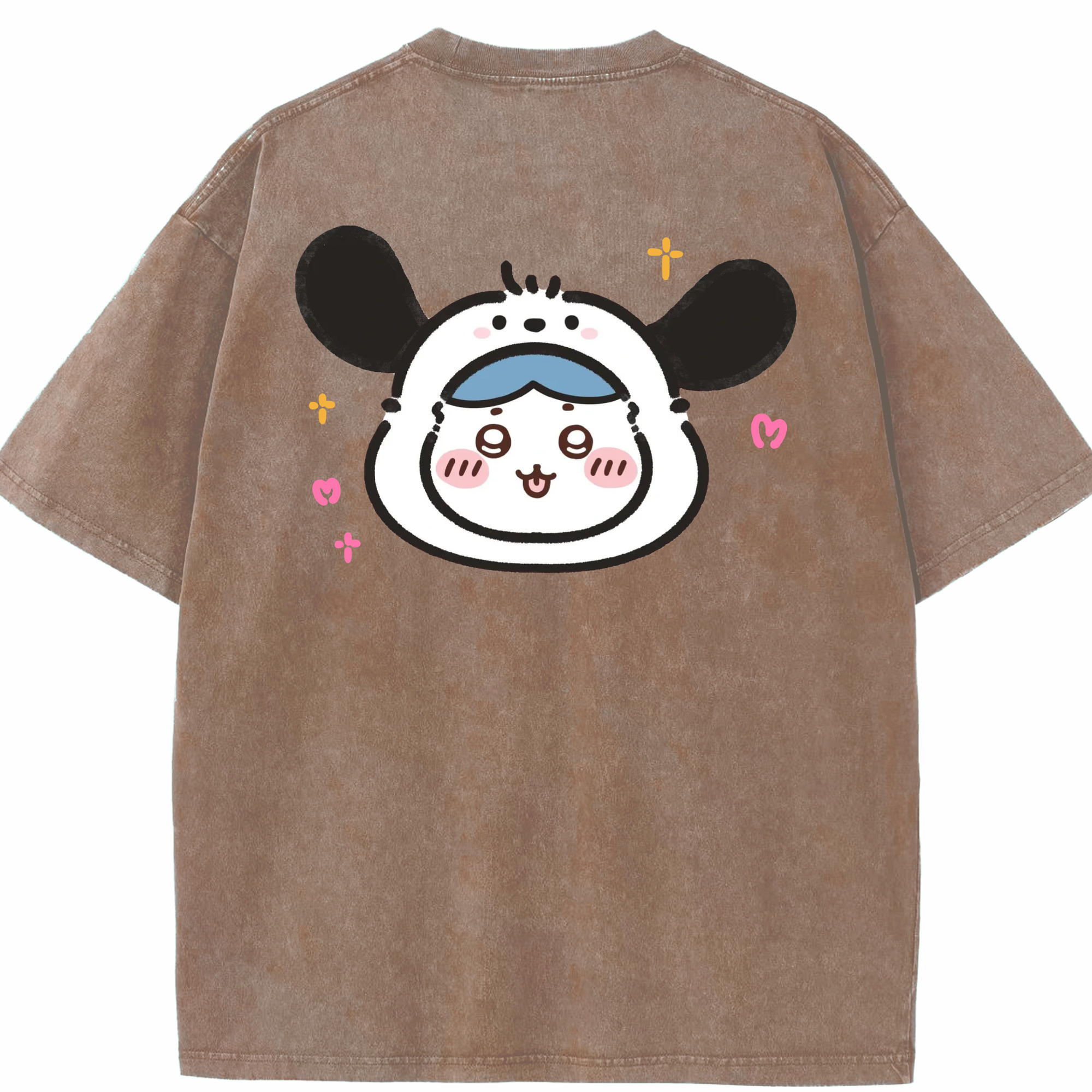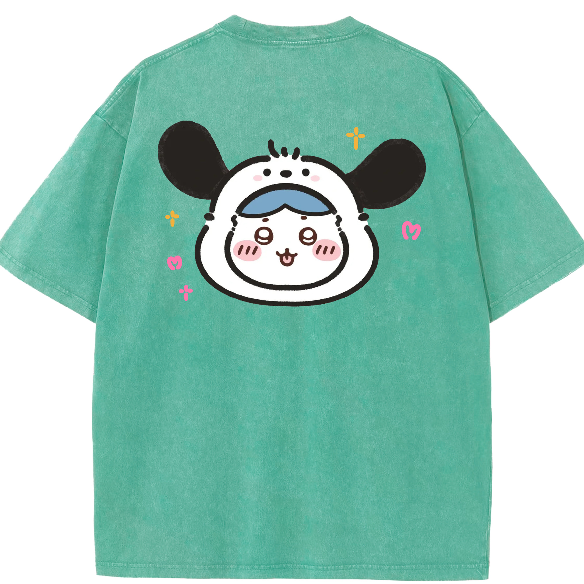 ポチャッコ&ちいかわ - 綿100% ヴィンテージ風 半袖Tシャツ ・ フロントプリント ・ 柔らか肌触り ・ 通気性 快適 ・ スポーツ カジュアル 外出用