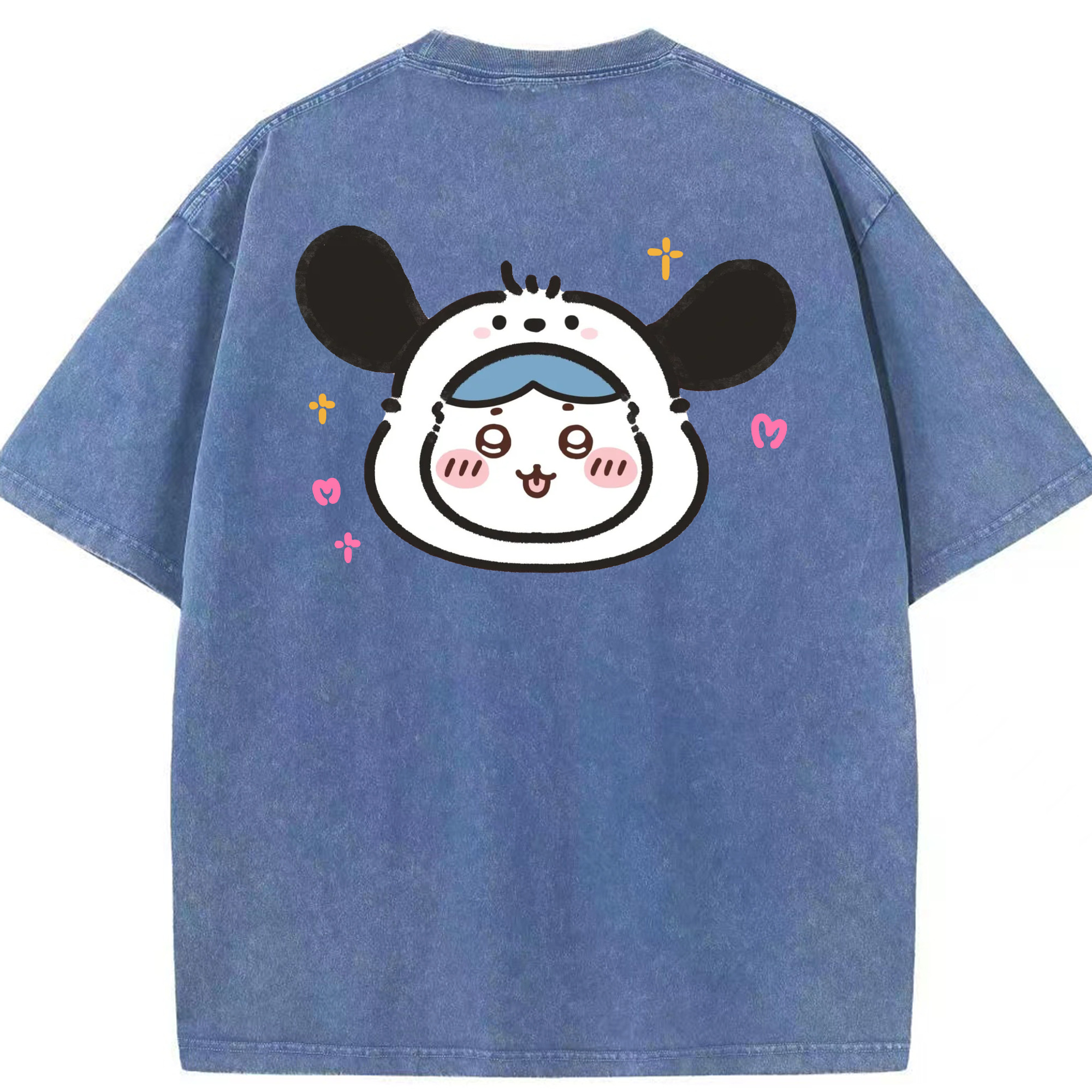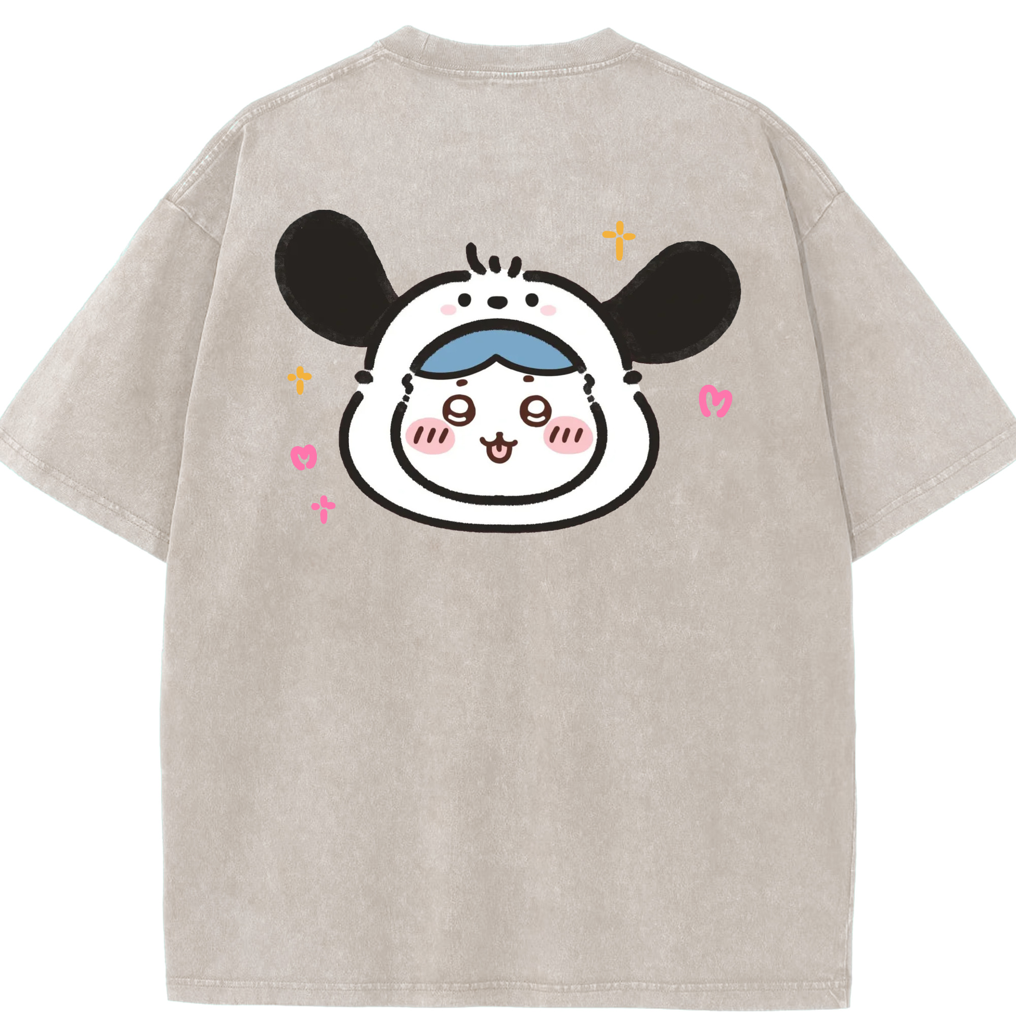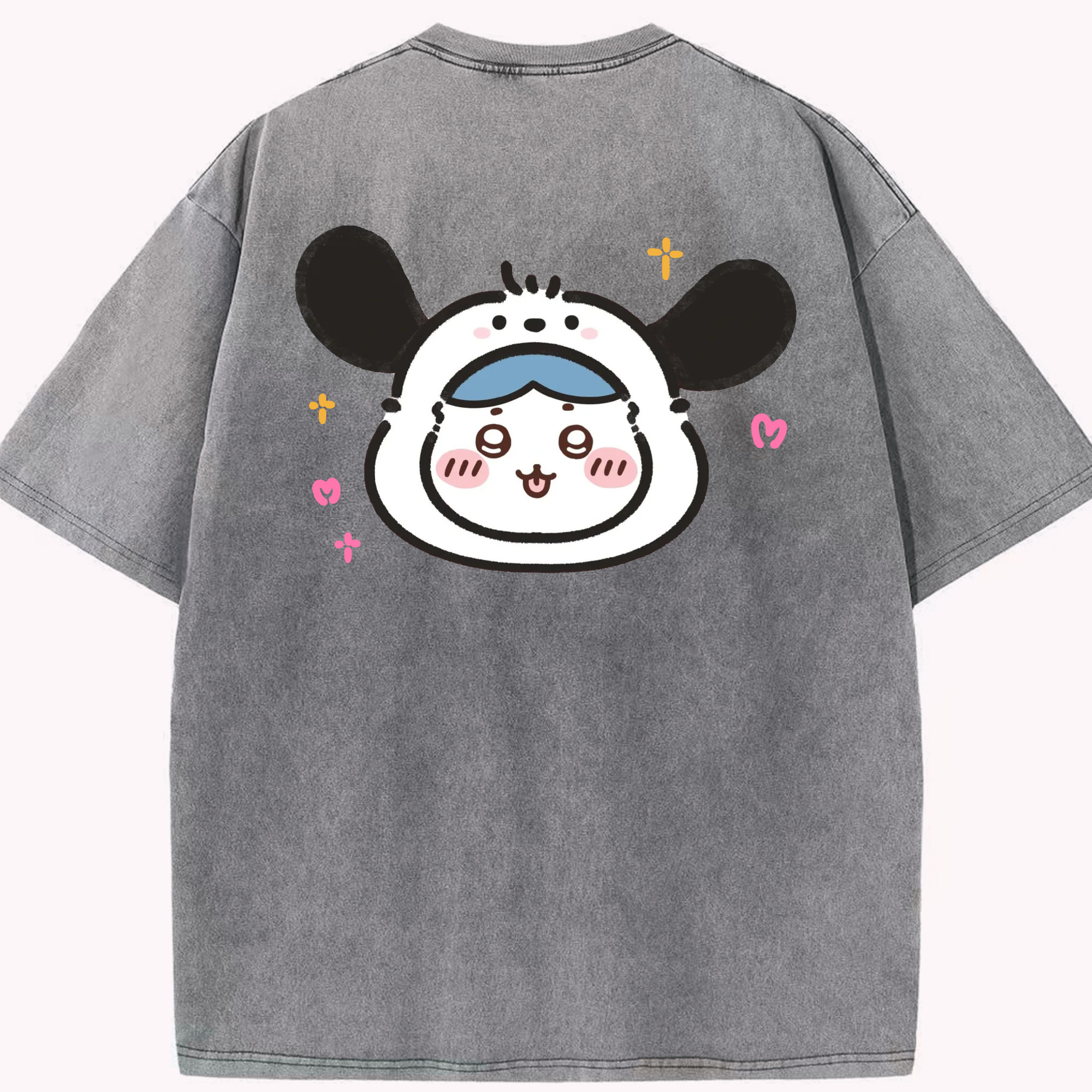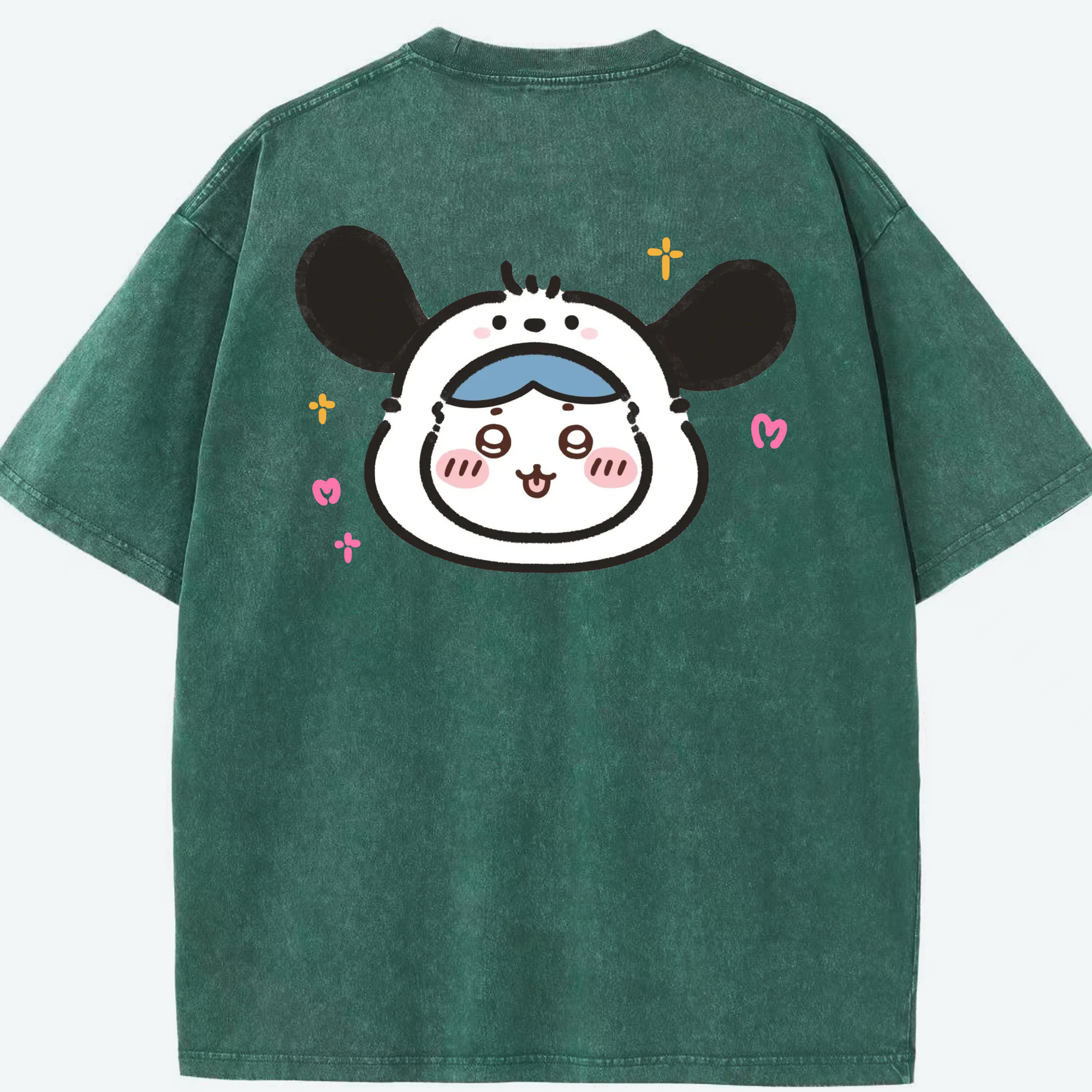 ポチャッコ&ちいかわ - 綿100% ヴィンテージ風 半袖Tシャツ ・ フロントプリント ・ 柔らか肌触り ・ 通気性 快適 ・ スポーツ カジュアル 外出用