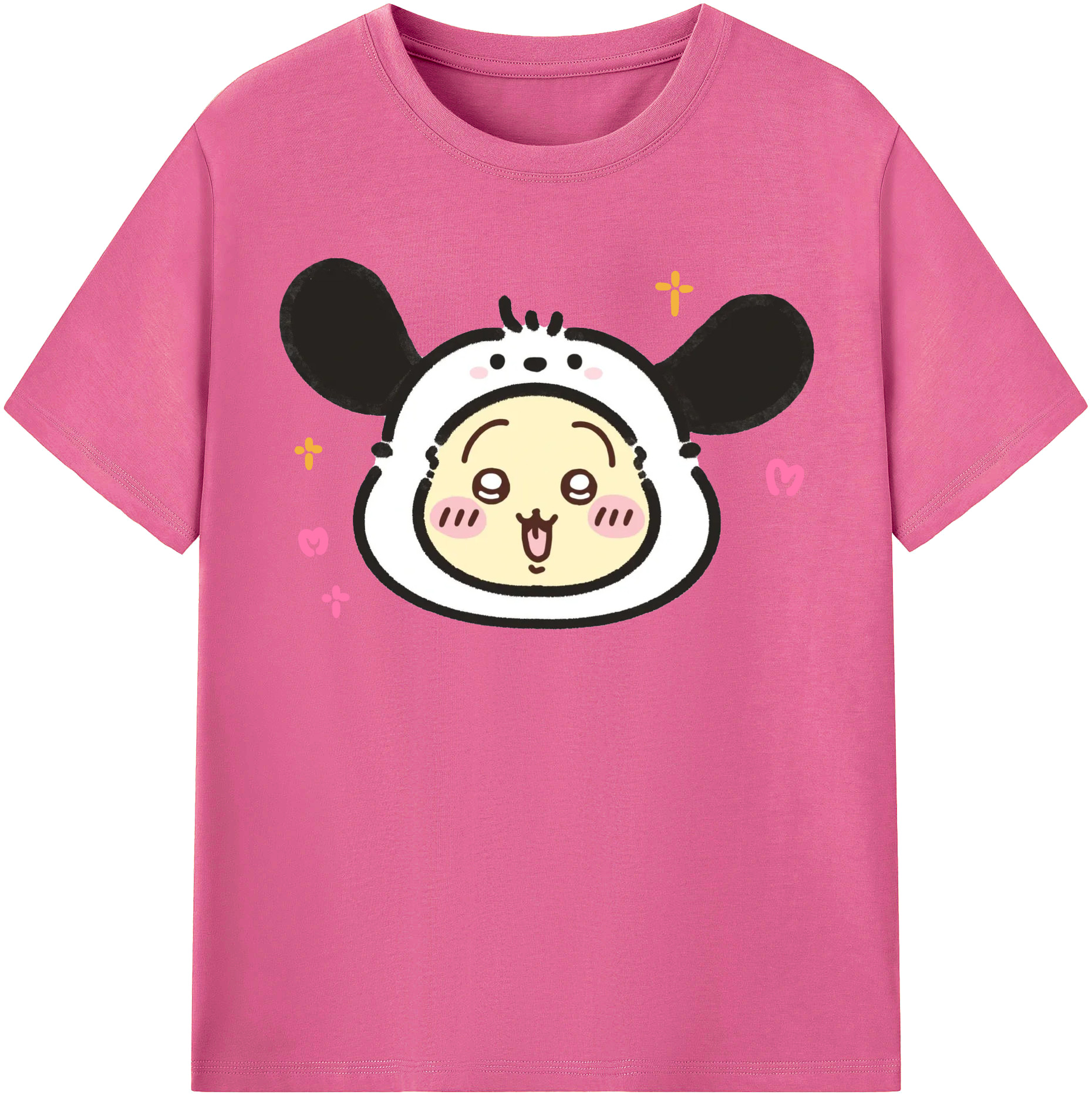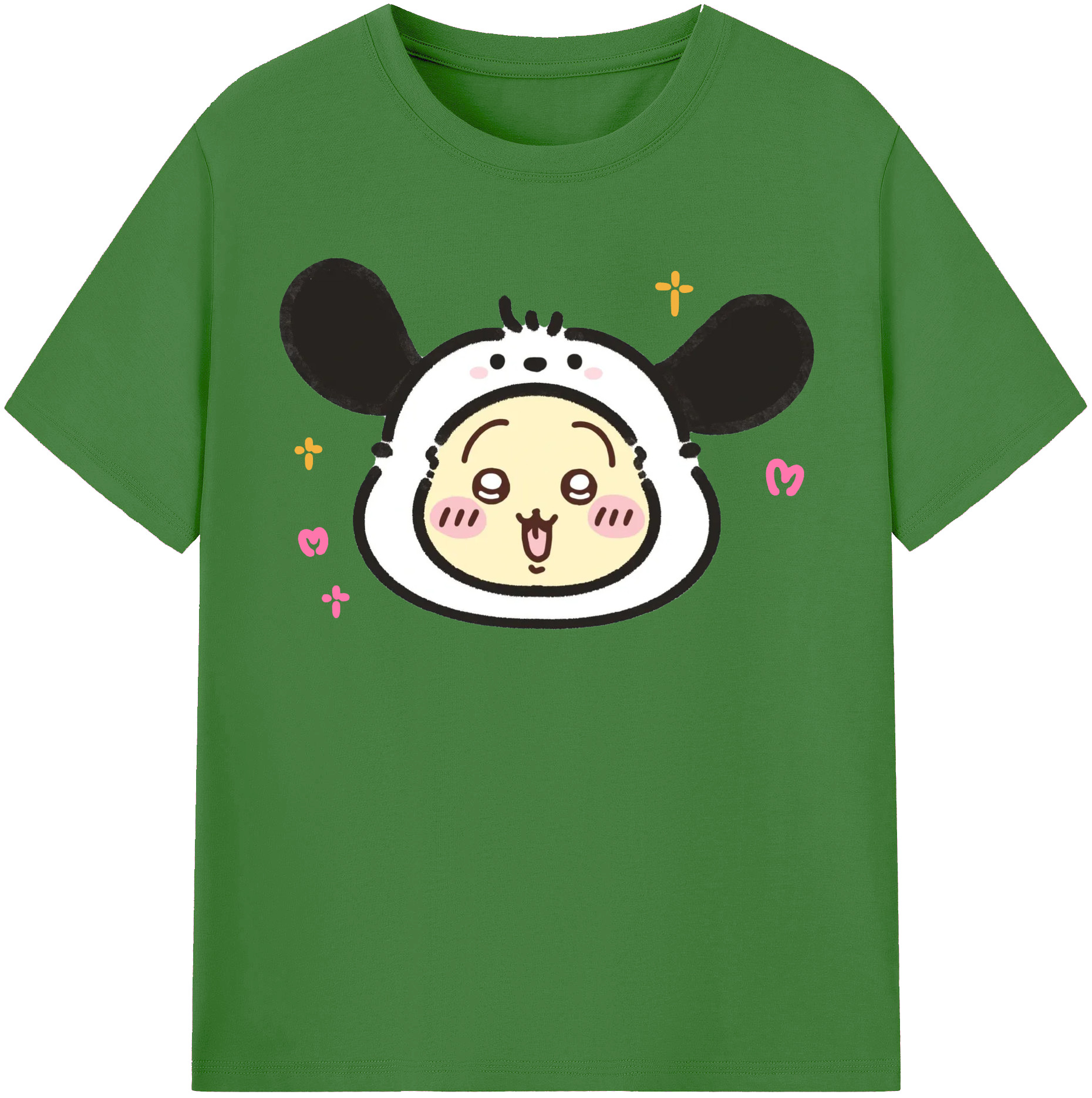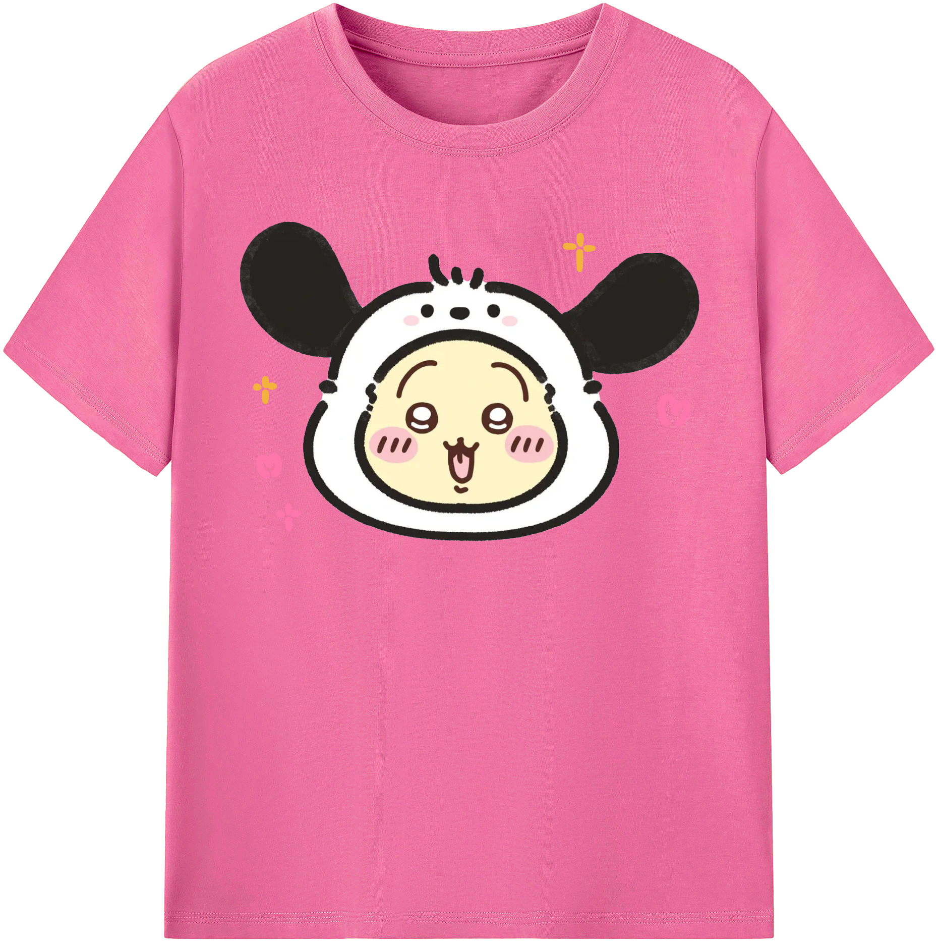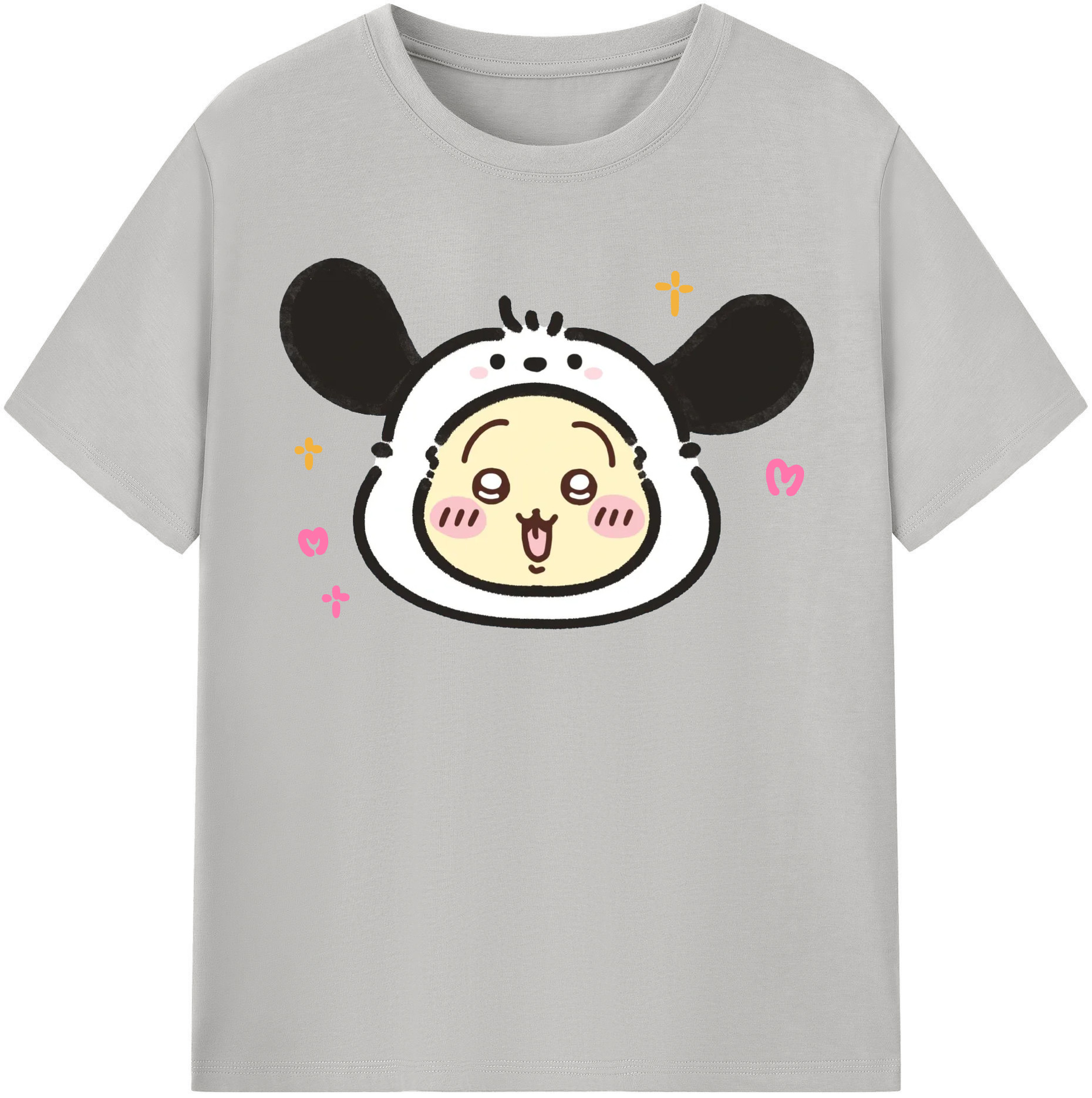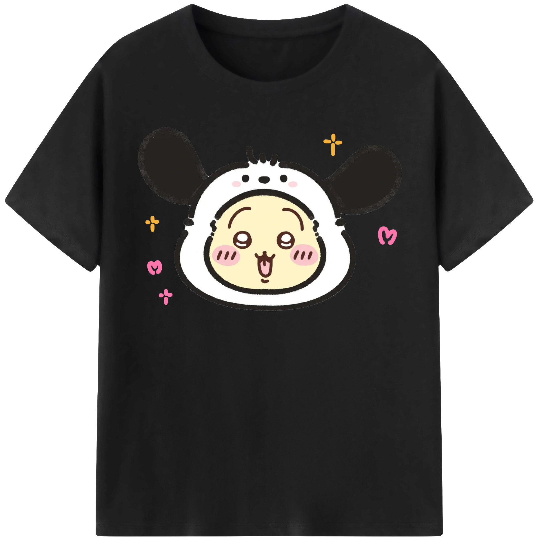 ポチャッコ&ちいかわ - レディースカジュアルプリントTシャツ ・ 綿100% ・ クルーネック ・ フロントプリント ・ 柔らかく快適 ・ フィットネス カジュアル 旅行用
