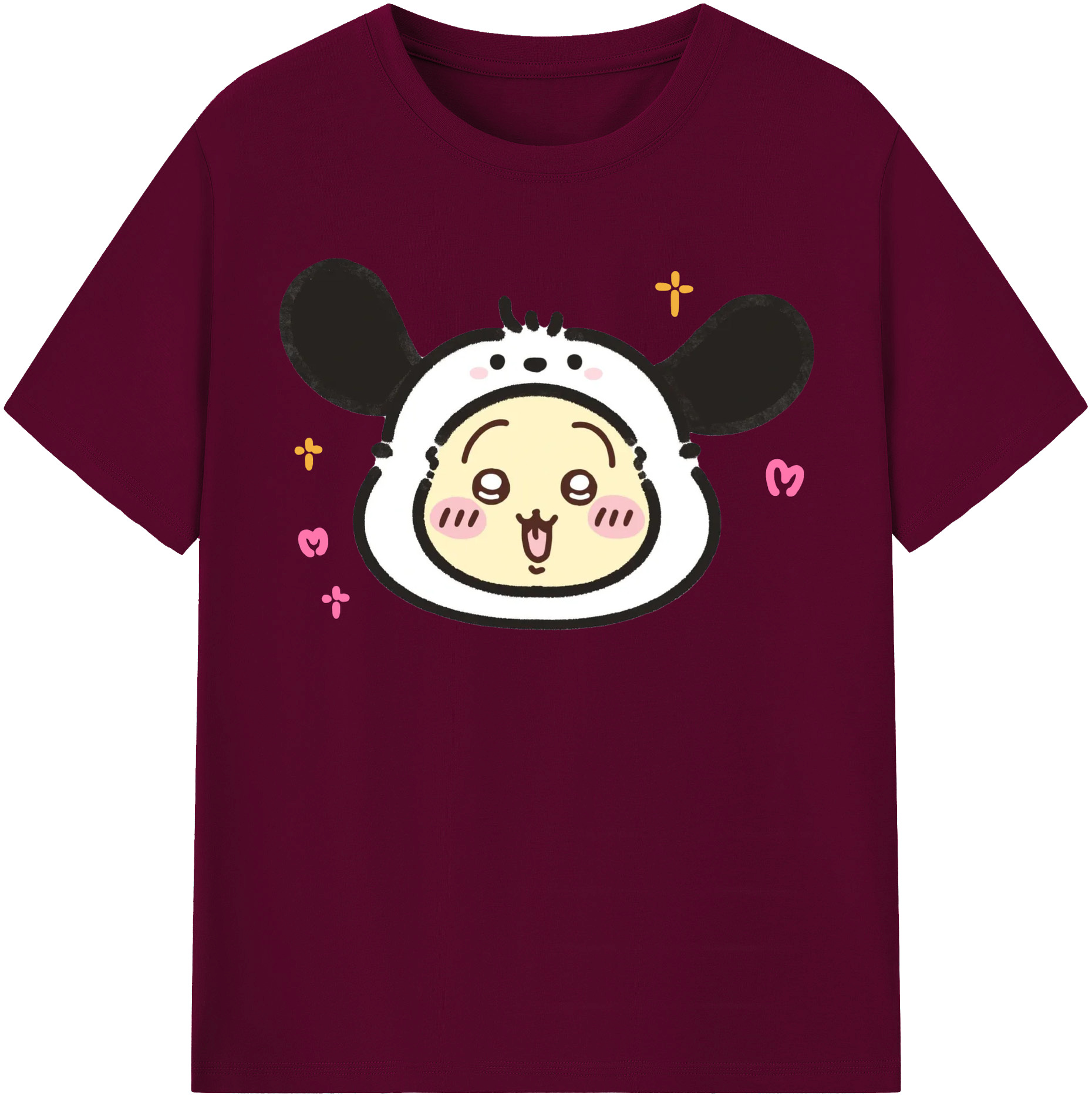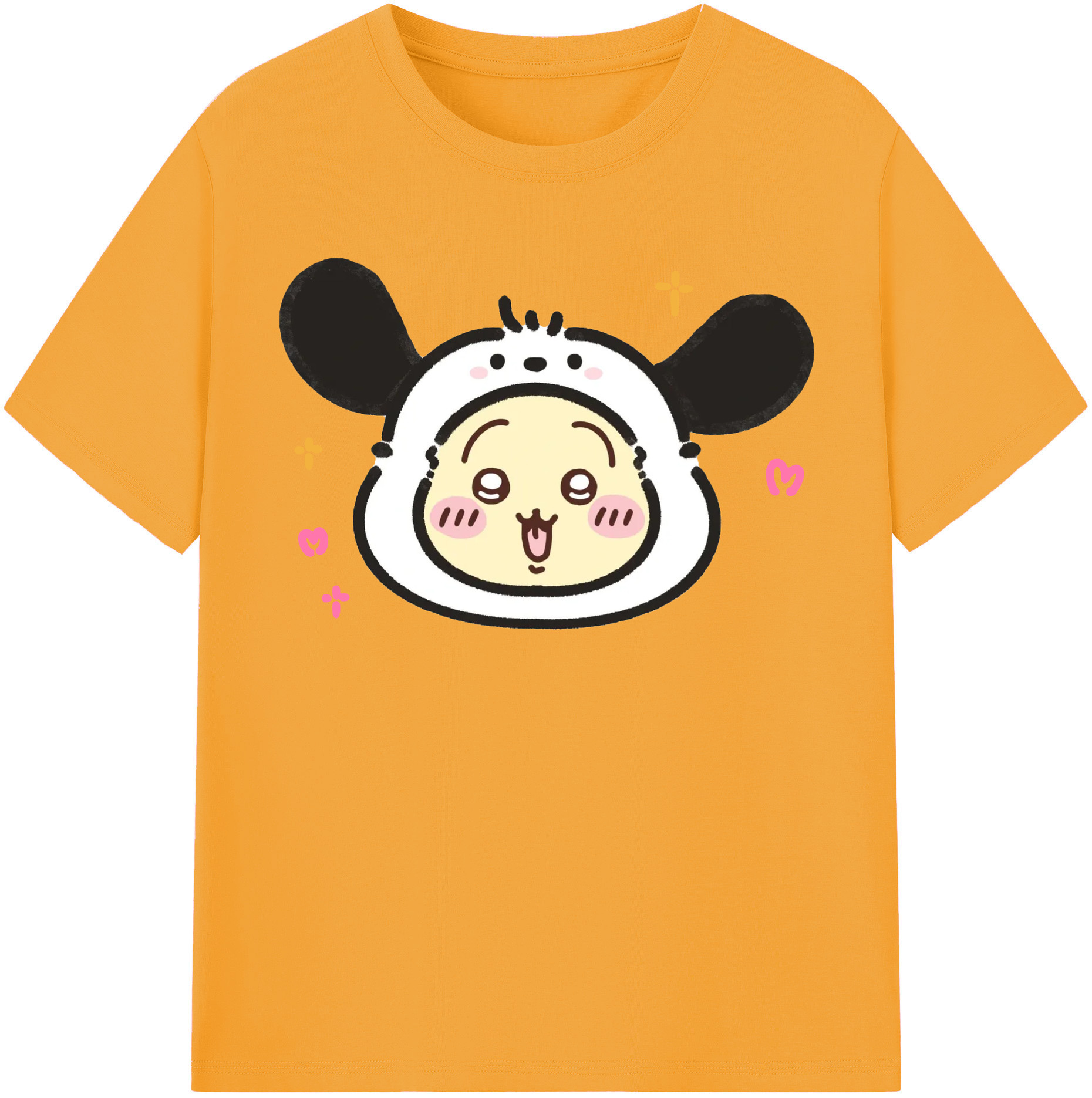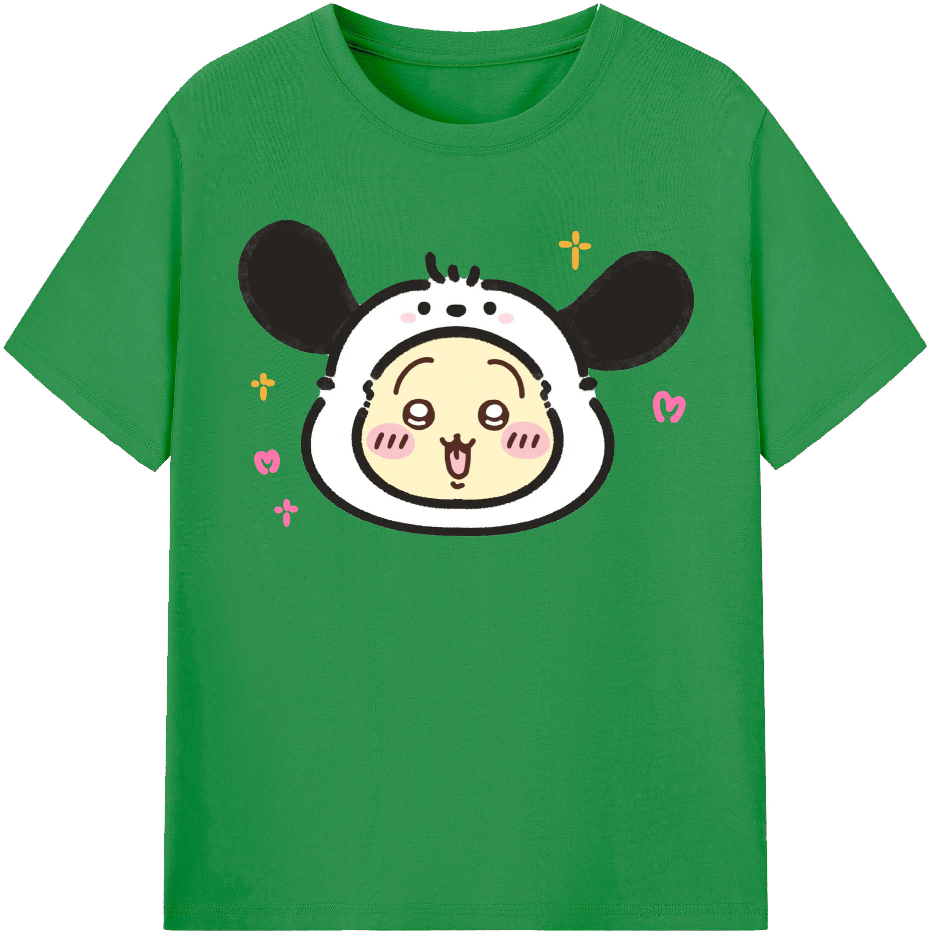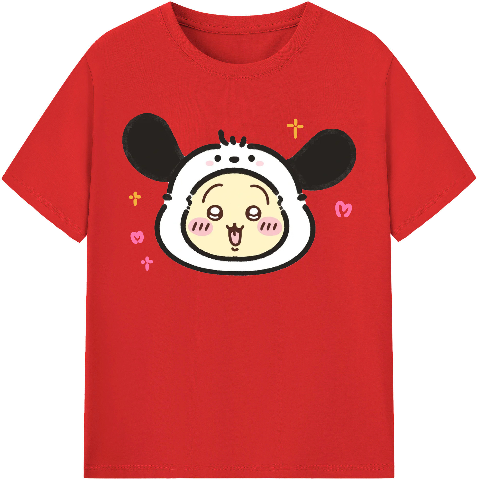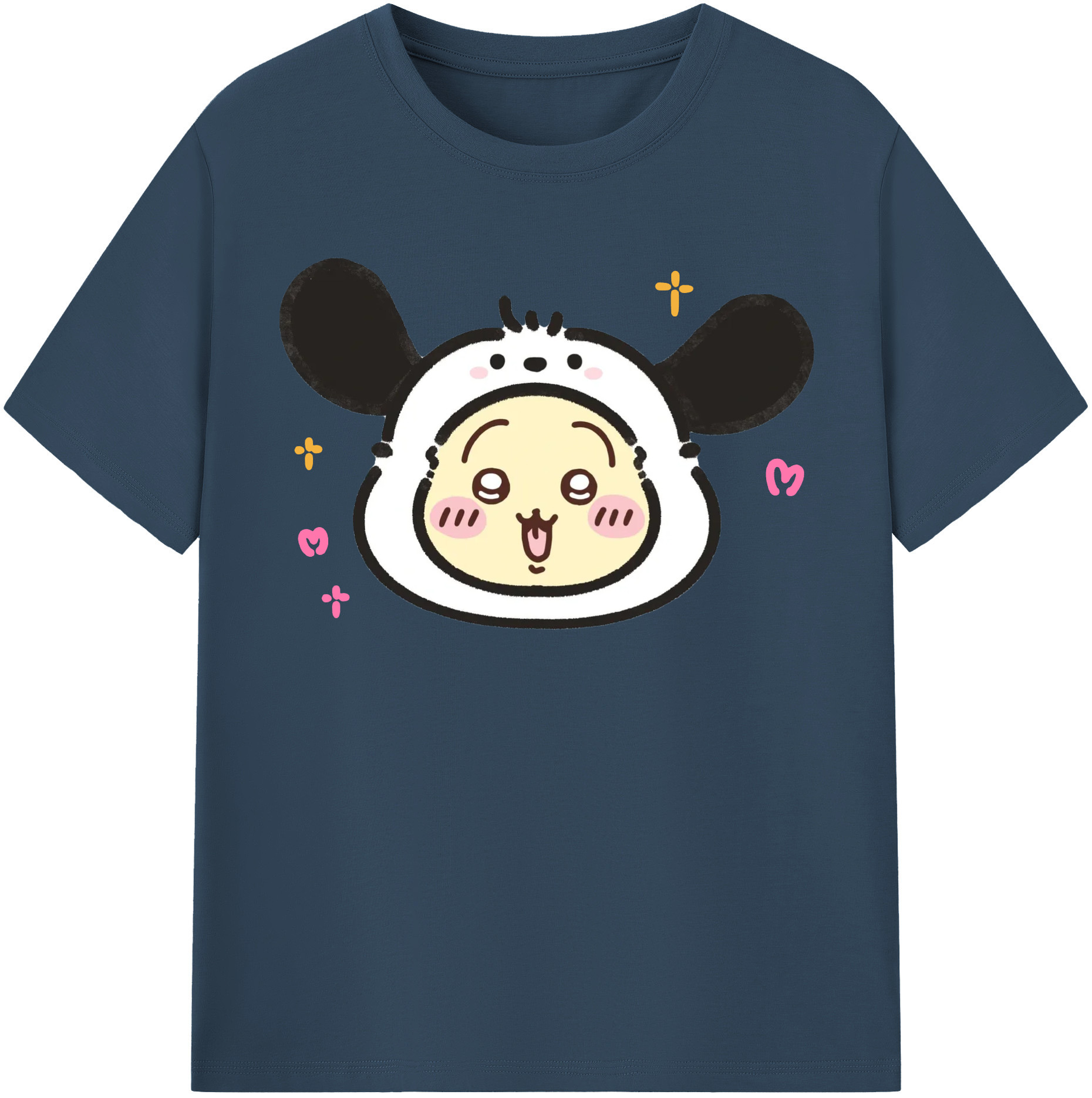 ポチャッコ&ちいかわ - レディースカジュアルプリントTシャツ ・ 綿100% ・ クルーネック ・ フロントプリント ・ 柔らかく快適 ・ フィットネス カジュアル 旅行用