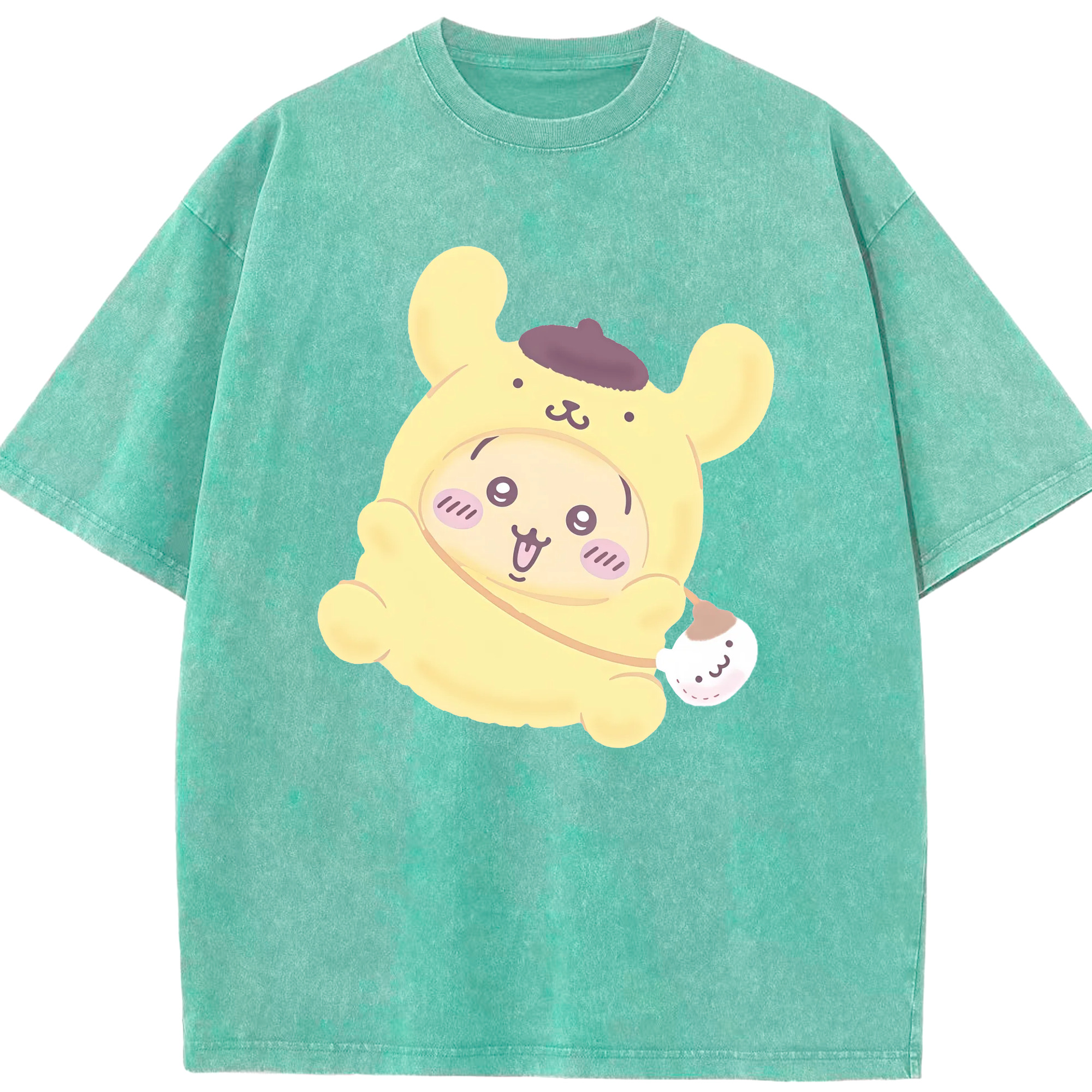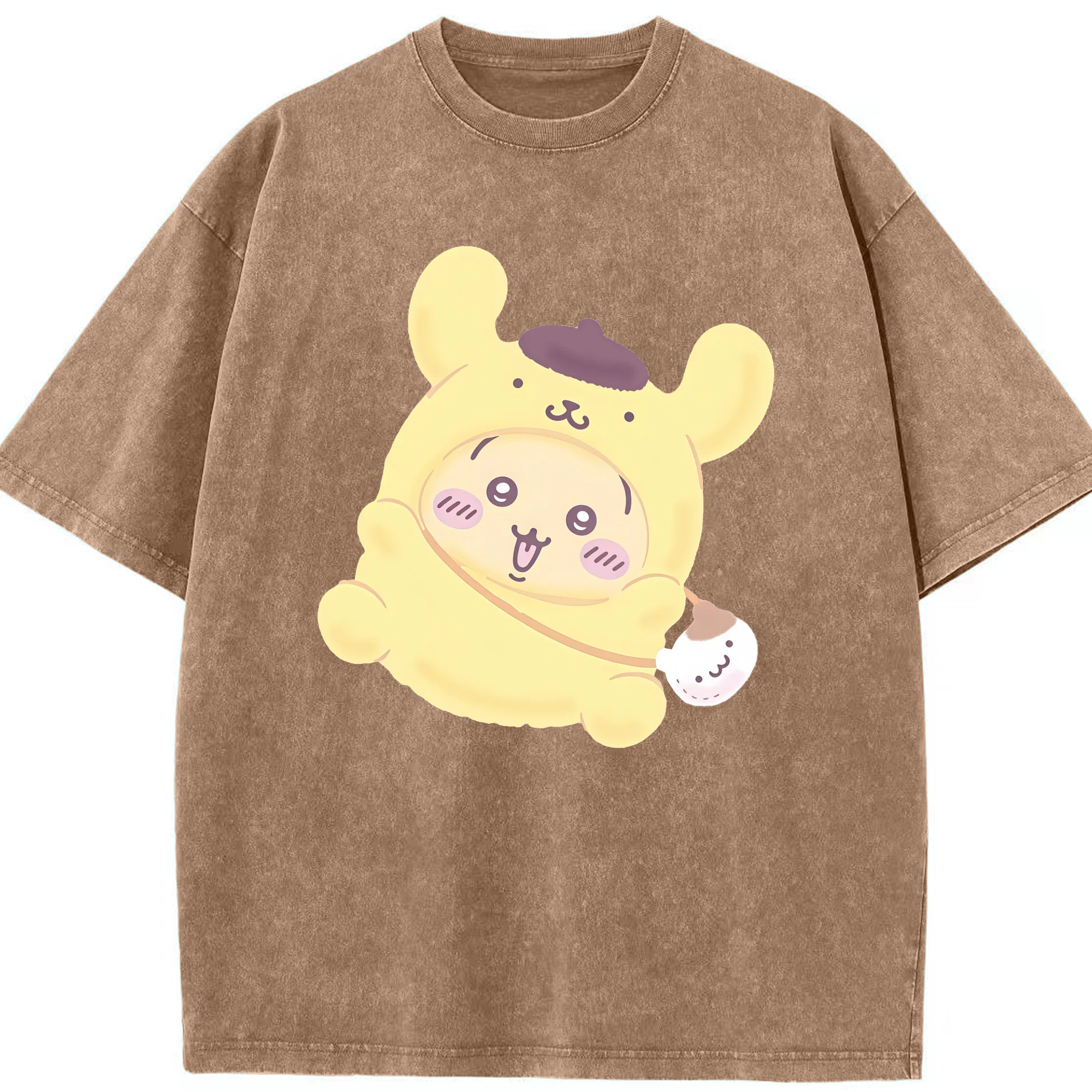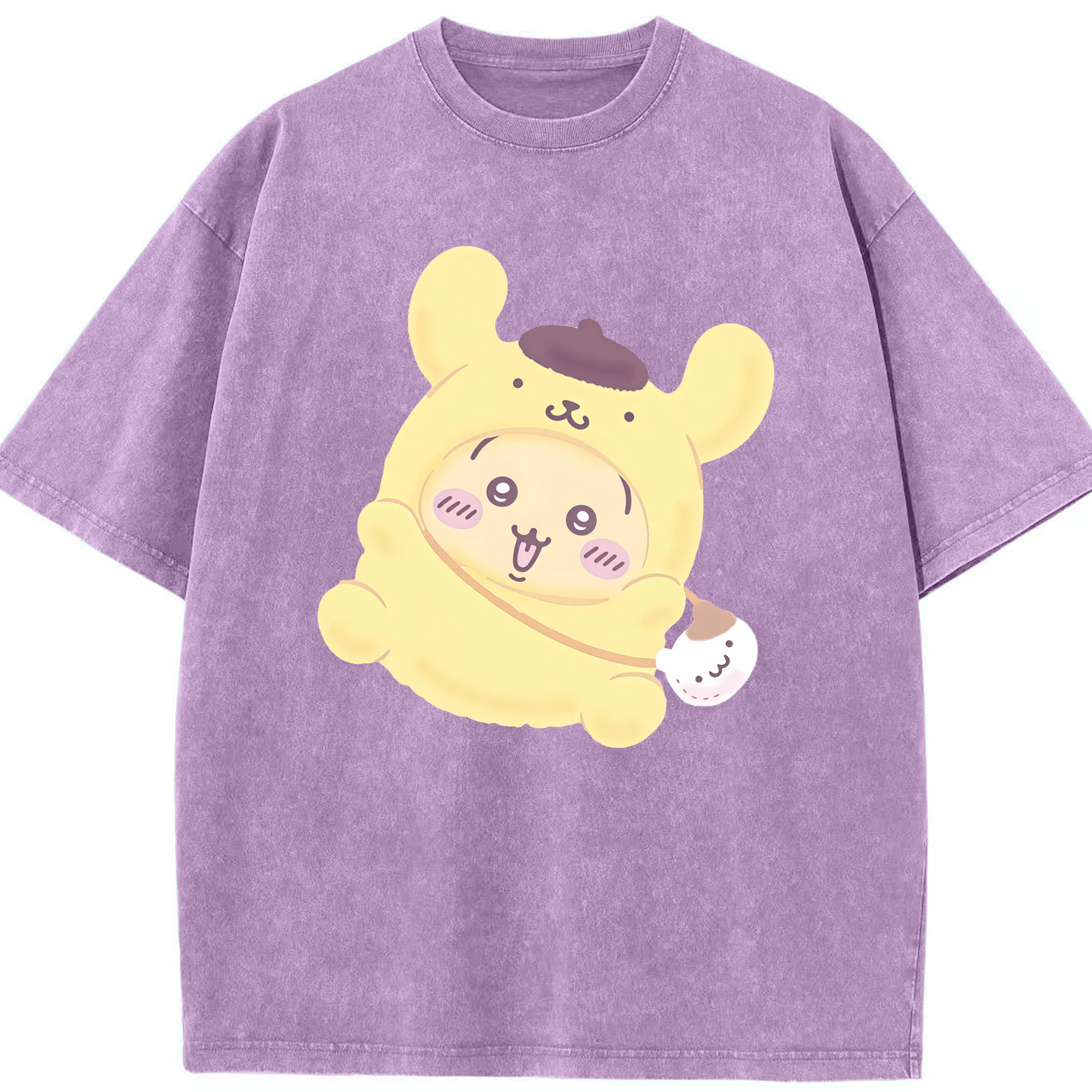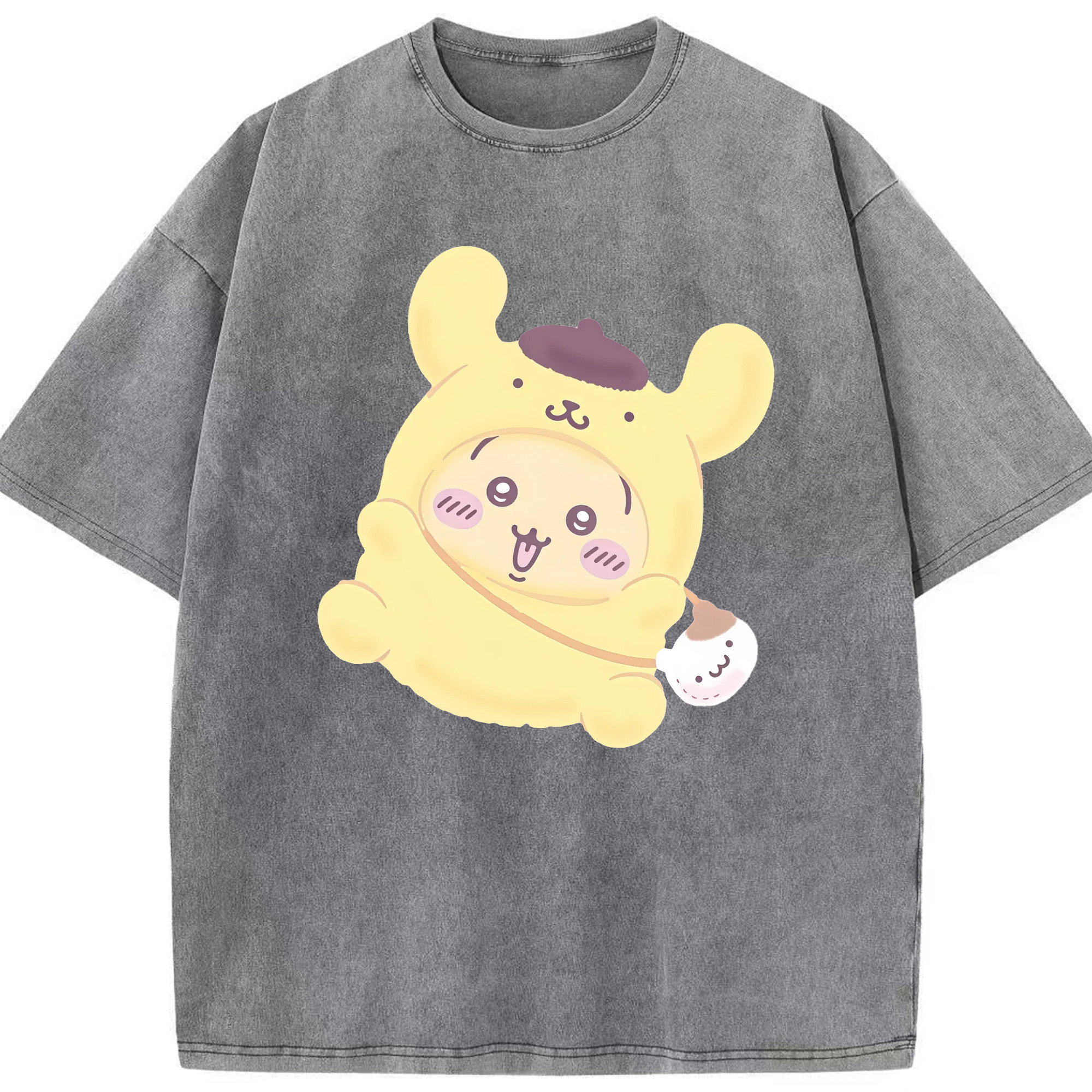 ポムポムプリン&ちいかわ - 綿100% ヴィンテージ風 半袖Tシャツ ・ 背面プリント ・ 柔らか肌触り ・ 通気性 快適 ・ スポーツ カジュアル 外出用