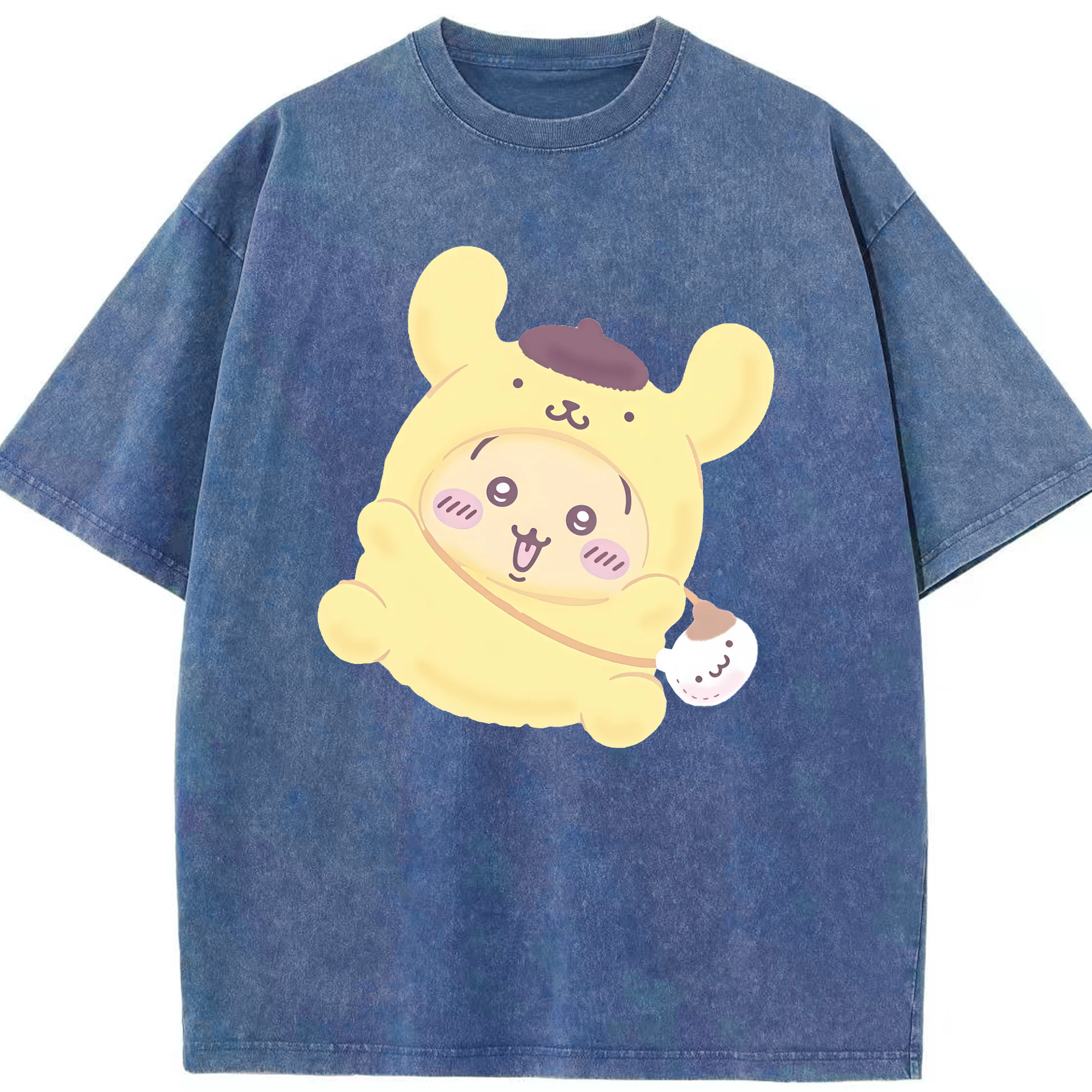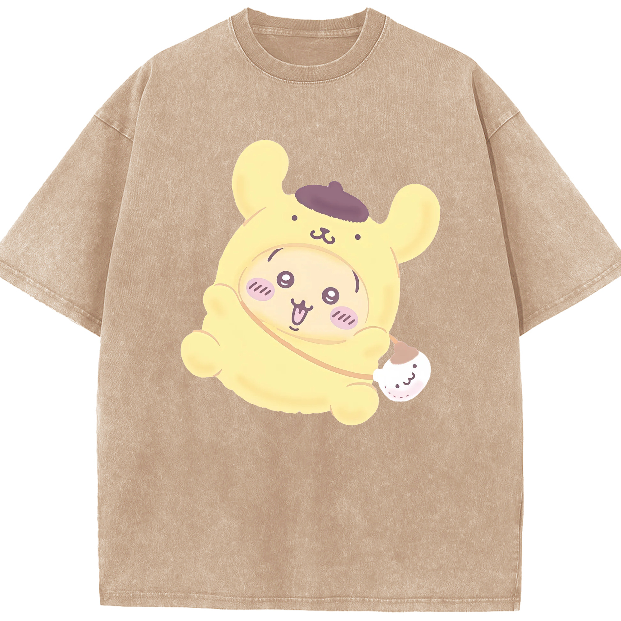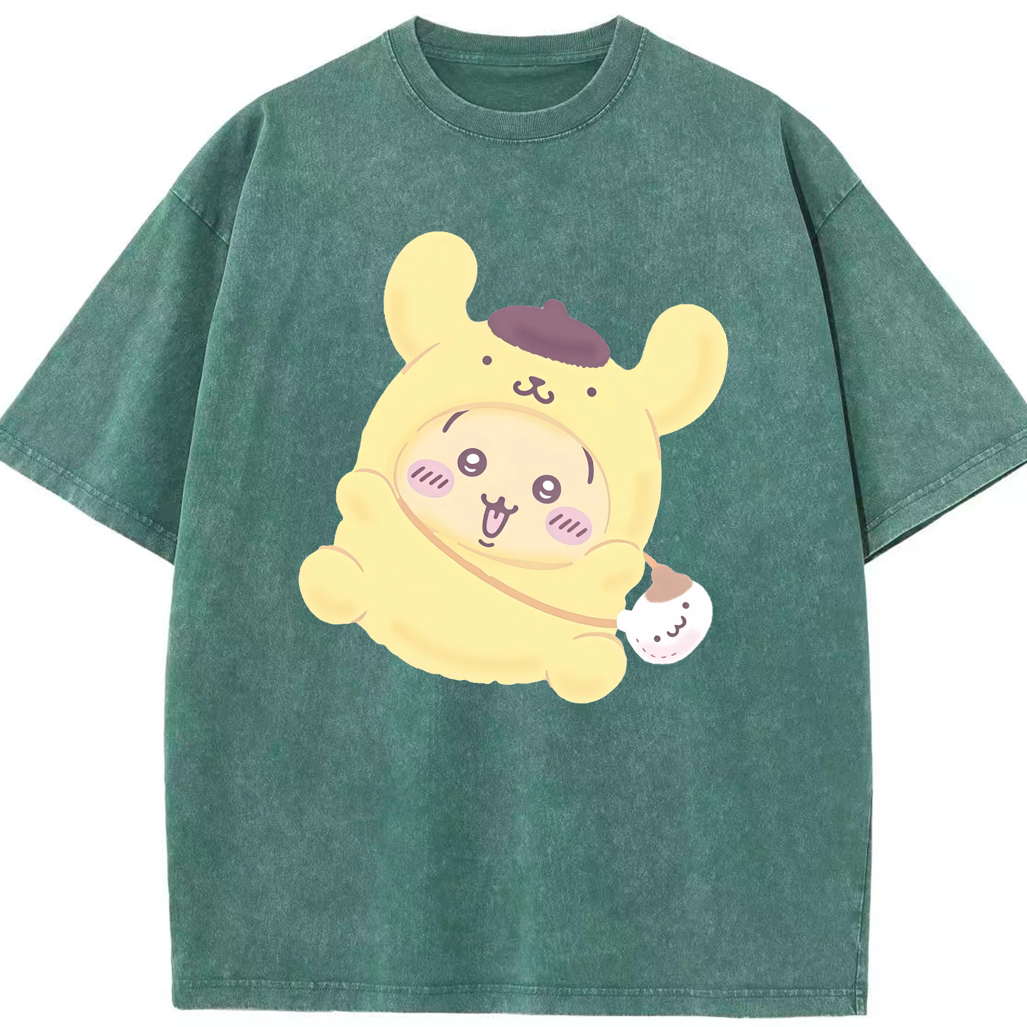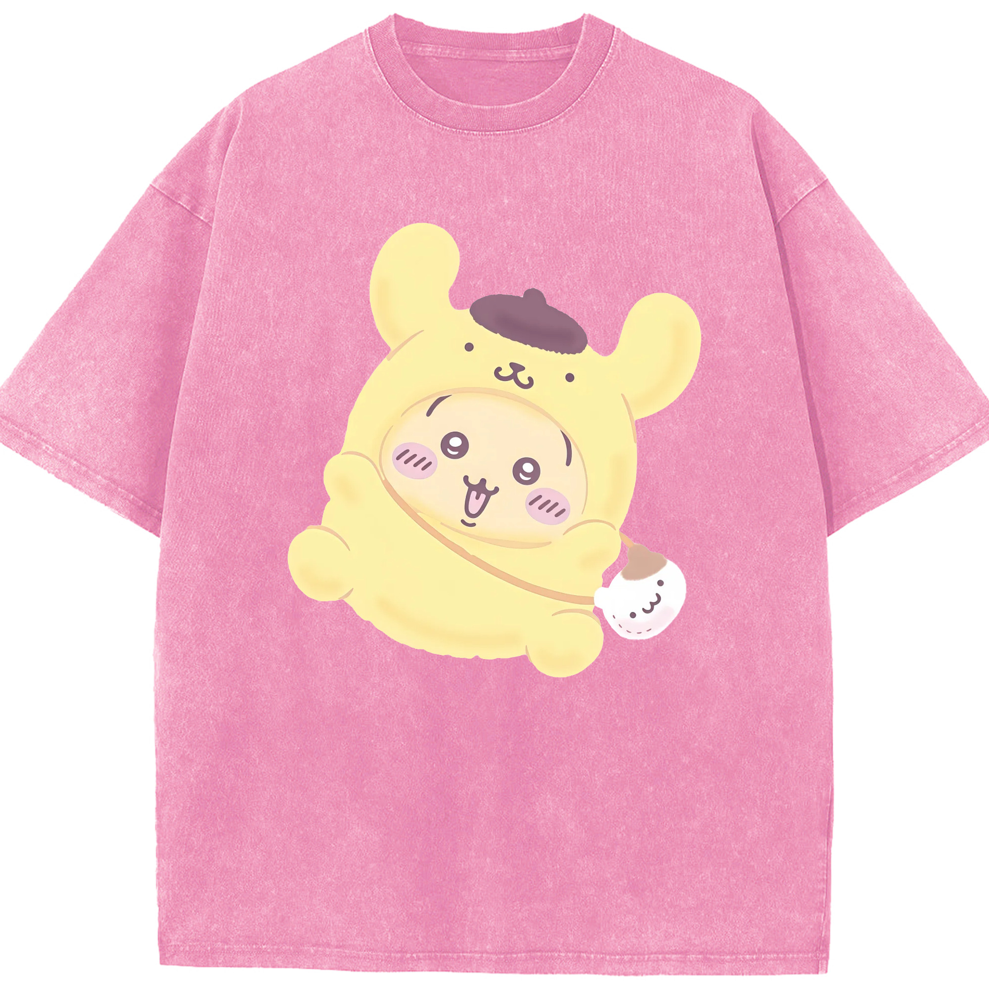 ポムポムプリン&ちいかわ - 綿100% ヴィンテージ風 半袖Tシャツ ・ 背面プリント ・ 柔らか肌触り ・ 通気性 快適 ・ スポーツ カジュアル 外出用