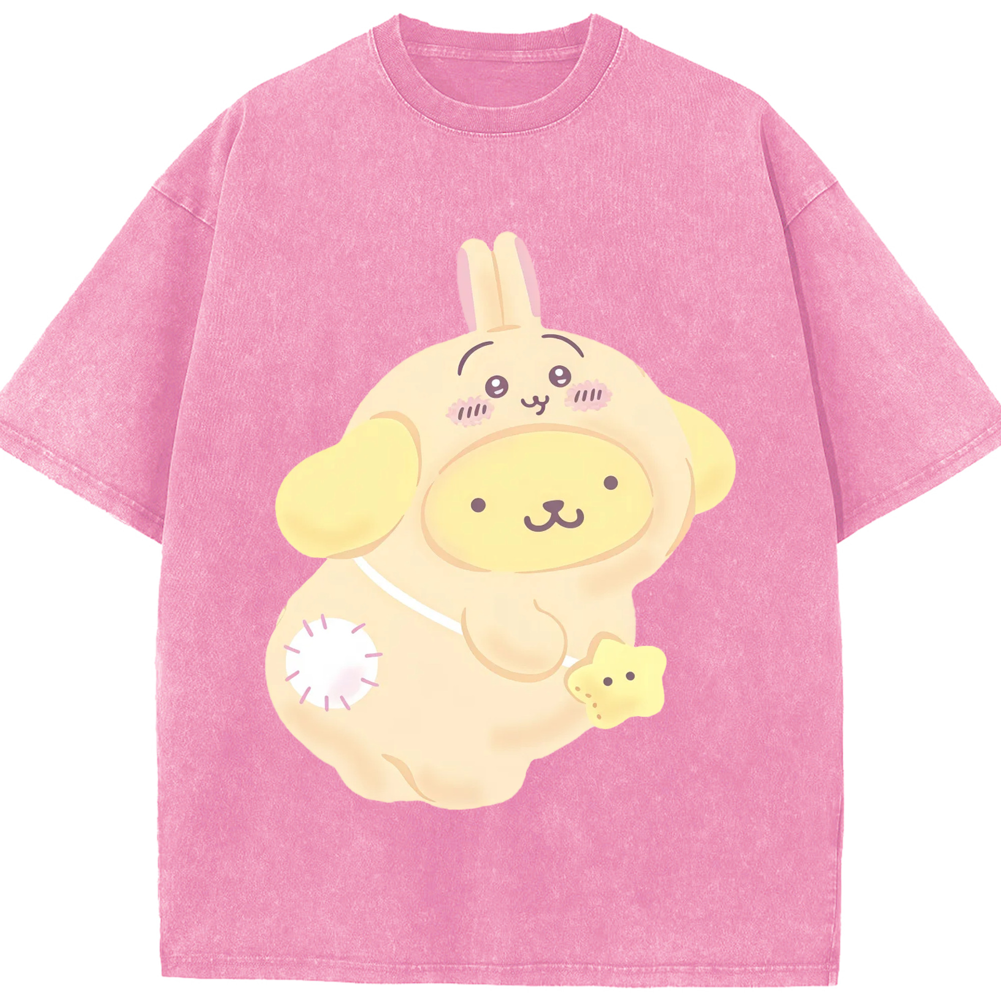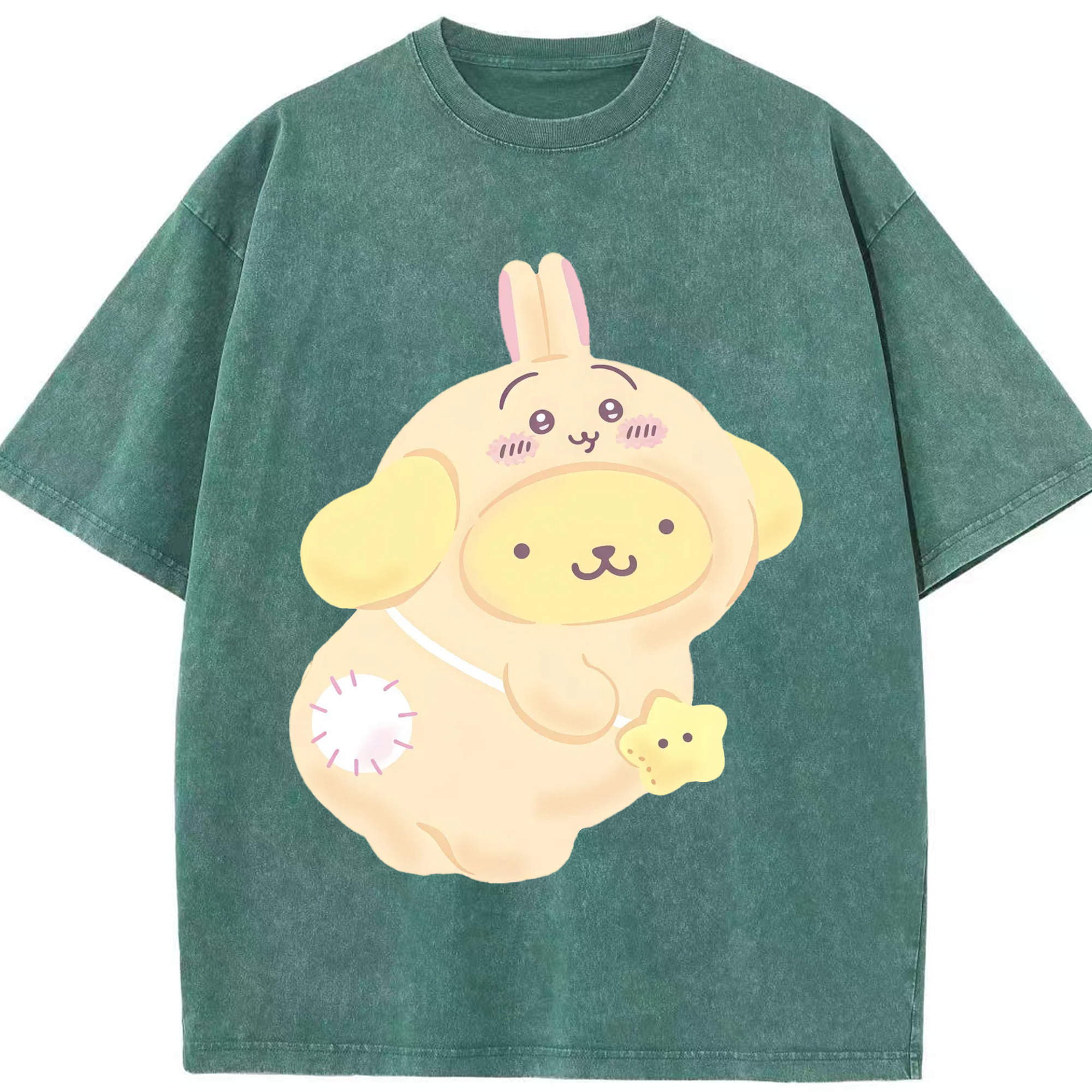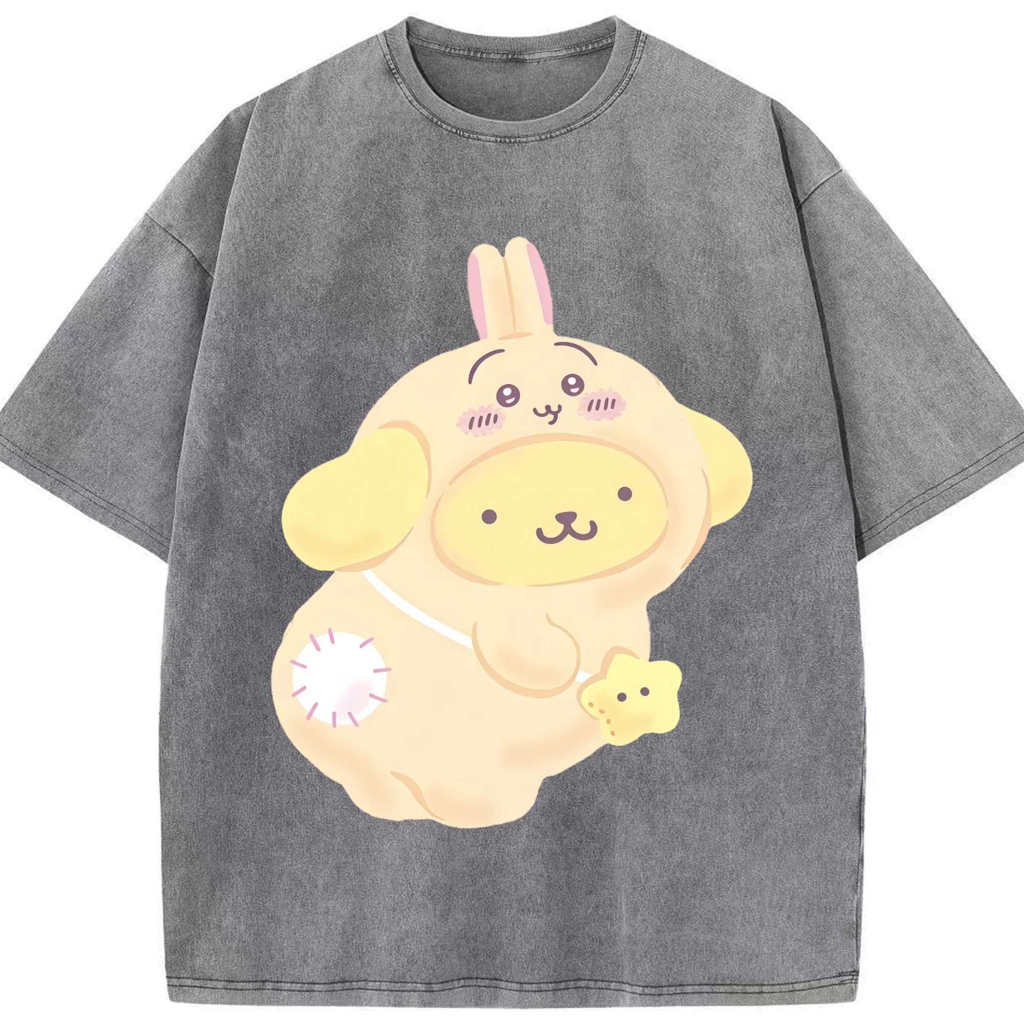 ポムポムプリン&ちいかわ - 綿100% ヴィンテージ風 半袖Tシャツ ・ 背面プリント ・ 柔らか肌触り ・ 通気性 快適 ・ スポーツ カジュアル 外出用