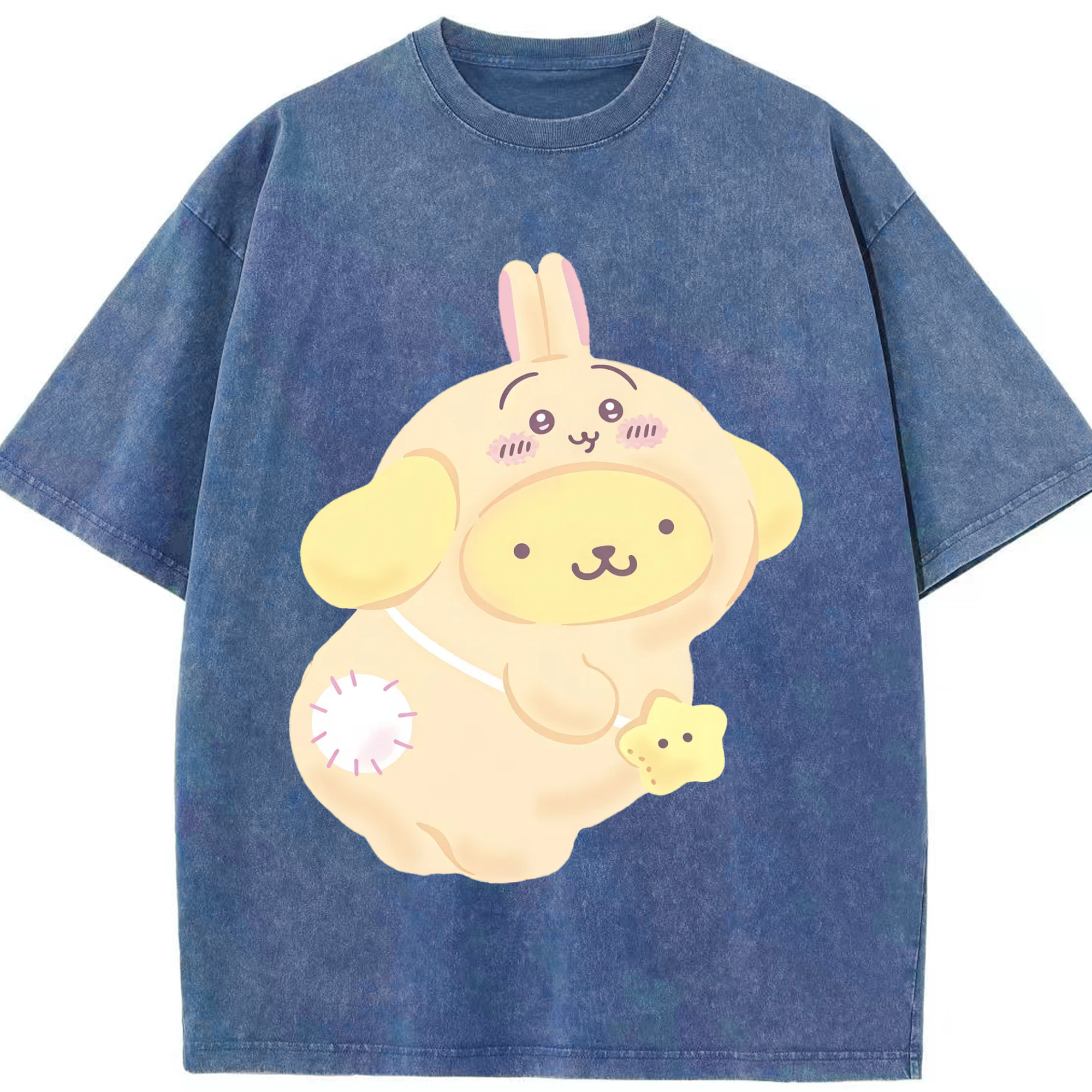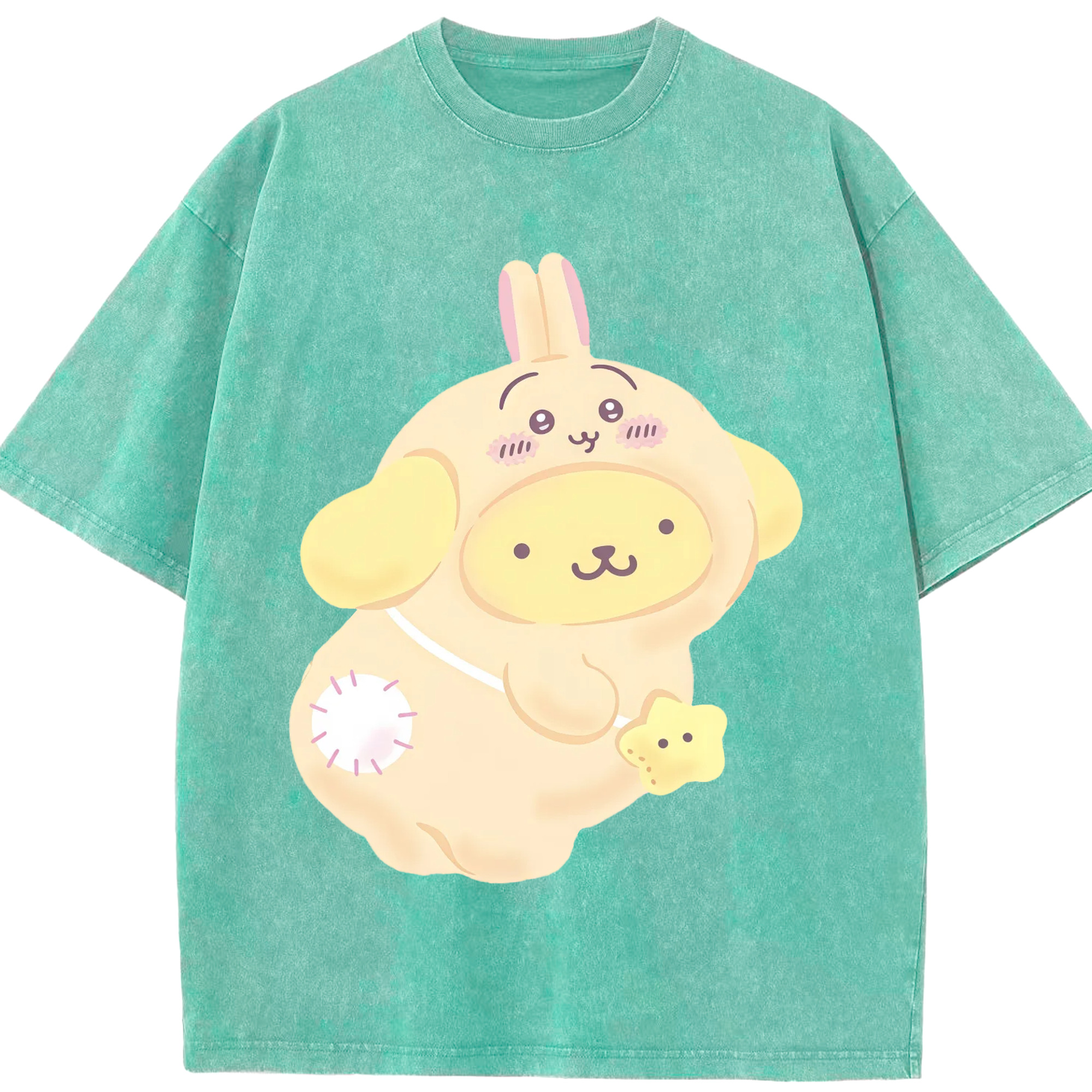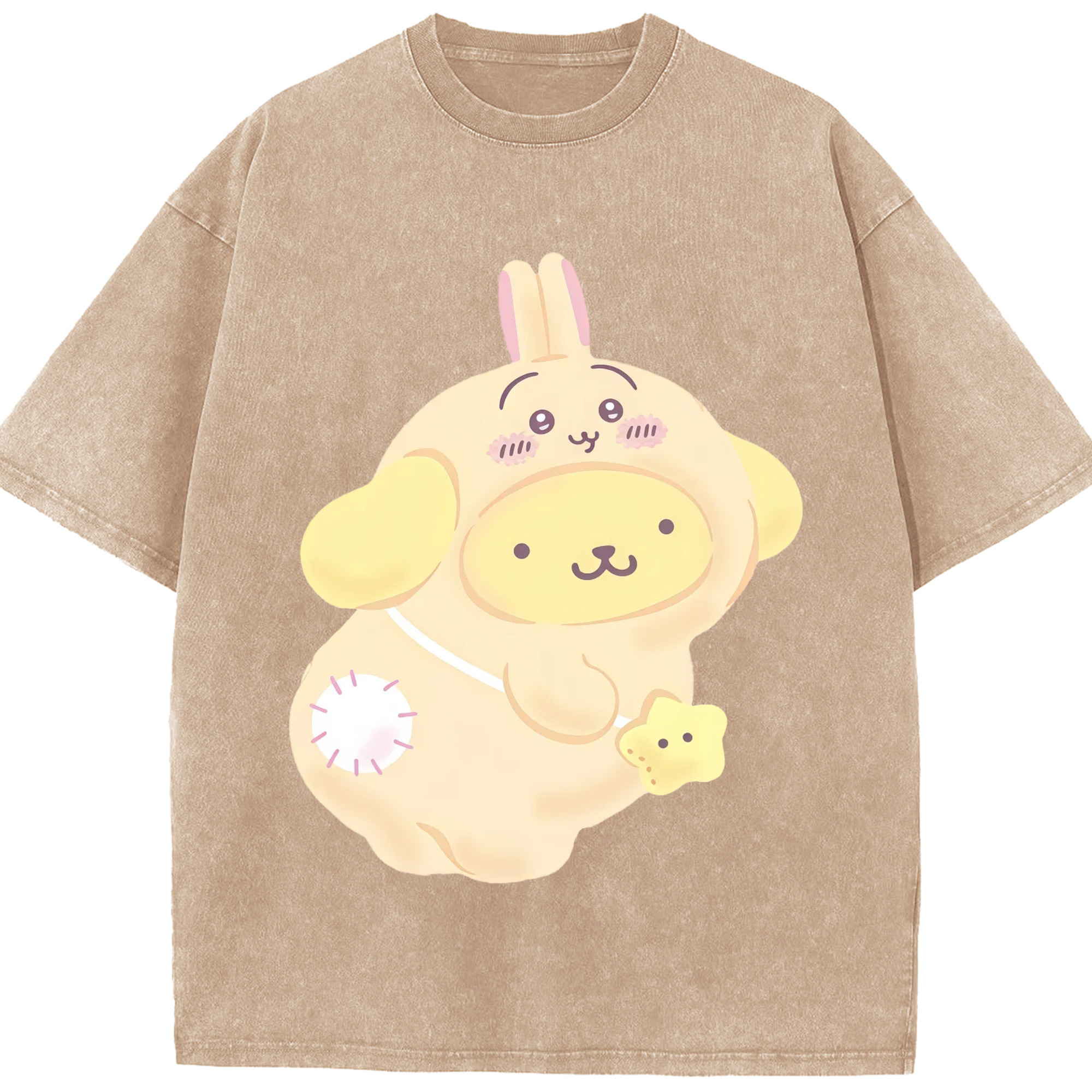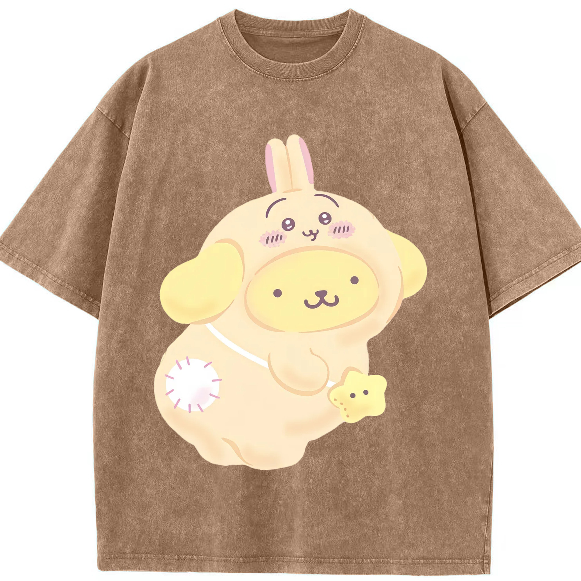 ポムポムプリン&ちいかわ - 綿100% ヴィンテージ風 半袖Tシャツ ・ 背面プリント ・ 柔らか肌触り ・ 通気性 快適 ・ スポーツ カジュアル 外出用
