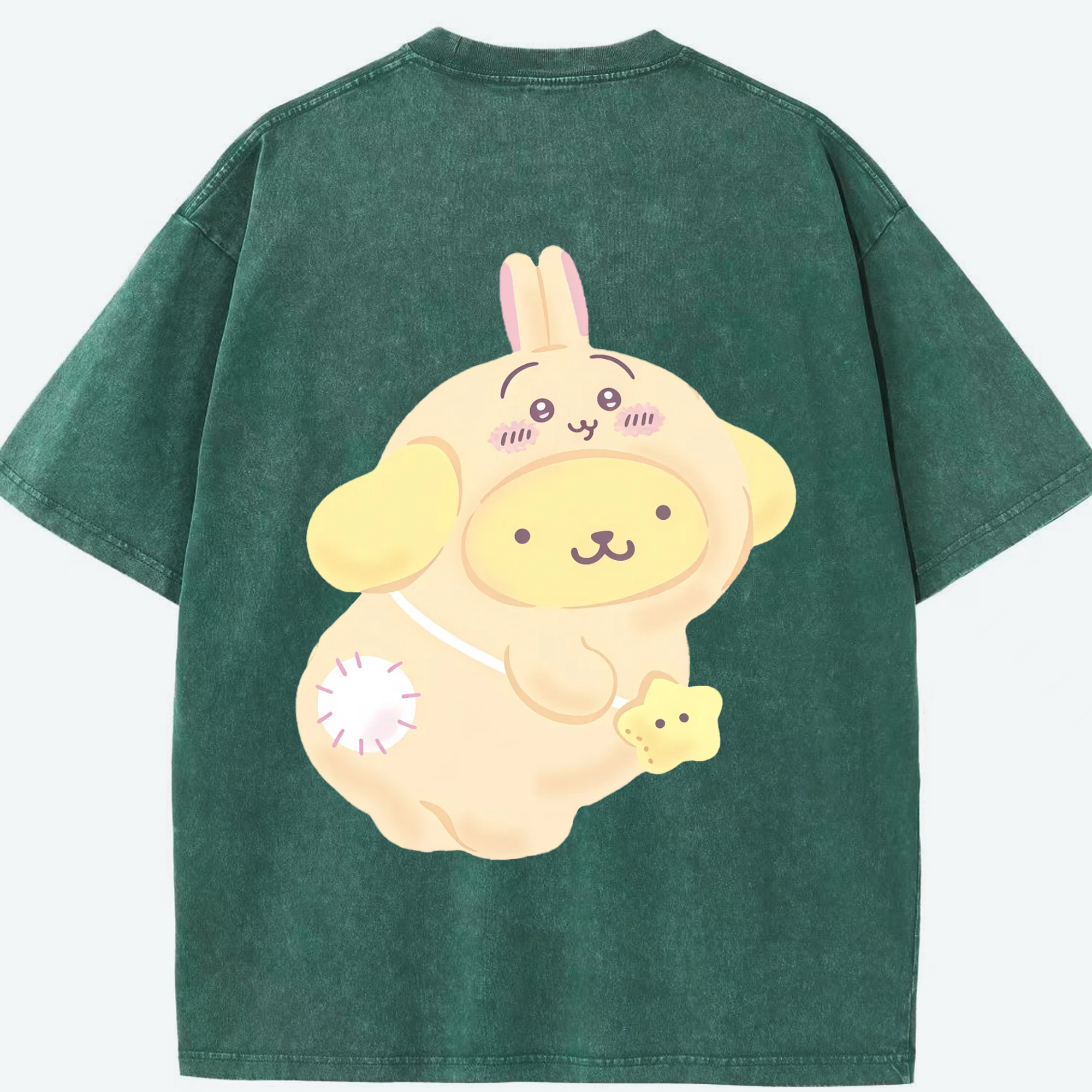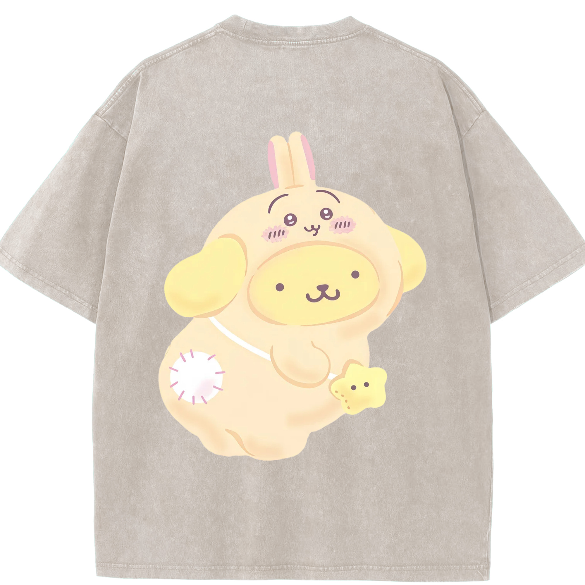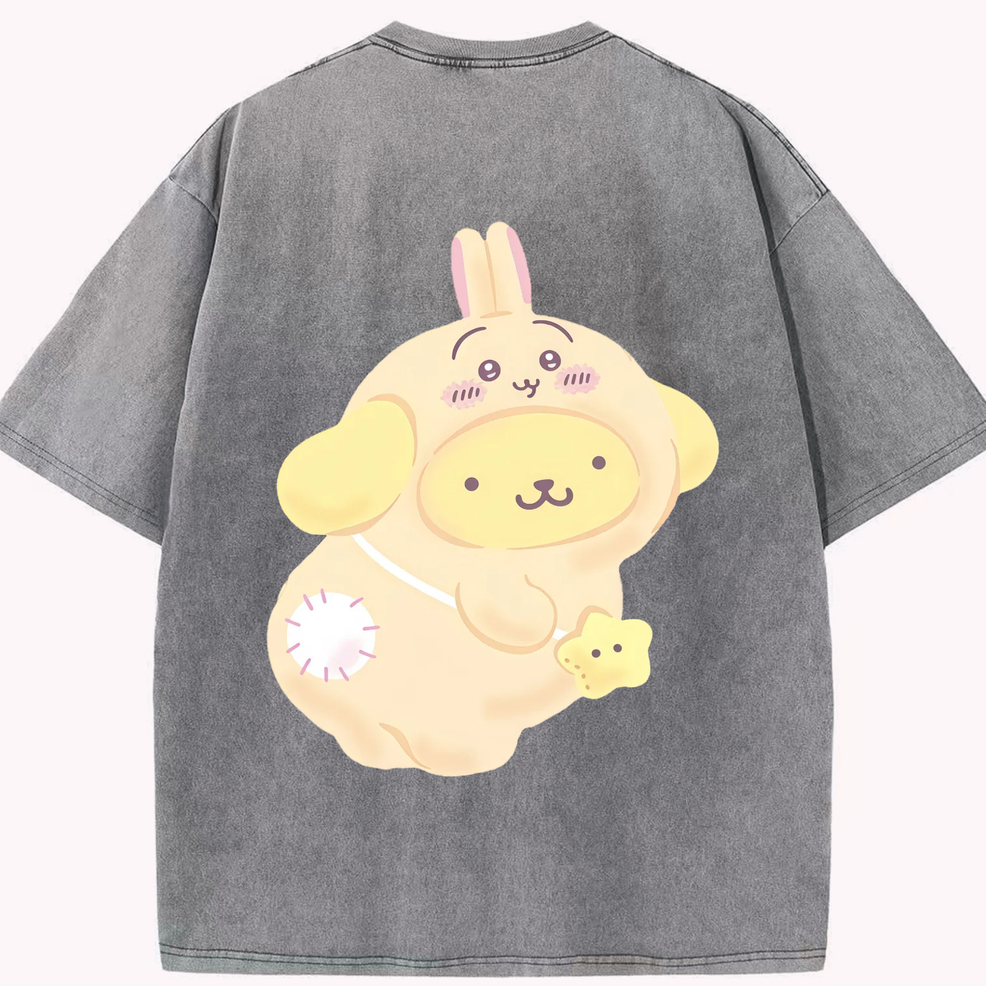 ポムポムプリン&ちいかわ - 綿100% ヴィンテージ風 半袖Tシャツ ・ フロントプリント ・ 柔らか肌触り ・ 通気性 快適 ・ スポーツ カジュアル 外出用