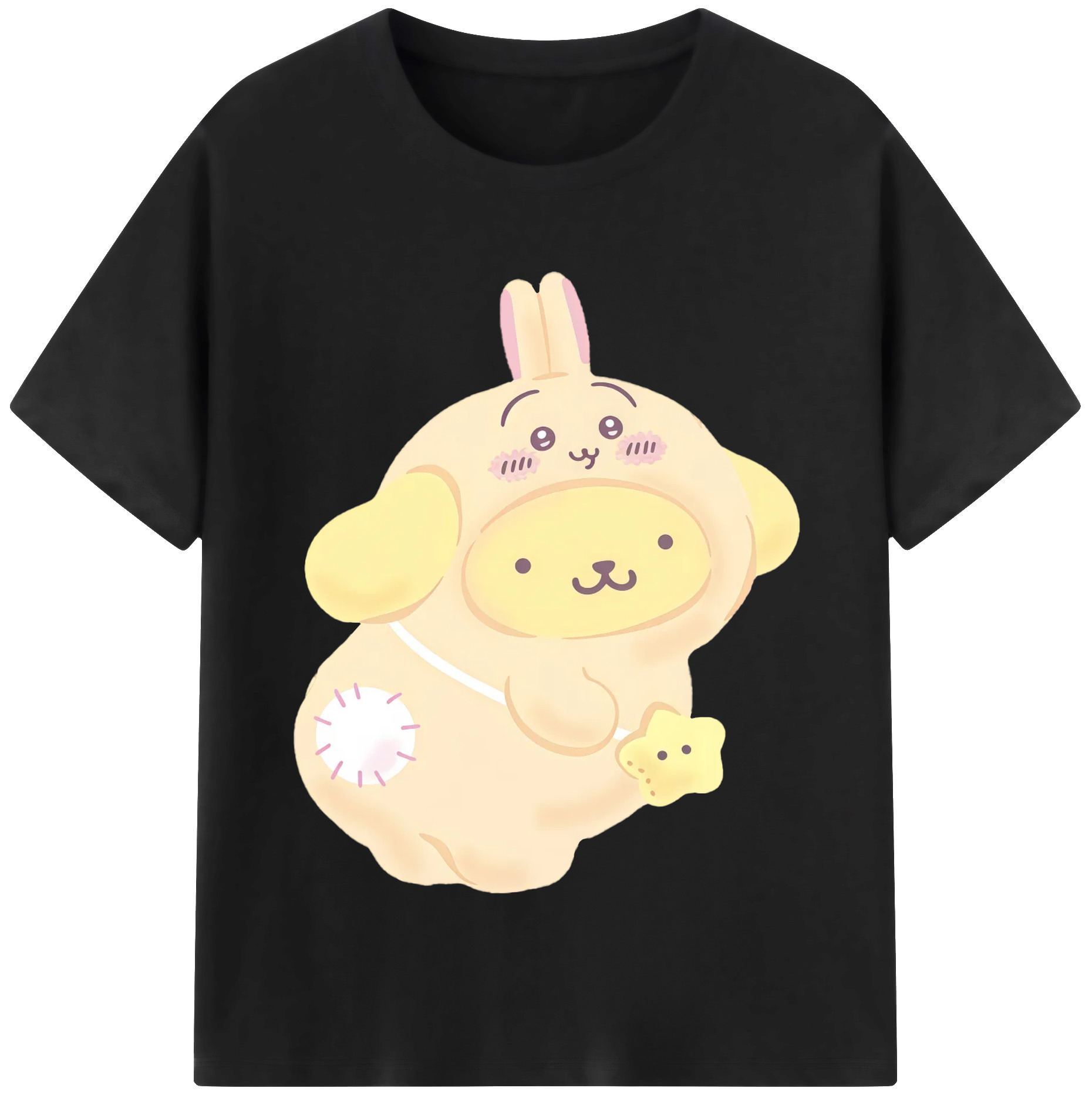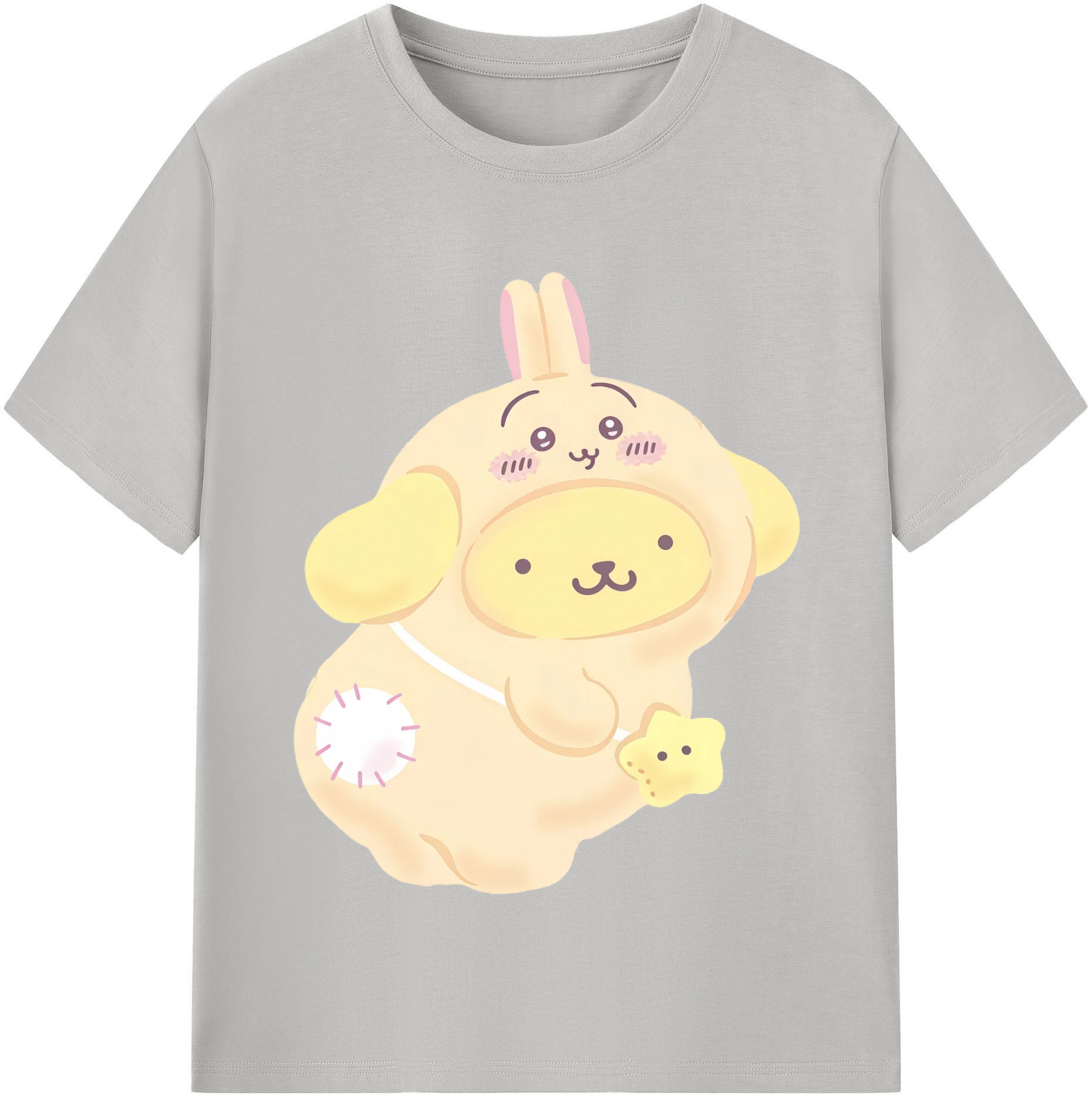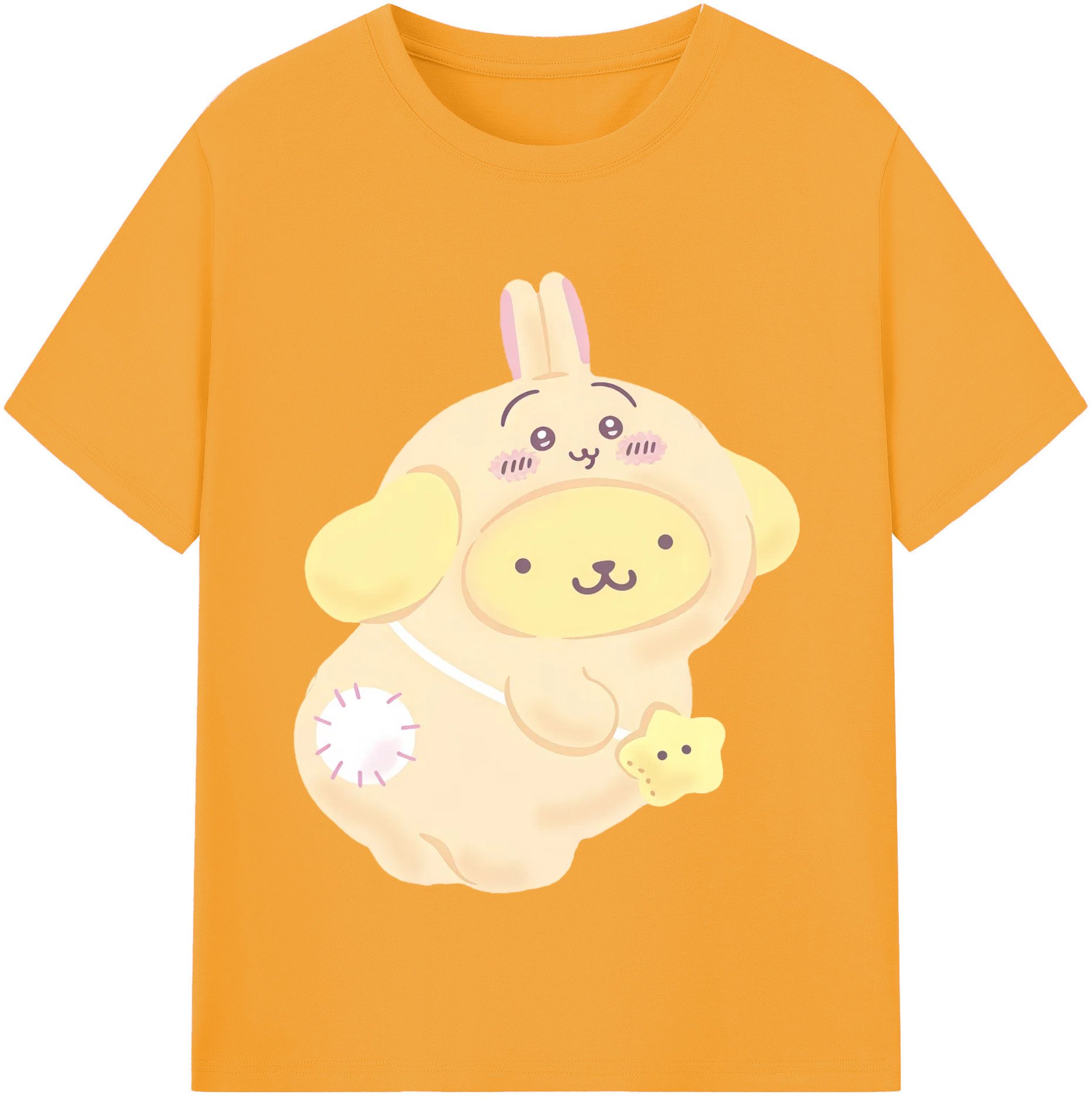 ポムポムプリン&ちいかわ - 綿100% キッズTシャツ ・ フロントプリント ・ 快適 通気性 ・ スポーツ カジュアル 散歩用