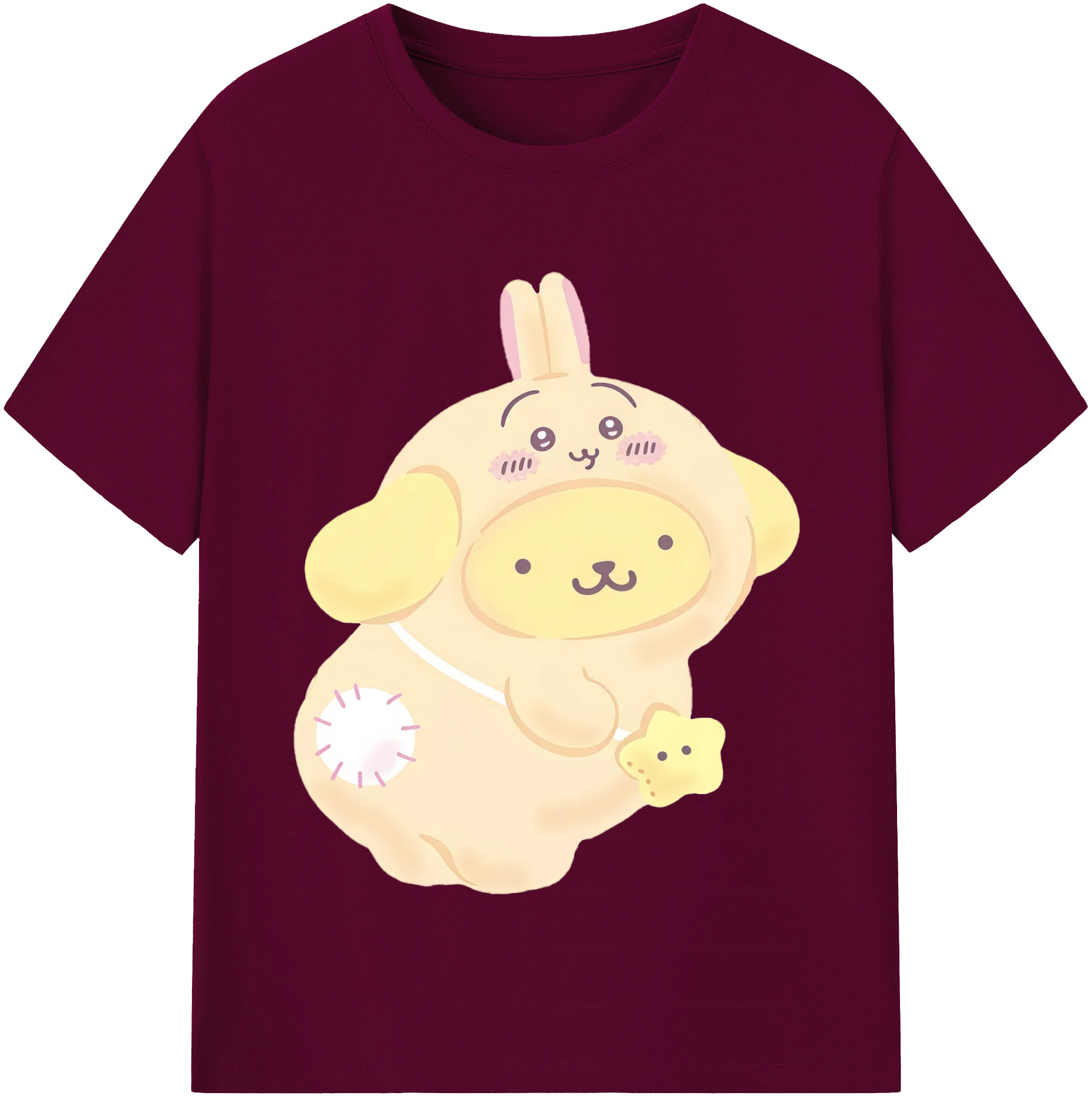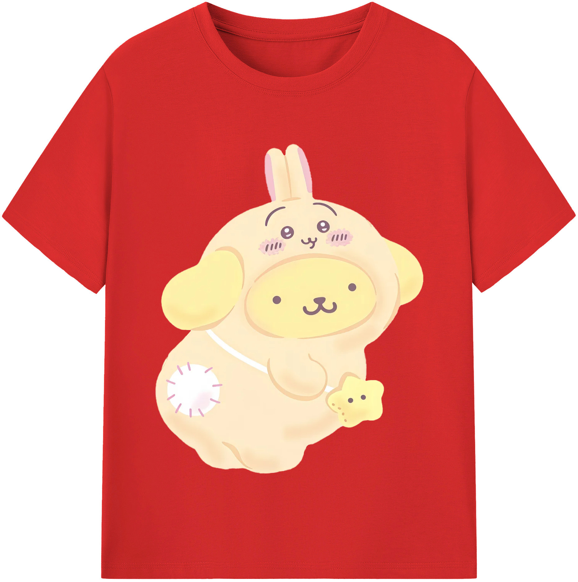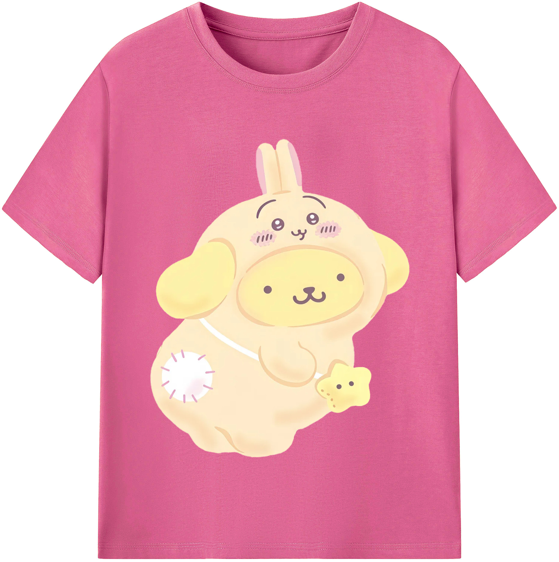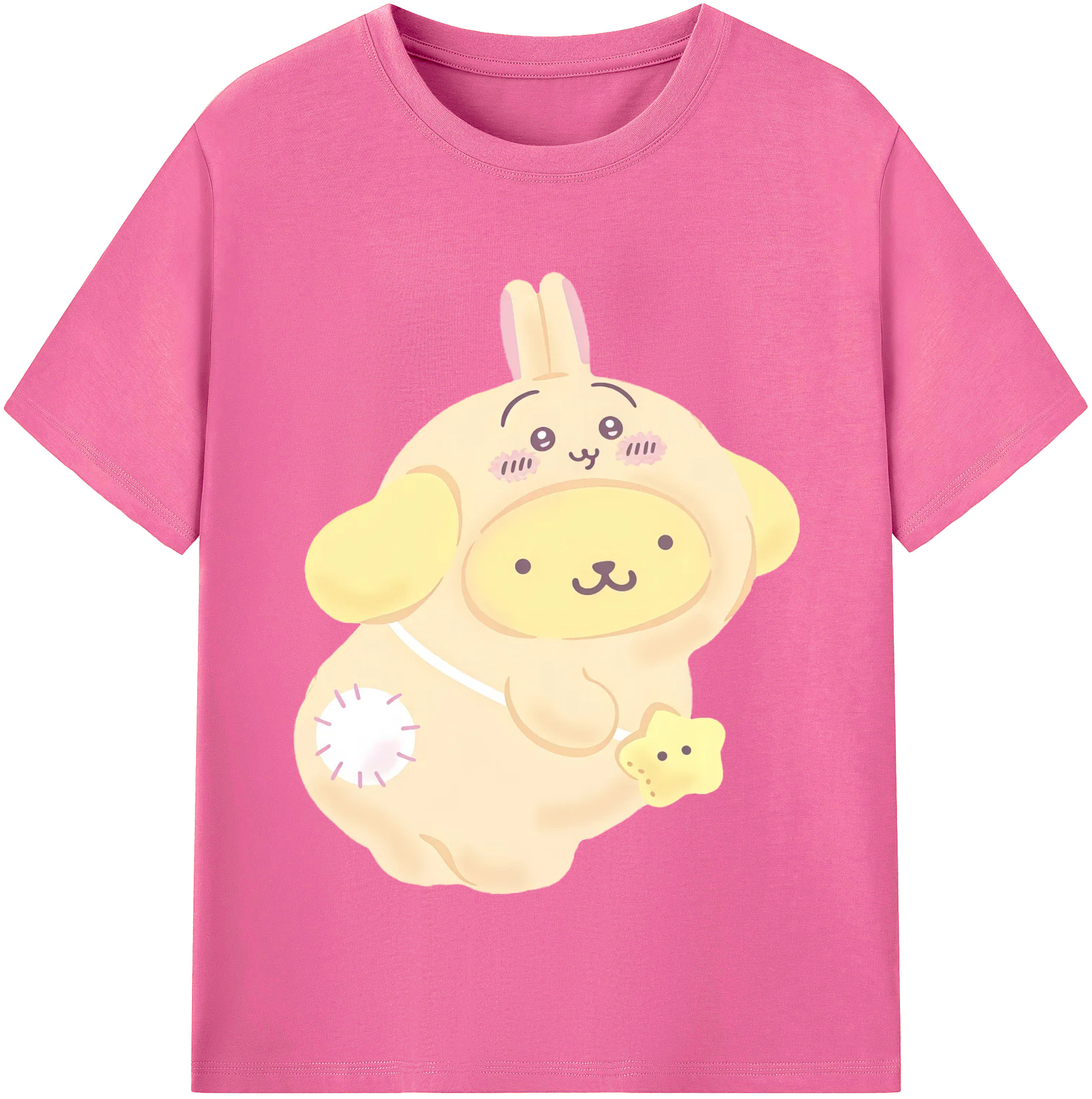 ポムポムプリン&ちいかわ - 綿100% キッズTシャツ ・ フロントプリント ・ 快適 通気性 ・ スポーツ カジュアル 散歩用