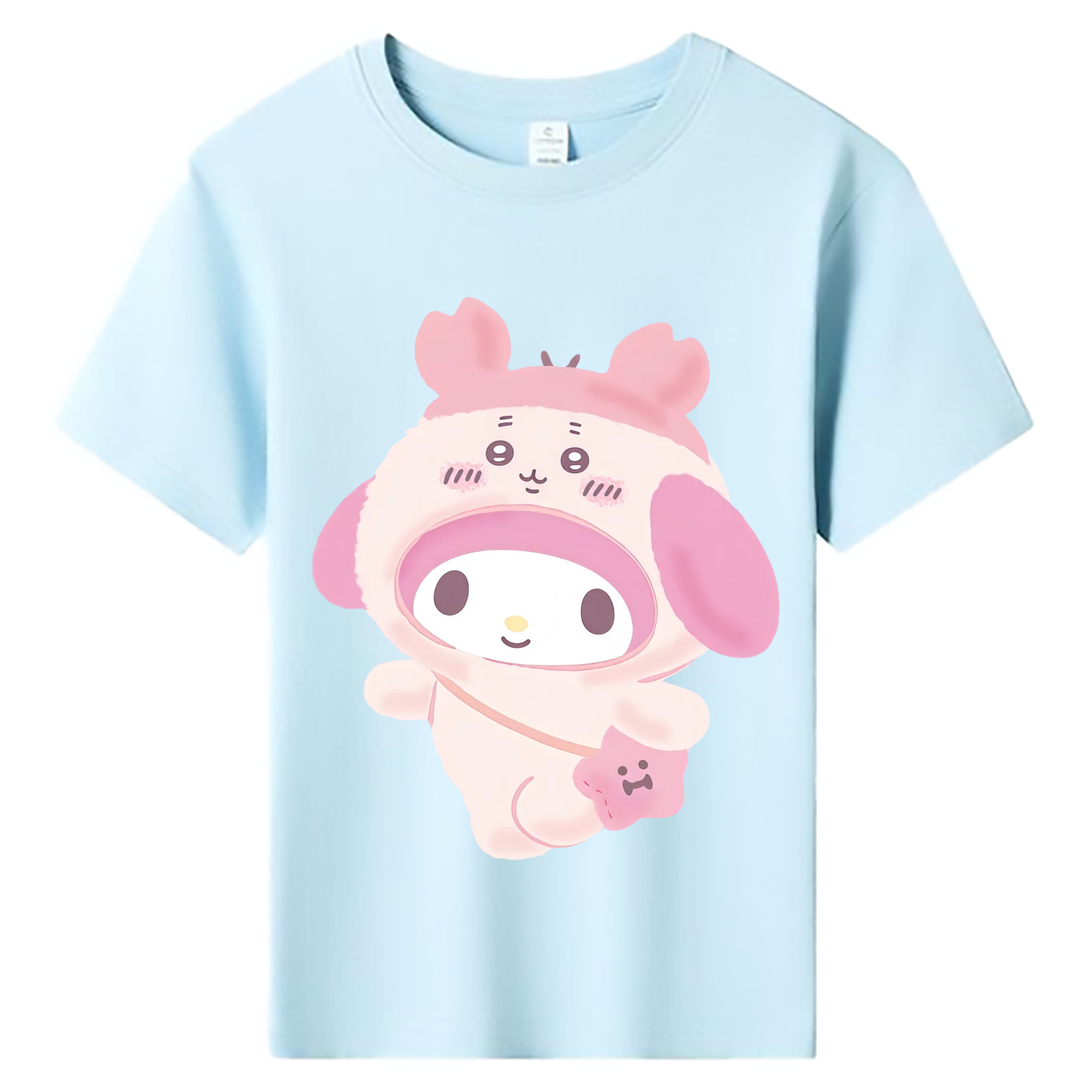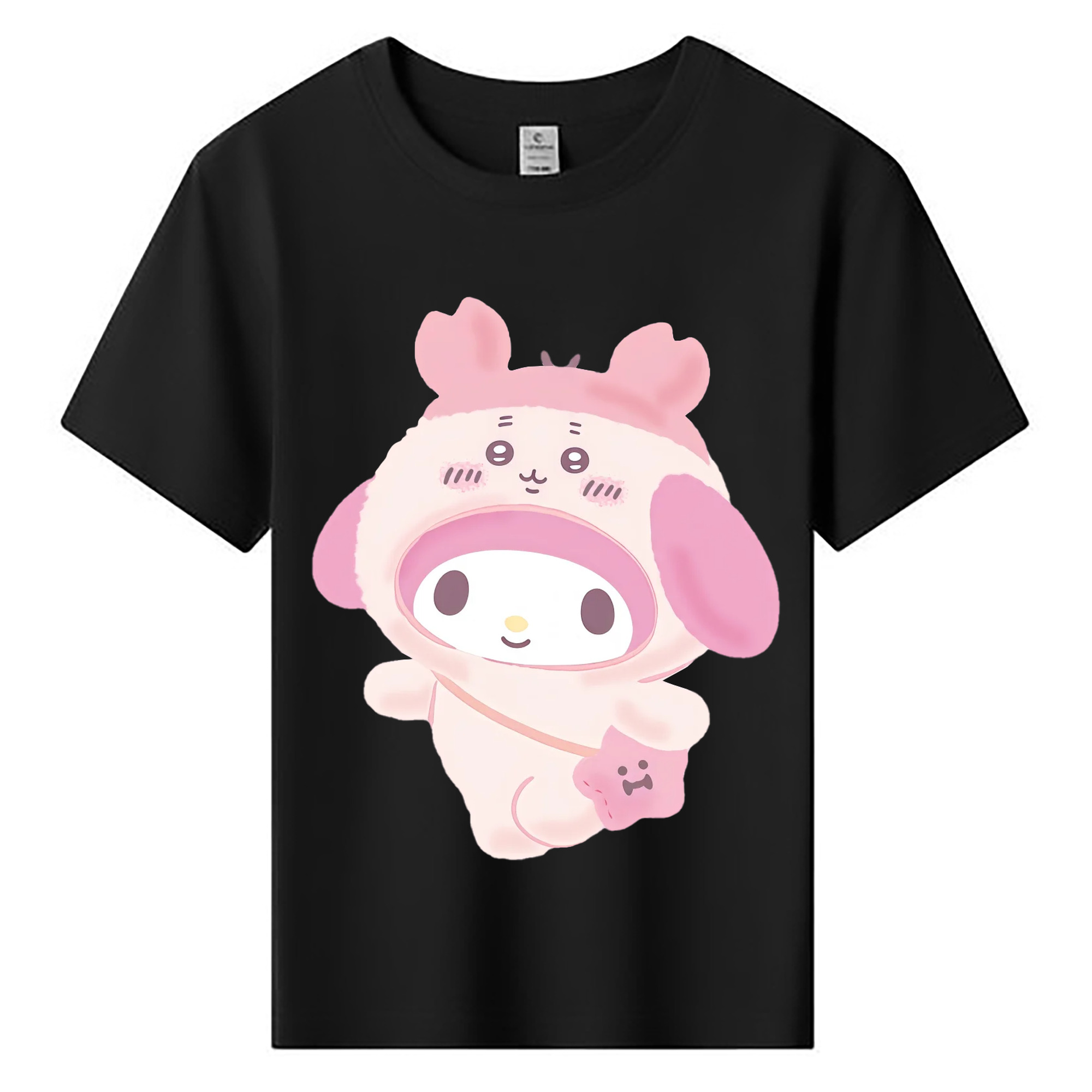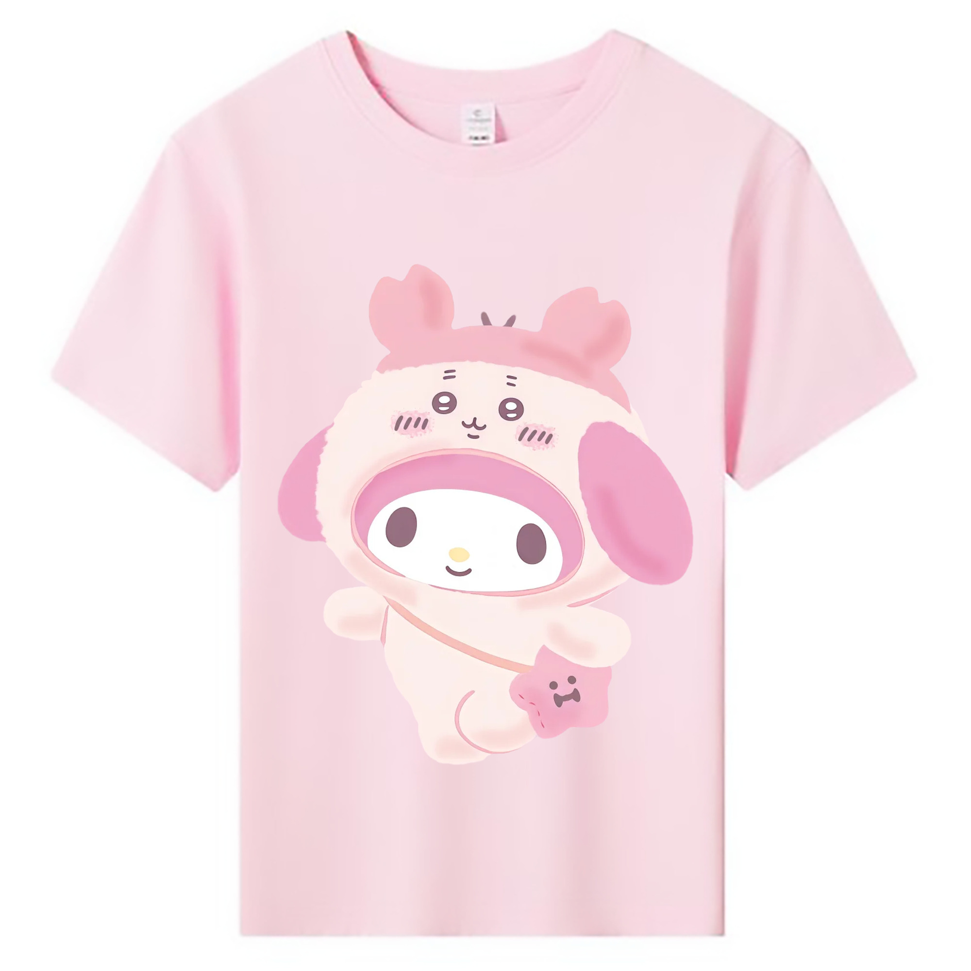 マイメロディ&ちいかわ - 綿100% ヴィンテージ風 半袖Tシャツ ・ 背面プリント ・ 柔らか肌触り ・ 通気性 快適 ・ スポーツ カジュアル 外出用