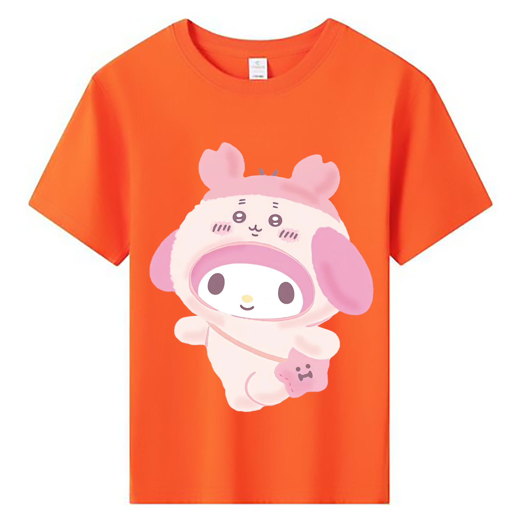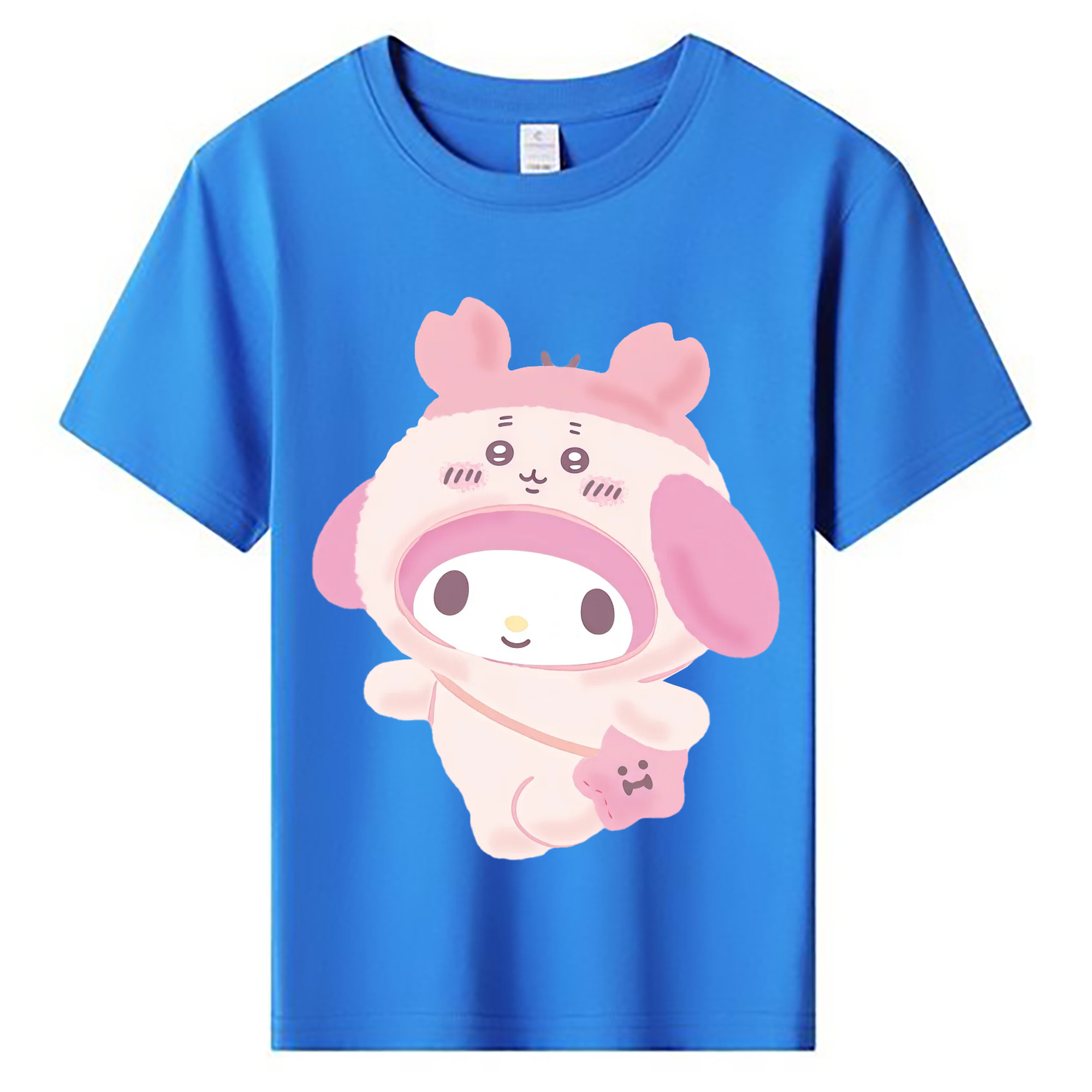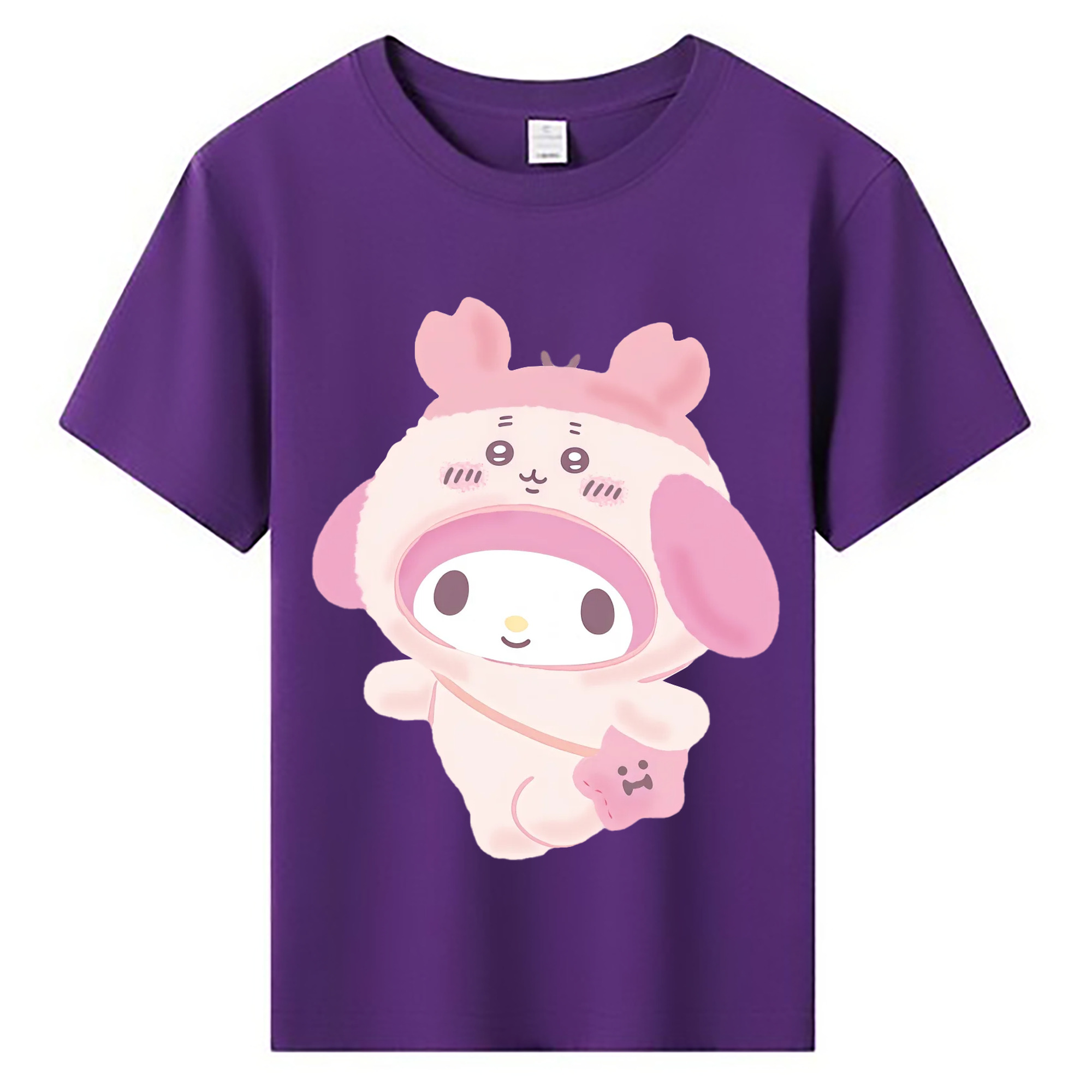 マイメロディ&ちいかわ - 綿100% ヴィンテージ風 半袖Tシャツ ・ 背面プリント ・ 柔らか肌触り ・ 通気性 快適 ・ スポーツ カジュアル 外出用