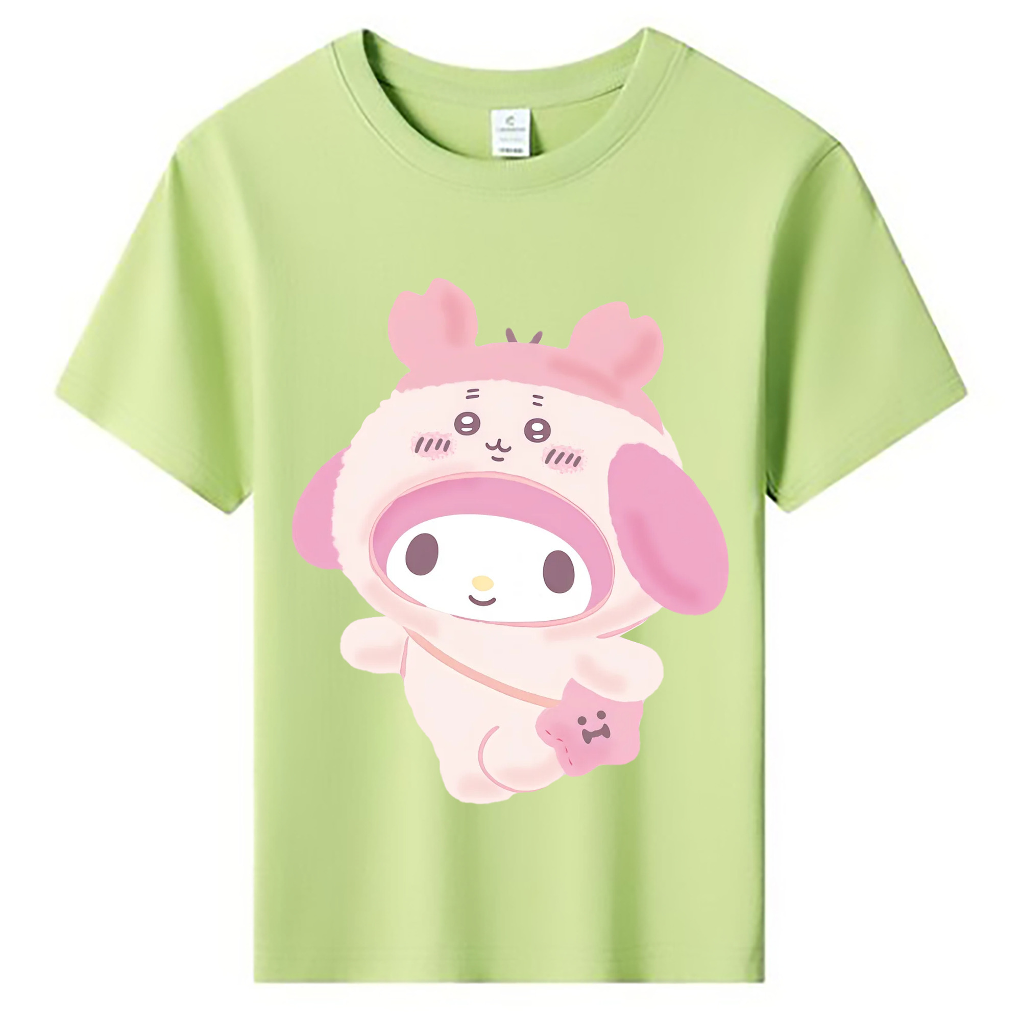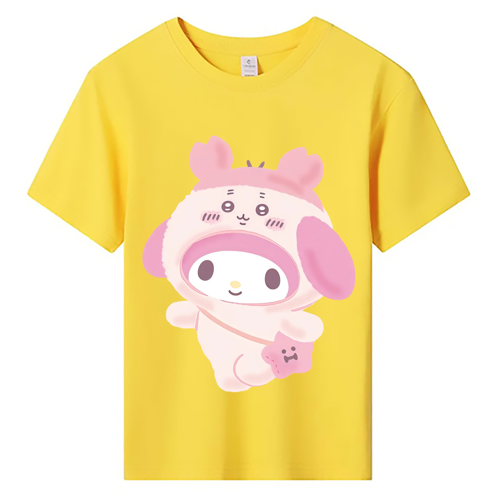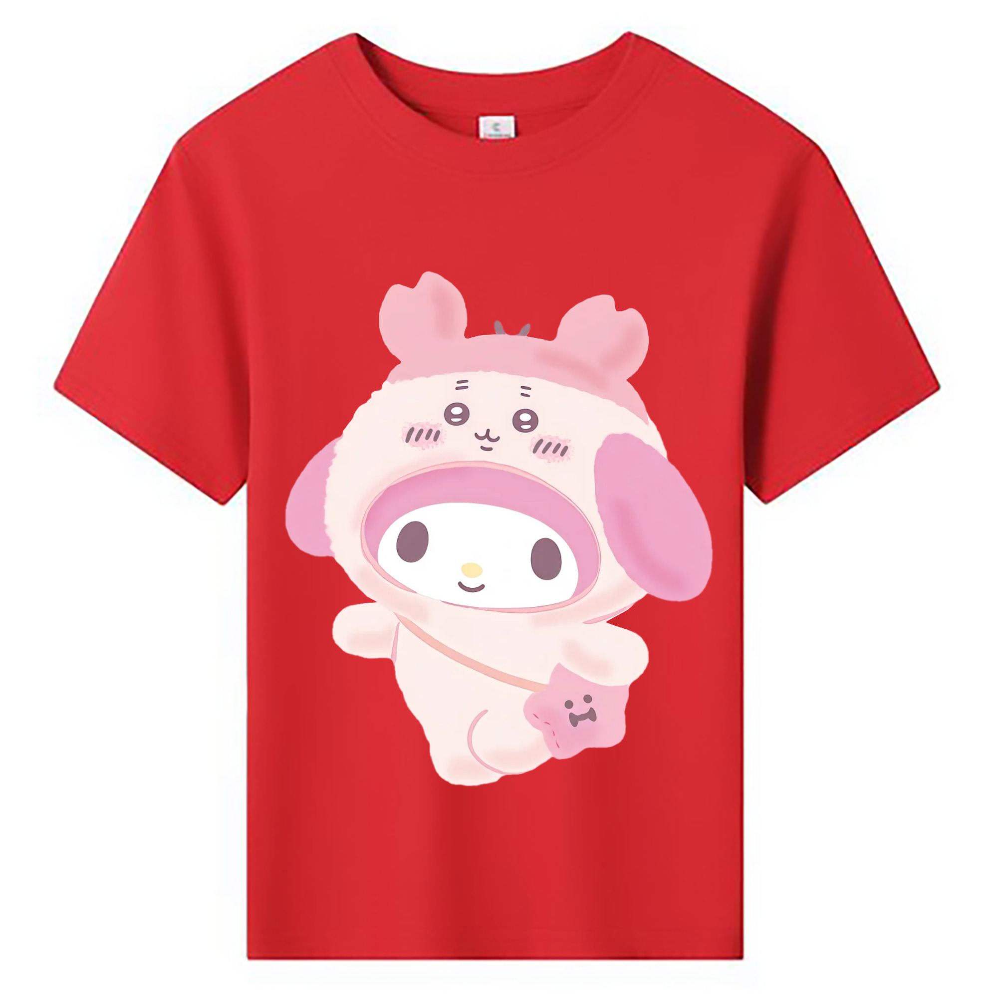 マイメロディ&ちいかわ - 綿100% ヴィンテージ風 半袖Tシャツ ・ フロントプリント ・ 柔らか肌触り ・ 通気性 快適 ・ スポーツ カジュアル 外出用