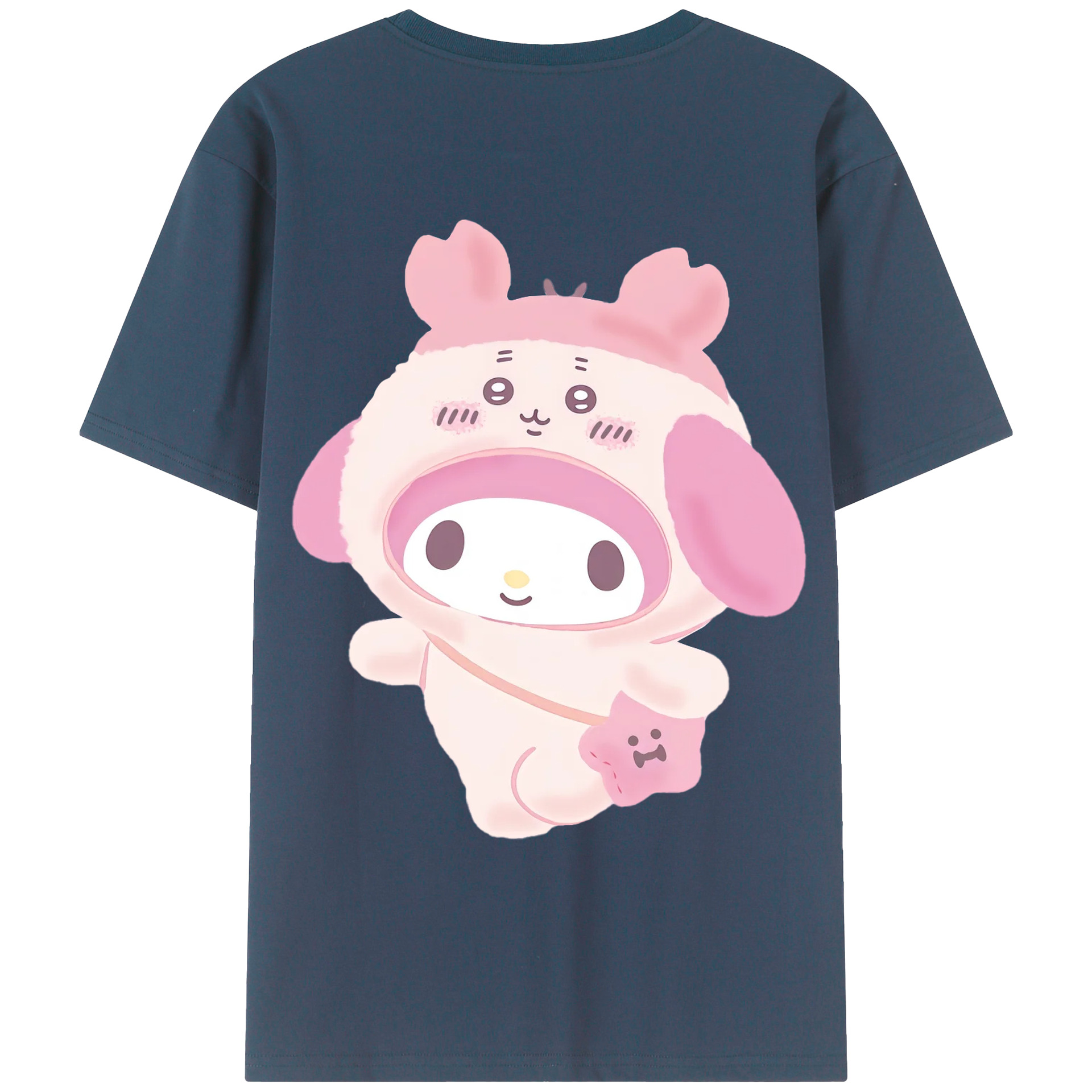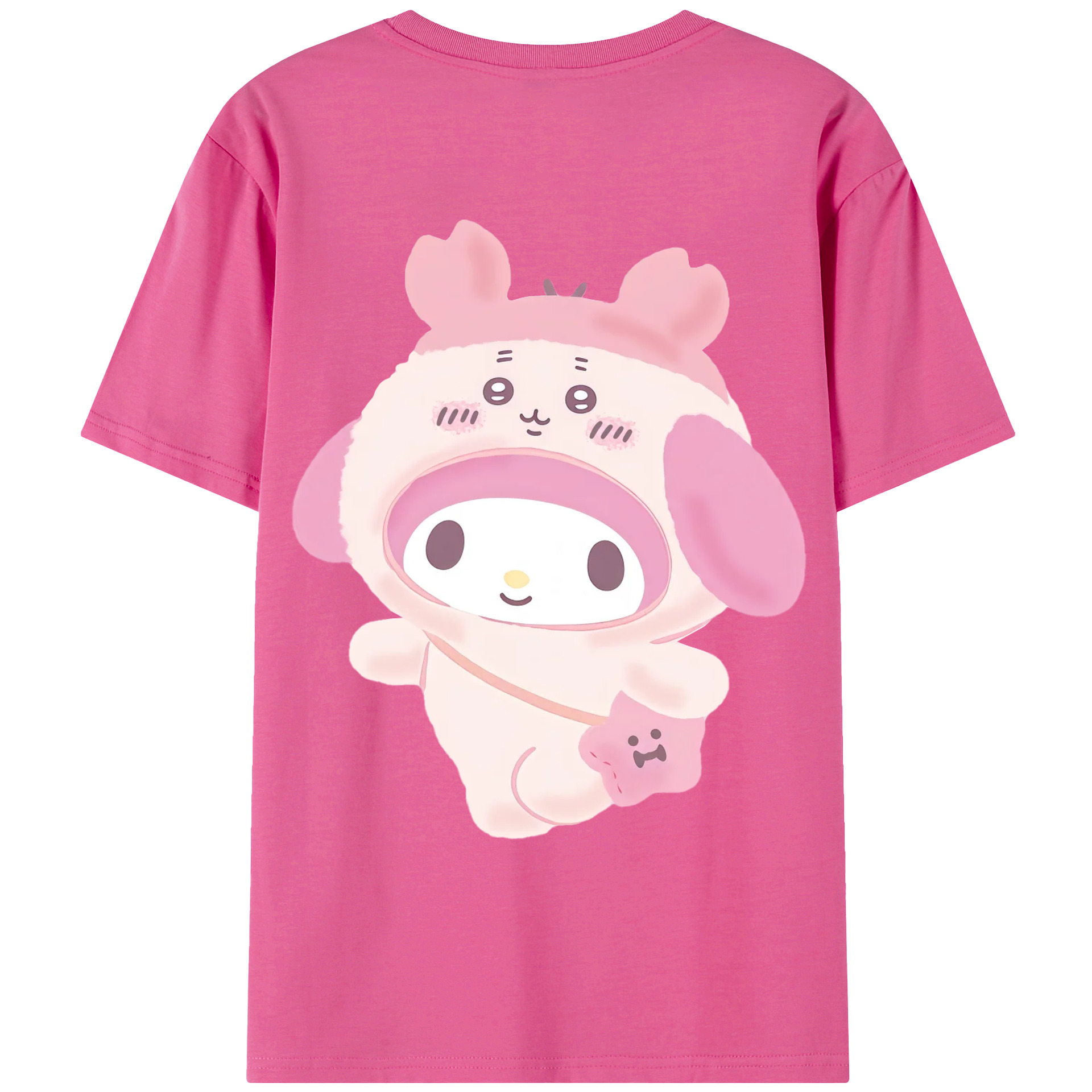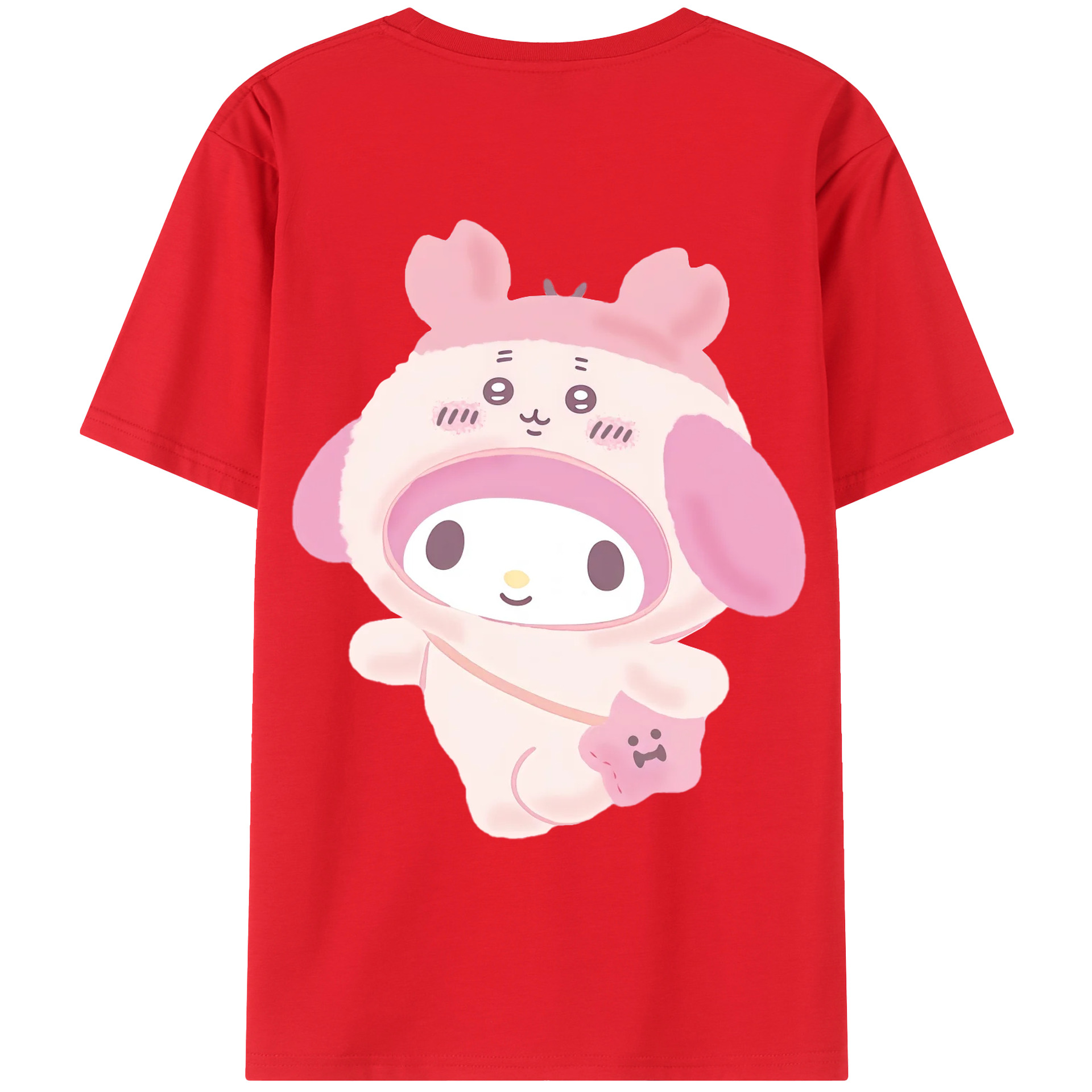 マイメロディ&ちいかわ - レディース半袖Tシャツ ・ 綿100% ・ バックプリント ・ 強化クルーネック ・ 二重折り袖口 ・ 快適 通気性 ・ フィットネス カジュアル 旅行用