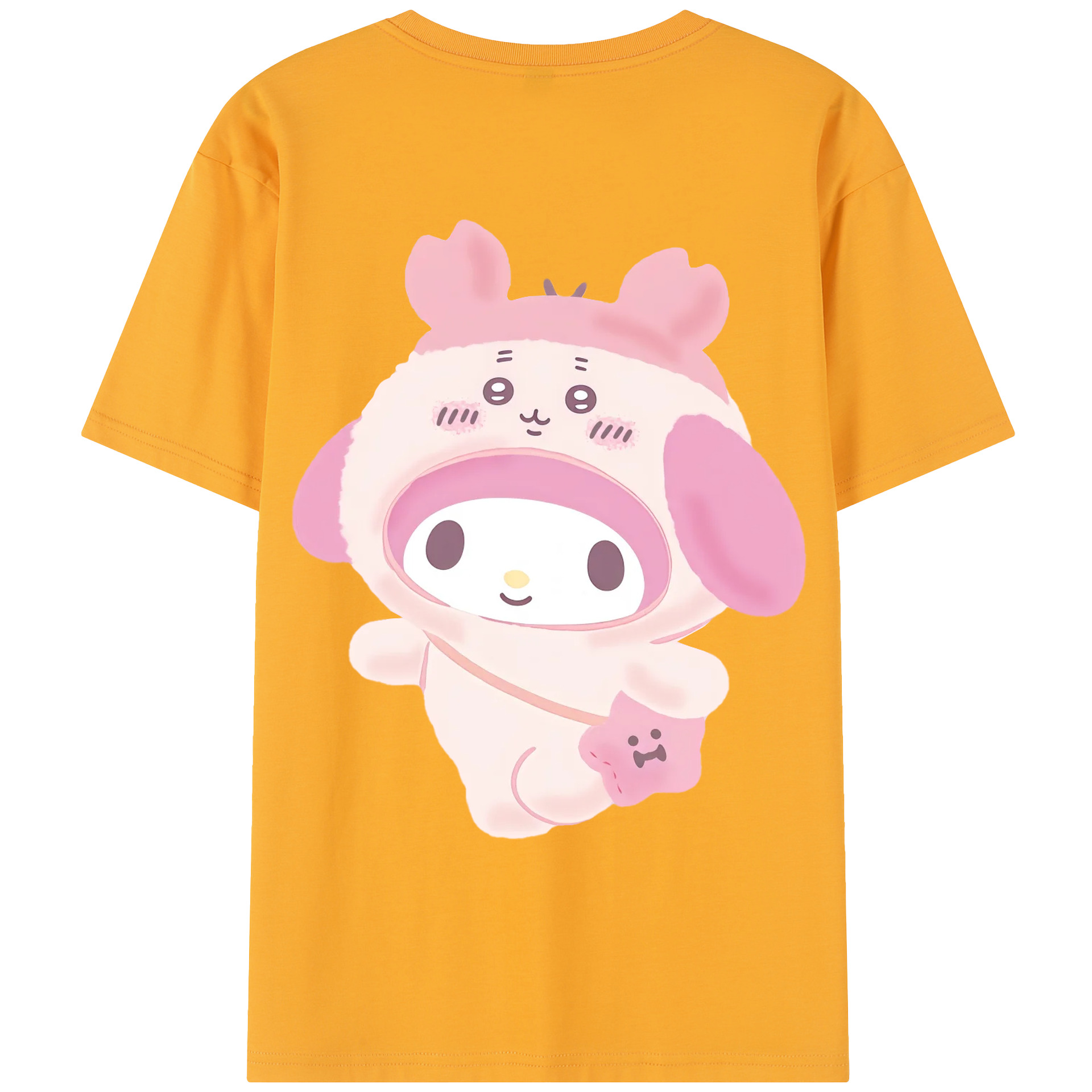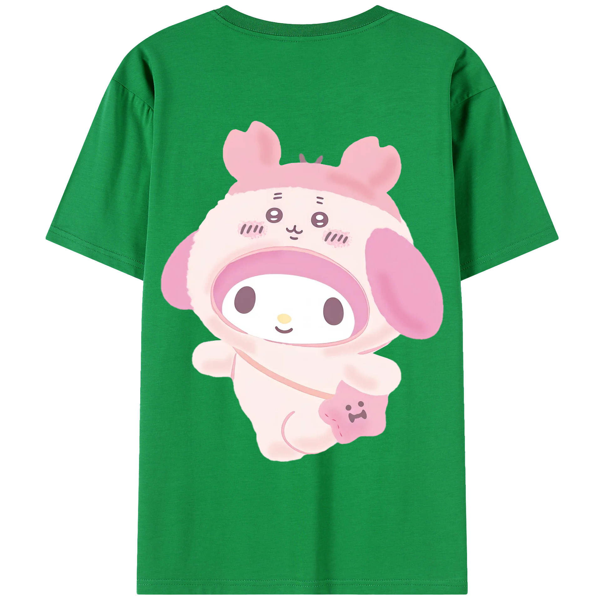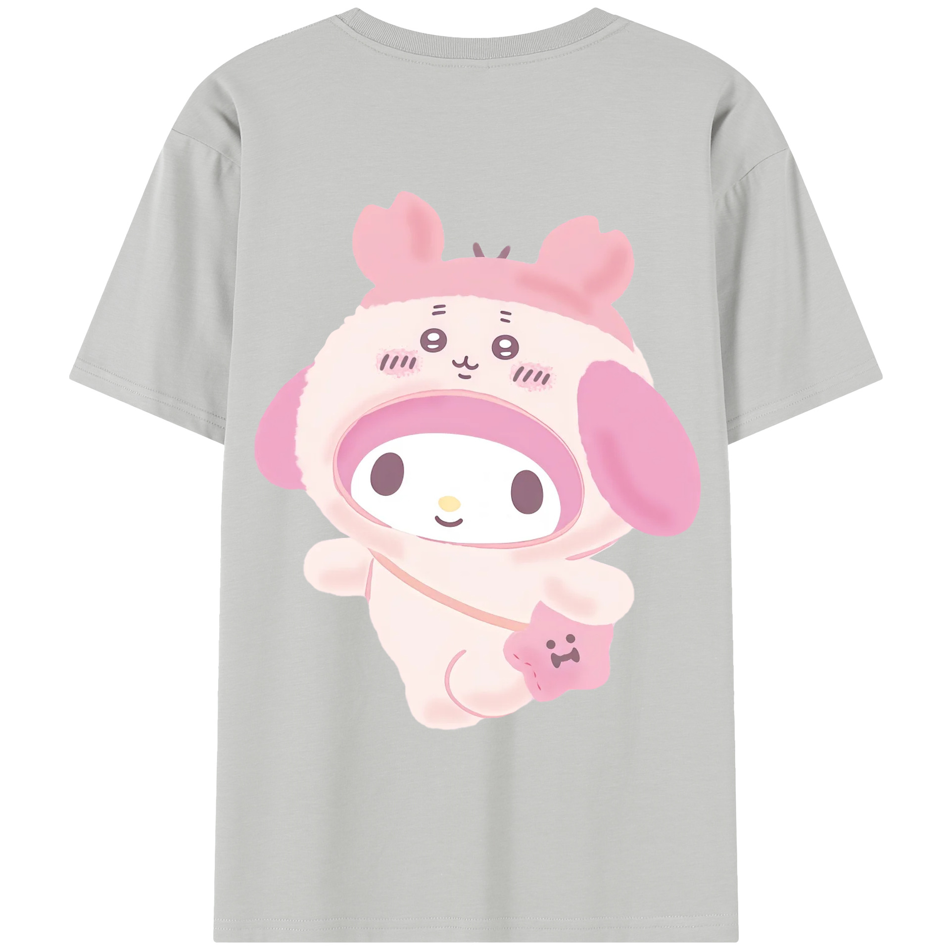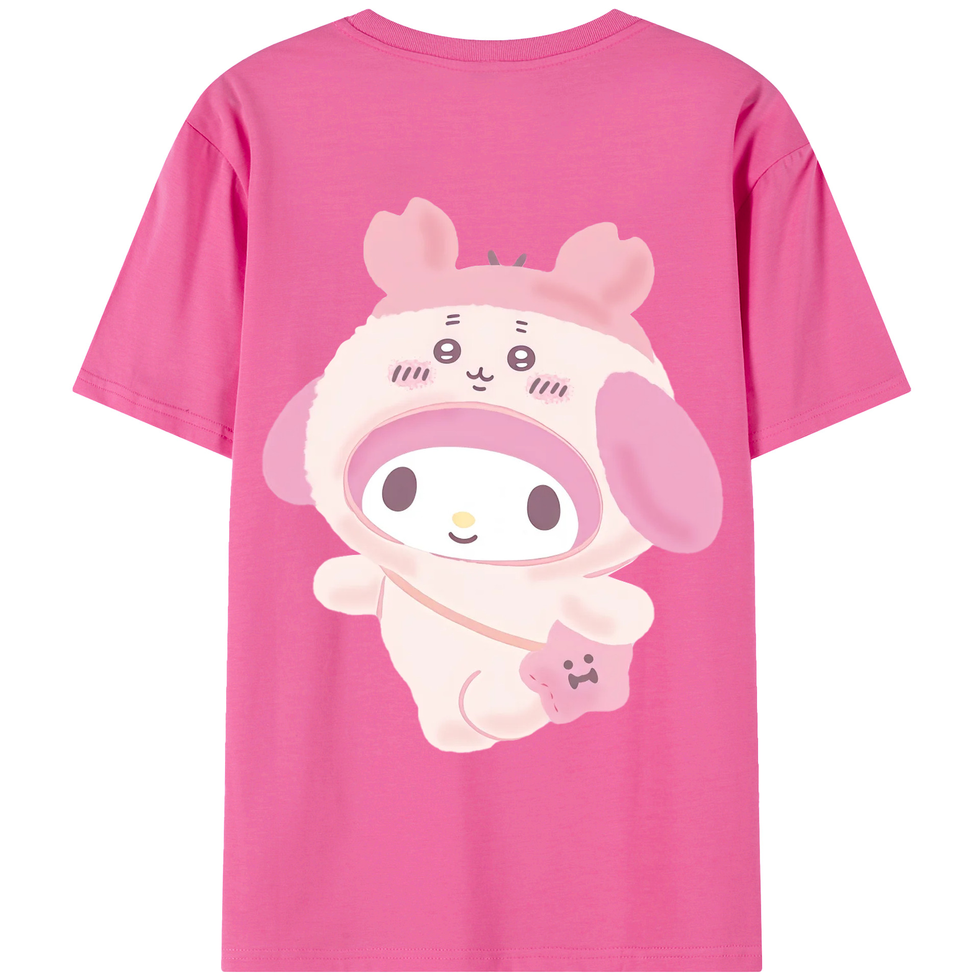 マイメロディ&ちいかわ - レディース半袖Tシャツ ・ 綿100% ・ バックプリント ・ 強化クルーネック ・ 二重折り袖口 ・ 快適 通気性 ・ フィットネス カジュアル 旅行用