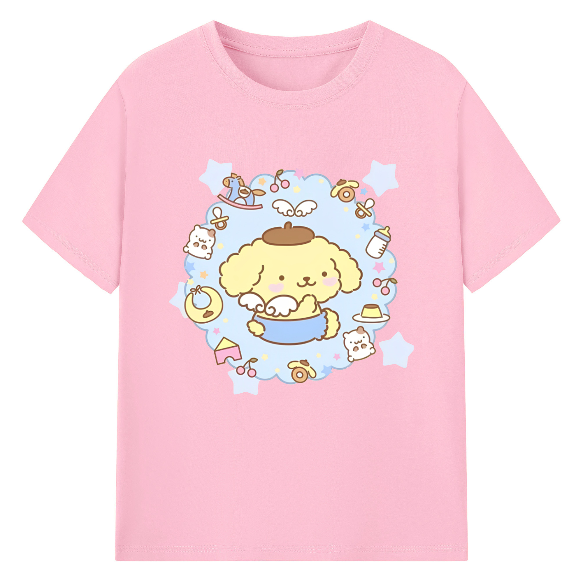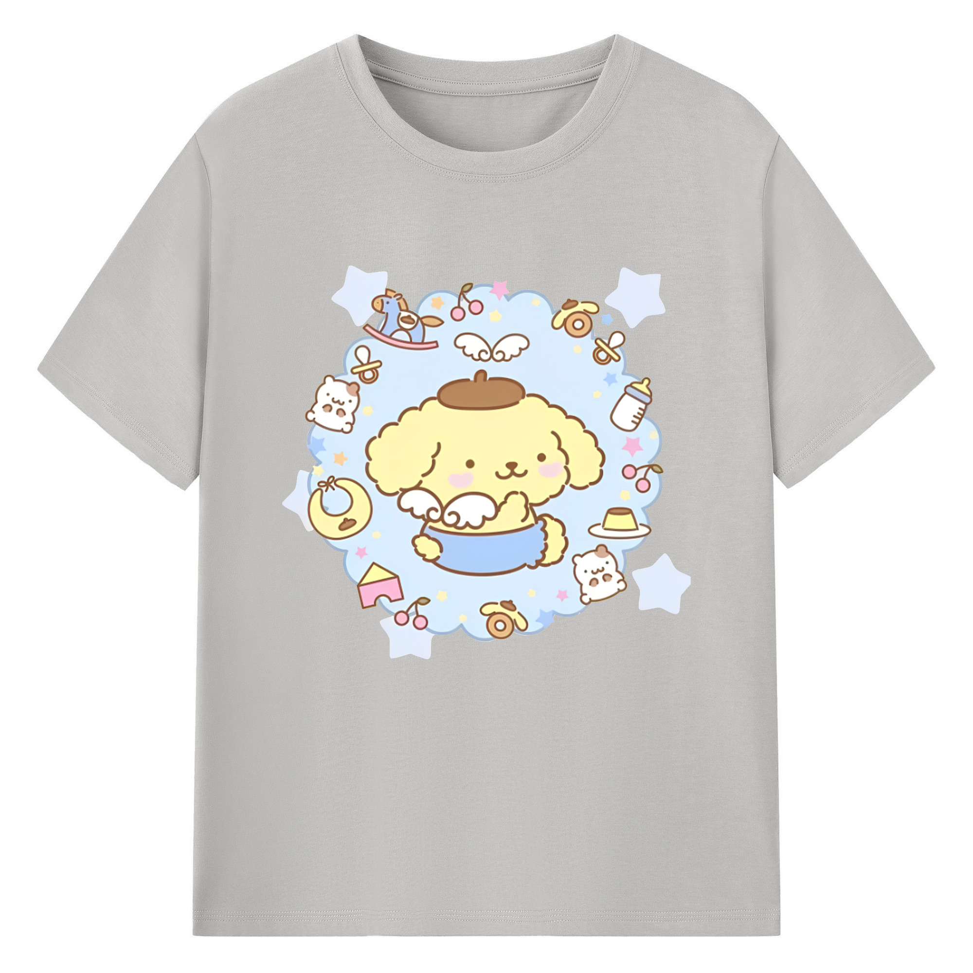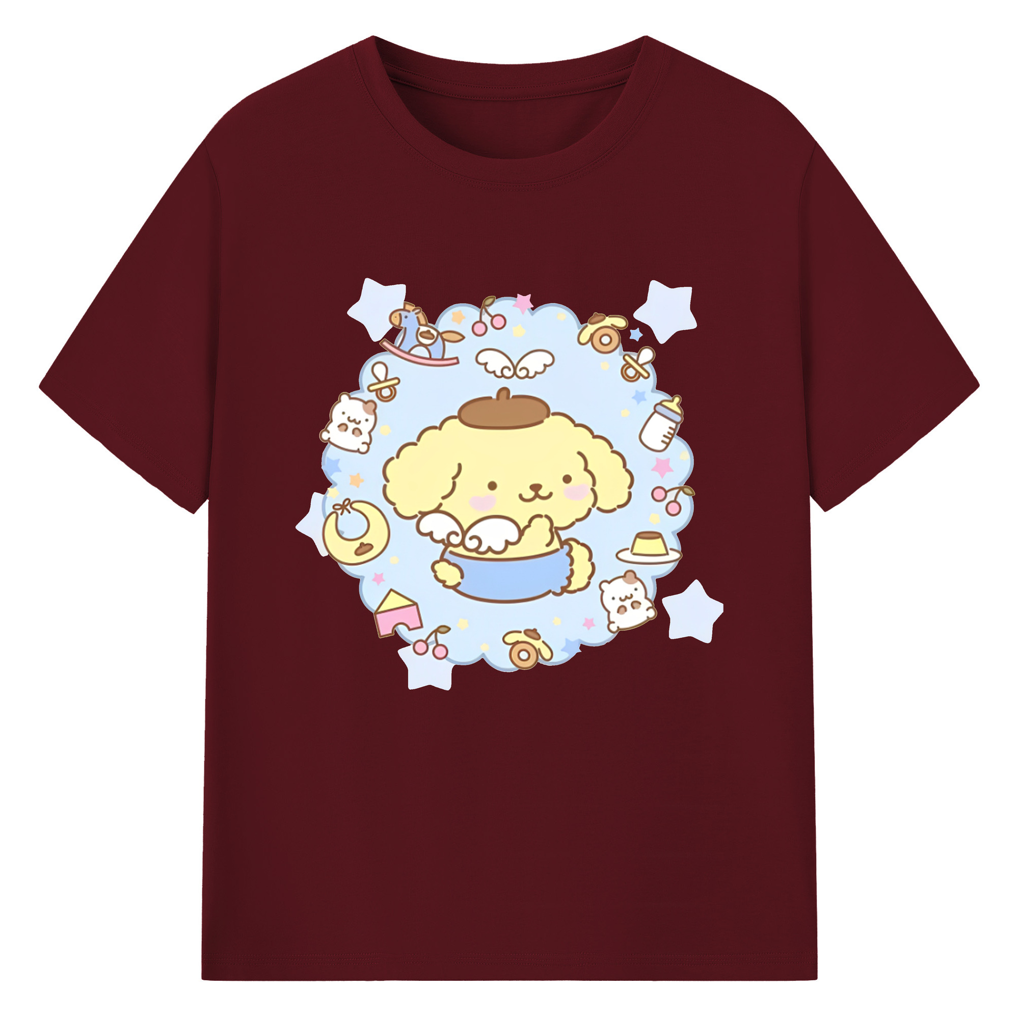 ユニークなデザインのポムポムプリン - 綿100% ヴィンテージ風 半袖Tシャツ ・ フロントプリント ・ 柔らか肌触り ・ 通気性 快適 ・ スポーツ カジュアル 外出用